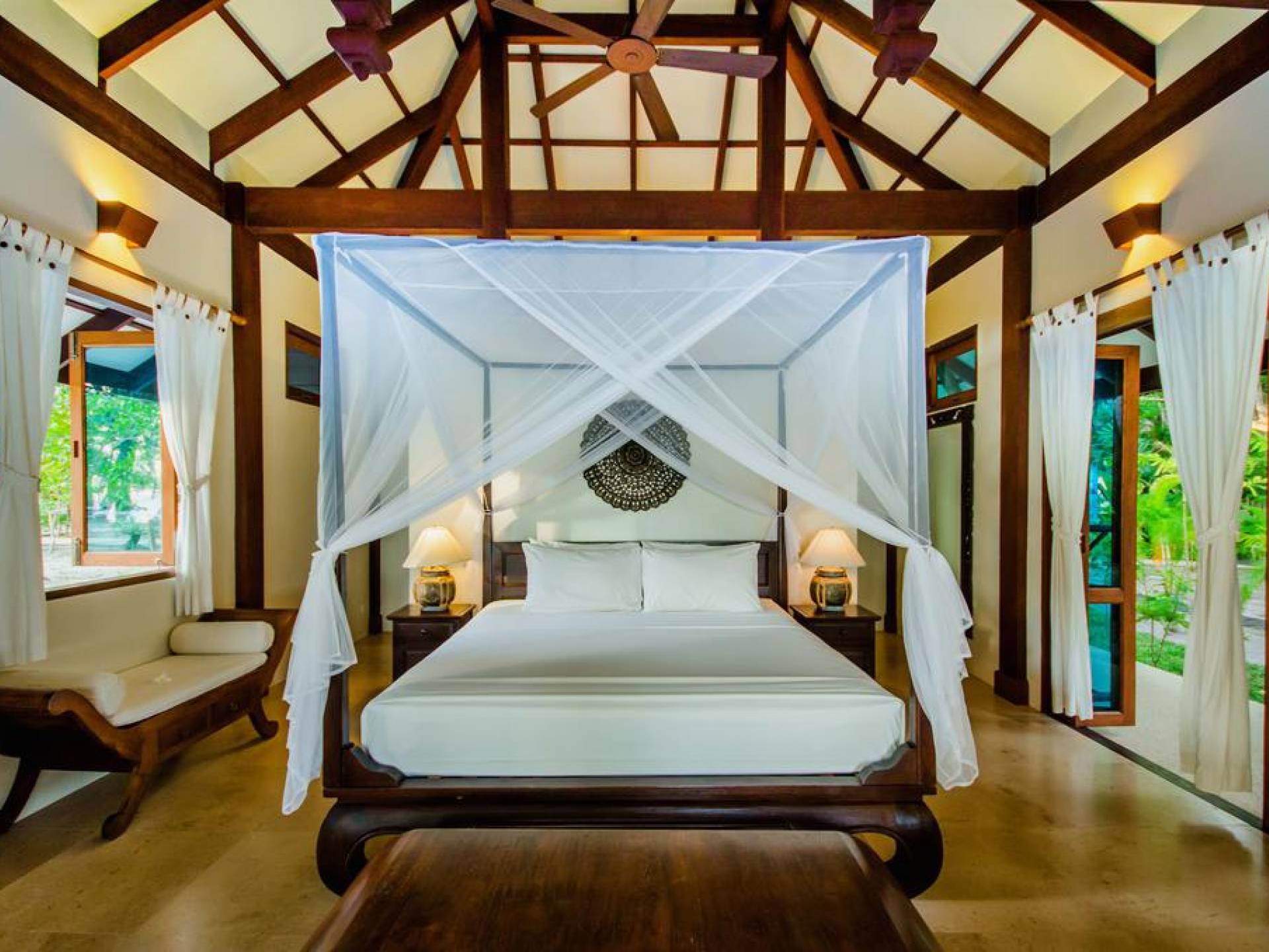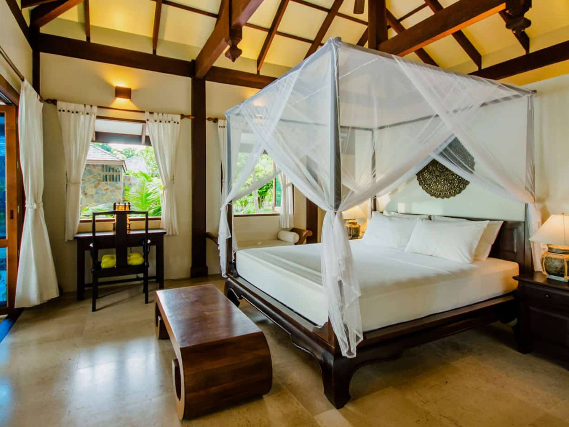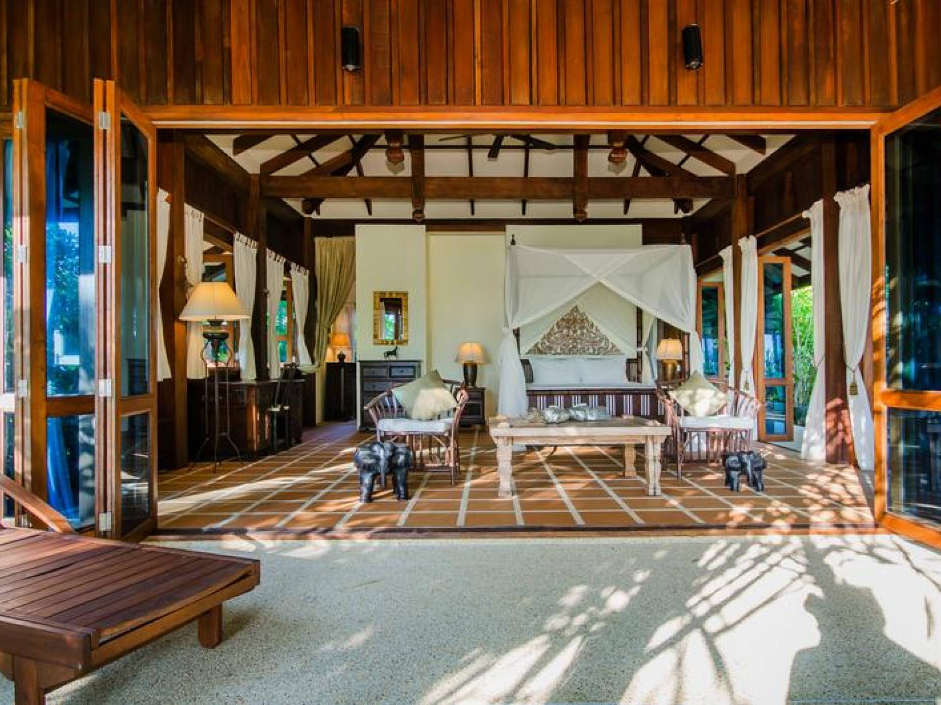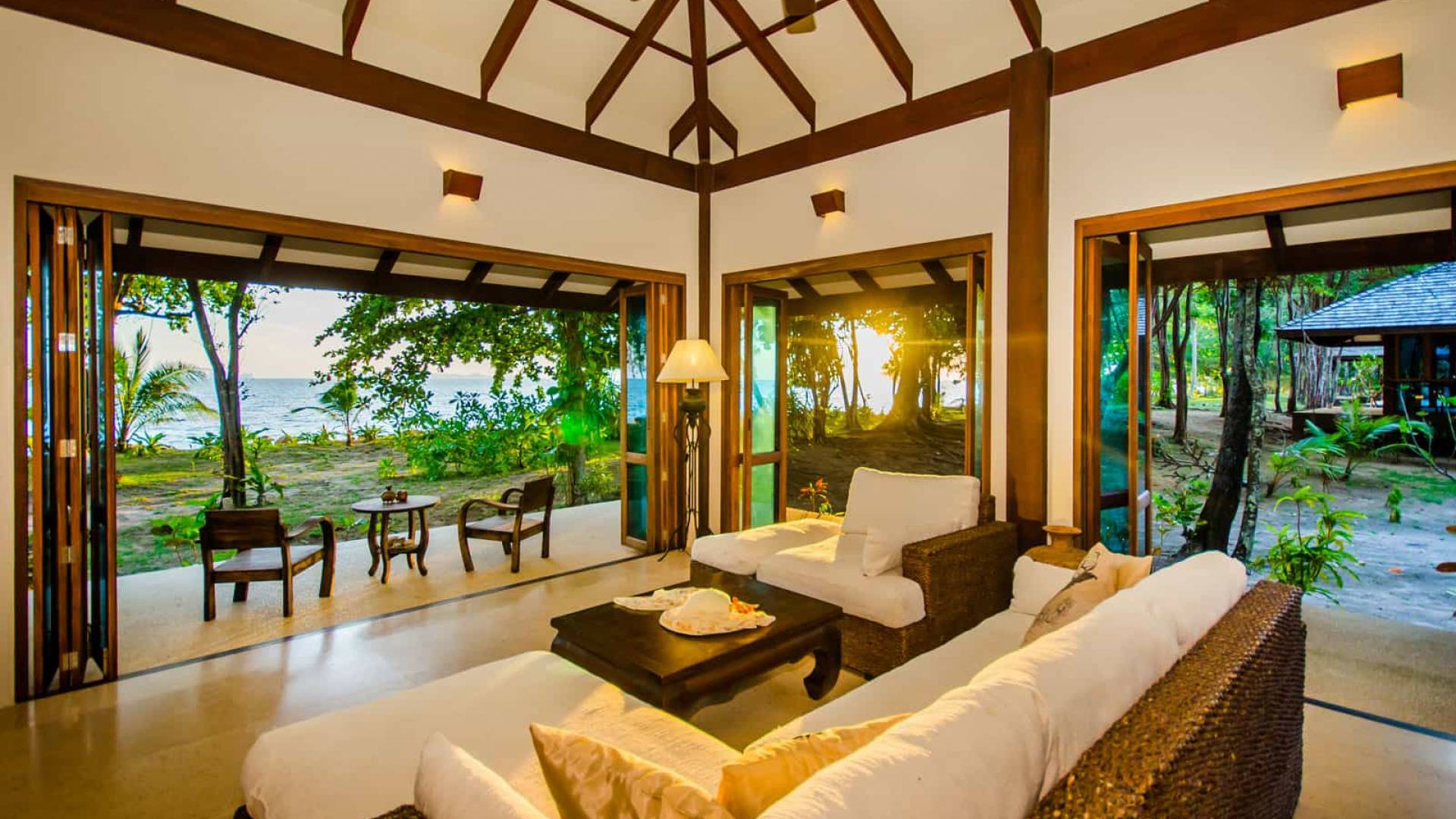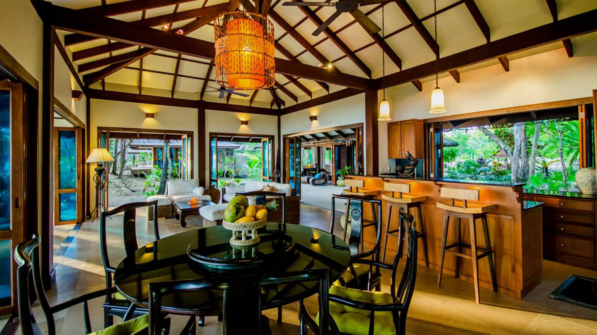 Baan Viva in den Koh Jum Beach Villas ist wunderschön mit vielen natürlichen Materialien wie Holz und Stein gestaltet und eine intelligente Architektur fördert eine ausreichende natürliche Belüftung in allen Bereichen der Villa, die dem Öko-Konzept des Koh Jum Beach Villas Resorts folgt. Die großen Deckenventilatoren und die natürliche Brise sind ein willkommenes Feature, wenn Sie sich in Ihrer Villa entspannen oder nachts schlafen.