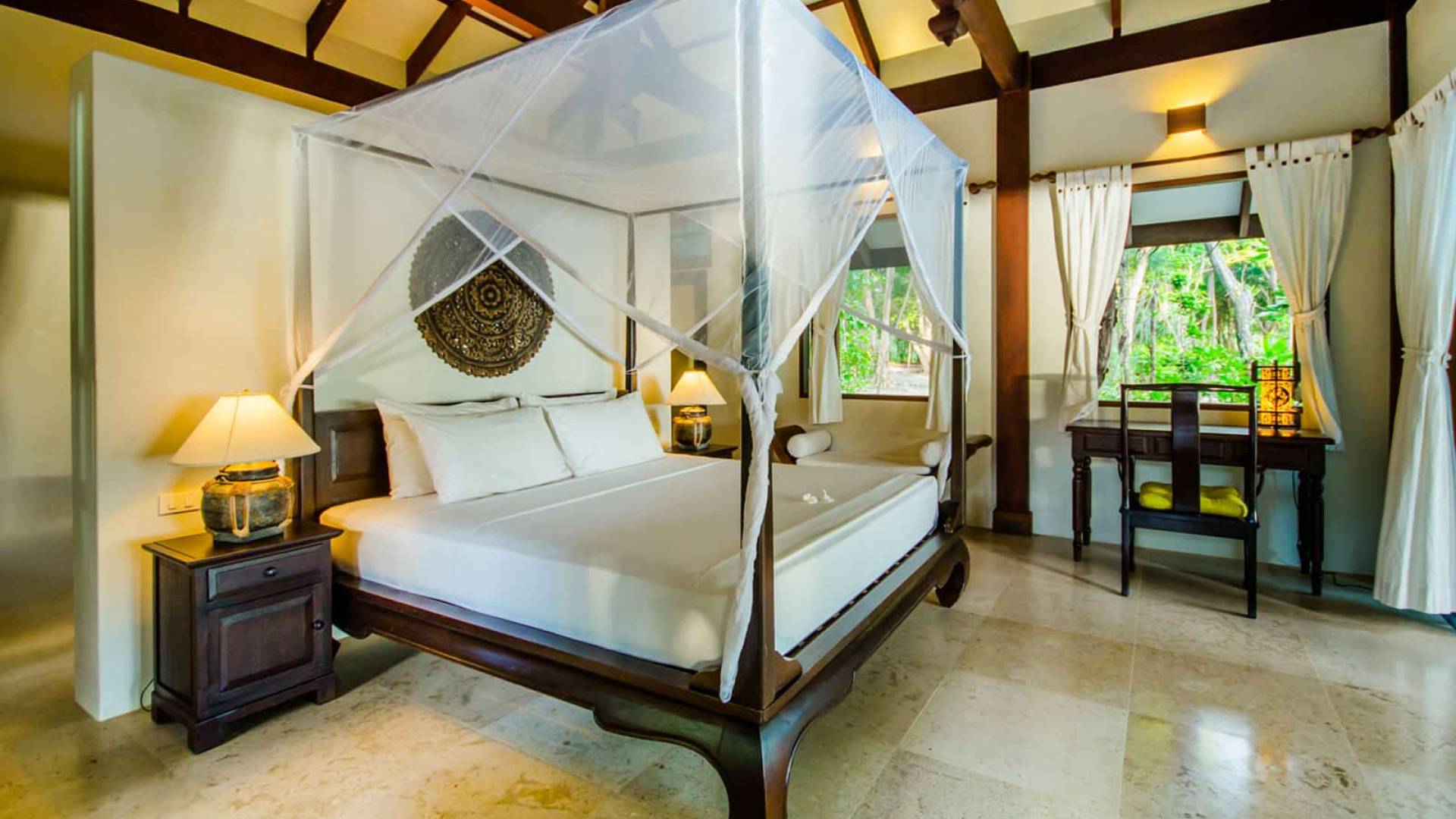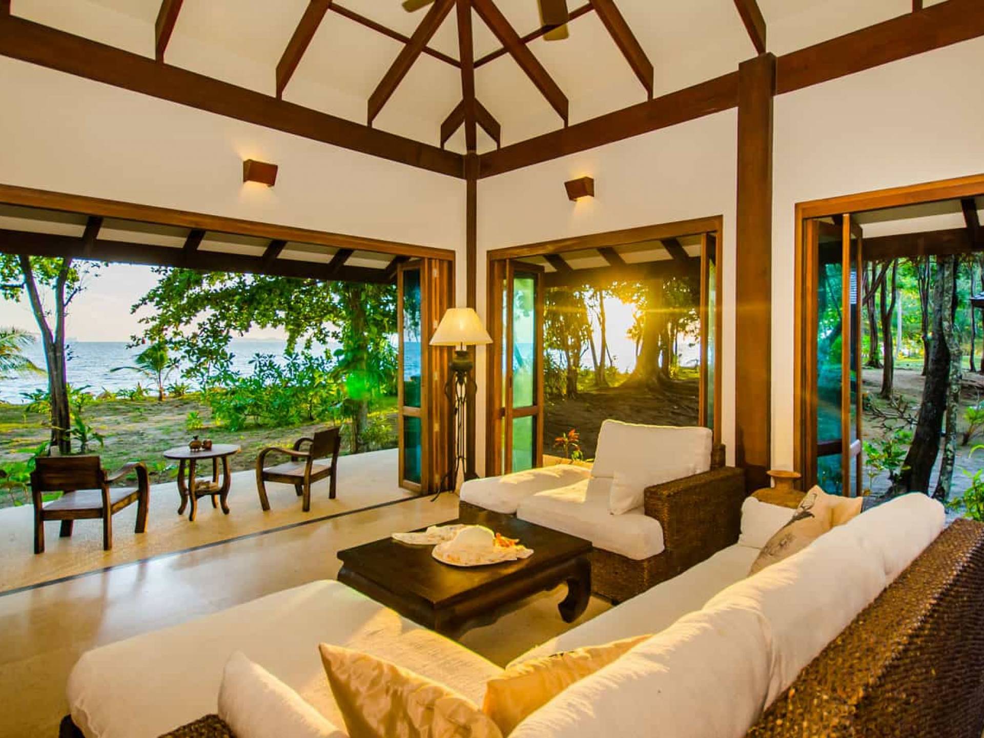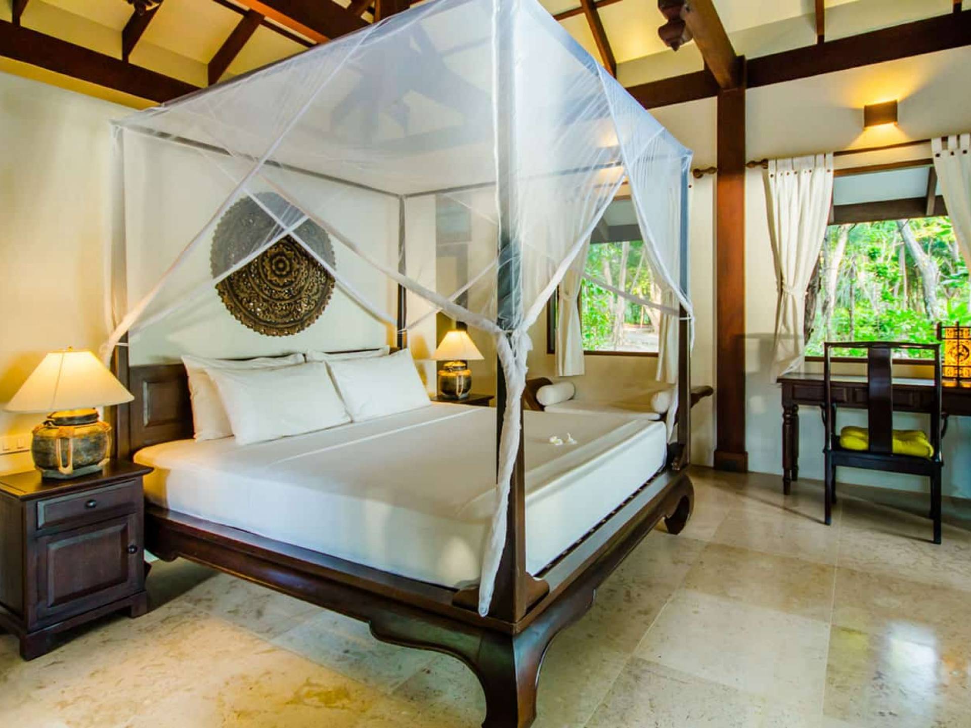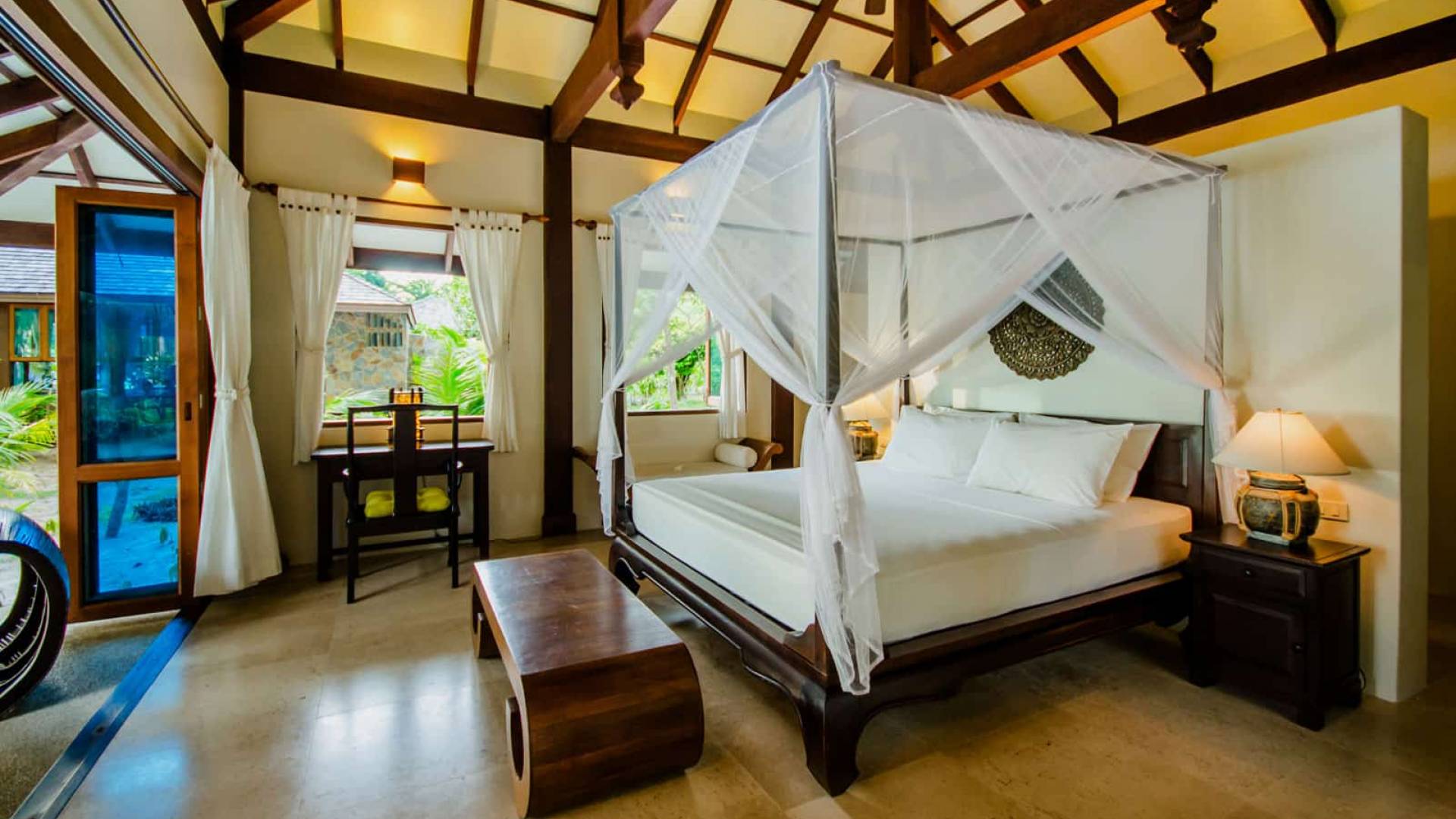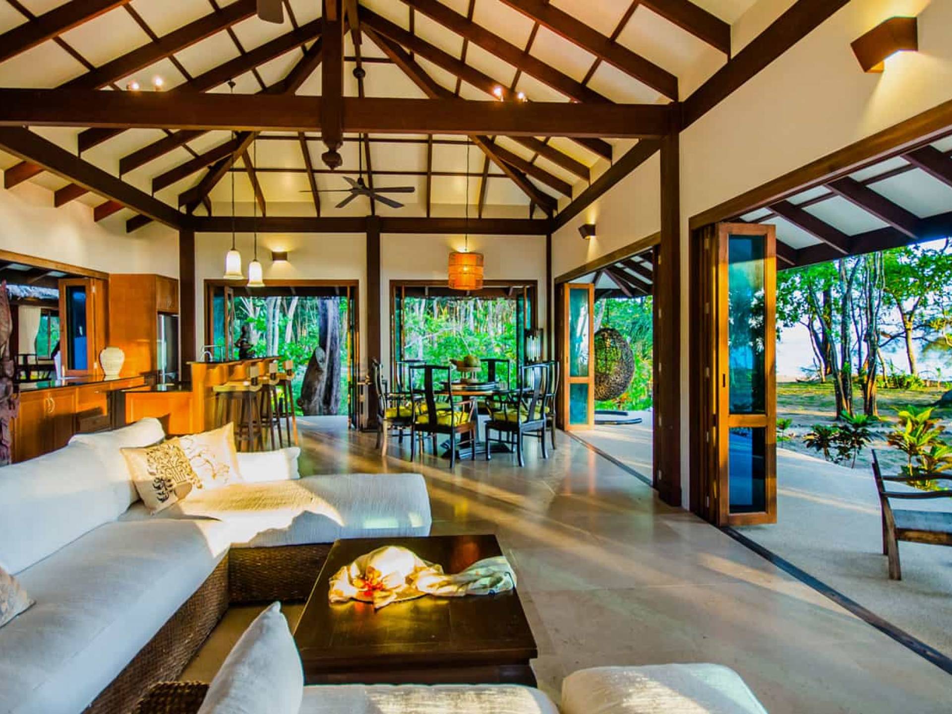 Baan Viva in den Koh Jum Beach Villas ist wunderschön mit vielen natürlichen Materialien wie Holz und Stein gestaltet und eine intelligente Architektur fördert eine ausreichende natürliche Belüftung in allen Bereichen der Villa, die dem Öko-Konzept des Koh Jum Beach Villas Resorts folgt. Die großen Deckenventilatoren und die natürliche Brise sind ein willkommenes Feature, wenn Sie sich in Ihrer Villa entspannen oder nachts schlafen.
