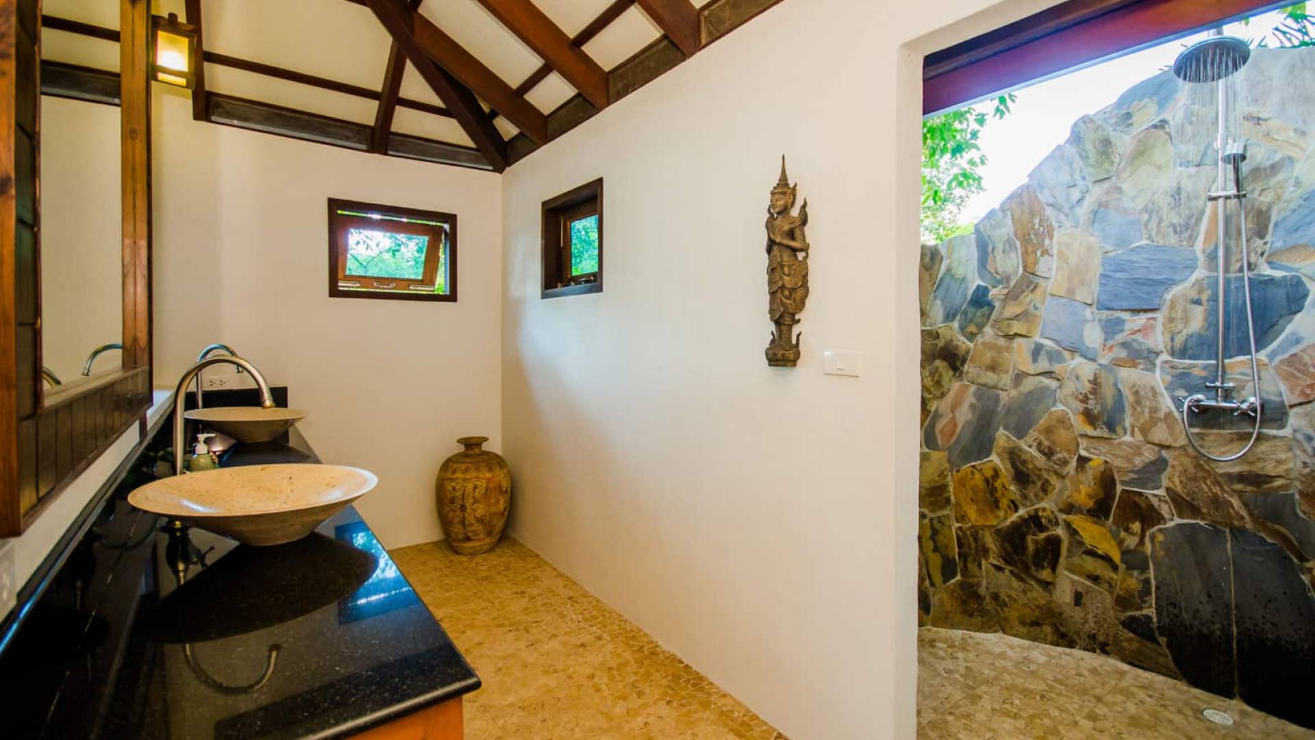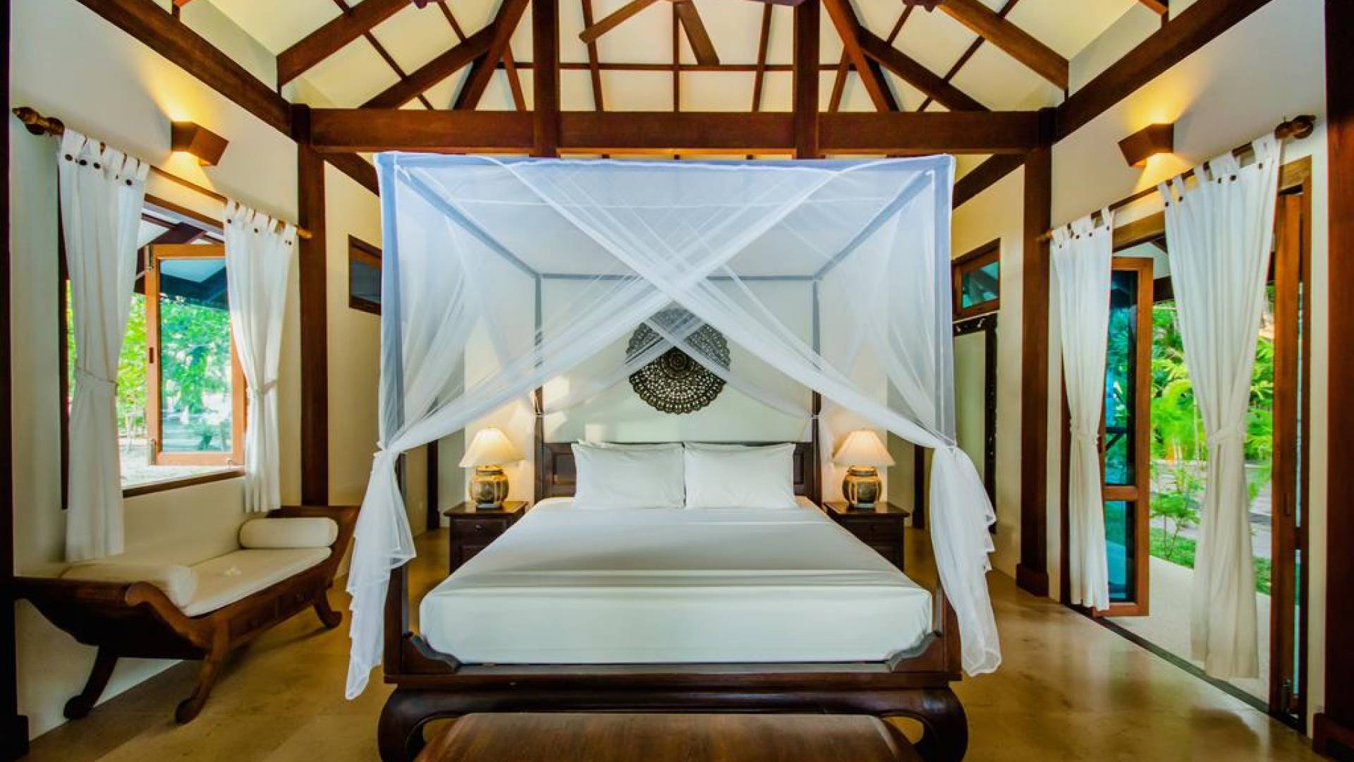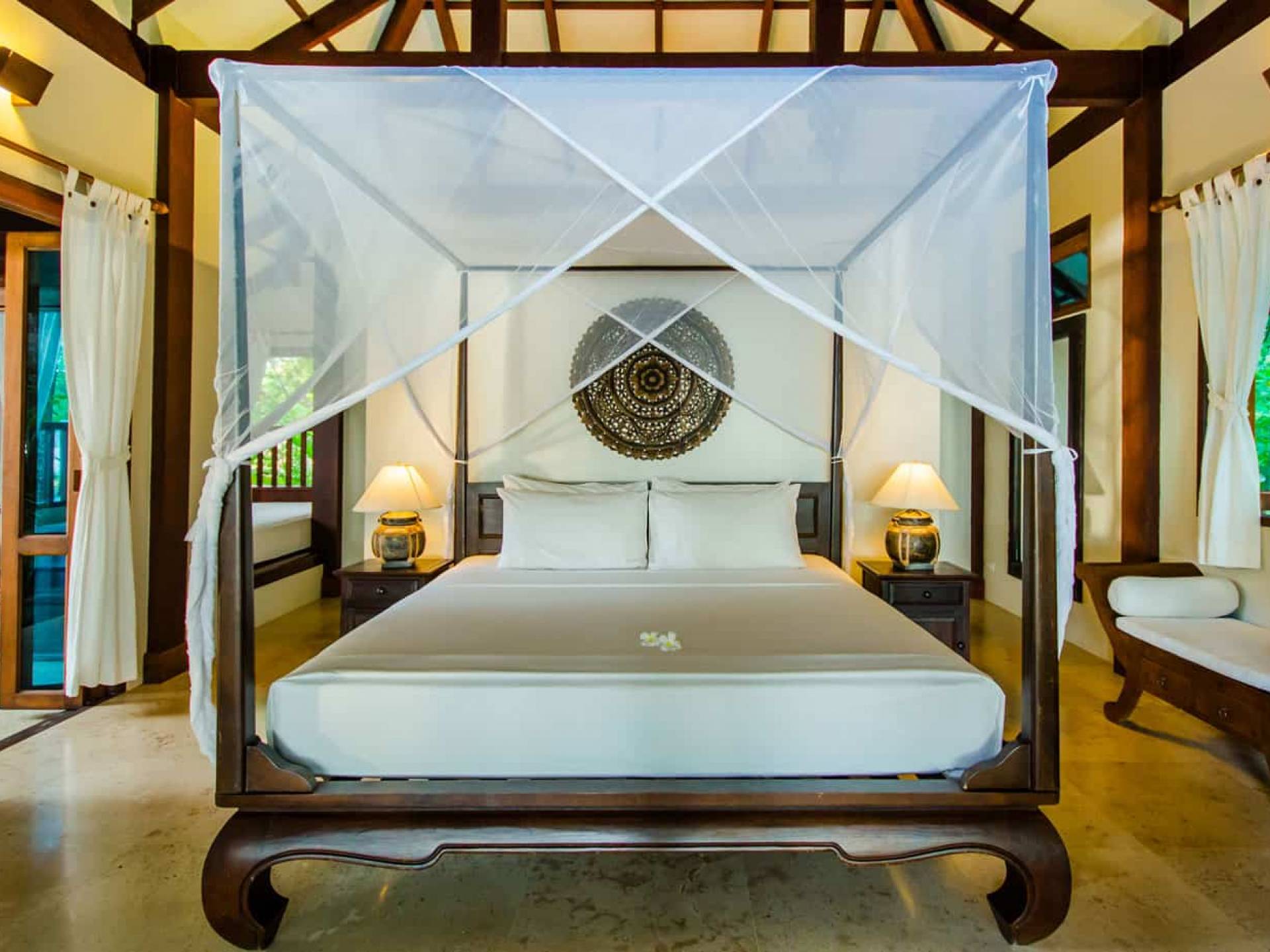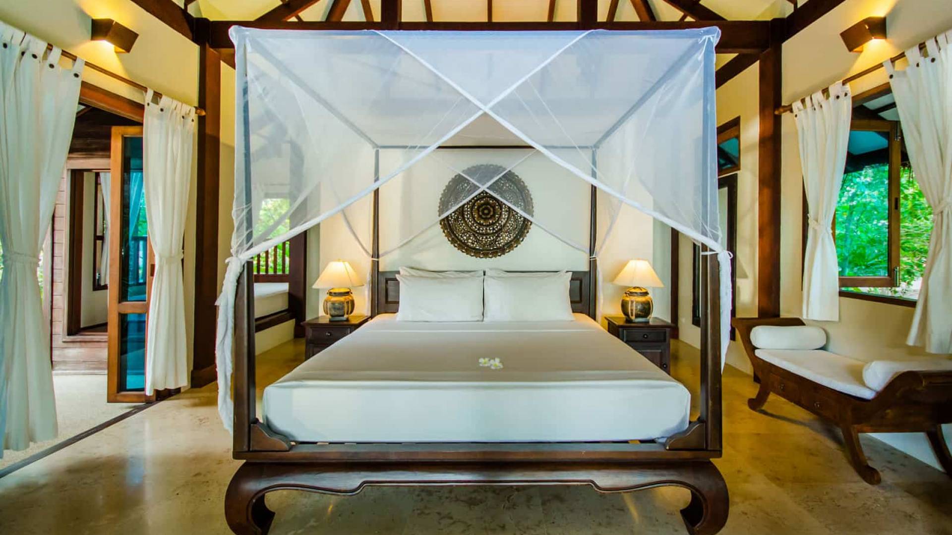 Die beiden Schlafzimmer sind vom Rest der Villa getrennt und bieten auf Wunsch ein hohes Maß an Privatsphäre, während das Design der Villa auch gemeinsames Essen oder gemeinsame Freizeit ermöglicht. Jedes Schlafzimmer verfügt über ein eigenes Badezimmer mit einer Open-Air-Doppelregendusche im balinesischen Stil und einem Waschtisch für Sie und Ihn.