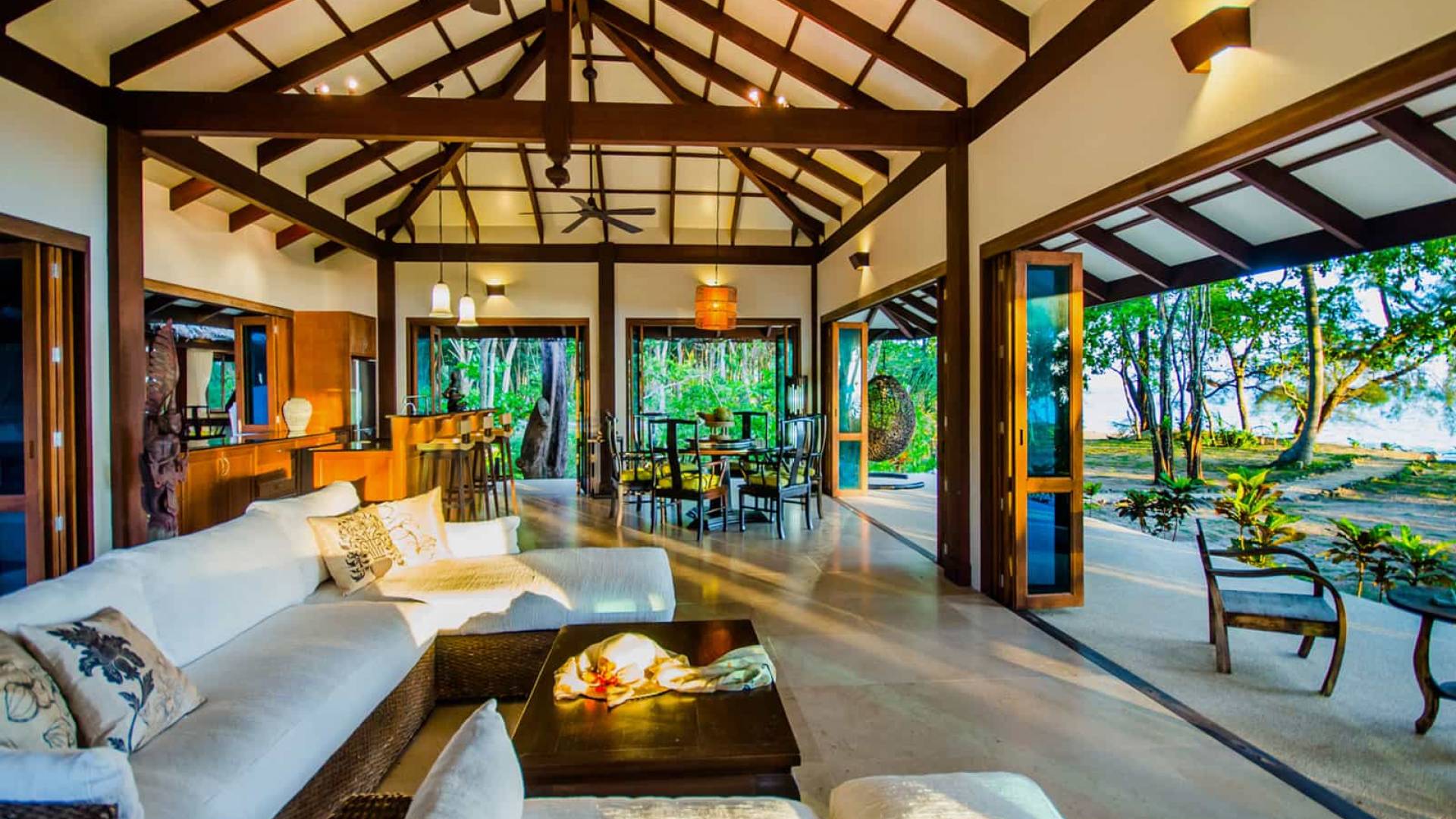 Baan Viva in den Koh Jum Beach Villas, die Strandvilla mit zwei Schlafzimmern bietet direkten Blick auf den berühmten Phi Phi National Marine Park und bietet einen privaten, üppigen tropischen Garten von zweitausend Quadratmetern, ein geräumiges Wohnzimmer mit offener Küche, und eine voll ausgestattete Bar. Baan Viva verfügt über zwei Doppelschlafzimmer, was es zu einer idealen Villa für Freunde und Familie macht, die etwas mehr Privatsphäre suchen.