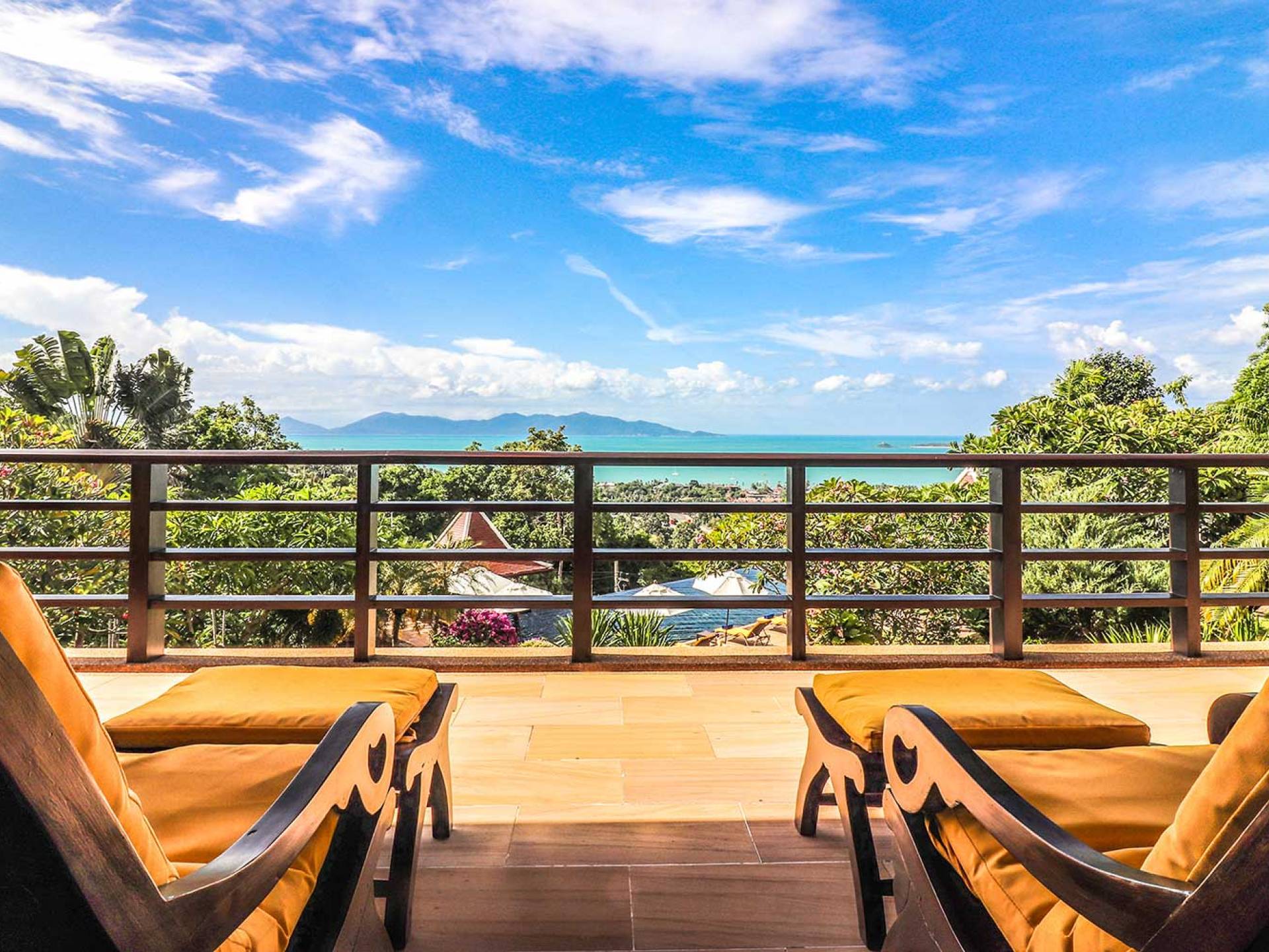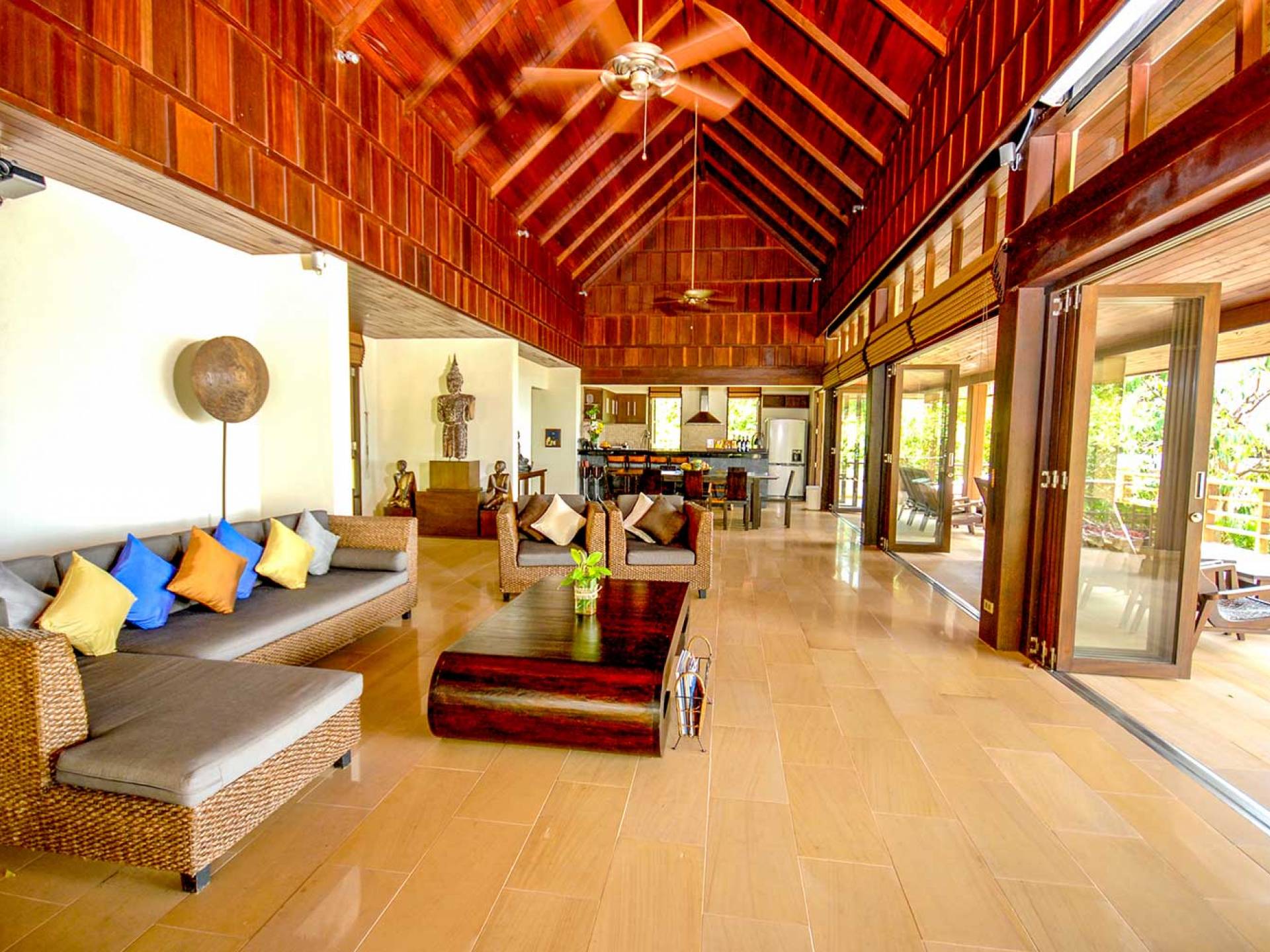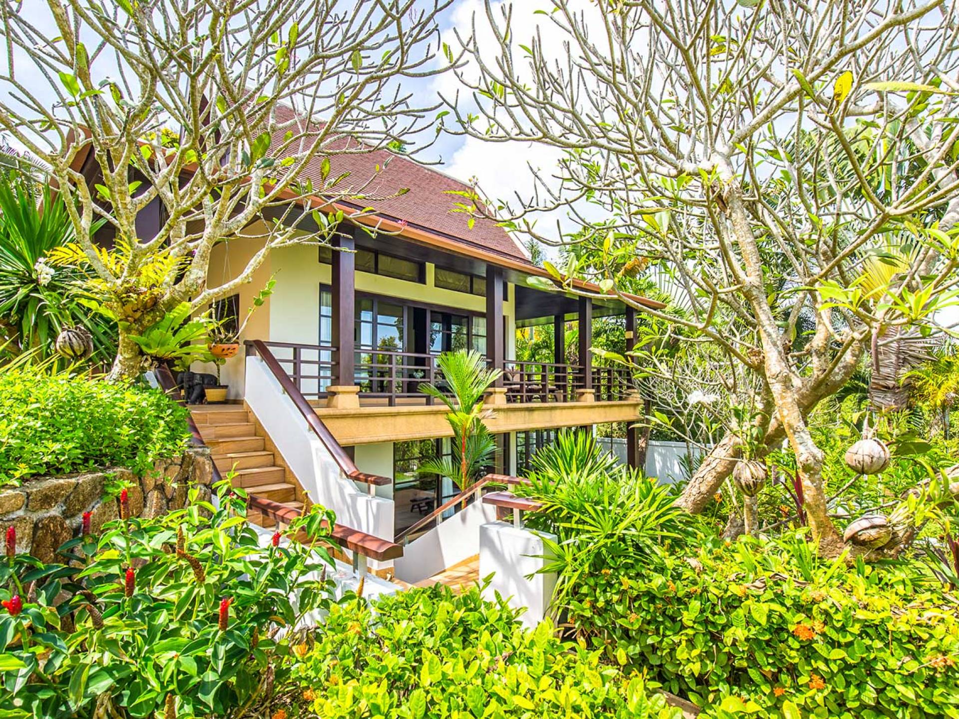 Ban Kinaree Samui besteht aus 3 separaten Pavillons, die in einer terrassierten Anlage mit üppiger und üppiger Gartenlandschaft harmonieren. Der kleinste Pavillon beherbergt ein Schlafzimmer; der größte und wichtigste Pavillon verfügt über das große Wohn-/Esszimmer/Küche sowie die 20-Meter-Terrasse mit Blick auf die Bophut-Bucht im ersten Stock, 2 Schlafzimmer befinden sich im Erdgeschoss; Der dritte Pavillon beherbergt das Hauptschlafzimmer und das 5. Schlafzimmer im Erdgeschoss.