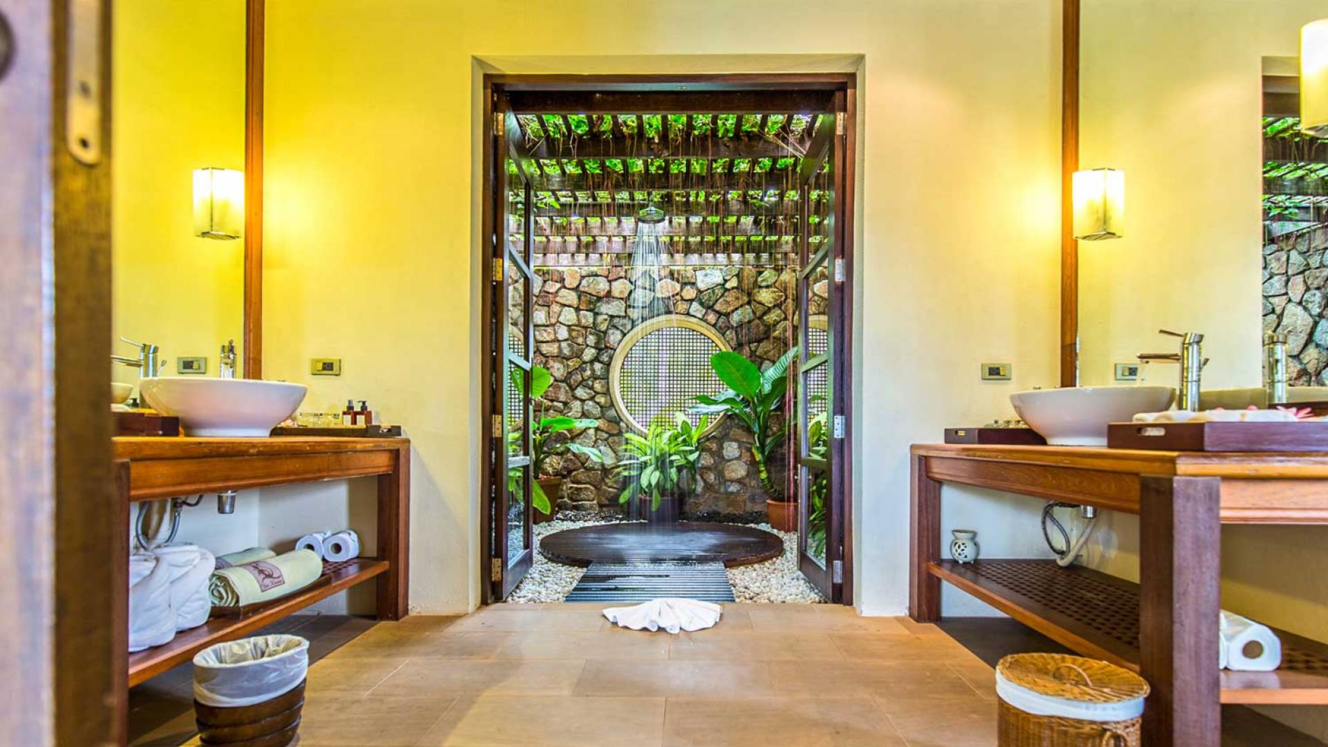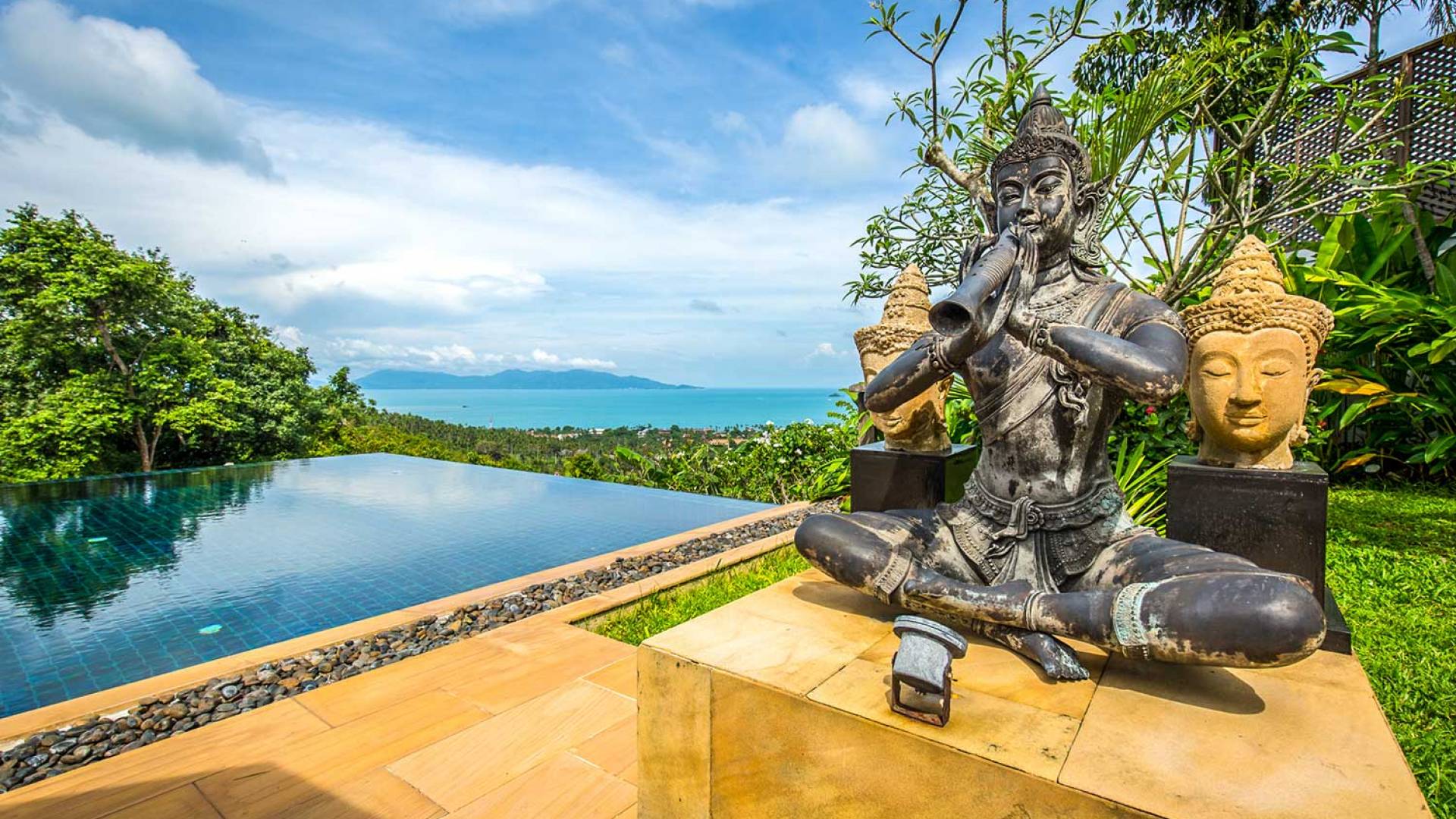 Das Ban Kinaree Samui liegt im Herzen der Ruhe in den Hügeln von Bophut und bietet eine idyllische Balance zwischen zeitgenössischer Pracht und thailändisch-balinesischer Zeitlosigkeit. Der begehbare Eingangsbereich mit seiner aus Massivholz geschnitzten Tür und Wasserspielen verströmt die Atmosphäre vom ersten Schritt in die Villa.