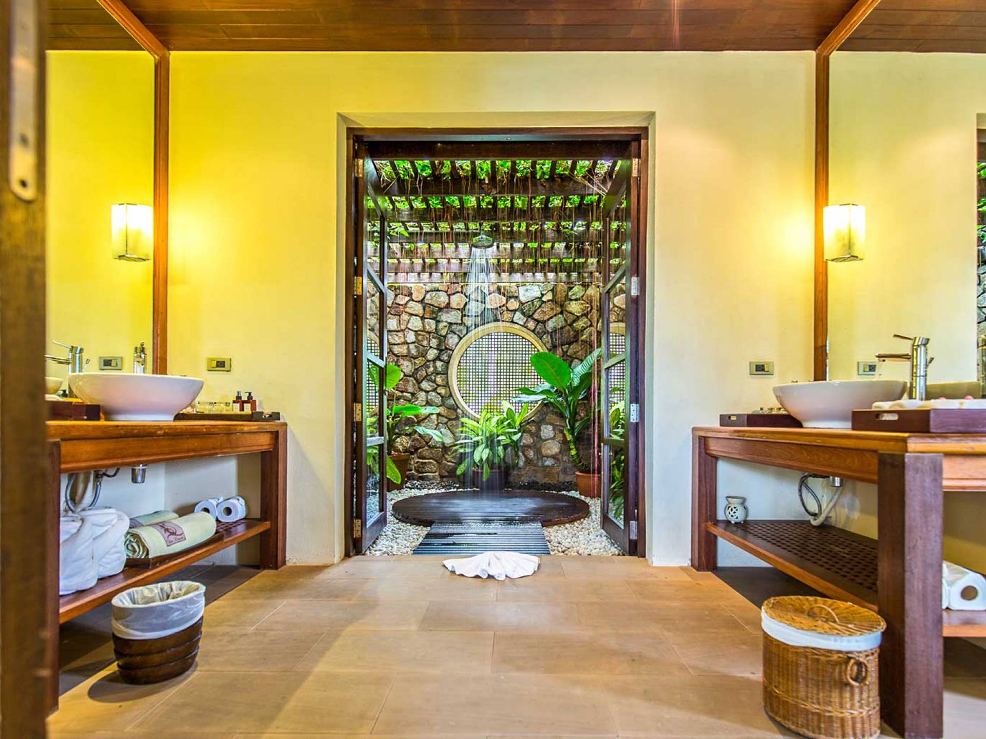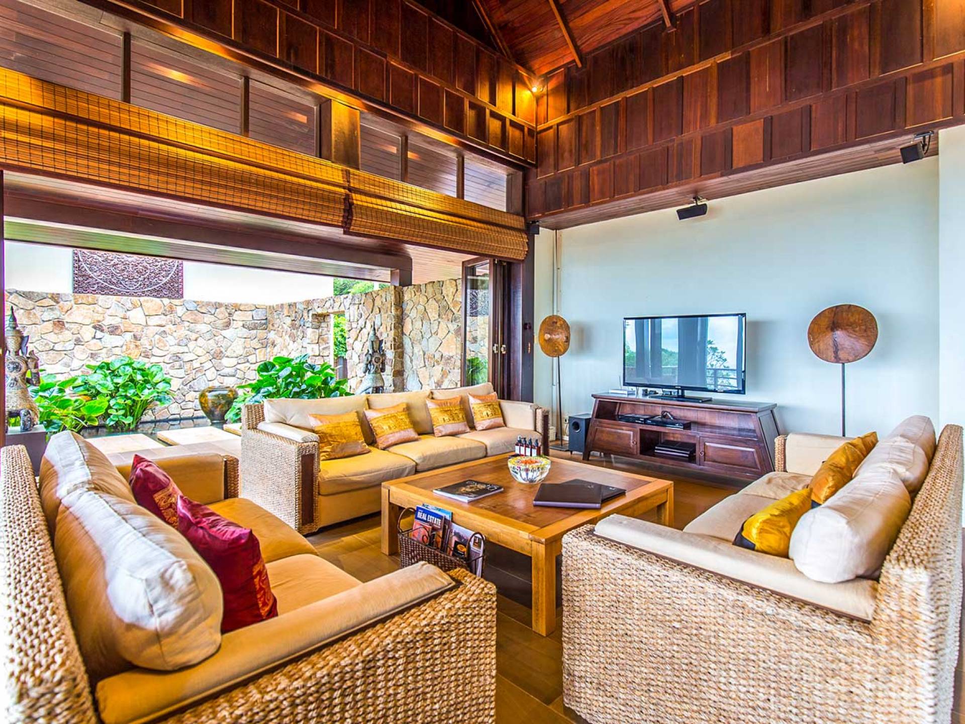 Die Aufteilung des Anwesens und der Garten bieten auf Wunsch sowohl viel Privatsphäre als auch Komfort für alle und ermöglichen auch großartige Unterhaltung, wenn sie als komplette Residenz geöffnet werden. Jedes der Schlafzimmer wurde so gestaltet, dass es optimalen Komfort und Privatsphäre bietet, indem es einen übergroßen Schlafbereich und großartige Badezimmer mit Dusche und großer Badewanne bietet. Alle Schlafzimmer sind mit TV und DVD-Player sowie durchgehenden Schiebetüren mit Meerblick ausgestattet.