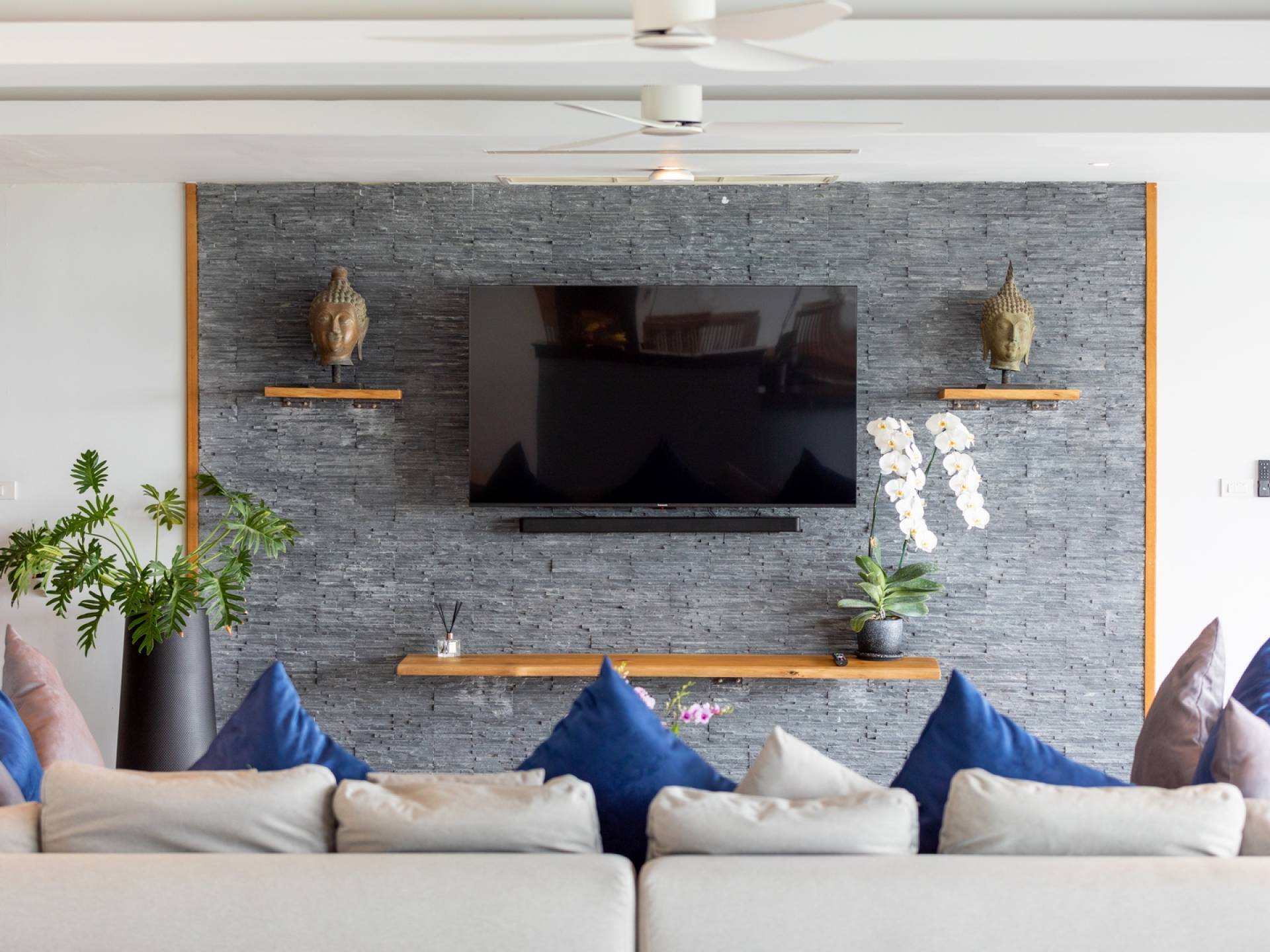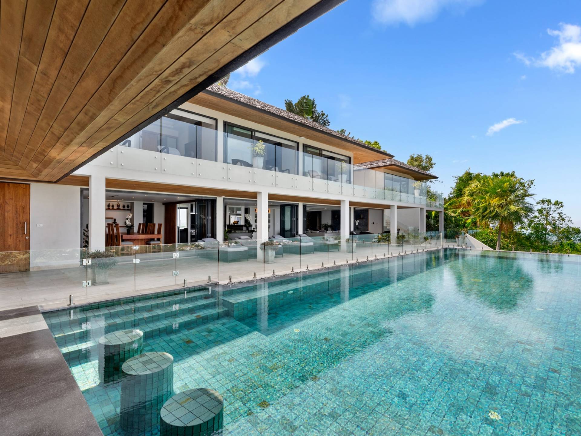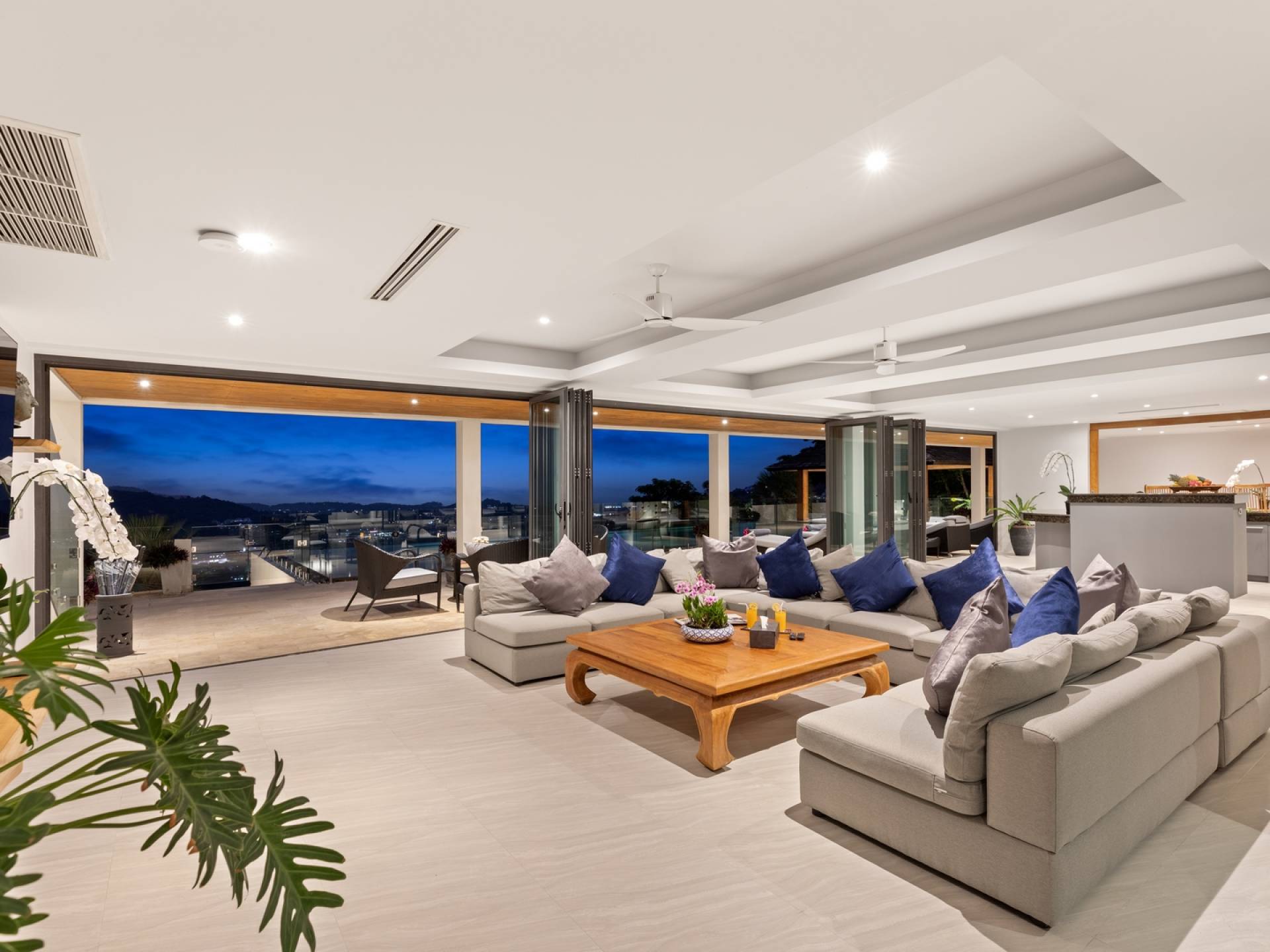 Villa Grand View Samui wurde von einem preisgekrönten Architekten aus Hongkong entworfen, um den idealen offenen Lebensstil zu schaffen und gleichzeitig ein hohes Maß an Privatsphäre zu wahren. Auf dem Bophut Hill gelegen und vom öffentlichen Zugang abgeschottet, haben die Gäste die Möglichkeit, sich zu entspannen und ungestört zu entspannen, weit weg von der Hektik der belebten Straßen. Eine atemberaubende Vielfalt an tropischem Gartenleben kann in der gesamten Villa gedeihen, die von Wasserfällen und einem Kaktusgarten ergänzt wird.