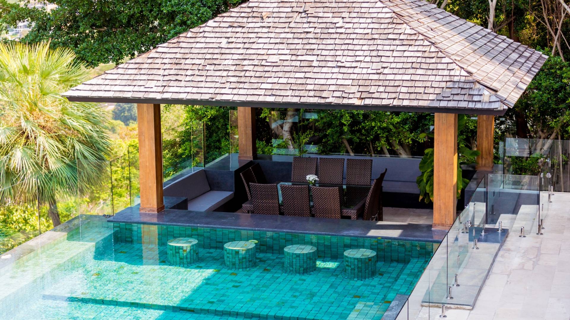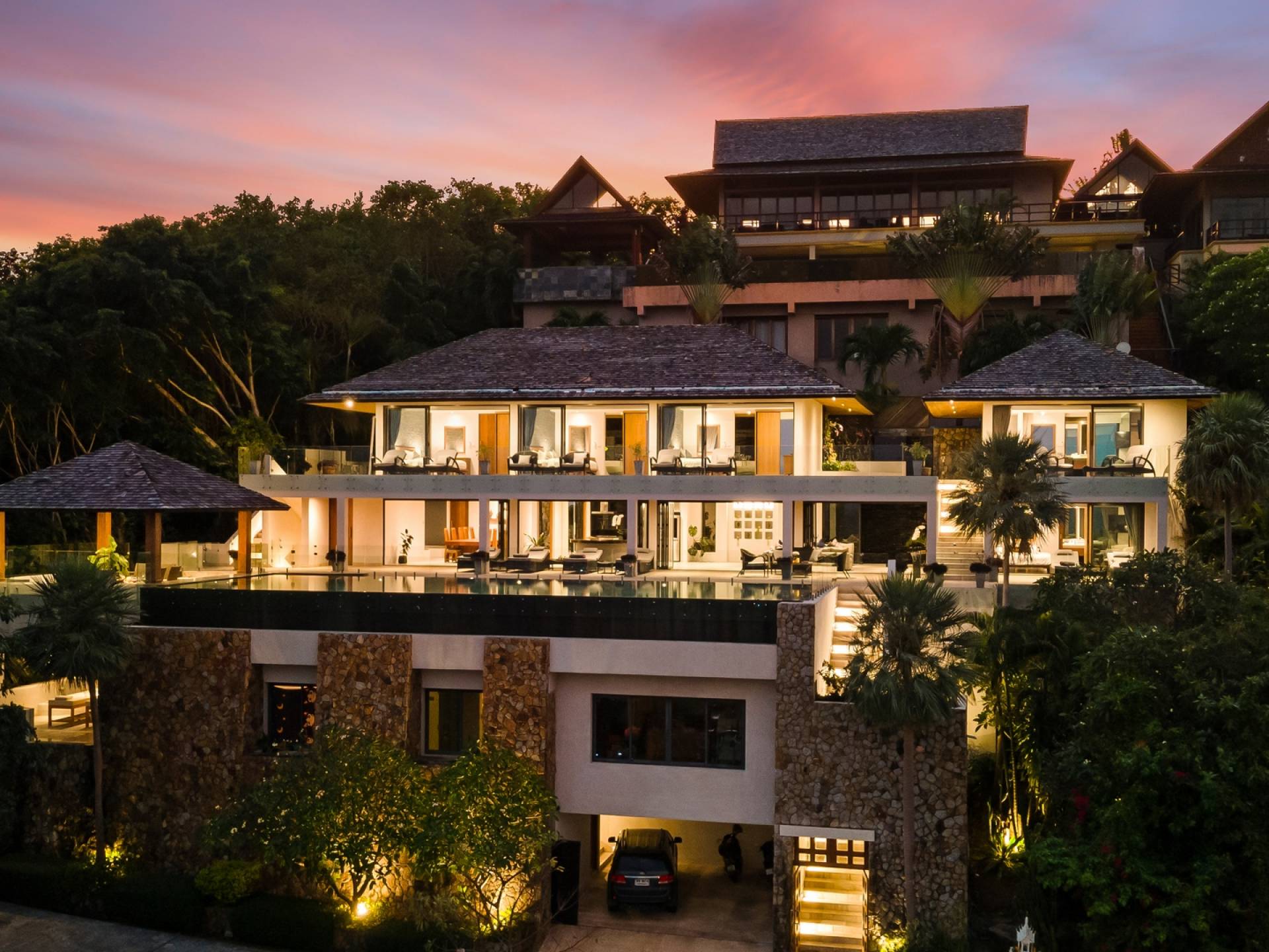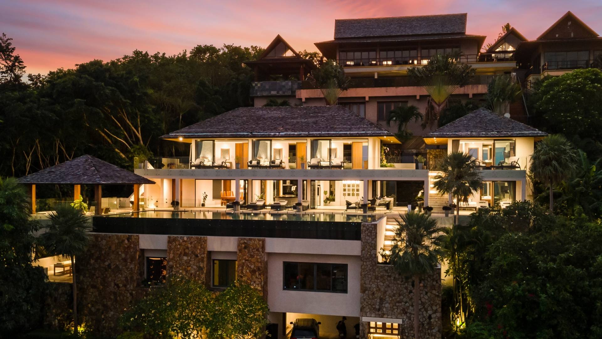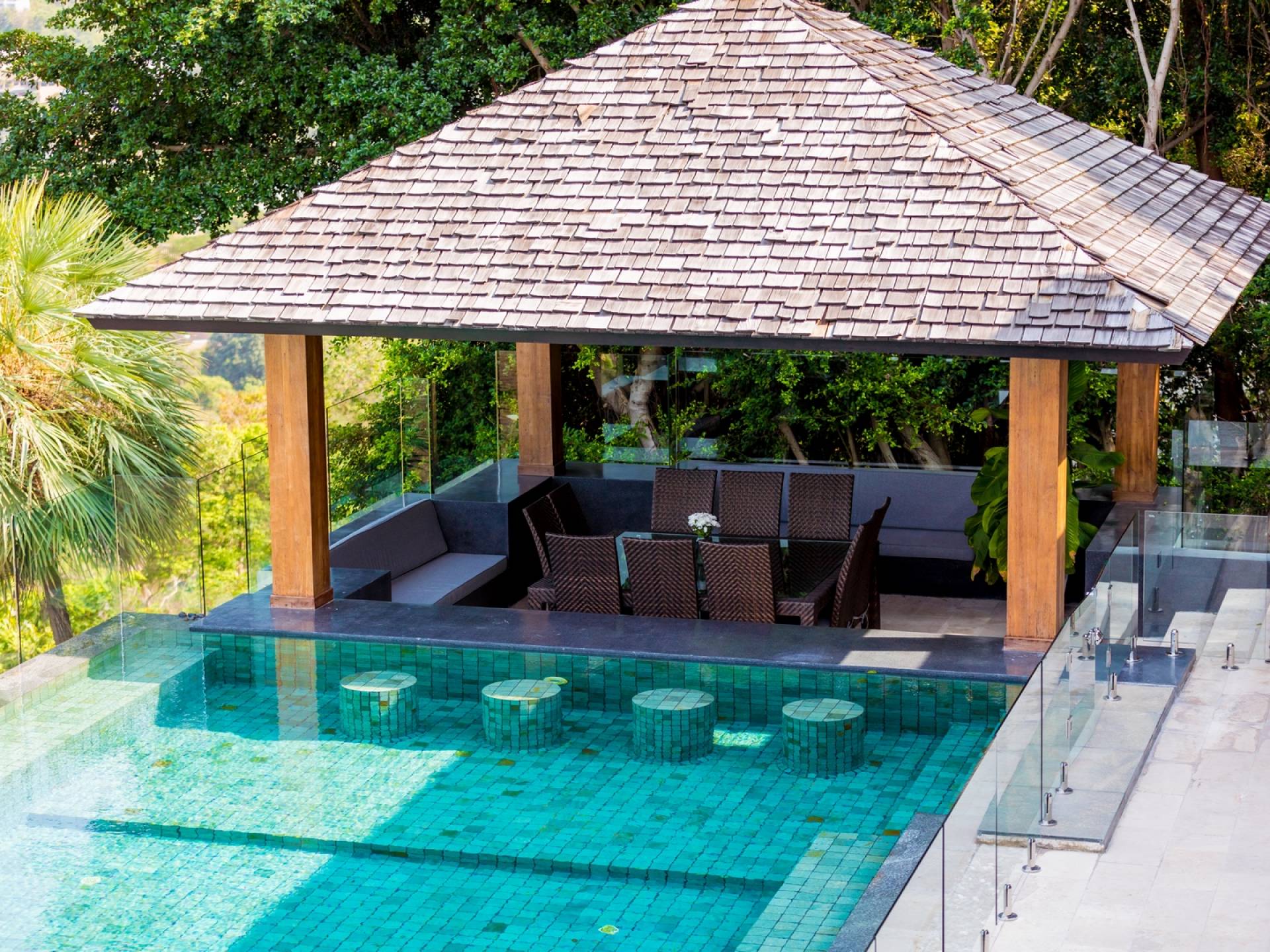 Villa Grand View Samui wurde von einem preisgekrönten Architekten aus Hongkong entworfen, um den idealen offenen Lebensstil zu schaffen und gleichzeitig ein hohes Maß an Privatsphäre zu wahren. Auf dem Bophut Hill gelegen und vom öffentlichen Zugang abgeschottet, haben die Gäste die Möglichkeit, sich zu entspannen und ungestört zu entspannen, weit weg von der Hektik der belebten Straßen. Eine atemberaubende Vielfalt an tropischem Gartenleben kann in der gesamten Villa gedeihen, die von Wasserfällen und einem Kaktusgarten ergänzt wird.