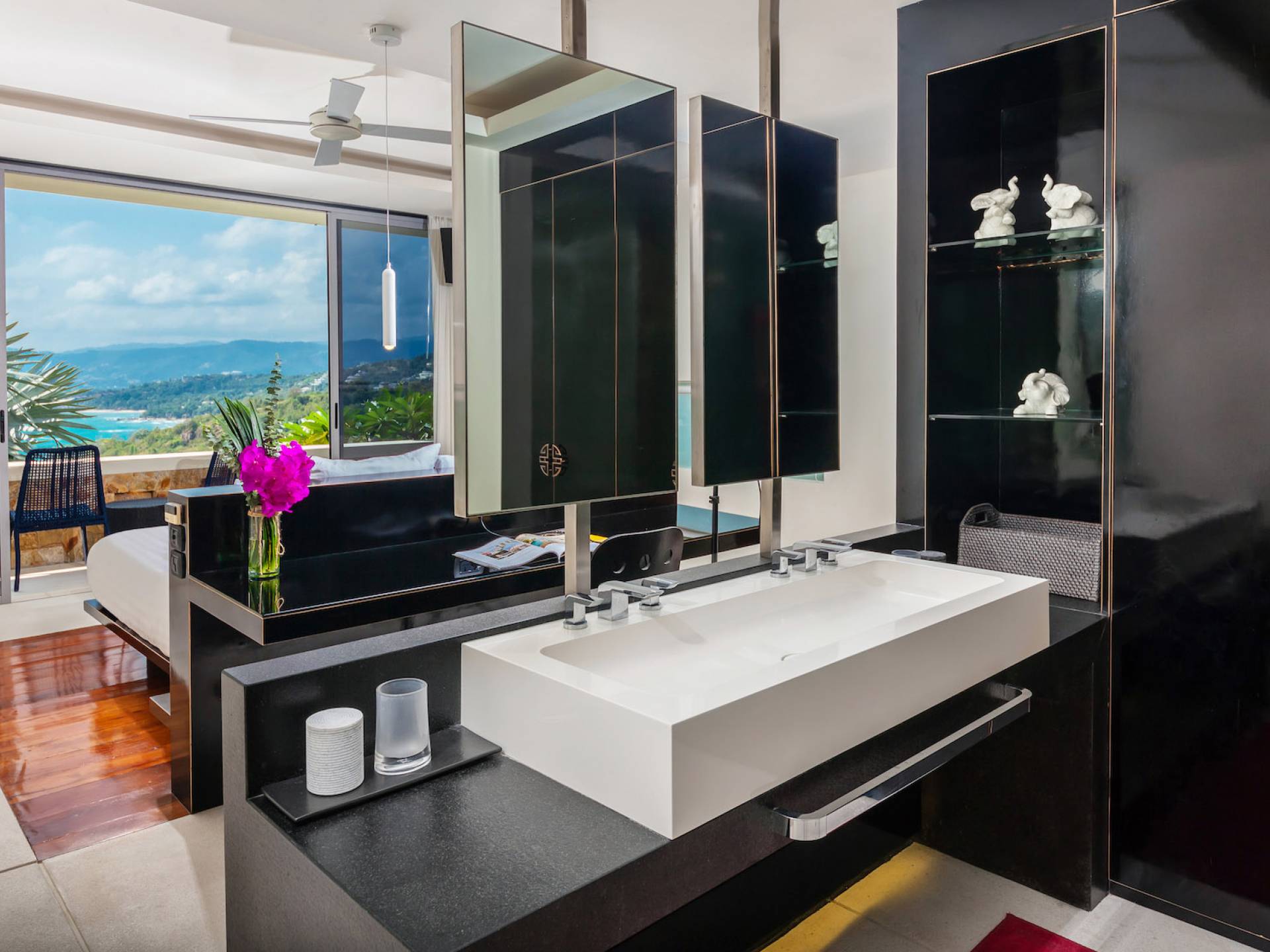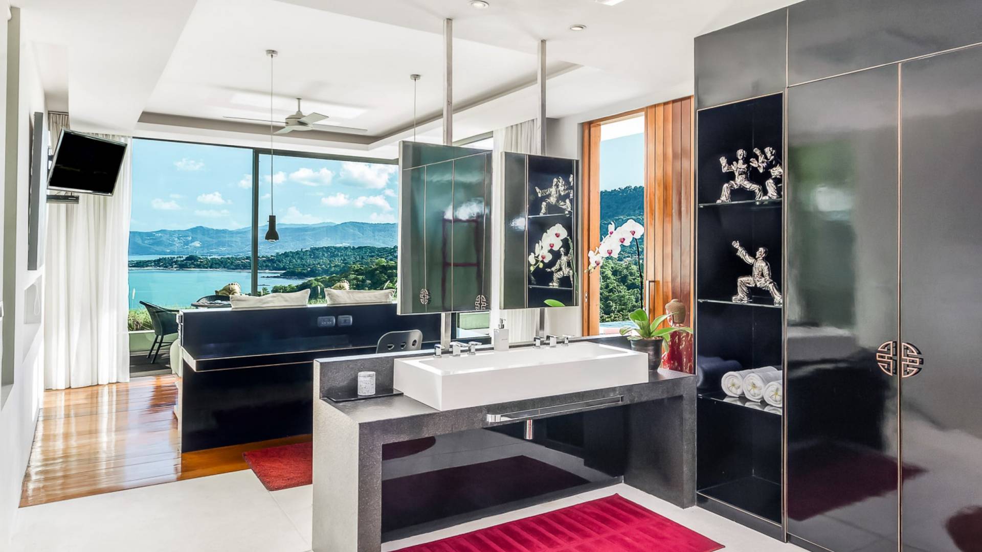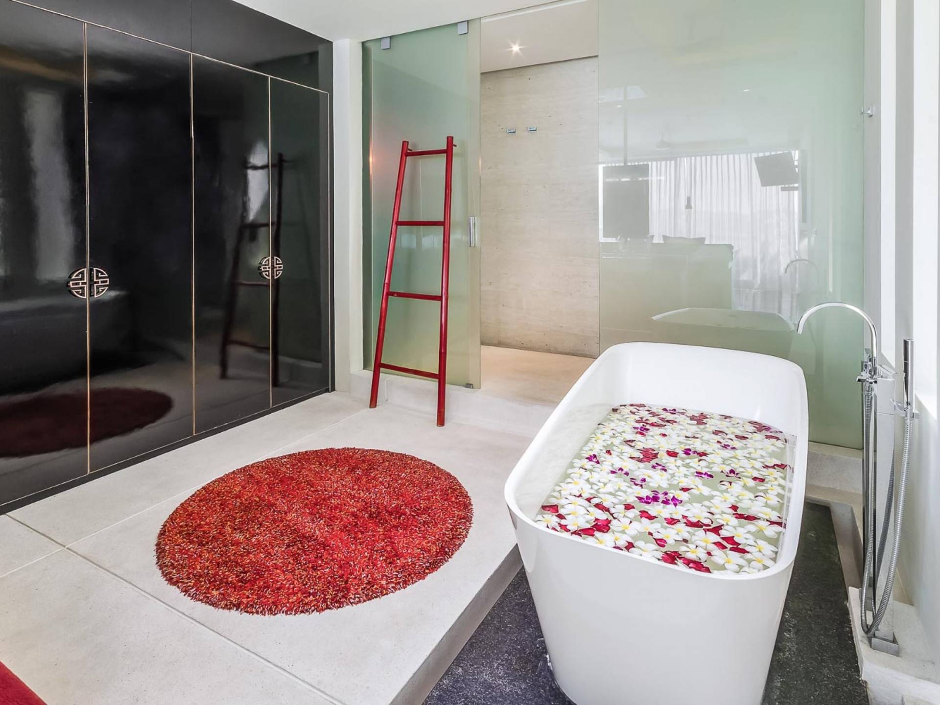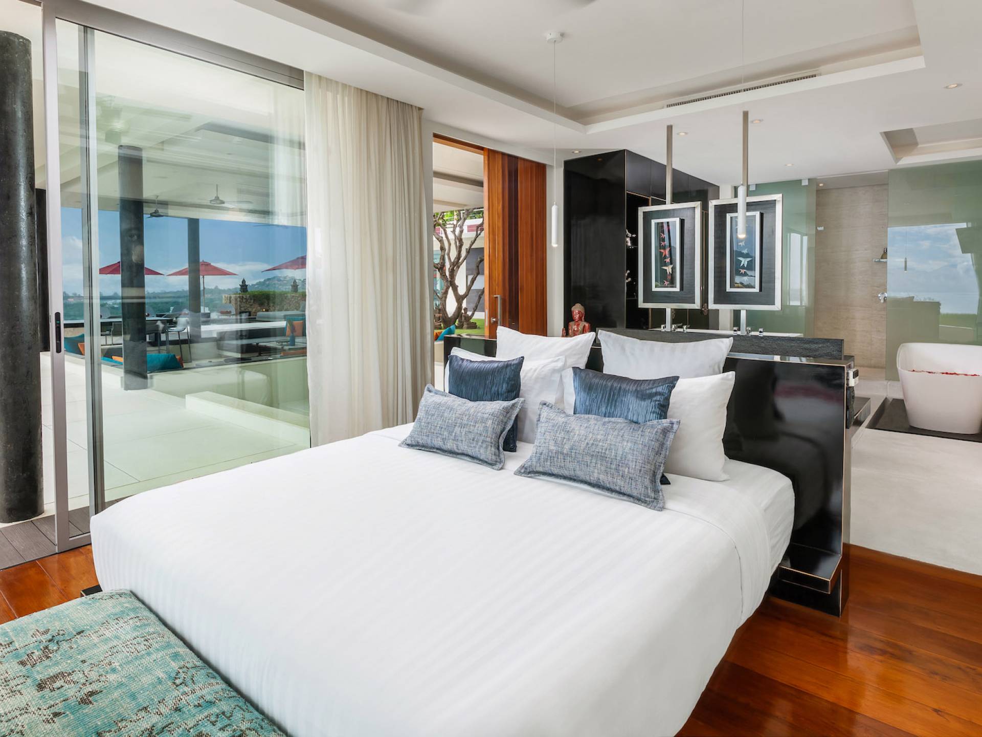 Der prächtige Eingang führt Sie in die Hauptebene oder „Pool-Ebene“ der Villa. Wenn Sie also durch die Vordertüren gehen, werden Sie mit einem atemberaubenden Blick konfrontiert, der Ihre Augen über den begrünten Innenhof, durch den Frangipani-Baum, über das versunkene Wohnzimmer und einen Teil des Pools in die herrliche Bucht und den dahinter liegenden Ozean führt . Das Esszimmer befindet sich auf einem Teil des Pools, der sich dann um die Bar und das Wohnzimmer windet und auf der Terrasse von Bett 1 endet. Sonnendecks sind um den Pool herum angeordnet, alle mit 180-Grad-Blick auf das Meer, die Berge und die Kokosnuss Felder, die man am besten liegend auf der riesigen, auf dem Wasser schwimmenden Liegeinsel genießt. Das versunkene Wohnzimmer ist von Tagesbetten umgeben, wobei die Bar an einem Ende über der Terrasse am Pool thront. Das voll ausgestattete Fitnessstudio blickt auf den Innenhof und den Pool und ist so positioniert, dass Sie sich angemessen schuldig fühlen, wenn Sie mit einem Cocktail in Reichweite am Pool liegen.