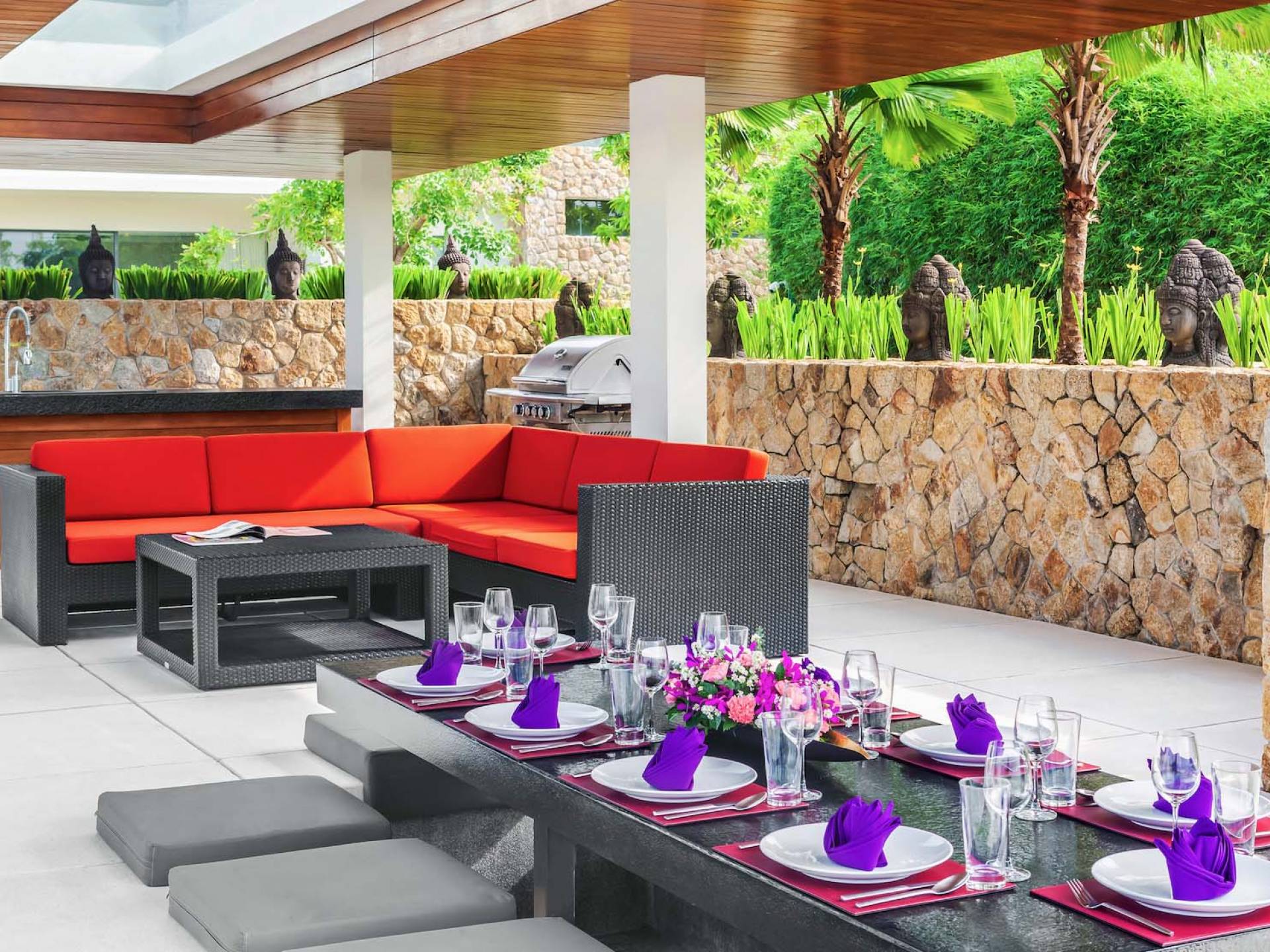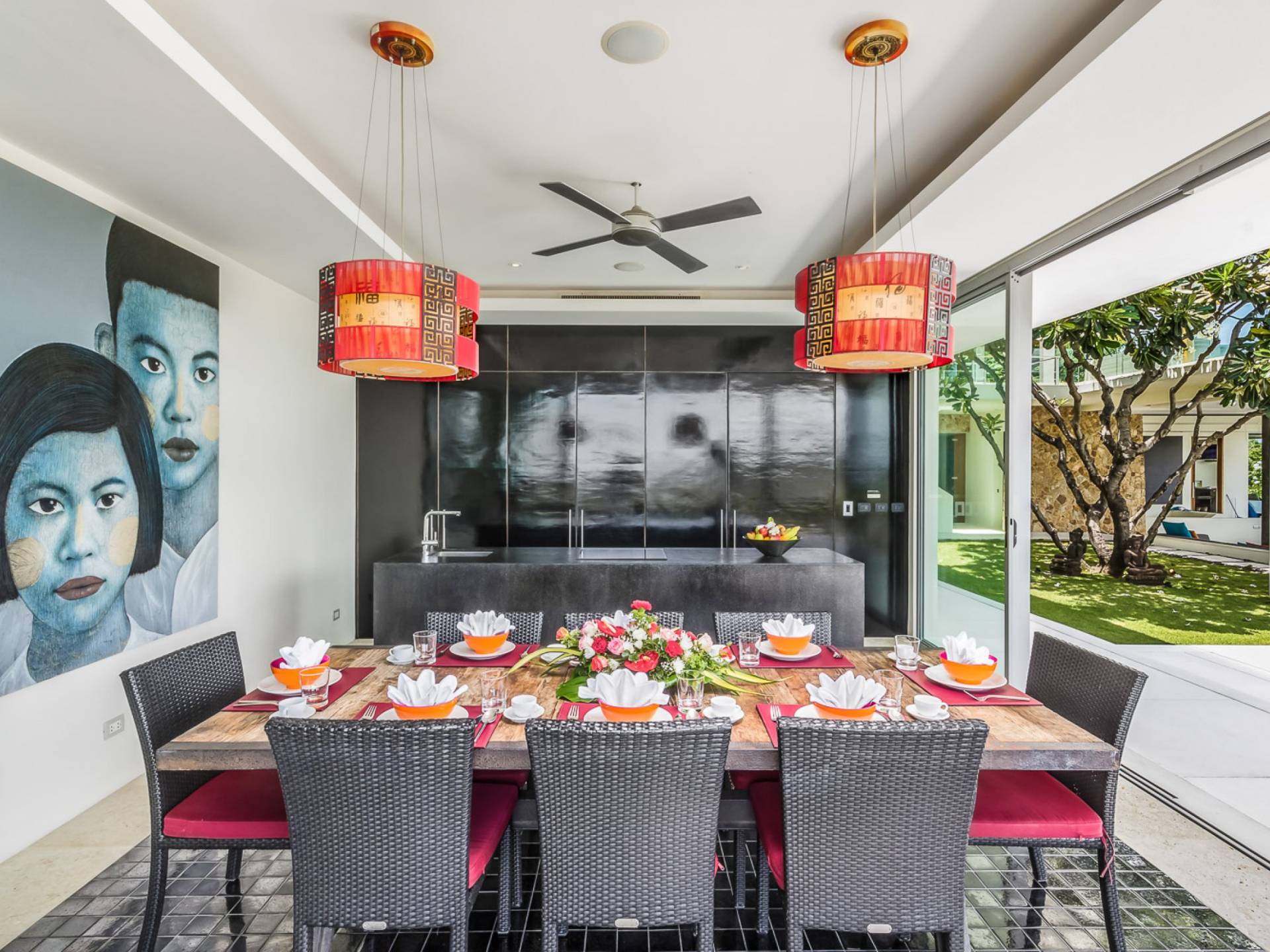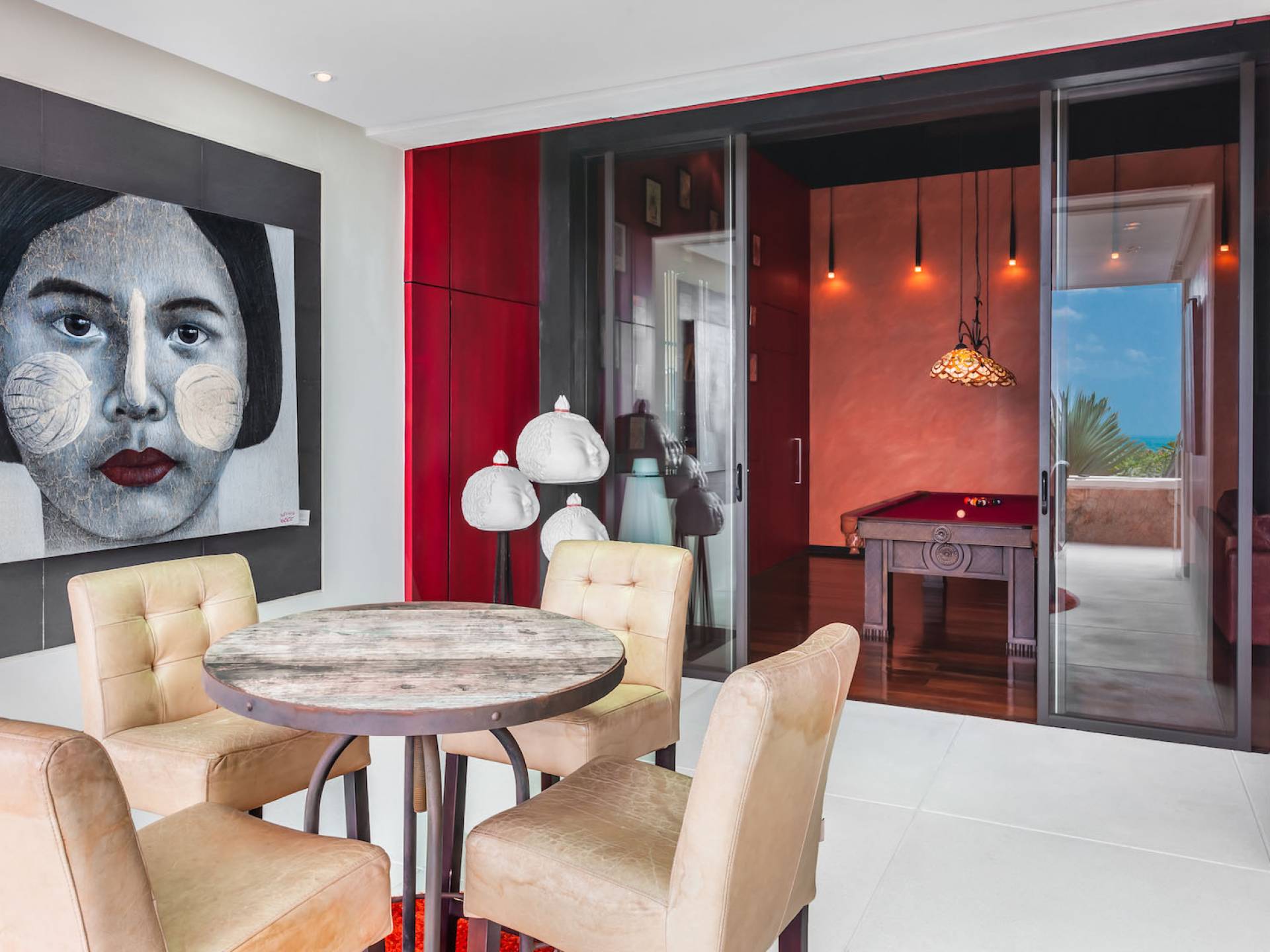 Der Infinity-Pool der Villa ist erwähnenswert. Es wird Sie mit einem sehr majestätischen Blick auf die fantastischen Strände und die darunter liegende Landschaft verwöhnen. Sie können sich auf der Veranda am Pool entspannen, während Sie sich sonnen, ein Buch lesen oder Ihren Champagner trinken. Es gibt auch eine Lounge im Freien, in der Sie Ihre Gäste unterhalten können. Kostenloses WLAN ist in allen Zimmern verfügbar. Die Villa Sangkachai Samui bietet auch ein Fitnessstudio, ein hochmodernes Kino und einen voll ausgestatteten Billardtisch. Wenn Sie und Ihre Gäste Yoga-Enthusiasten sind, kann der Manager einen professionellen Yoga-Guru arrangieren, der Sie alle zu einer entspannenden Yoga-Sitzung führt. Sie können auch auf die Dienste einer professionellen thailändischen Masseurin zurückgreifen. Es steht ein persönlicher Koch zur Verfügung, der traditionelle thailändische Gourmetgerichte nach jedem Geschmack und Vorlieben zubereiten kann. Die Villa Sangkachai Samui verfügt über ein grasbedecktes Dach mit einem Grill.
