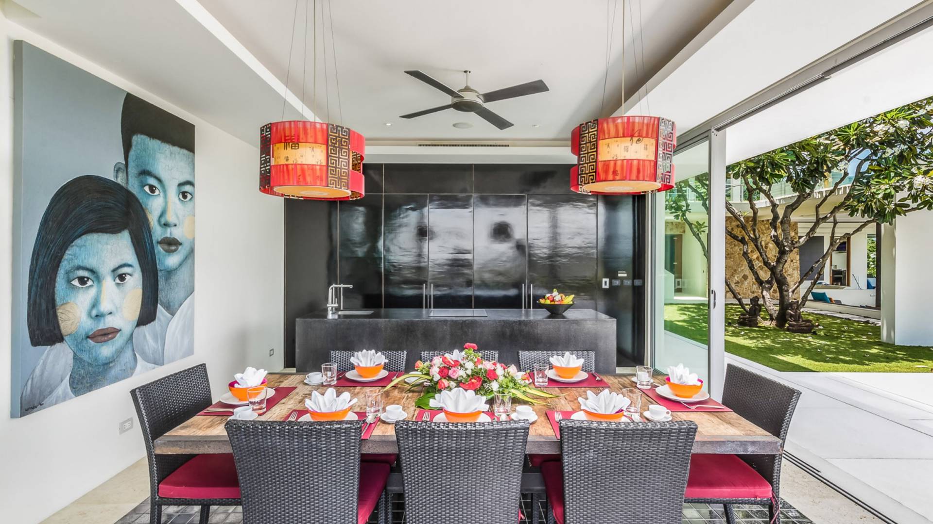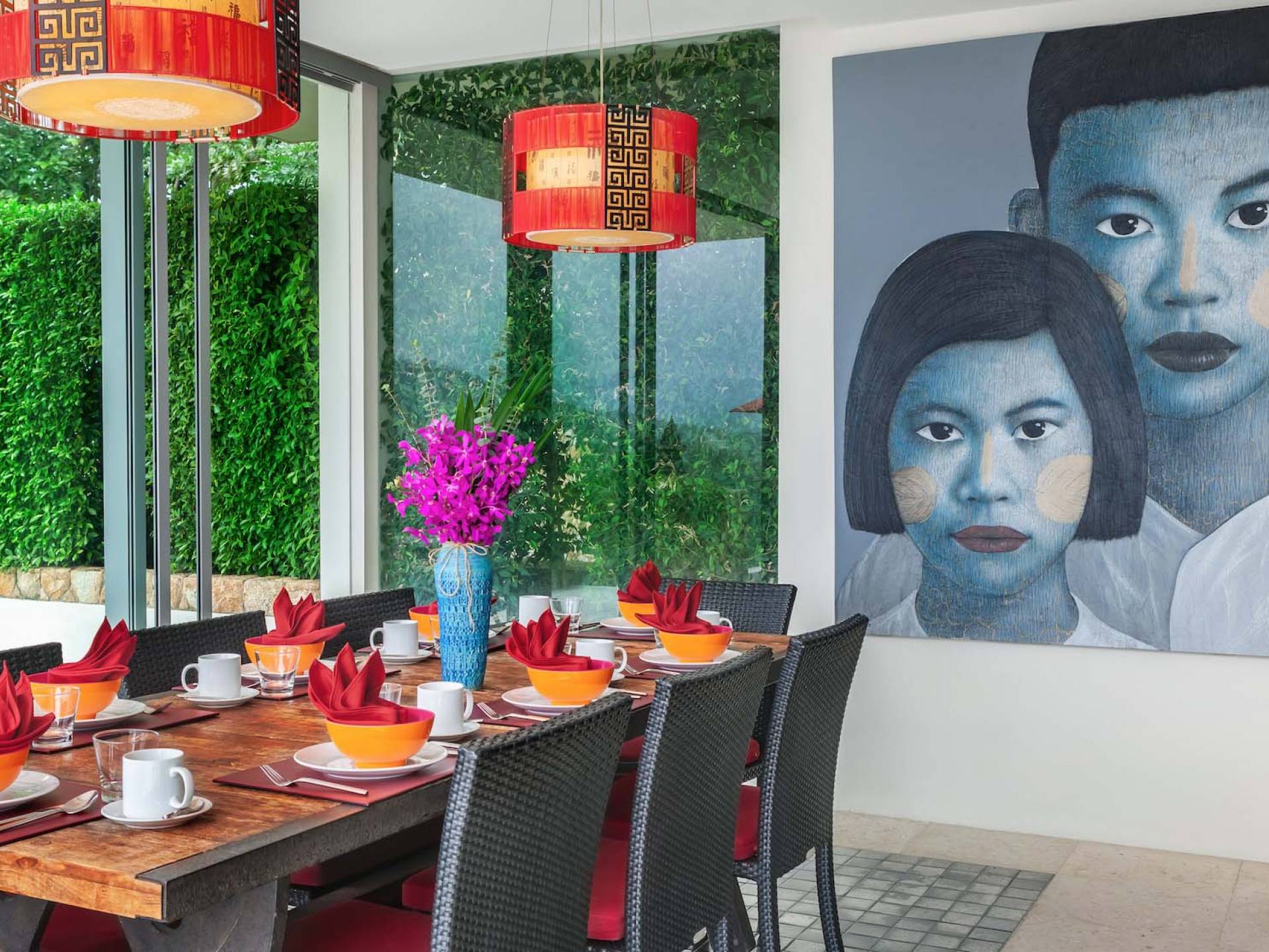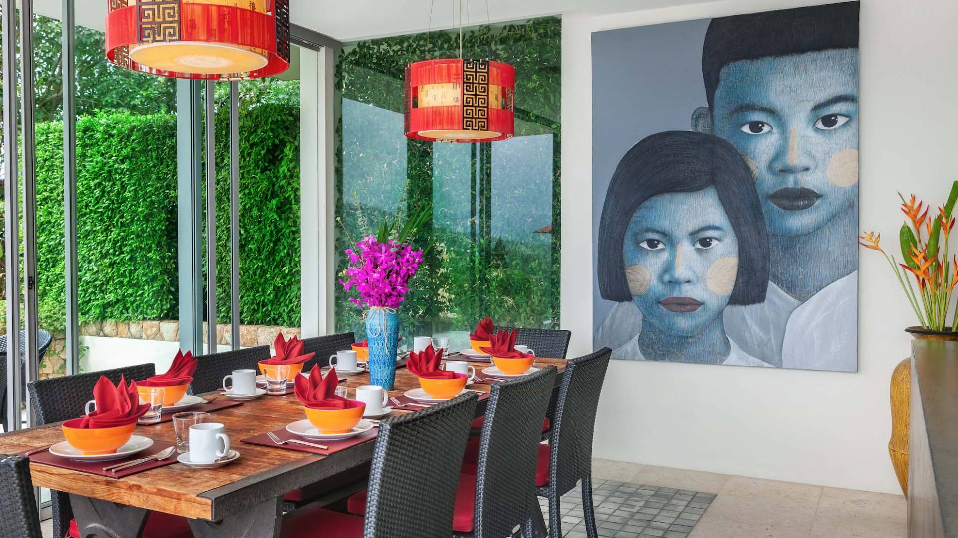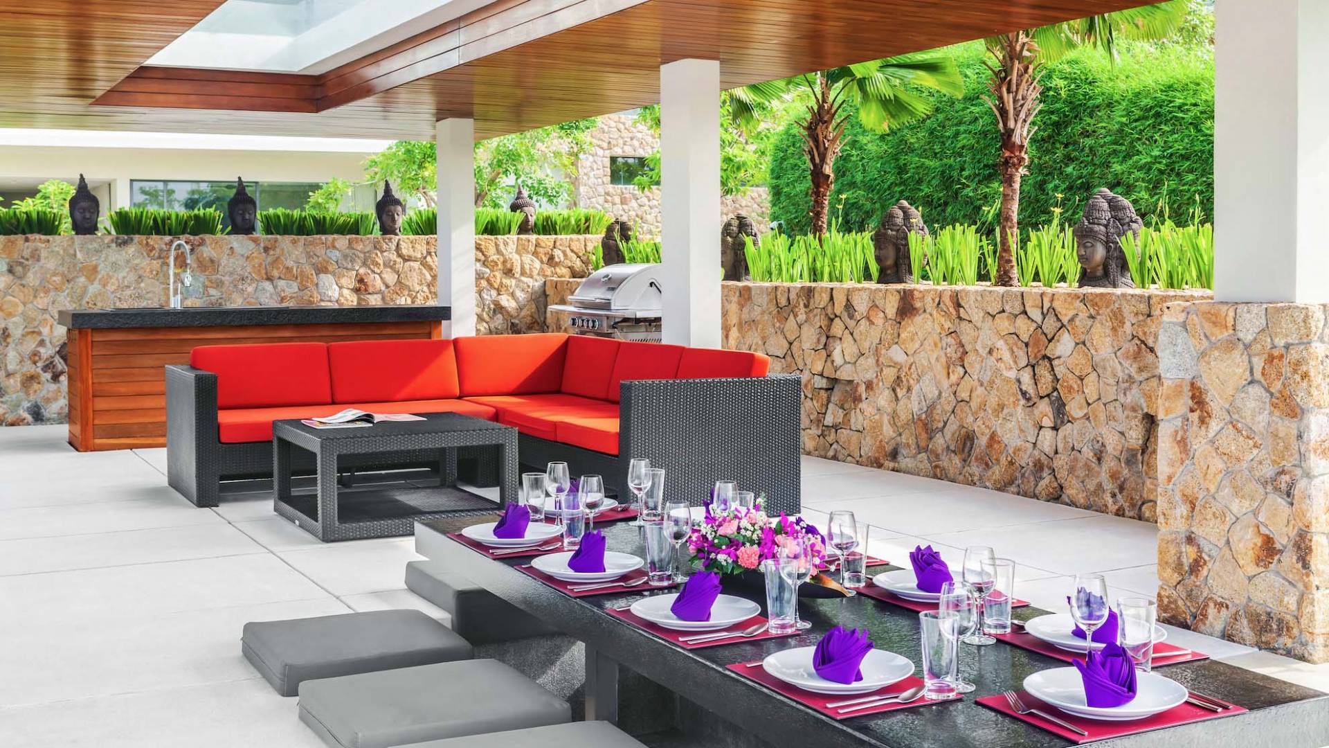 Der Infinity-Pool der Villa ist erwähnenswert. Es wird Sie mit einem sehr majestätischen Blick auf die fantastischen Strände und die darunter liegende Landschaft verwöhnen. Sie können sich auf der Veranda am Pool entspannen, während Sie sich sonnen, ein Buch lesen oder Ihren Champagner trinken. Es gibt auch eine Lounge im Freien, in der Sie Ihre Gäste unterhalten können. Kostenloses WLAN ist in allen Zimmern verfügbar. Die Villa Sangkachai Samui bietet auch ein Fitnessstudio, ein hochmodernes Kino und einen voll ausgestatteten Billardtisch. Wenn Sie und Ihre Gäste Yoga-Enthusiasten sind, kann der Manager einen professionellen Yoga-Guru arrangieren, der Sie alle zu einer entspannenden Yoga-Sitzung führt. Sie können auch auf die Dienste einer professionellen thailändischen Masseurin zurückgreifen. Es steht ein persönlicher Koch zur Verfügung, der traditionelle thailändische Gourmetgerichte nach jedem Geschmack und Vorlieben zubereiten kann. Die Villa Sangkachai Samui verfügt über ein grasbedecktes Dach mit einem Grill.