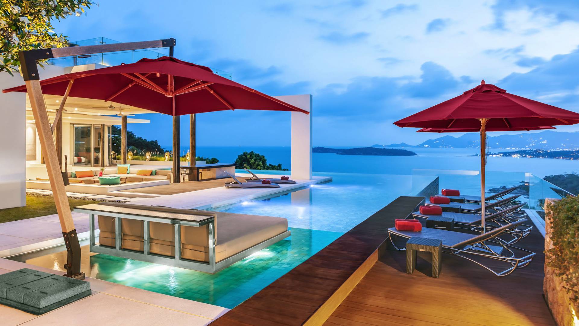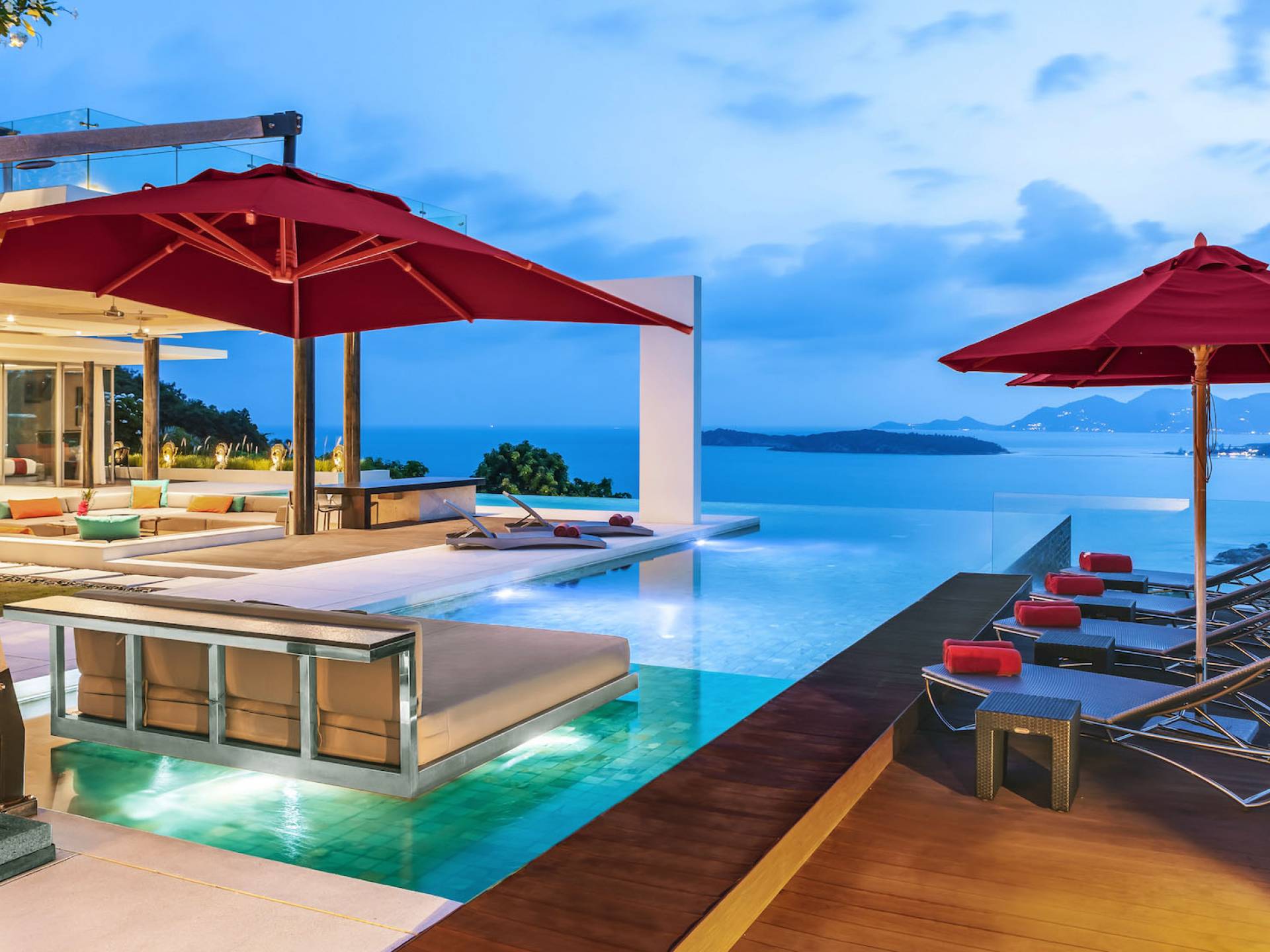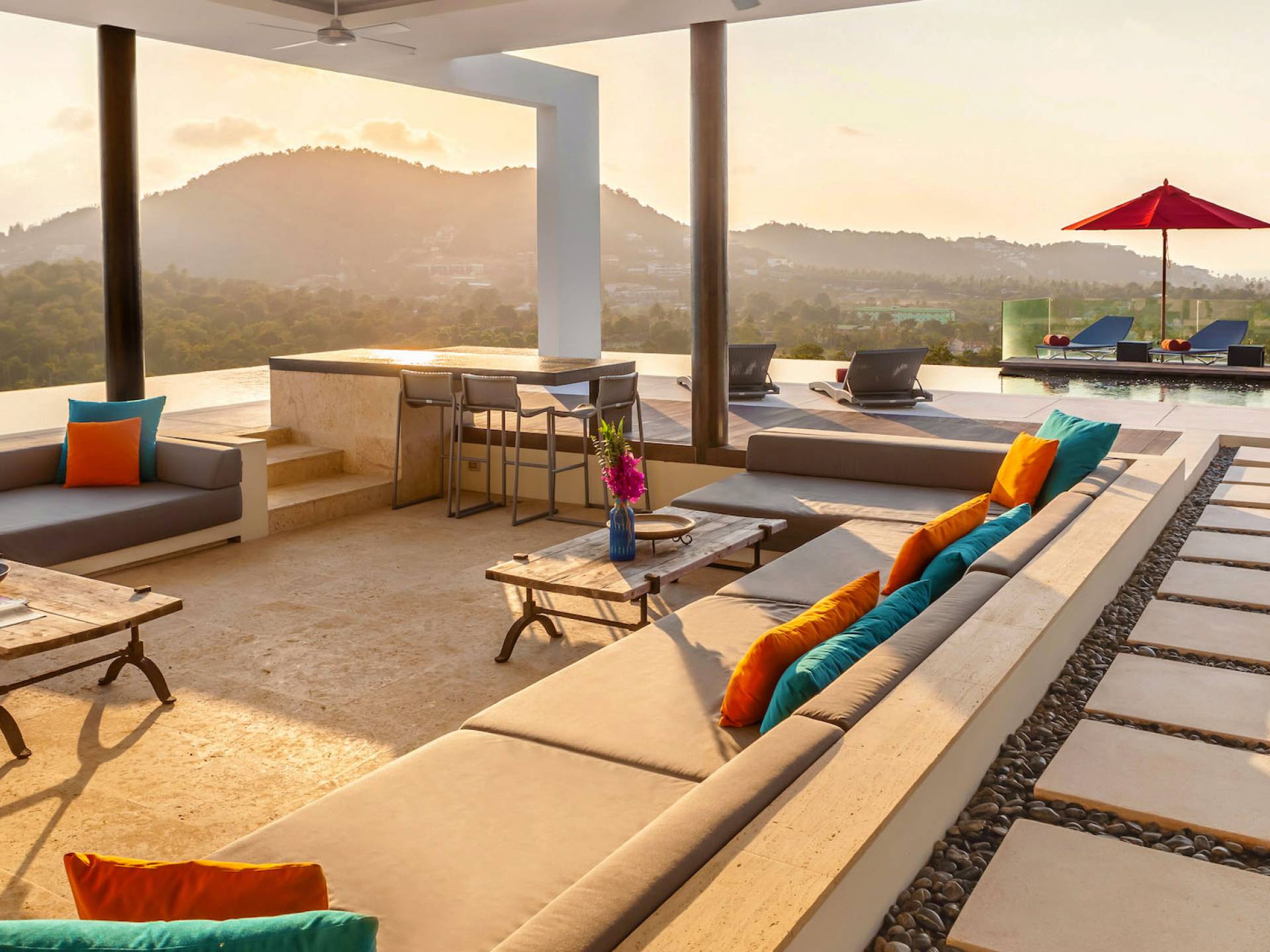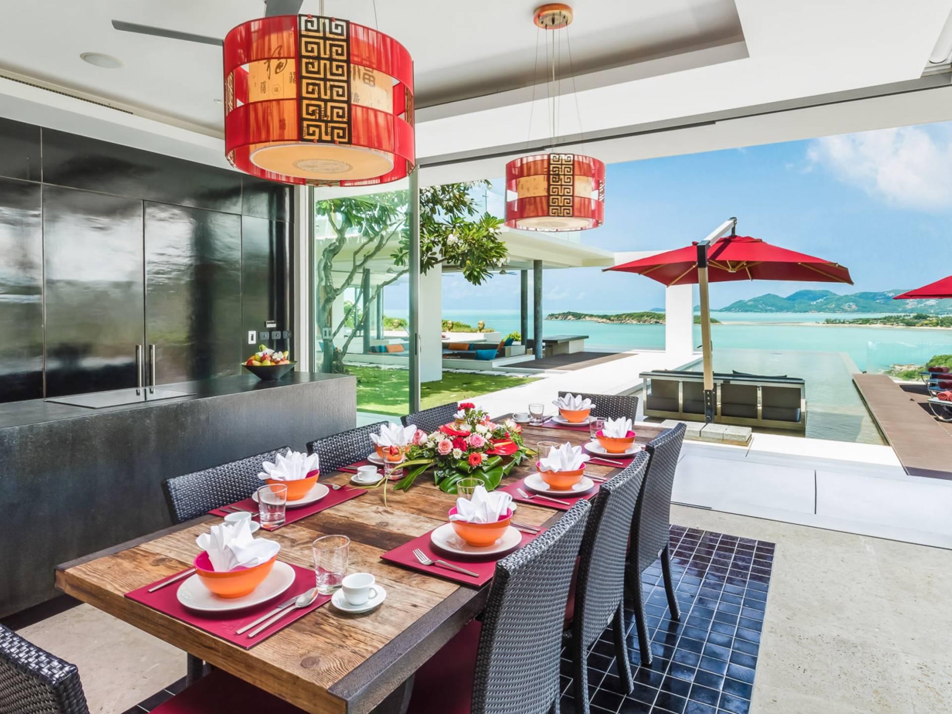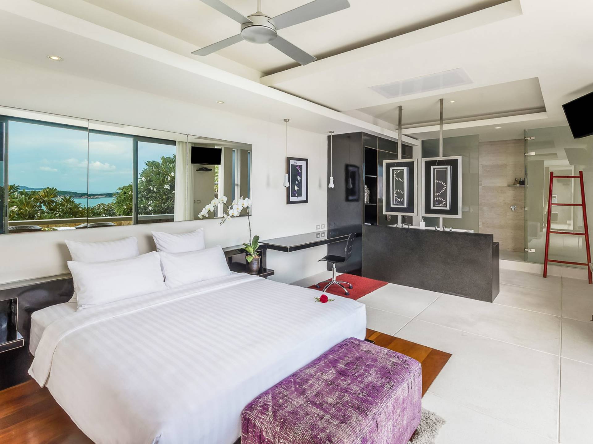 Villa Sangkachai Samui ist eine Luxusvilla mit 4 Schlafzimmern und einem privaten Pool. Das Hotel liegt auf einer der bezauberndsten Inseln Thailands, der Villa Sangkachai. Es ist die perfekte Wahl für einen romantischen Urlaub oder einen Familienurlaub. 8 Gäste können bequem in der Villa untergebracht werden. Alle 4 Suiten sind geschmackvoll in einem modernen, sauberen Stil eingerichtet. Sie sind auch gut ausgestattet mit Kingsize-Betten, hochwertiger Bettwäsche, Deckenventilatoren und Klimaanlage für die Sommerhitze sowie Flachbildfernsehern. Die Suiten sind außerdem mit modernen Badezimmern ausgestattet. Jede Suite verfügt außerdem über eine separate Terrasse, von der aus Sie einen atemberaubenden Blick auf den Pool und das Meer genießen können.