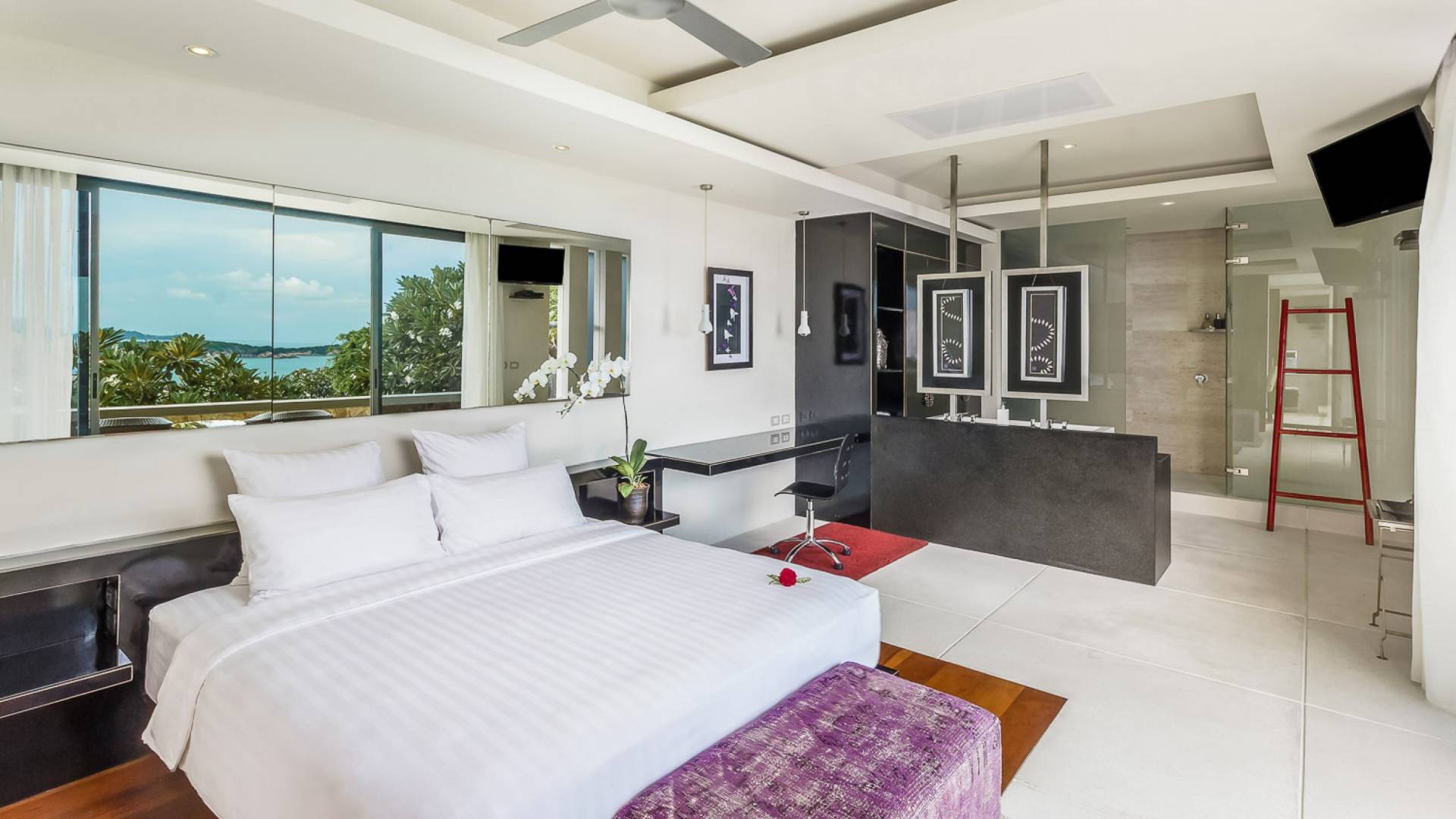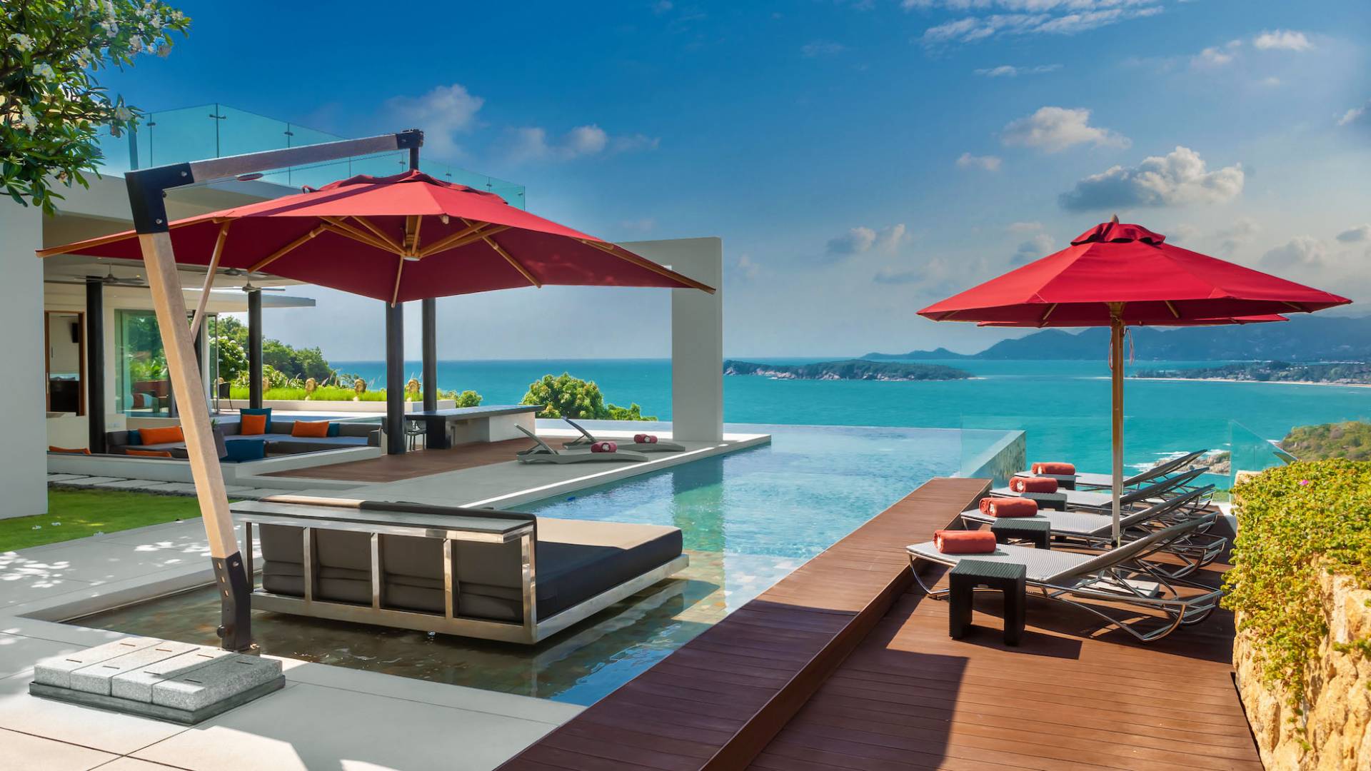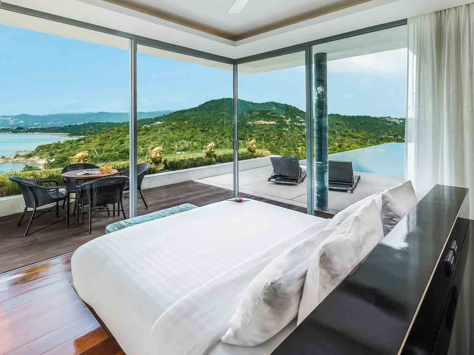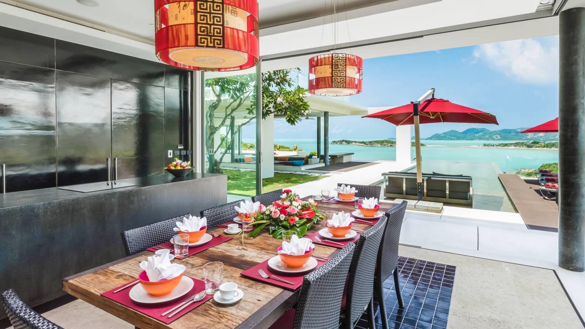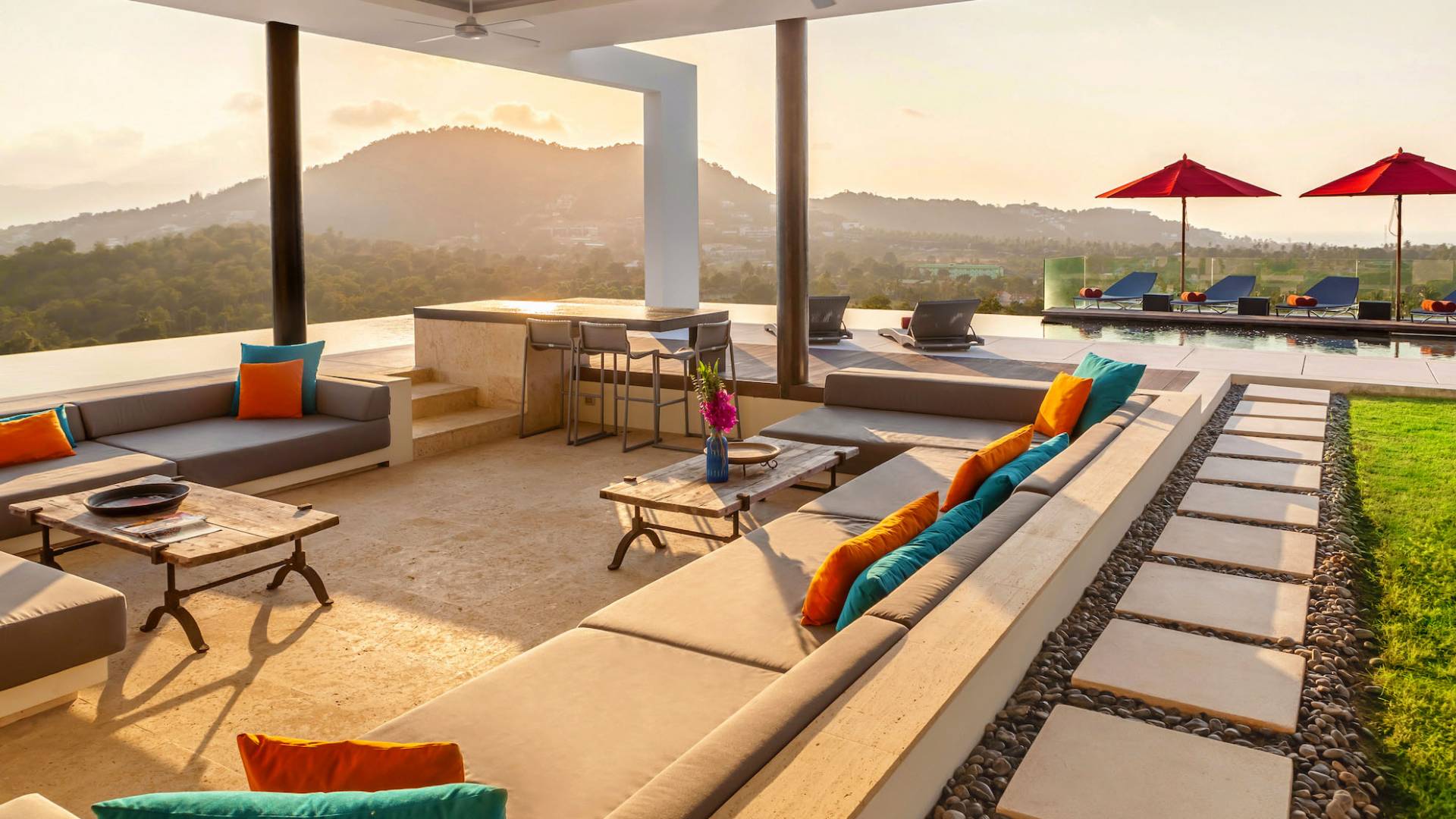 Villa Sangkachai Samui ist eine Luxusvilla mit 4 Schlafzimmern und einem privaten Pool. Das Hotel liegt auf einer der bezauberndsten Inseln Thailands, der Villa Sangkachai. Es ist die perfekte Wahl für einen romantischen Urlaub oder einen Familienurlaub. 8 Gäste können bequem in der Villa untergebracht werden. Alle 4 Suiten sind geschmackvoll in einem modernen, sauberen Stil eingerichtet. Sie sind auch gut ausgestattet mit Kingsize-Betten, hochwertiger Bettwäsche, Deckenventilatoren und Klimaanlage für die Sommerhitze sowie Flachbildfernsehern. Die Suiten sind außerdem mit modernen Badezimmern ausgestattet. Jede Suite verfügt außerdem über eine separate Terrasse, von der aus Sie einen atemberaubenden Blick auf den Pool und das Meer genießen können.