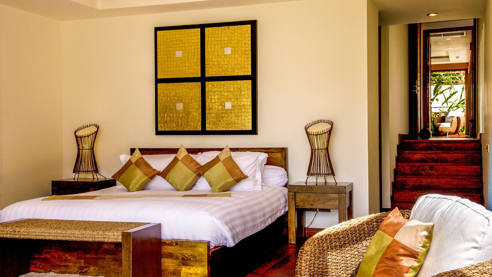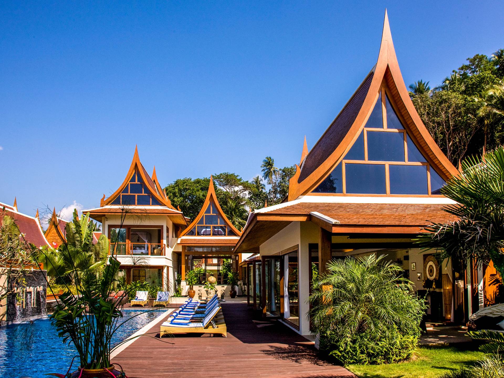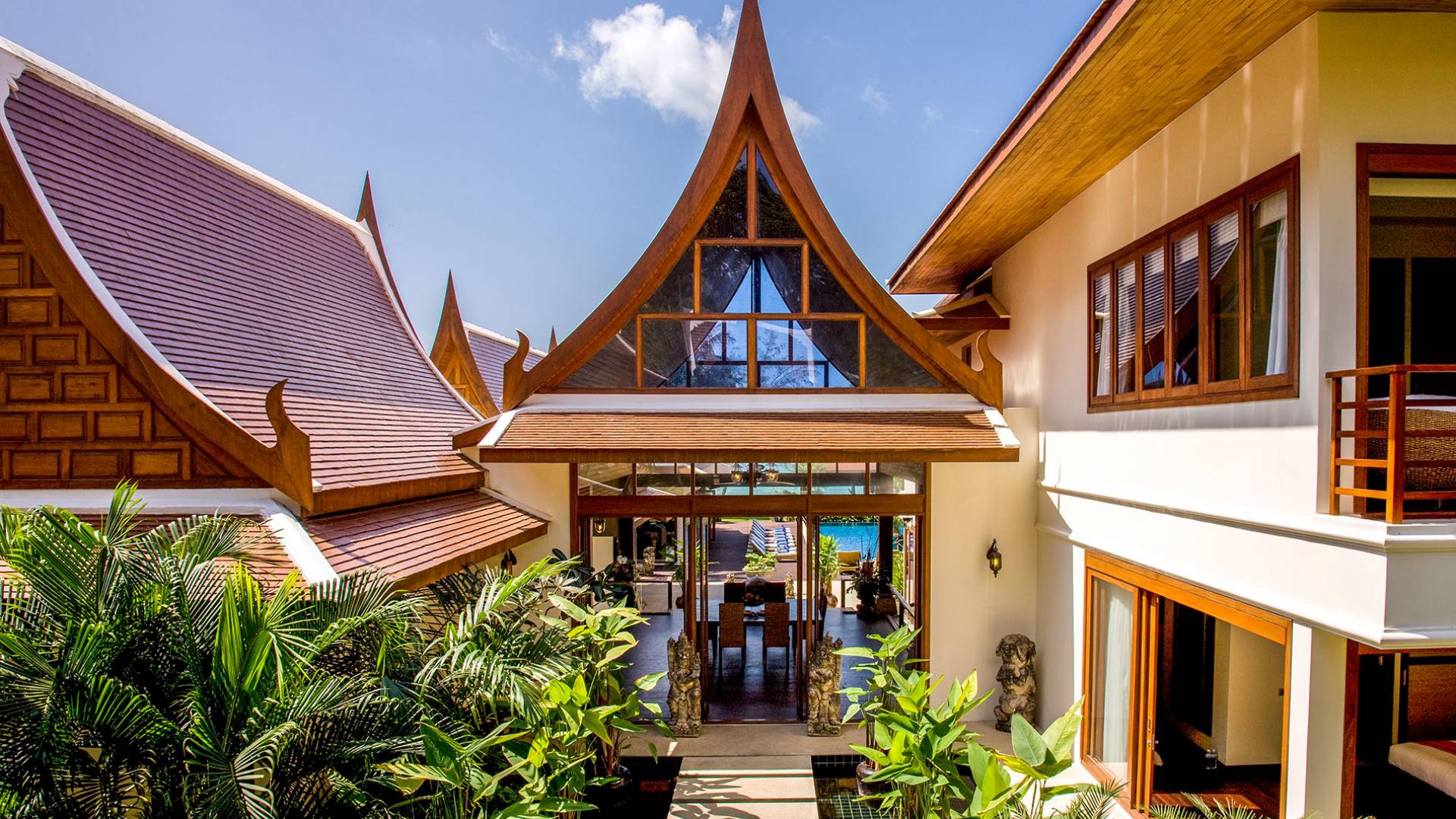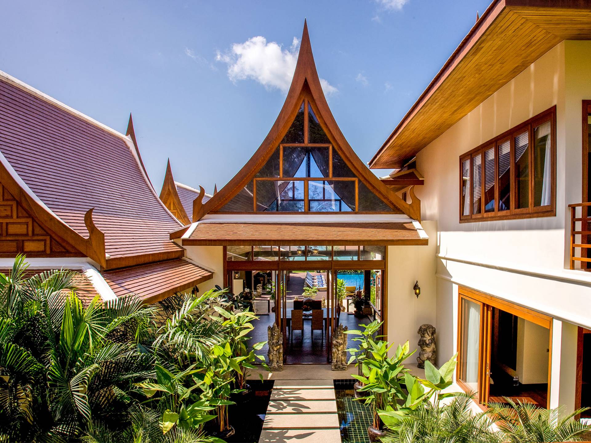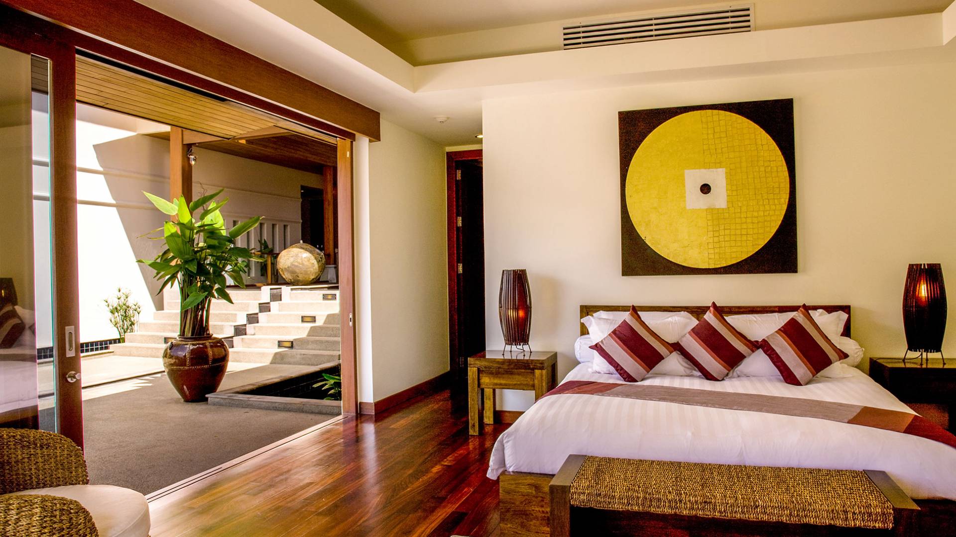 Wenn Sie die Villa Haineu in Dhevatara Cove Samui betreten, werden Sie sofort die Pracht dieses Anwesens erkennen. Die traditionellen architektonischen Merkmale werden perfekt mit zeitgenössischen Möbeln und Accessoires aus natürlichen Materialien kombiniert, die eine moderne, stilvolle und luxuriöse Umgebung schaffen.