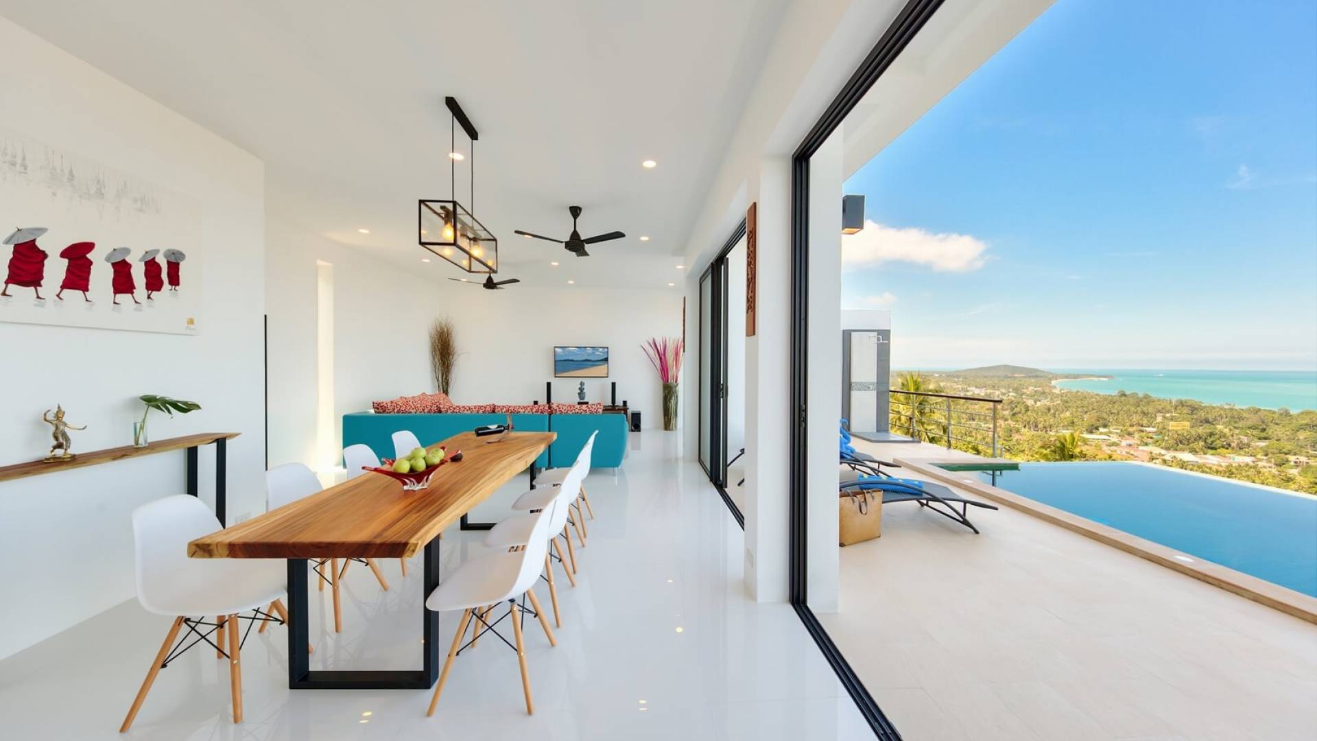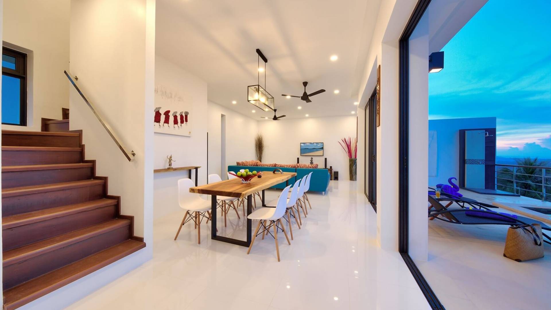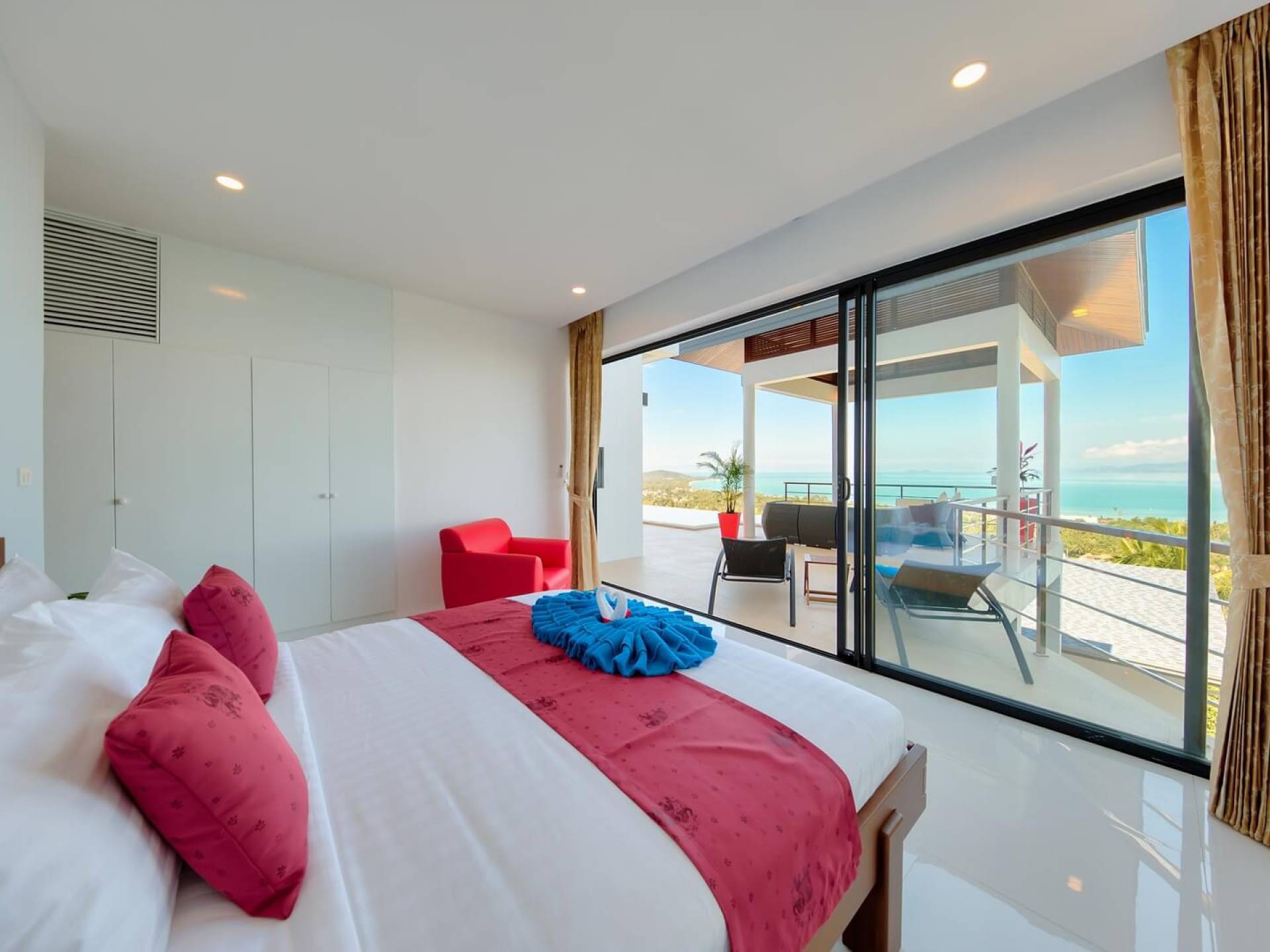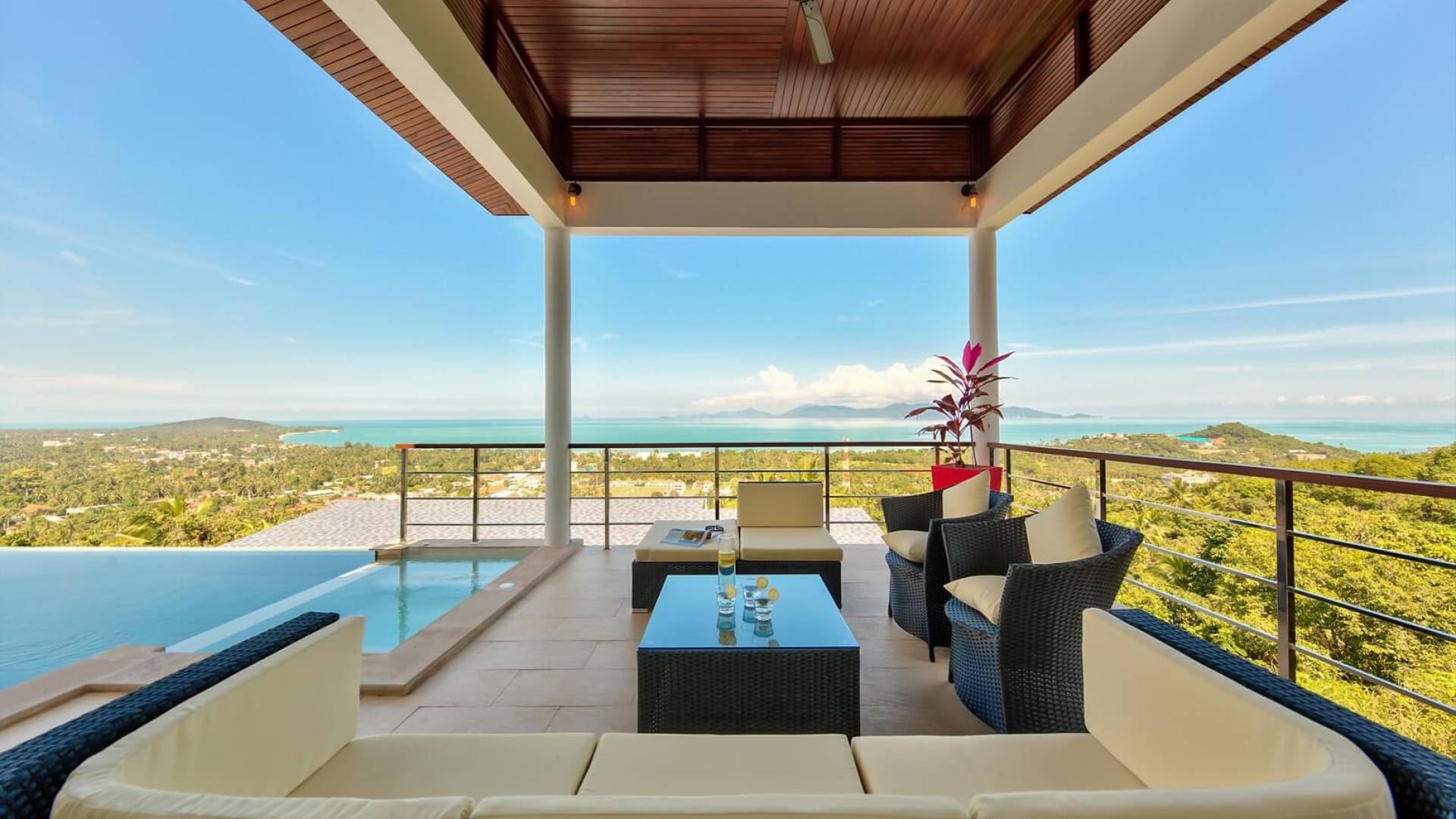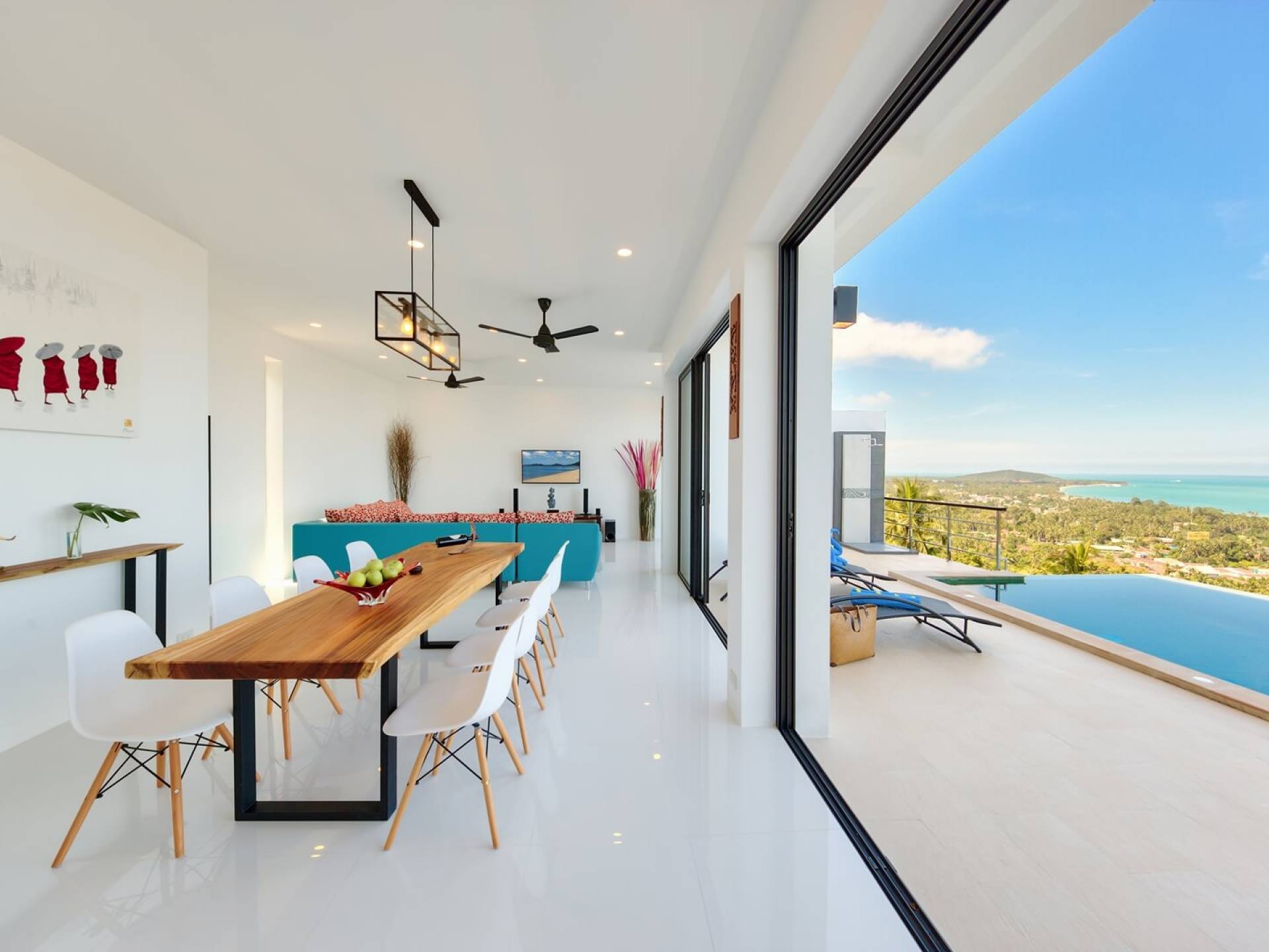 Alina Flora Villas Samui ist ein Set aus 2 identischen Luxusvillen mit 4 Schlafzimmern, eingebettet in den Hügeln von Maenam, in einer atemberaubenden Lage an der Nordküste von Koh Samui und genießt einen unglaublichen Panoramablick auf das Meer. Die spektakuläre Aussicht bietet seinen Gästen so viel und ist ein herausragendes Merkmal dieses Anwesens (das nicht viele seiner Konkurrenten erreichen können). Die atemberaubende Aussicht bietet atemberaubende Sonnenuntergänge, die benachbarten Inseln Koh Pha Ngan und Koh Tao und sogar den lokalen Angthong Marine Park.