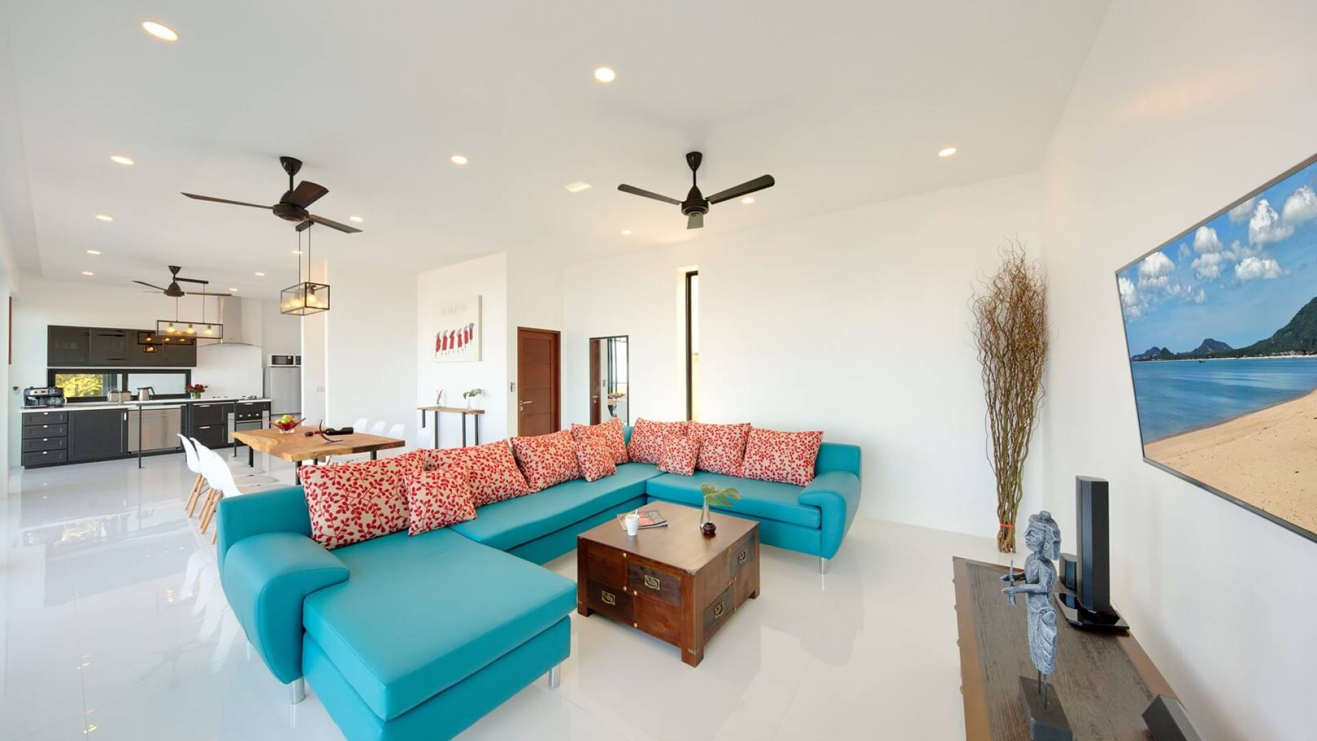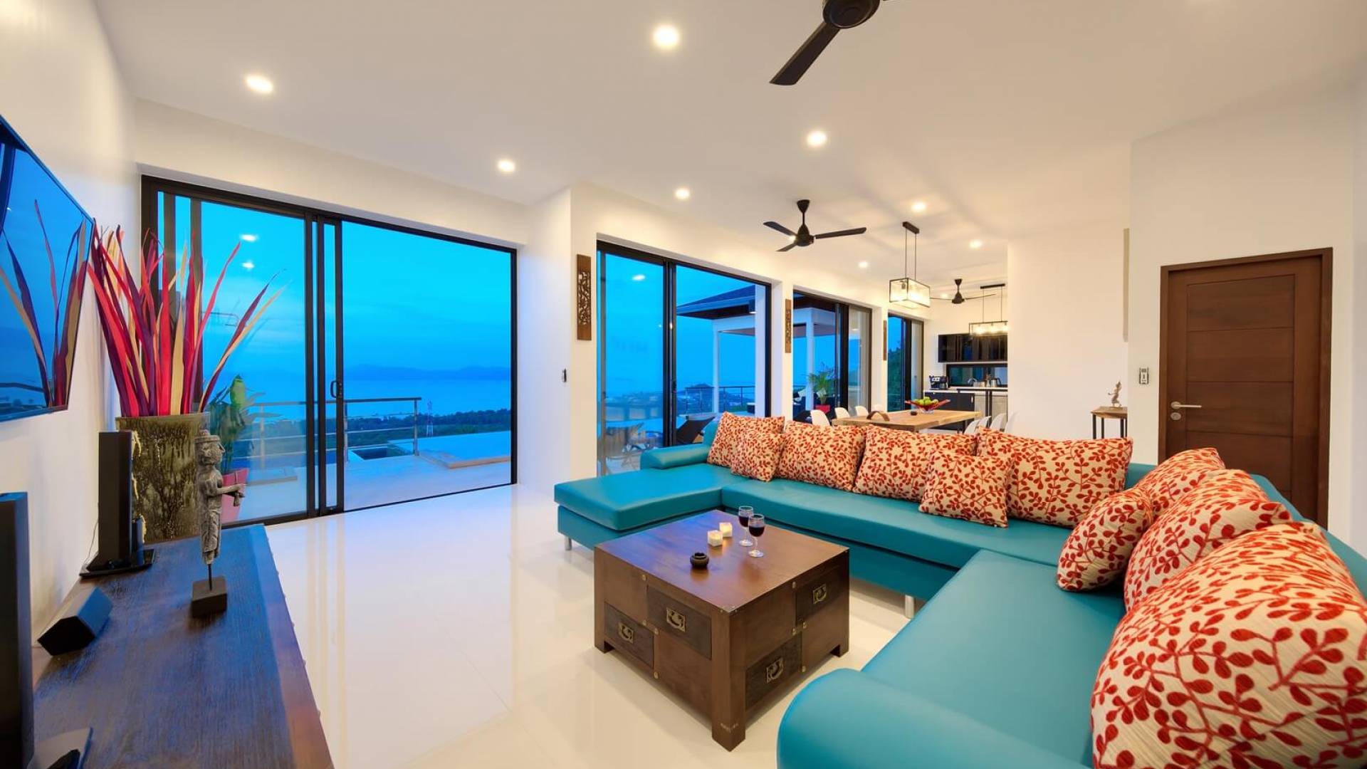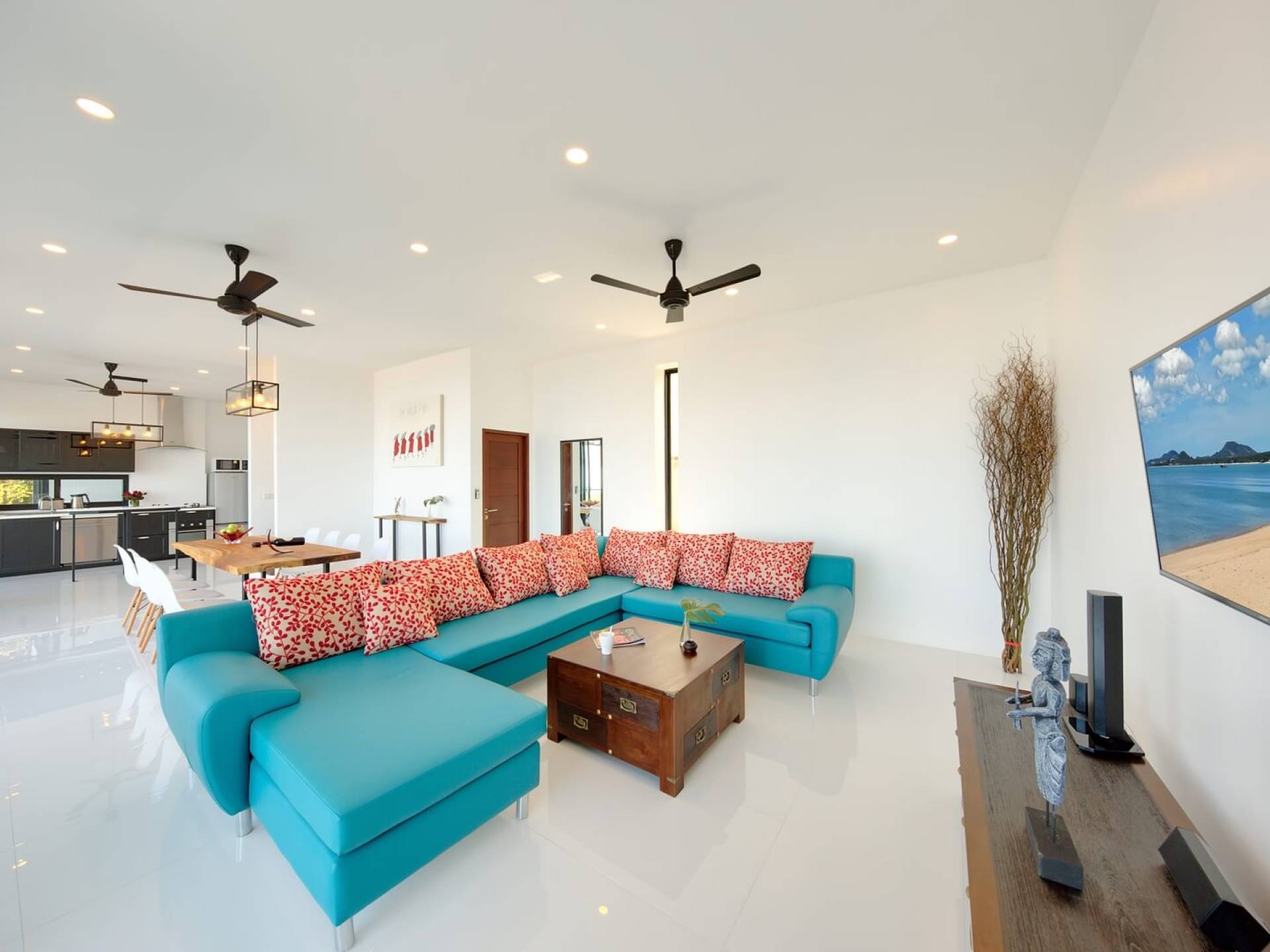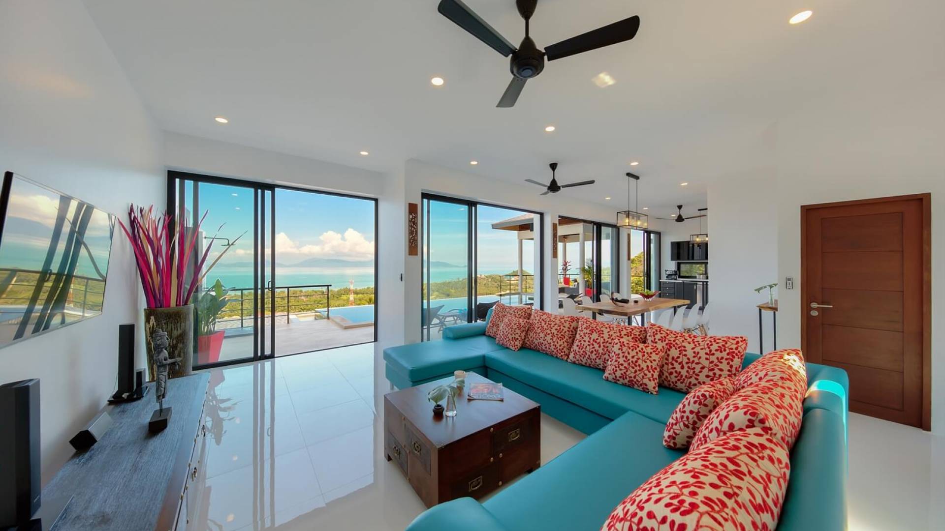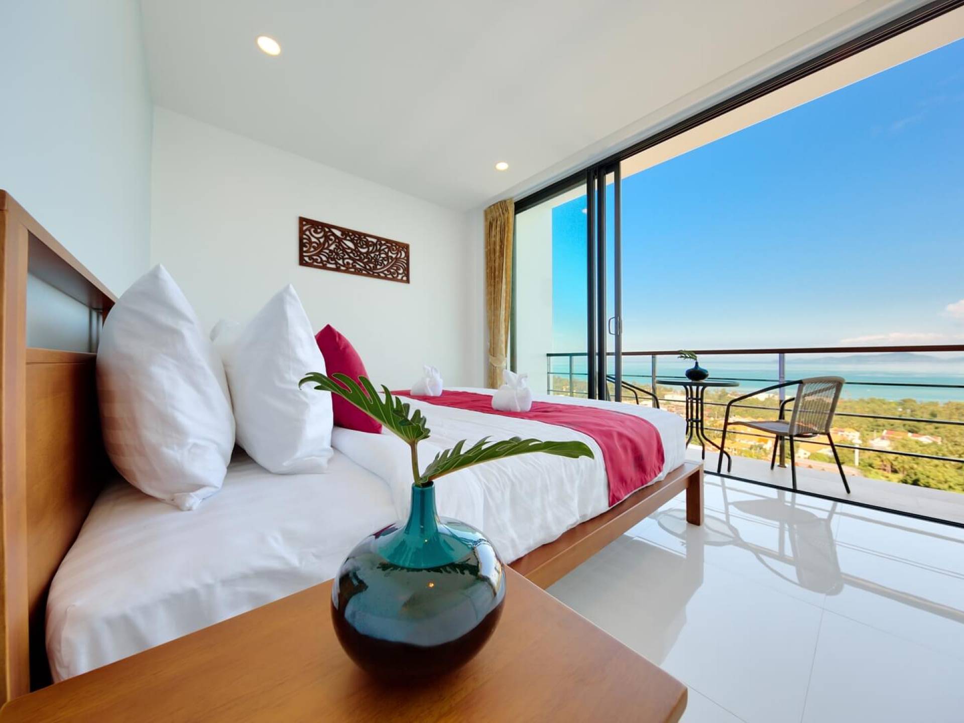 Alina Flora Villas Samui ist ein Set aus 2 identischen Luxusvillen mit 4 Schlafzimmern, eingebettet in den Hügeln von Maenam, in einer atemberaubenden Lage an der Nordküste von Koh Samui und genießt einen unglaublichen Panoramablick auf das Meer. Die spektakuläre Aussicht bietet seinen Gästen so viel und ist ein herausragendes Merkmal dieses Anwesens (das nicht viele seiner Konkurrenten erreichen können). Die atemberaubende Aussicht bietet atemberaubende Sonnenuntergänge, die benachbarten Inseln Koh Pha Ngan und Koh Tao und sogar den lokalen Angthong Marine Park.