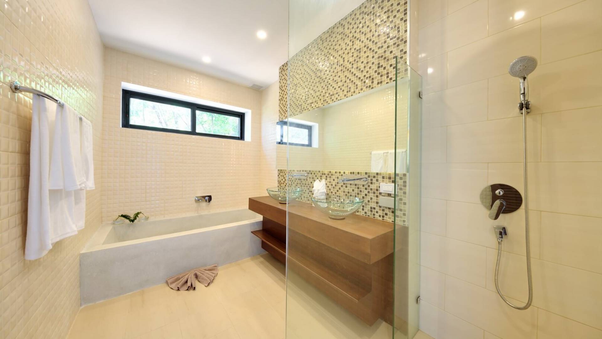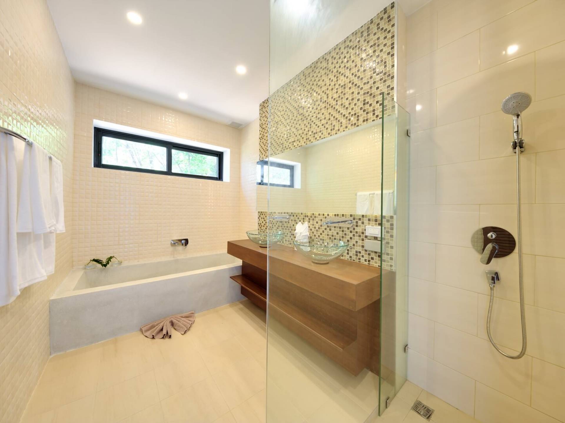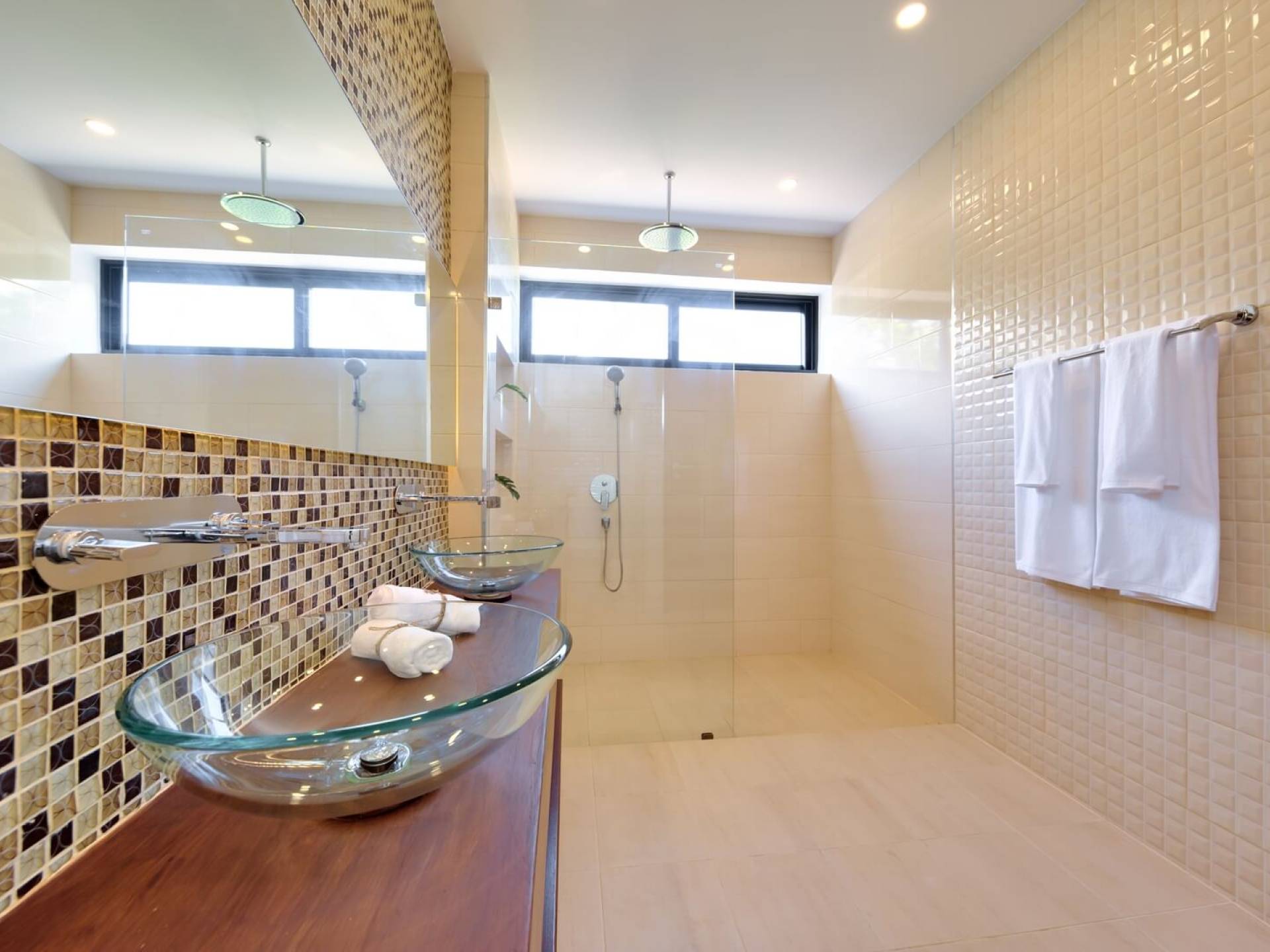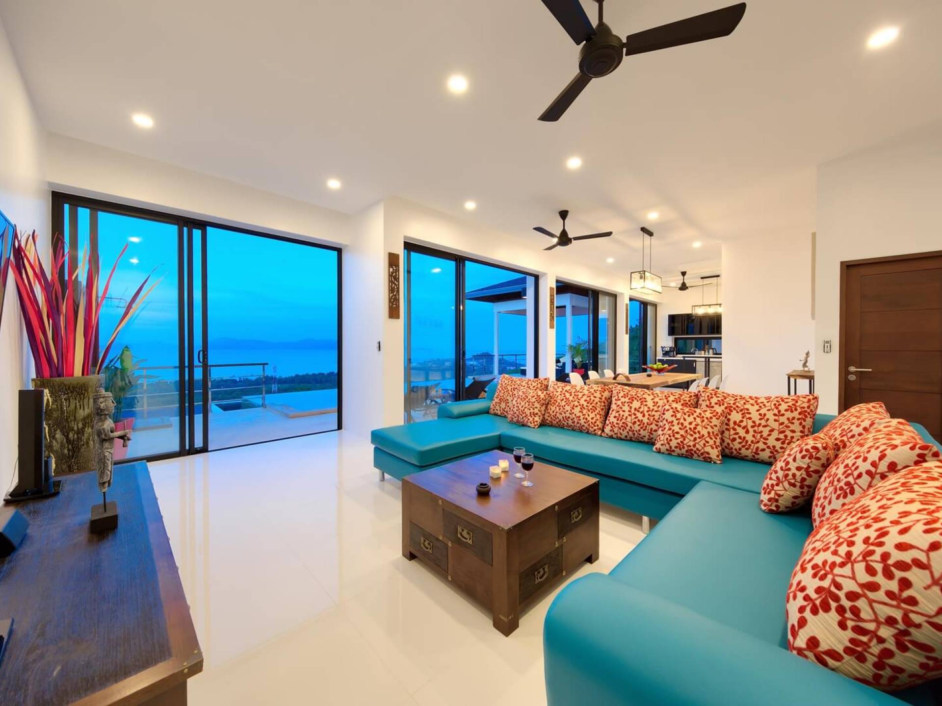 Die Infinity-Pools und separaten entspannenden Whirlpools bieten auch eine unglaubliche Aussicht. Die großen Poolterrassen verfügen über rutschfeste Fliesen und vier bequeme Sonnenliegen. Es gibt eine Regendusche neben dem Pool und die Glastüren zwischen der Terrasse und den Wohnbereichen lassen sich vollständig öffnen, um das ultimative Wohnerlebnis drinnen und draußen zu bieten. Die Terrassen erstrecken sich dann über die Breite der Lounges und werden von minimalistischen Geländer flankiert, damit die Aussicht nicht unterbrochen wird. Rechts neben den beeindruckenden Wahllokalen können sich die Gäste im geräumigen Sala zurücklehnen und entspannen. Darüber hinaus gibt es im ersten Stock eine zweite Outdoor-Sala, in der ein Sala-Bett genutzt werden kann, um die Wohnfläche zu maximieren.