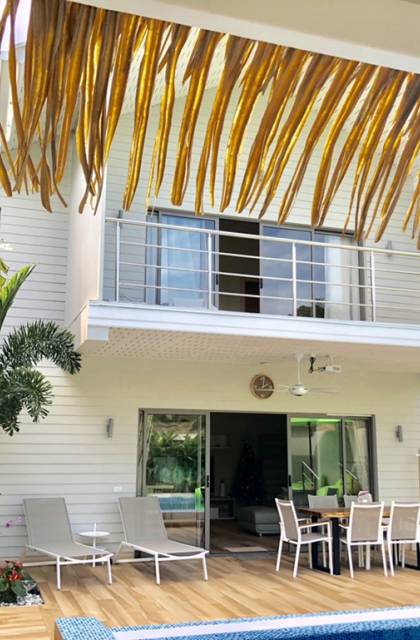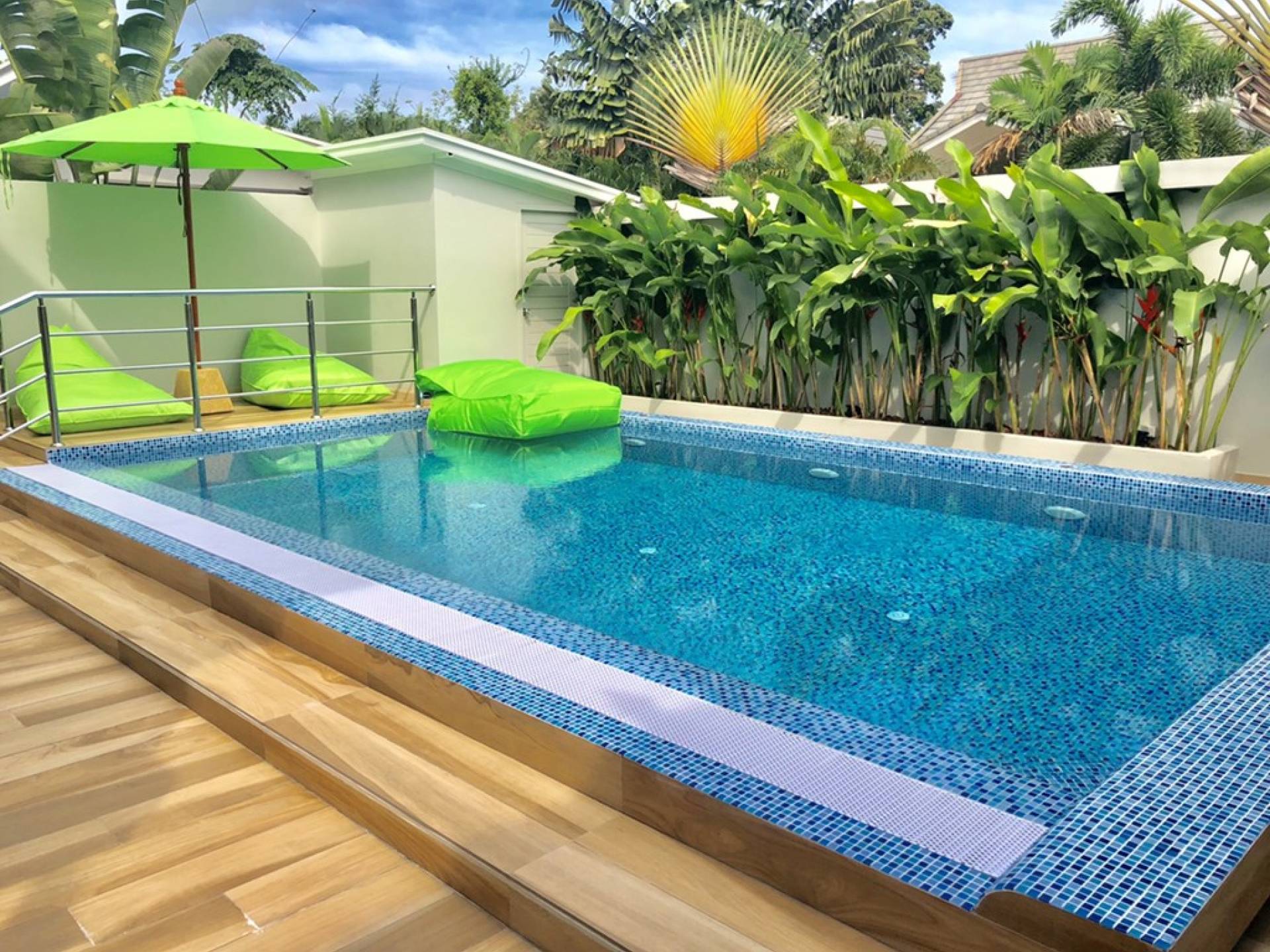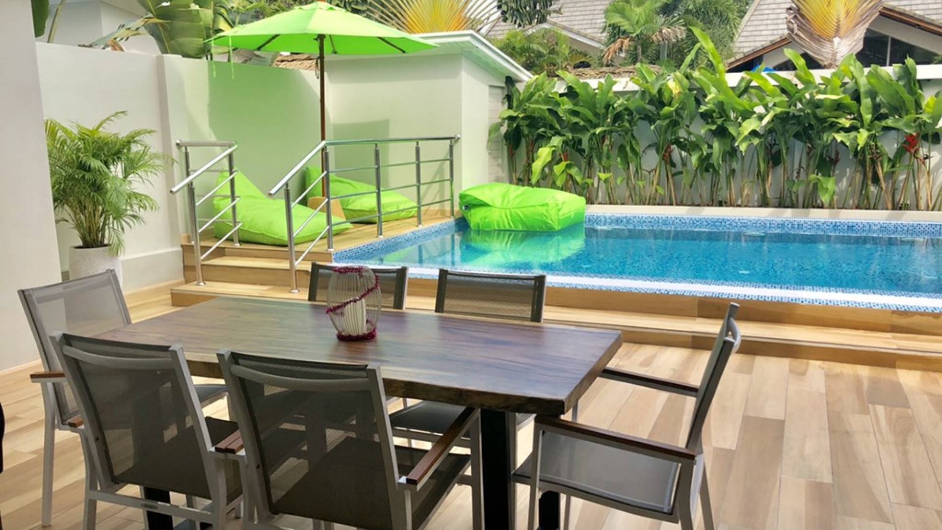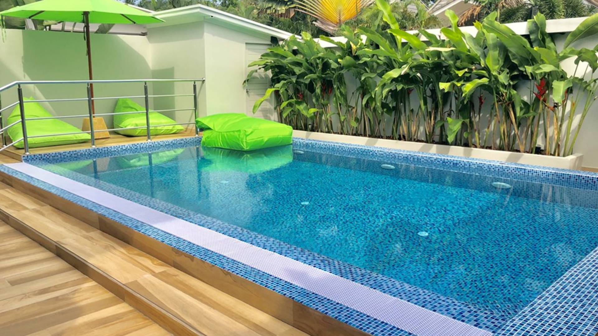 Das erste, was Sie in den Räumlichkeiten der Villa Bellini begrüßt, ist ein chlorfreier Swimmingpool zusammen mit einer Außendusche, umgeben von exotischer tropischer Flora. Angrenzend an den Pool befindet sich ein großer offener Bereich, den Sie sowohl für Sonnenliegen, Sonnenschirme und Cocktails als auch für Abendessen unter freiem Himmel und Grillpartys nutzen können. Das charakteristische Heimkino von Ban Tai mit einer Projektionsleinwand befindet sich im Poolbereich, sodass Sie Ihre Lieblingsfilme vom Wasser oder vom Essbereich aus ansehen können.