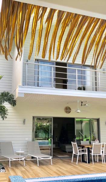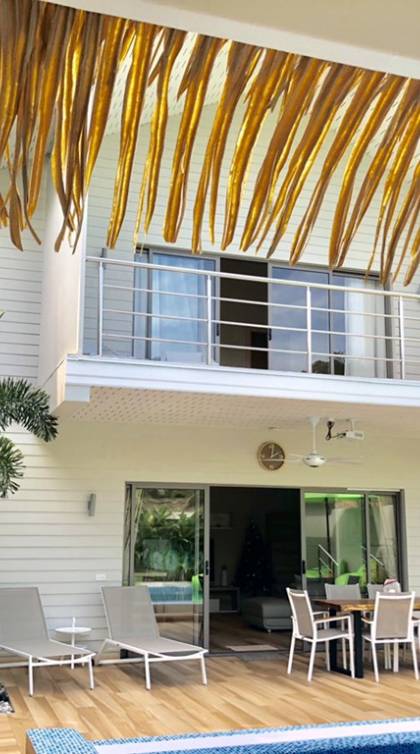 Die Villa ist auch mit allen notwendigen praktischen Partyutensilien und -möbeln ausgestattet. Bunte und gemütliche Lounge-Taschen, Flaschenkühler, Highspeed-Internet, großer Grill und Möbel genug, um eine wirklich große Party zu beherbergen. Und wenn die Betten für Sie alle nicht ausreichen, können Sie die Nachbarvilla mieten und sich durch den Wartungsgang schnell und einfach gegenseitig besuchen.