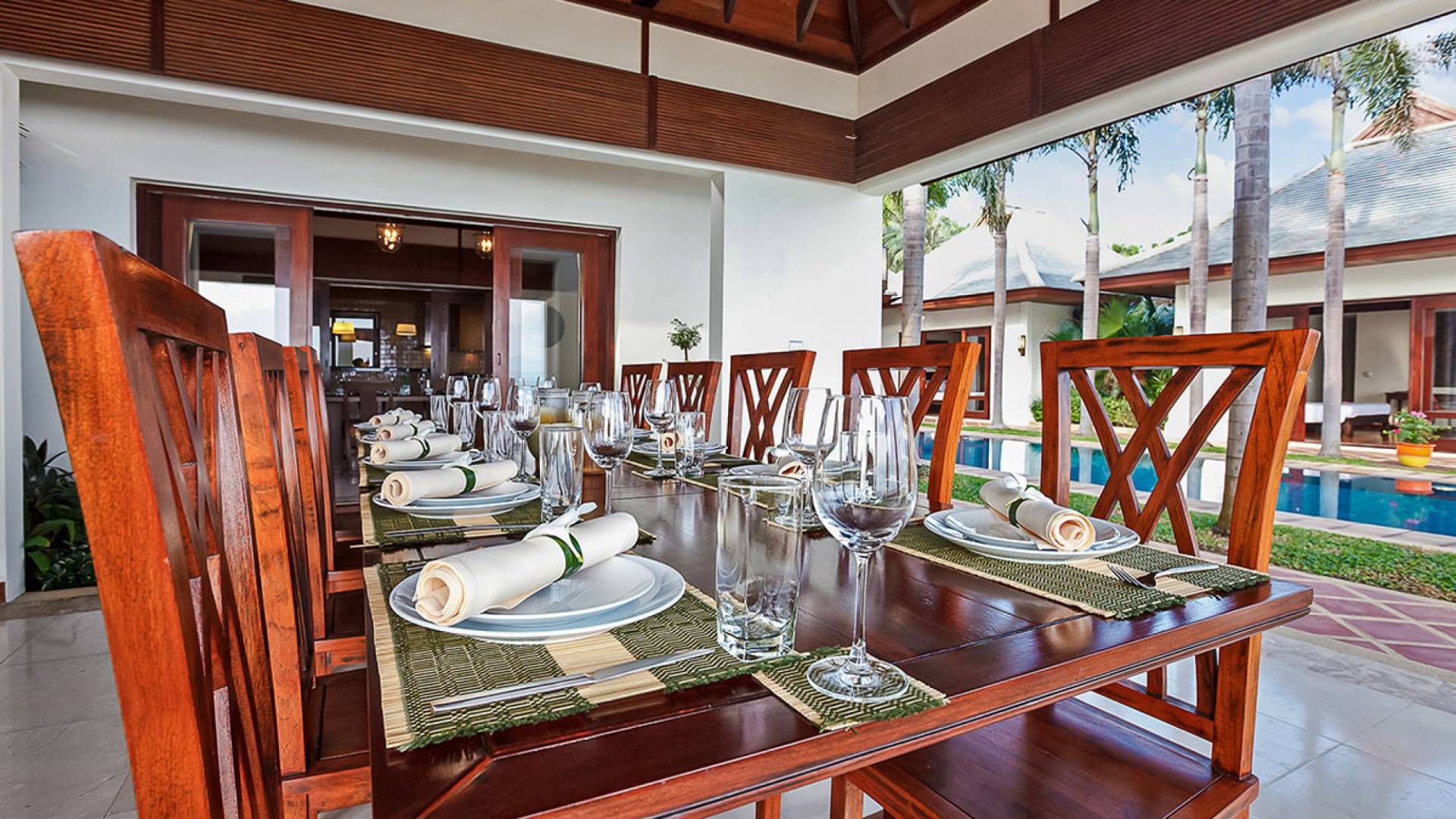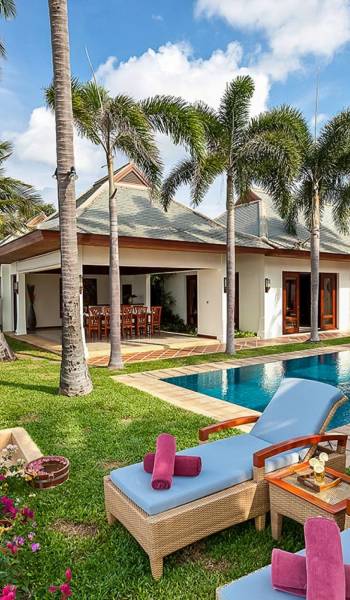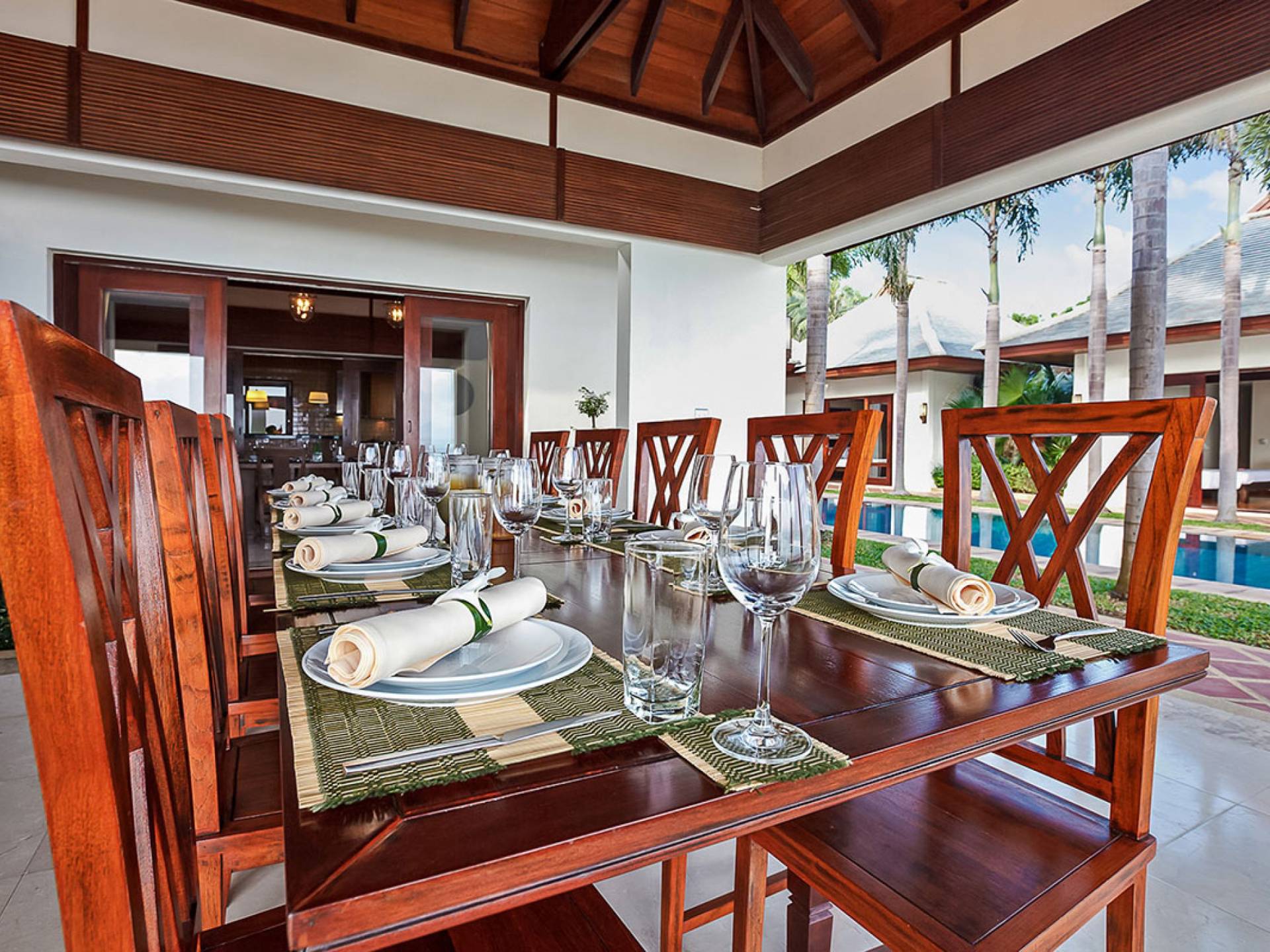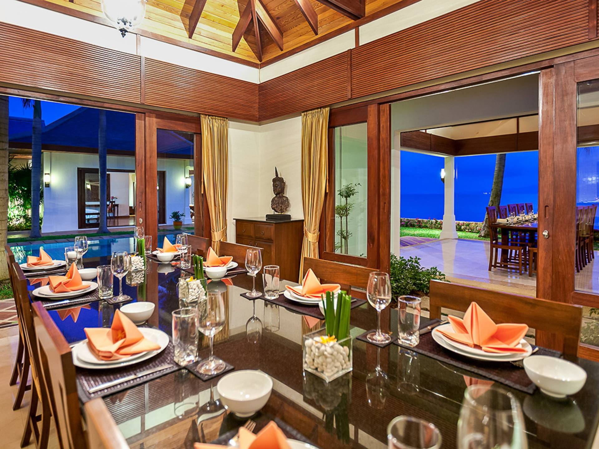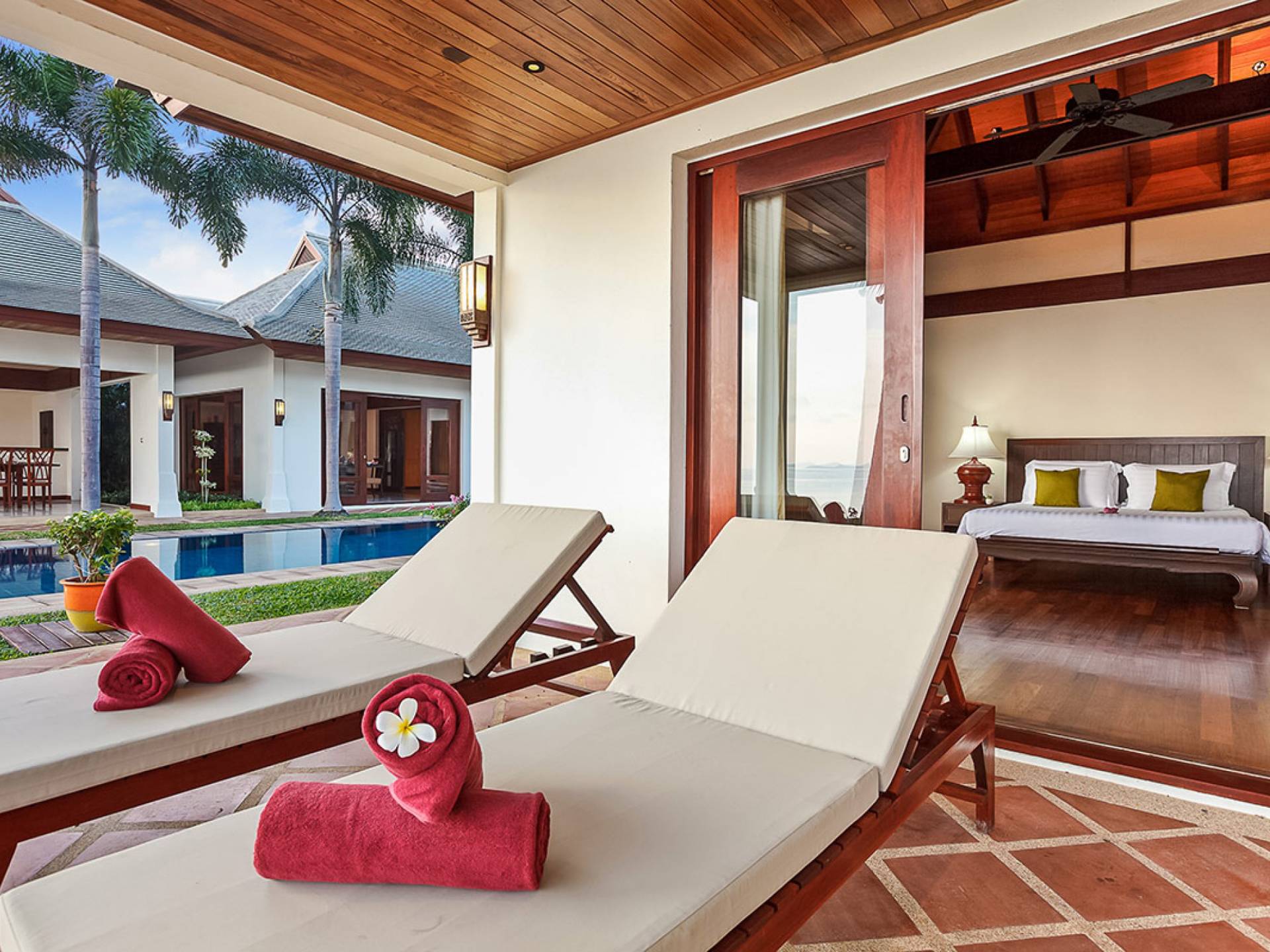 Villa Frangipani bei Miskawaan Villas Samui ist eine geräumige Villa mit 5 Schlafzimmern innerhalb des Anwesens und verfügt über eine große Lounge, eine Küche, einen Innen- und einen Außenessbereich mit einer thailändischen Sala. Oh, und vergiss nicht; ein persönlicher Villa-Manager, Koch und Zimmermädchen stehen Ihnen zur Verfügung! Dies ist Ihr Zuhause in der Ferne!