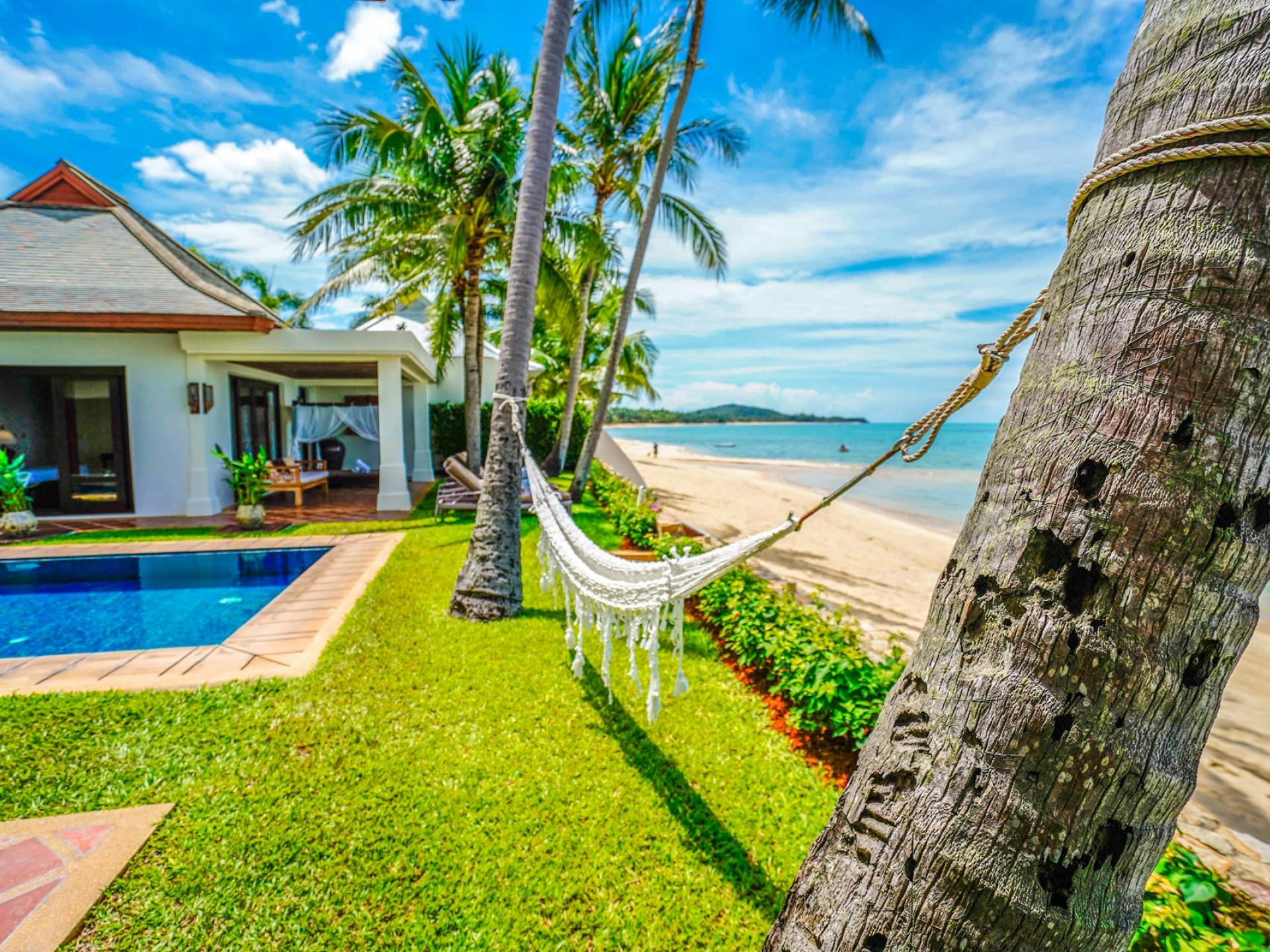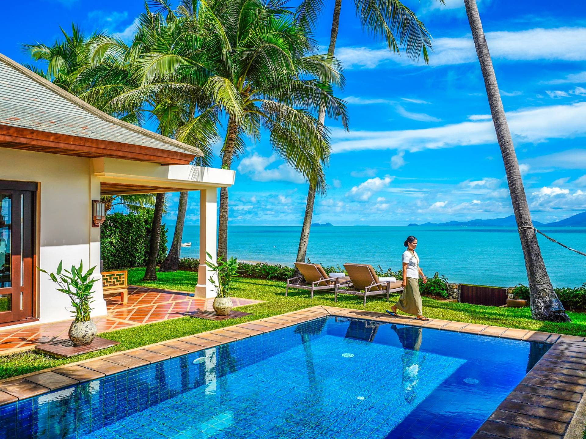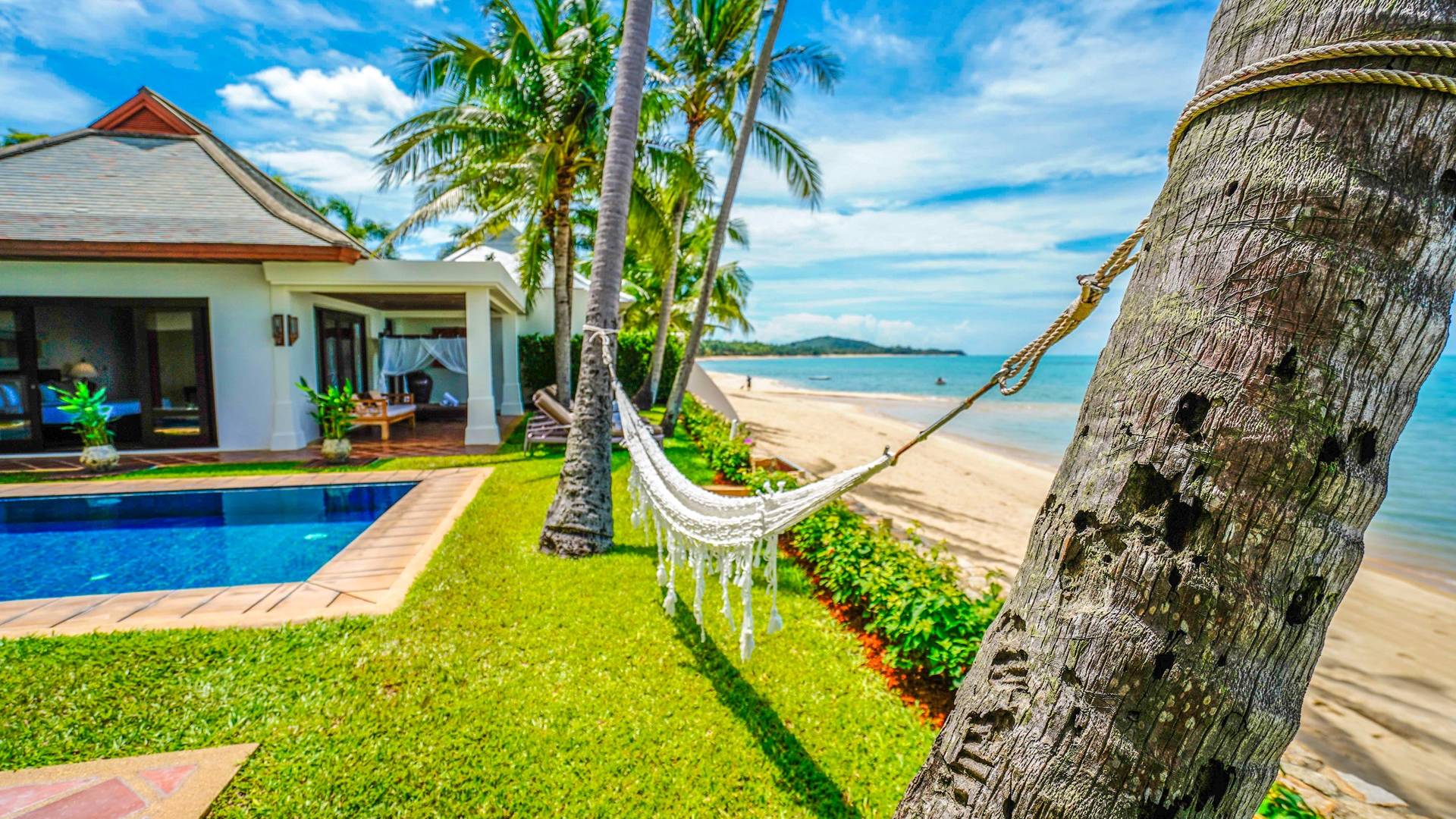 Miskawaan Villas Samui, was Buddhas Garten bedeutet, ist eine Sammlung von 11 luxuriösen Strandvillen; 10 befinden sich mit Blick auf den atemberaubenden goldenen Sand von Maenam und eine befindet sich am unberührten Bangrak-Strand. Miskawaan Villas Samui bietet den idealen Rückzugsort für einen Barfuß- und Luxusvillenurlaub mit Ihren Freunden, Ihrer Familie oder Geschäftspartnern. Villa Frangipani at Miskawaan Villas Samui ist eine luxuriöse und exquisite Strandvilla mit 5 Schlafzimmern für bis zu 10 Personen.