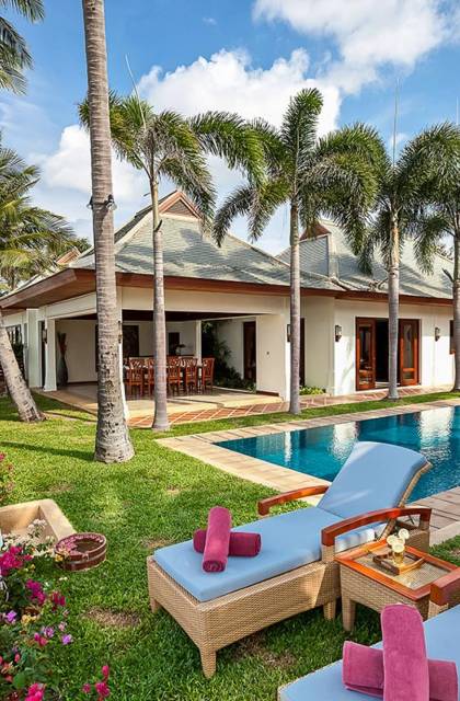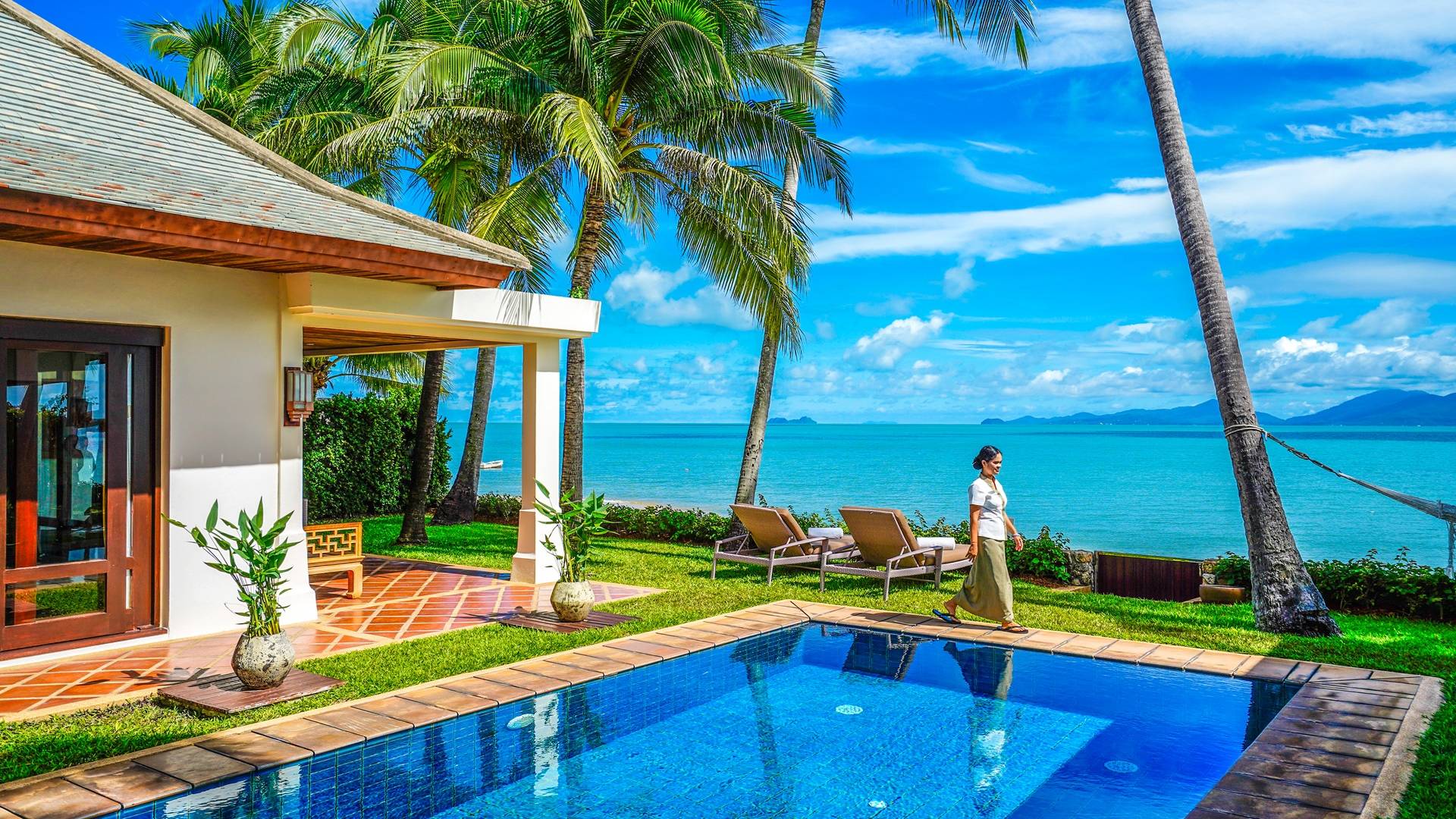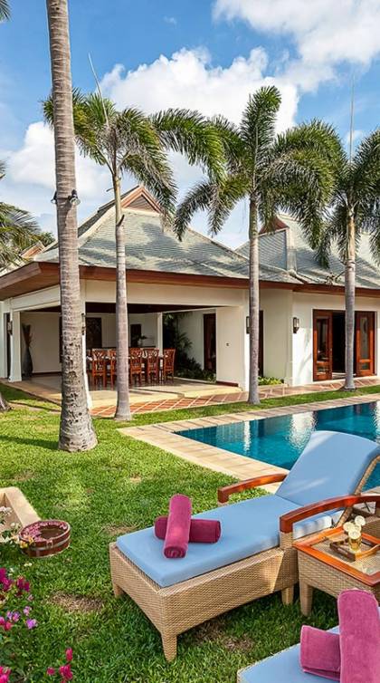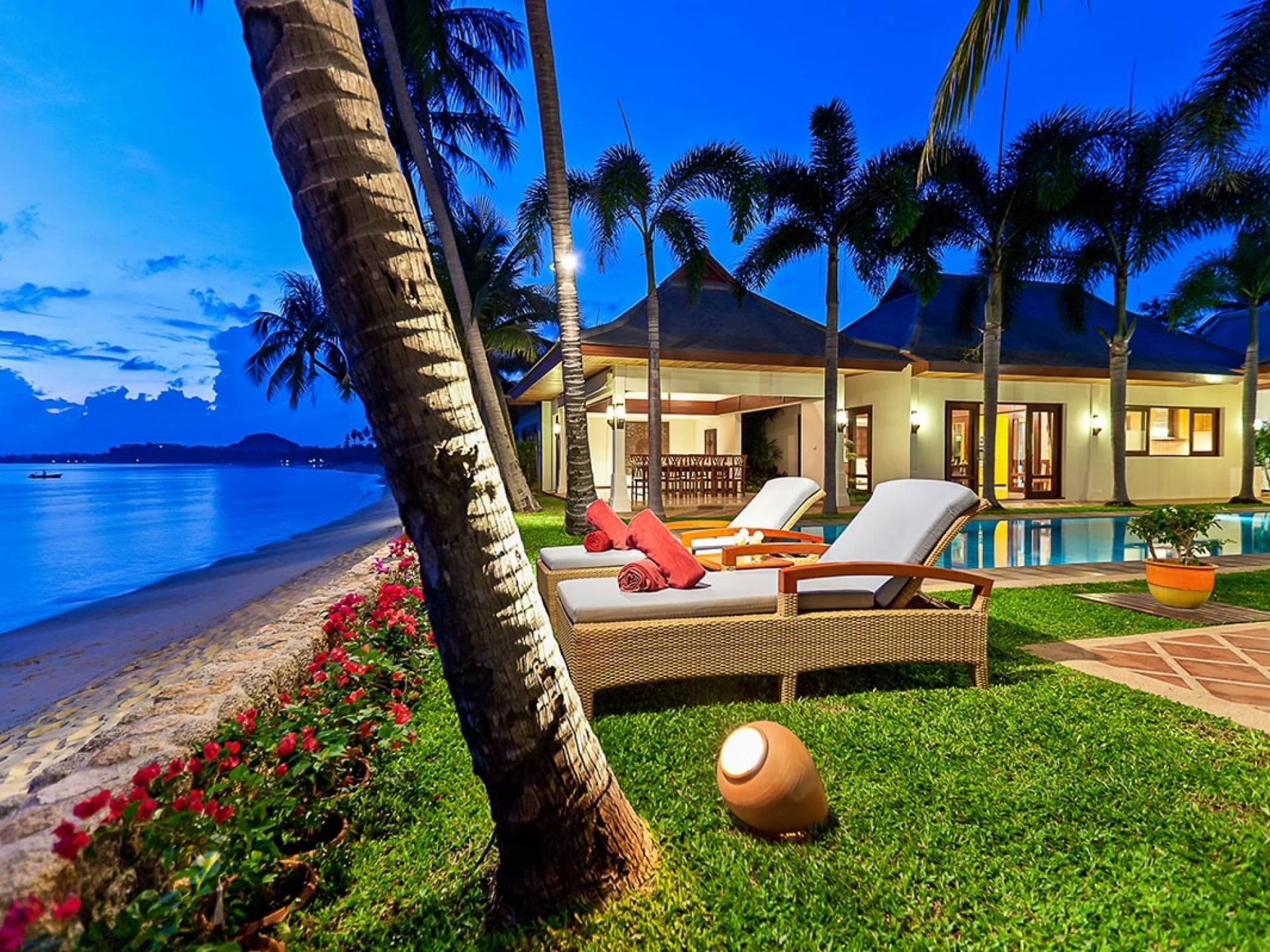 Miskawaan Villas Samui, was Buddhas Garten bedeutet, ist eine Sammlung von 11 luxuriösen Strandvillen; 10 befinden sich mit Blick auf den atemberaubenden goldenen Sand von Maenam und eine befindet sich am unberührten Bangrak-Strand. Miskawaan Villas Samui bietet den idealen Rückzugsort für einen Barfuß- und Luxusvillenurlaub mit Ihren Freunden, Ihrer Familie oder Geschäftspartnern. Villa Frangipani at Miskawaan Villas Samui ist eine luxuriöse und exquisite Strandvilla mit 5 Schlafzimmern für bis zu 10 Personen.
