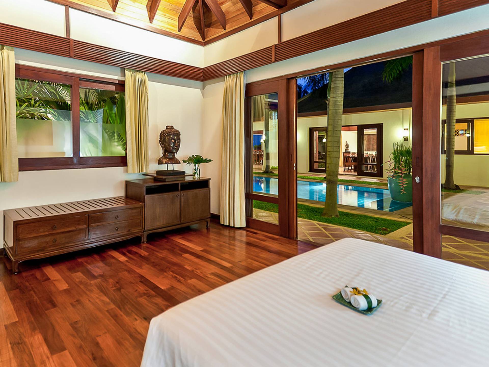Jedes Schlafzimmer liegt günstig um Ihren privaten Swimmingpool herum; Daher können Sie direkt von Ihrem Schlafzimmer aus Pool- und Meerblick genießen. Wenn Sie ein Strandliebhaber sind, ist dies die richtige Wahl. Nur wenige Schritte von Ihrem Ferienhaus entfernt können Sie Ihre Füße buchstäblich in den Sand tauchen und den farbenprächtigen Sonnenuntergang zwischen Palmen im Meer ausklingen sehen.