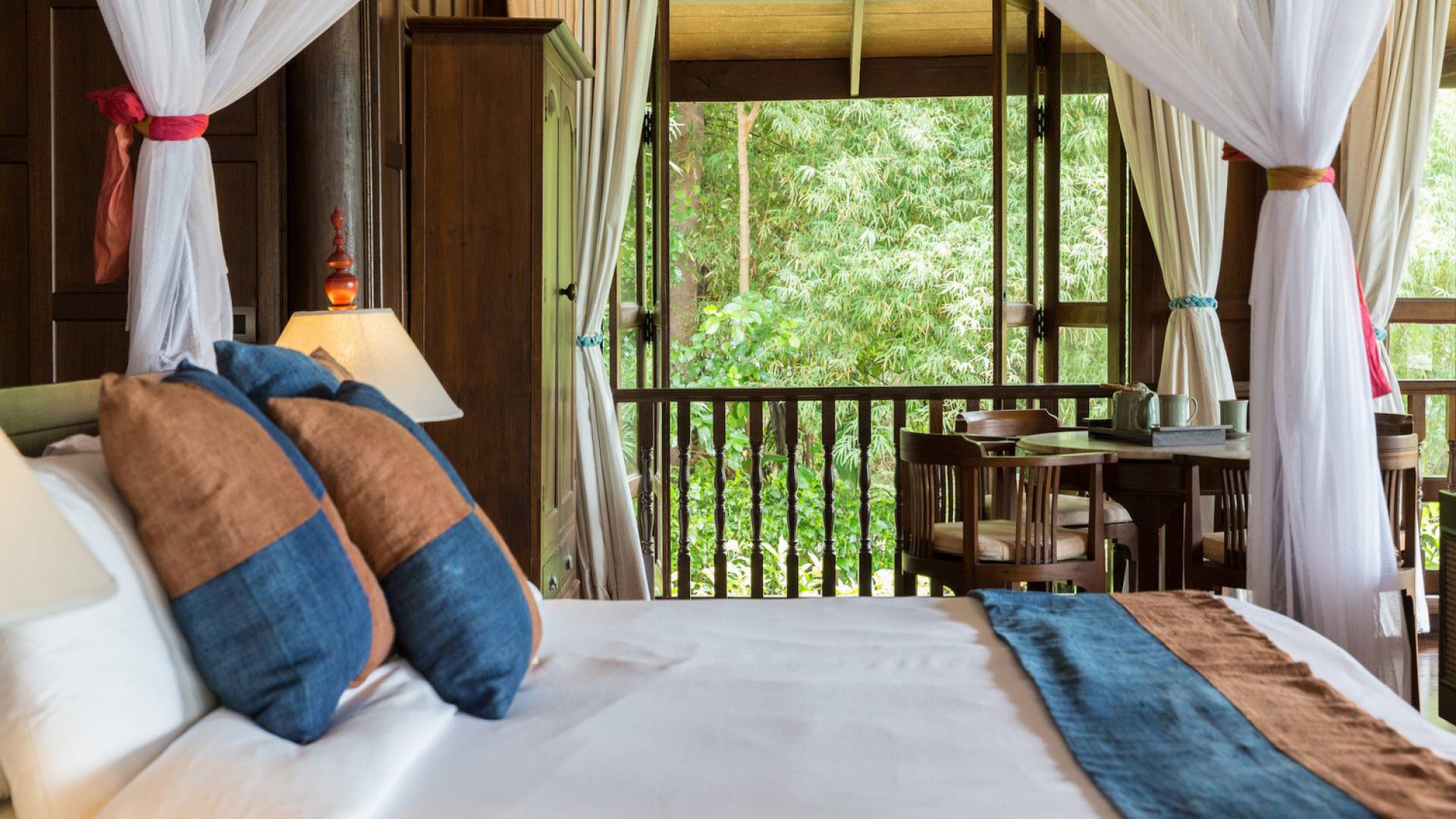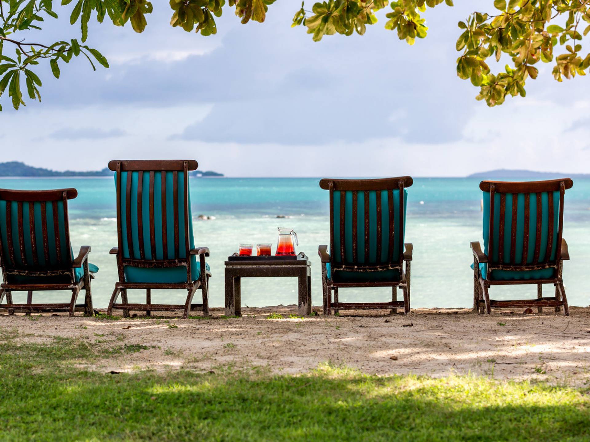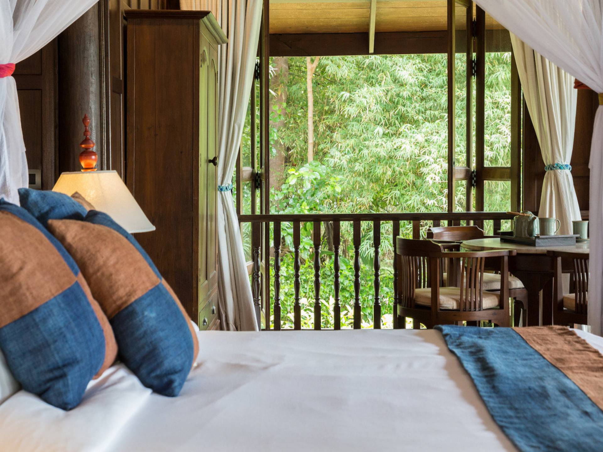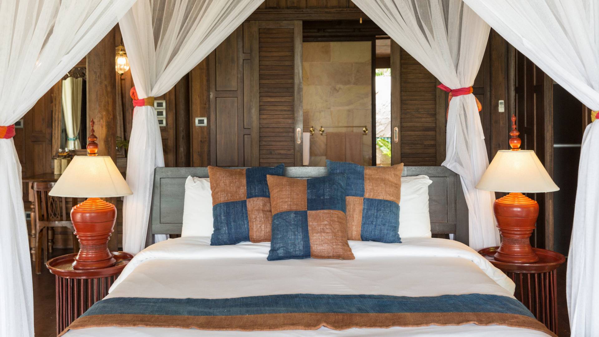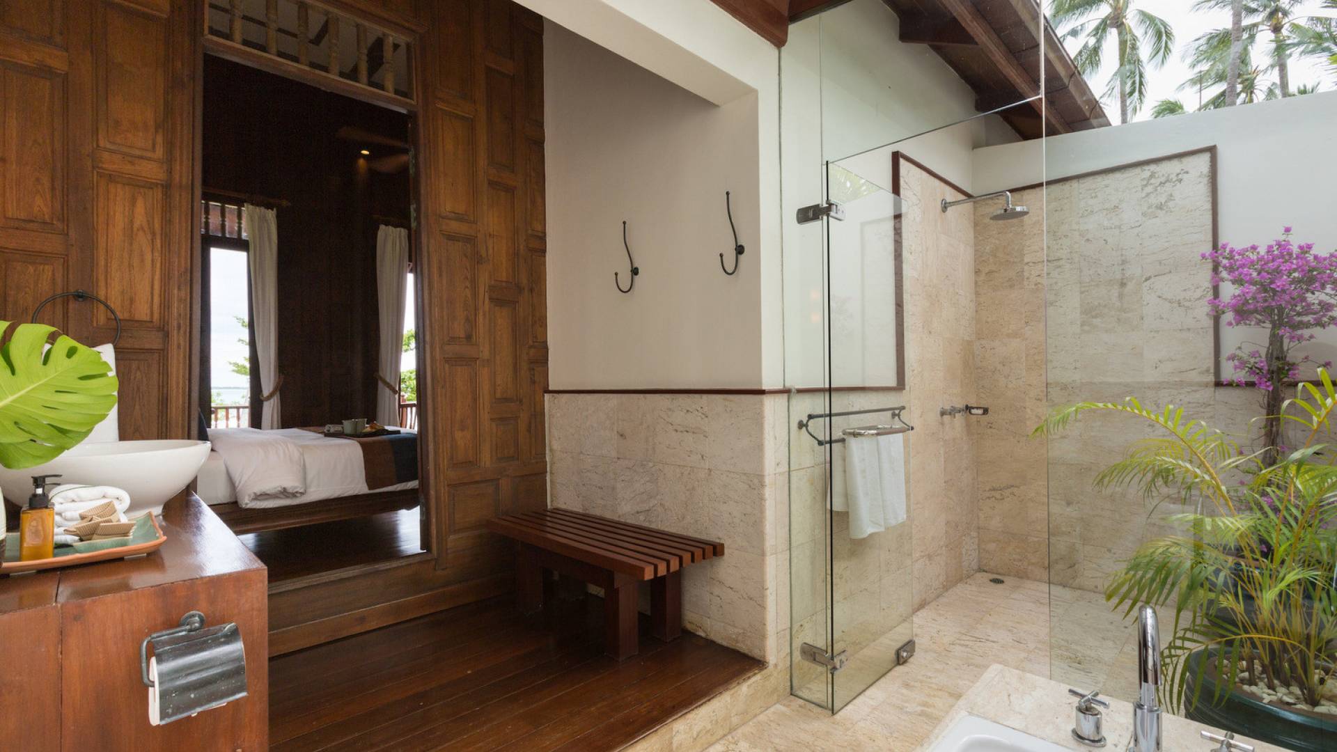 Die Hauptvilla beherbergt auch die neu renovierte Hauptsuite der Unterkunft. Gewölbte Decken mit freiliegenden Teakholzbalken und Sparren verleihen dem Raum einen authentischen thailändischen Charakter, und weiche Seidenmöbel verleihen dem Raum einen stilvollen Farbtupfer. Das Kinderzimmer in der Hauptvilla verfügt über Massivholz-Etagenbetten und ist schnell und einfach von der Master-Suite aus zugänglich und bietet einen gut angebundenen Raum für die ganze Familie. Der Schlafpavillon umfasst drei Schlafzimmer. Das erste verfügt über zwei Einzelbetten, einen geräumigen begehbaren Kleiderschrank und ein eigenes Badezimmer. Von der entspannenden Badewanne aus können Sie aussteigen und durch die Oberlichtdecke auf die umliegenden Palmen, den Mond und die Sterne blicken. Tagsüber lässt diese großflächige Überkopfverglasung auch die Sonne den Raum in natürliches Licht tauchen. Es gibt auch eine erfrischende Open-Air-Dusche. Der neu renovierte zweite Schlafbereich verfügt über zwei Einzelbetten, die zu einem Doppelbett zusammengestellt werden können. Ein brandneues Bad wurde ebenfalls integriert, wodurch diese flexible Zone perfekt für Erwachsene oder Kinder ist, die sich teilen. Angrenzend befindet sich das dritte Schlafzimmer, das über ein Doppelbett, einen begehbaren Kleiderschrank und ein komplettes Badezimmer mit einer überdachten Badewanne und einer weiteren Open-Air-Dusche verfügt. Alle Zimmer des Ban Sairee sind mit authentischen Möbeln im thailändischen Stil ausgestattet, mit einer Fülle echter Antiquitäten, die in der gesamten Unterkunft gespickt sind. Glasschiebetüren können aufgezogen werden, um den spektakulären Meerblick zu maximieren und die Gäste können die erfrischende Meeresbrise genießen, auch wenn sie sich im Haus entspannen.