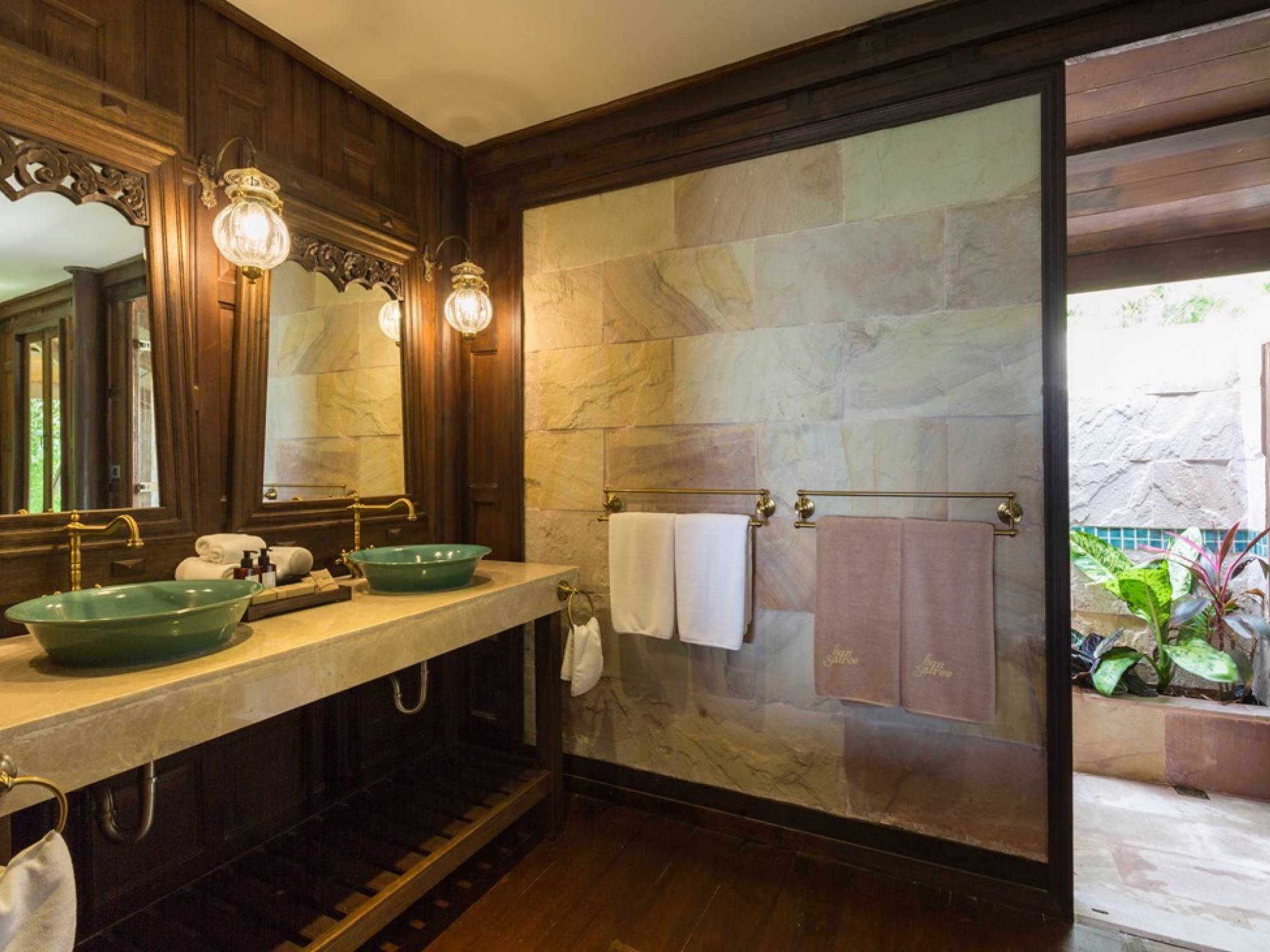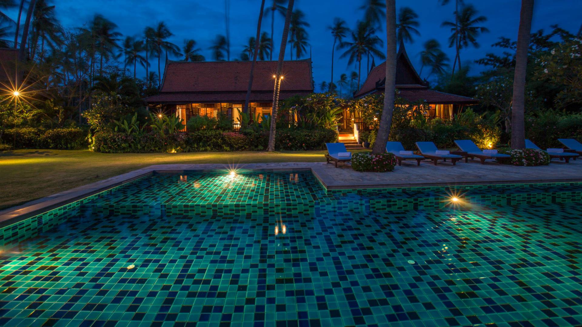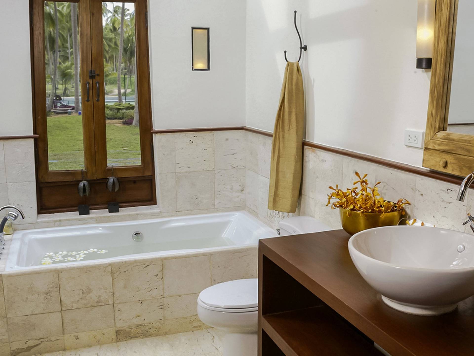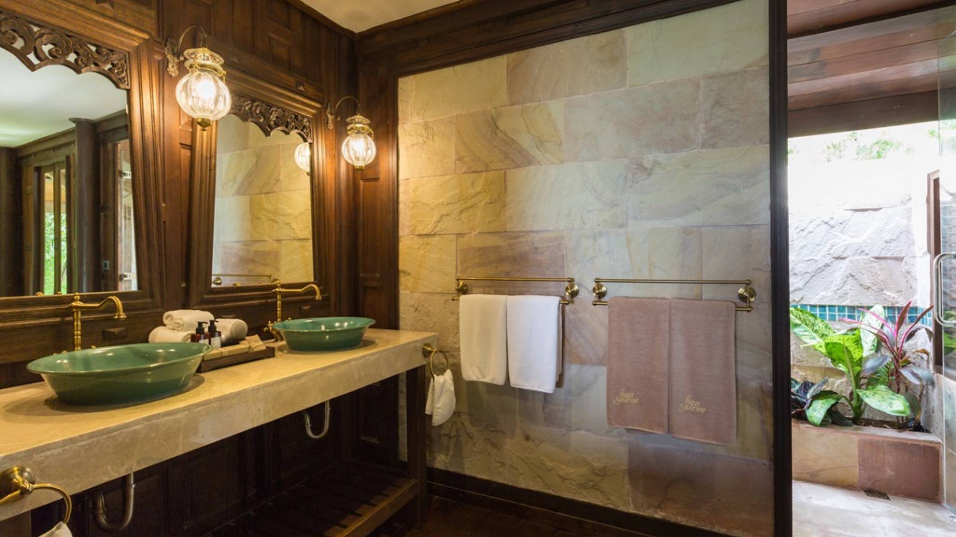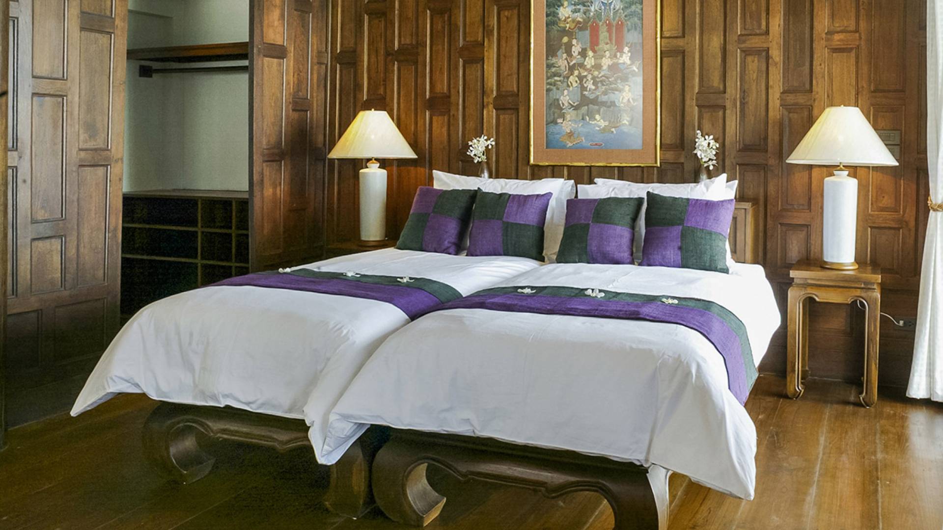 Die Hauptvilla beherbergt auch die neu renovierte Hauptsuite der Unterkunft. Gewölbte Decken mit freiliegenden Teakholzbalken und Sparren verleihen dem Raum einen authentischen thailändischen Charakter, und weiche Seidenmöbel verleihen dem Raum einen stilvollen Farbtupfer. Das Kinderzimmer in der Hauptvilla verfügt über Massivholz-Etagenbetten und ist schnell und einfach von der Master-Suite aus zugänglich und bietet einen gut angebundenen Raum für die ganze Familie. Der Schlafpavillon umfasst drei Schlafzimmer. Das erste verfügt über zwei Einzelbetten, einen geräumigen begehbaren Kleiderschrank und ein eigenes Badezimmer. Von der entspannenden Badewanne aus können Sie aussteigen und durch die Oberlichtdecke auf die umliegenden Palmen, den Mond und die Sterne blicken. Tagsüber lässt diese großflächige Überkopfverglasung auch die Sonne den Raum in natürliches Licht tauchen. Es gibt auch eine erfrischende Open-Air-Dusche. Der neu renovierte zweite Schlafbereich verfügt über zwei Einzelbetten, die zu einem Doppelbett zusammengestellt werden können. Ein brandneues Bad wurde ebenfalls integriert, wodurch diese flexible Zone perfekt für Erwachsene oder Kinder ist, die sich teilen. Angrenzend befindet sich das dritte Schlafzimmer, das über ein Doppelbett, einen begehbaren Kleiderschrank und ein komplettes Badezimmer mit einer überdachten Badewanne und einer weiteren Open-Air-Dusche verfügt. Alle Zimmer des Ban Sairee sind mit authentischen Möbeln im thailändischen Stil ausgestattet, mit einer Fülle echter Antiquitäten, die in der gesamten Unterkunft gespickt sind. Glasschiebetüren können aufgezogen werden, um den spektakulären Meerblick zu maximieren und die Gäste können die erfrischende Meeresbrise genießen, auch wenn sie sich im Haus entspannen.