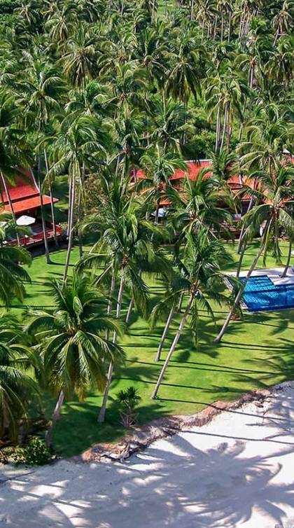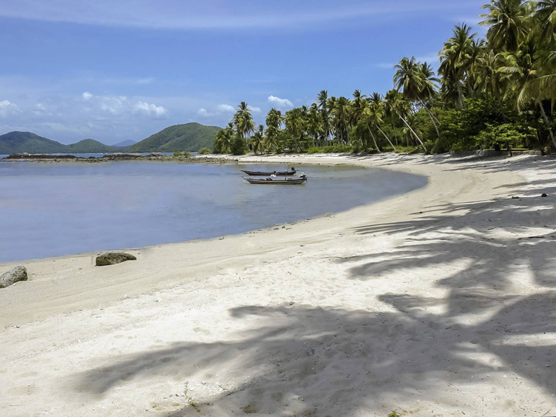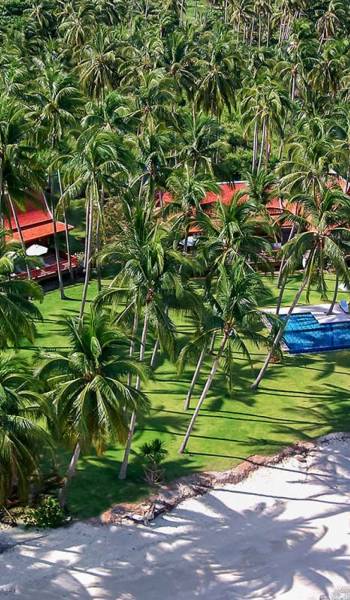 mehrTaling Ngam, der Strand von fünf Inseln, wie er oft genannt wird, ist ein Bezirk im Südwesten von Koh Samui, der eine wilde, dschungelartige Natur aufweist und weit weniger touristisch ist als der gesamte Rest der Insel . Aus diesem Grund wird es auf Koh Samui als seltener Fund angesehen. Taling Ngam beherbergt unberührte Strände inmitten wilder Natur und bietet einen atemberaubenden Blick auf den Anthong Marine National Park, der einen erholsamen, faulen Urlaub bietet. In der nördlichen Hälfte kommen endlose Kokospalmen an die Küste, wo sich weißer Sand und das Azurblau des Meeres am Horizont ausrichten. Die Blautöne des Archipels Ang Thong National Marine Park und fünf benachbarter kleiner Inseln: Koh Thalu, Koh Din, Koh Chetta Mun, Koh Mae Koh und Koh Malaeng Pong verstärken die Schönheit dieser Aussicht und machen sie zu etwas Außergewöhnlichem. Nach Süden wird die Küste allmählich unzugänglich und mit Steinen bedeckt. Über dem Wasser erheben sich steile Klippen, die von dichter tropischer Vegetation bedeckt sind. Genießen Sie ein Stück Paradies auf Erden!