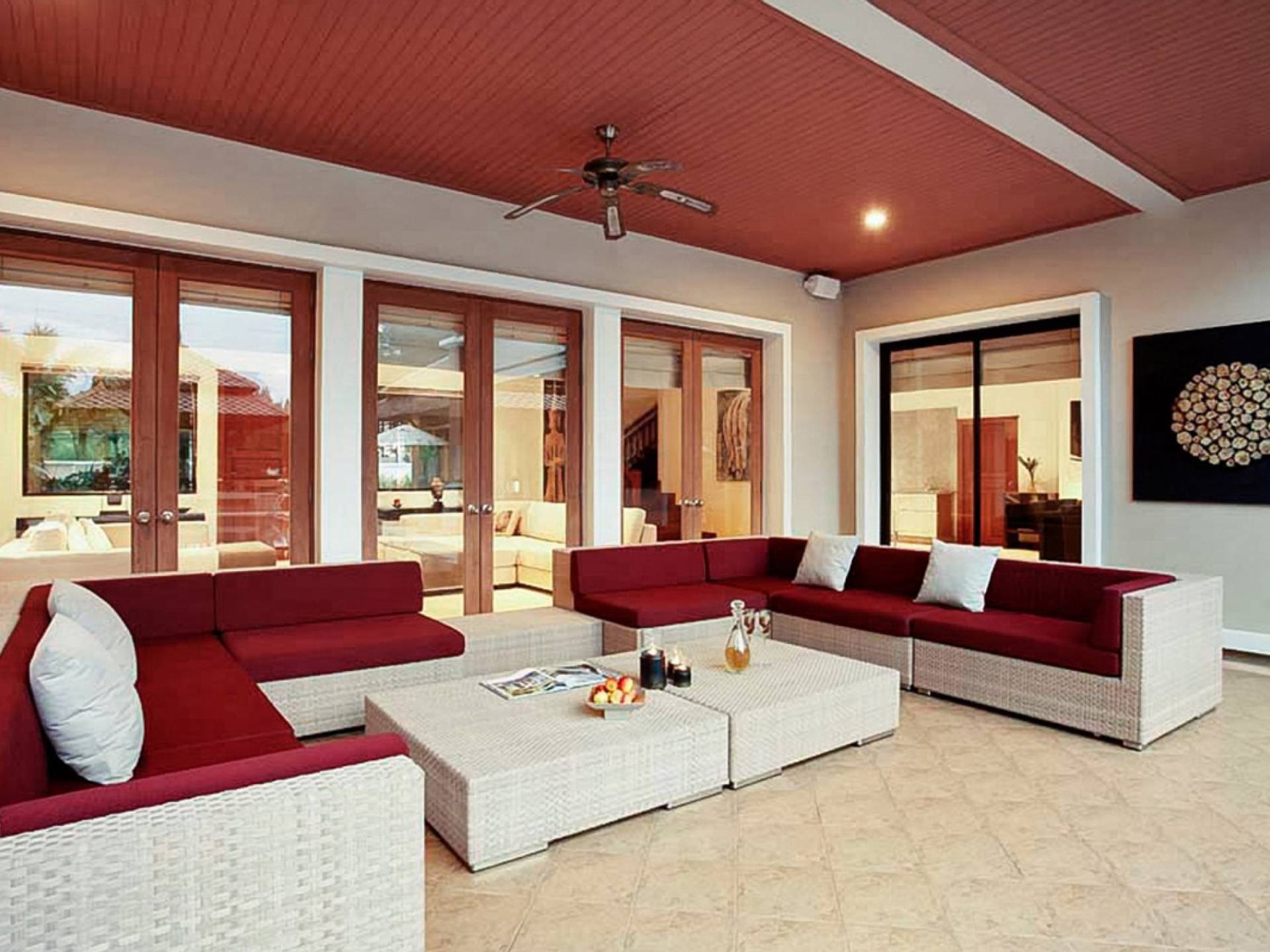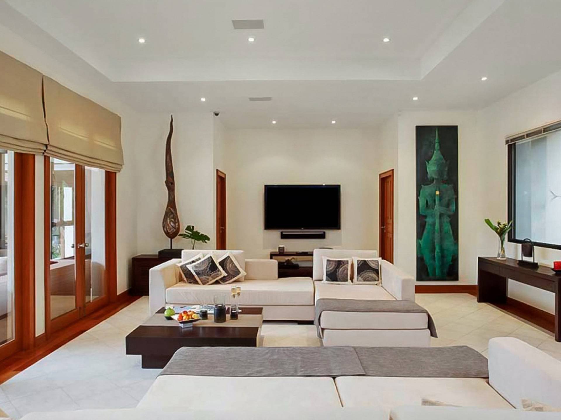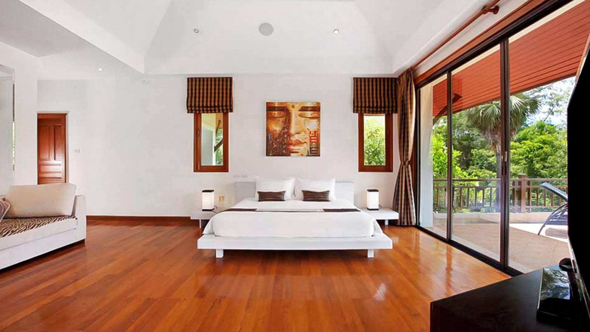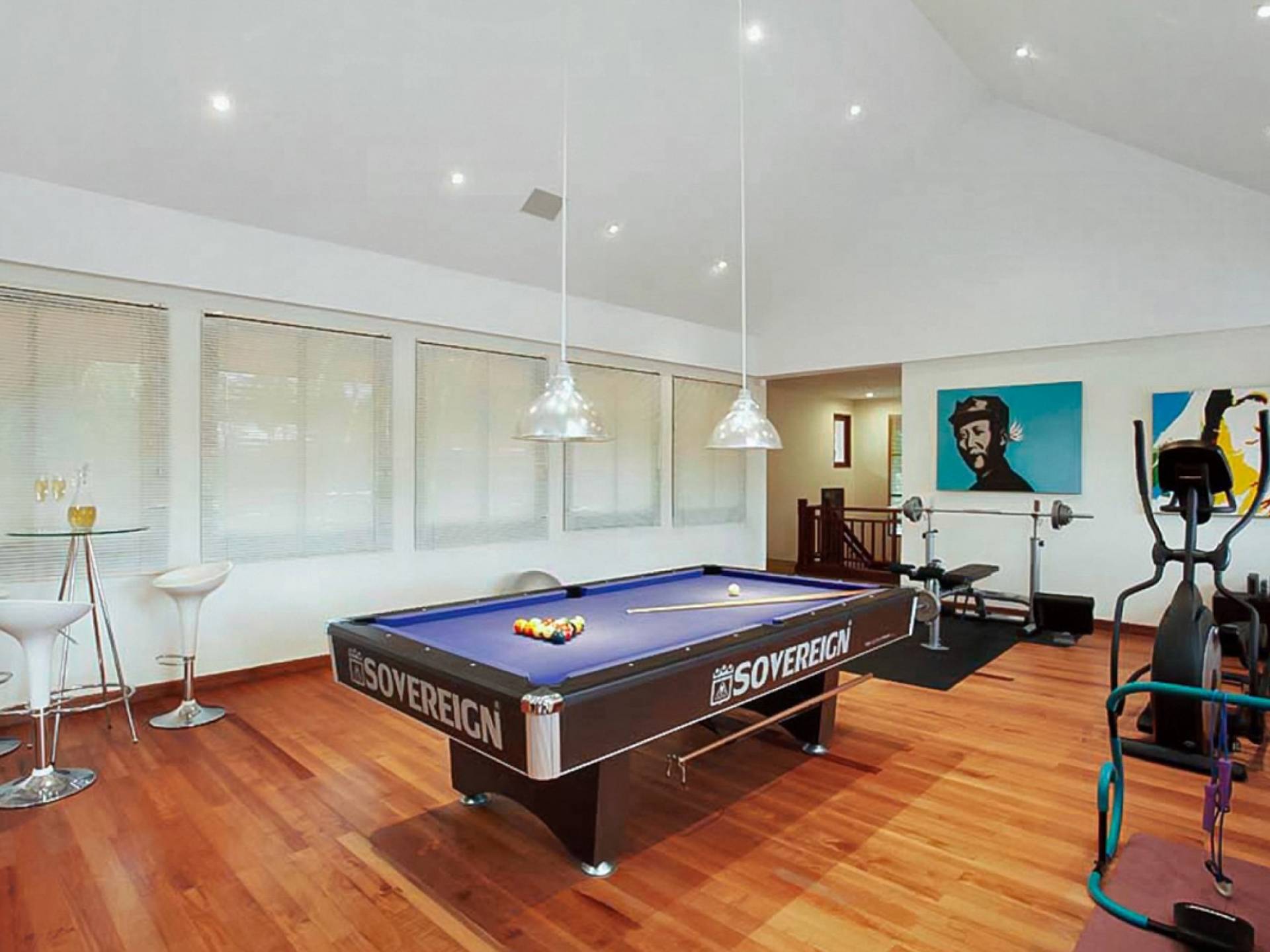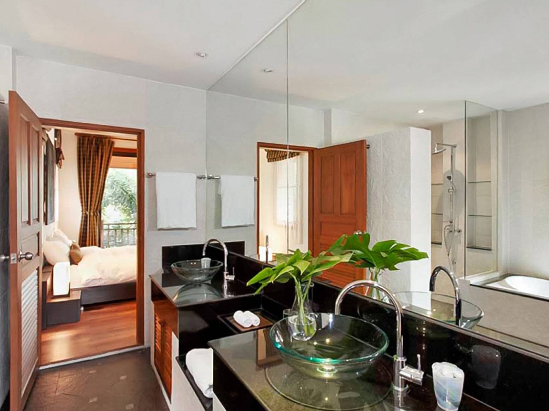 Die Doppelzimmer im Hauptgebäude verfügen alle über Kingsize-Betten, komfortable Möbel und eigene Badezimmer. Das Gästezimmer im Untergeschoss öffnet sich auf die Terrasse am Pool, während die großzügige Master-Suite im Obergeschoss über einen eigenen privaten Balkon verfügt, der mit Sonnenliegen ausgestattet ist und einen entspannenden Blick auf den See bietet. Ein eigenständiger Gästezimmer-Pavillon befindet sich am Pool, ebenfalls mit eigenem Bad und Türen, die sich auf die Sonnenterrasse öffnen. Der geräumige Innenraum verfügt über ein Sofa und einen Couchtisch zur Entspannung tagsüber. Die Hinzufügung von Flachbildfernsehern, einer Badewanne im Hauptbadezimmer und beruhigenden asiatischen Kunstwerken an den Wänden in den Schlafzimmern sorgen für ein ansprechendes Gefühl von privatem Luxus. Aktivere oder gemeinschaftliche Aktivitäten sind dank des zusätzlichen Spielzimmers und Fitnessraums im Obergeschoss mit Billardtisch, Gewichten und Fitnessgeräten gleichermaßen gut möglich.