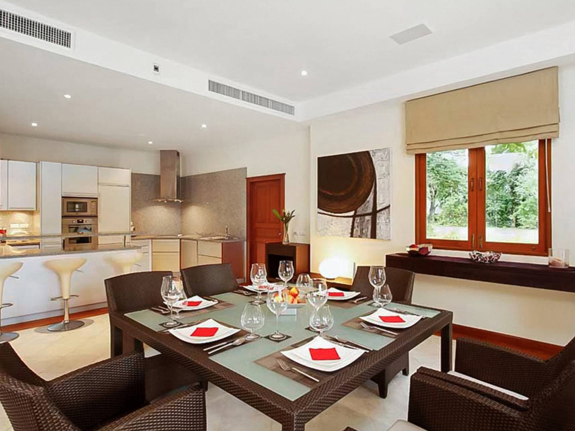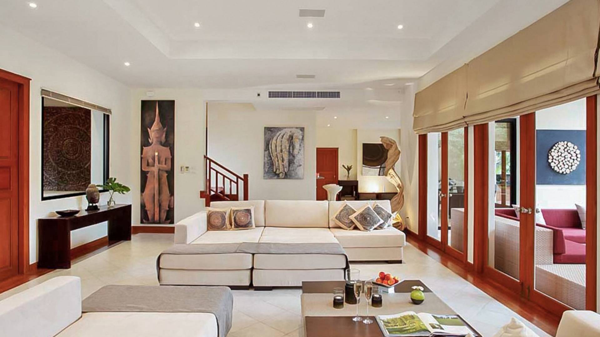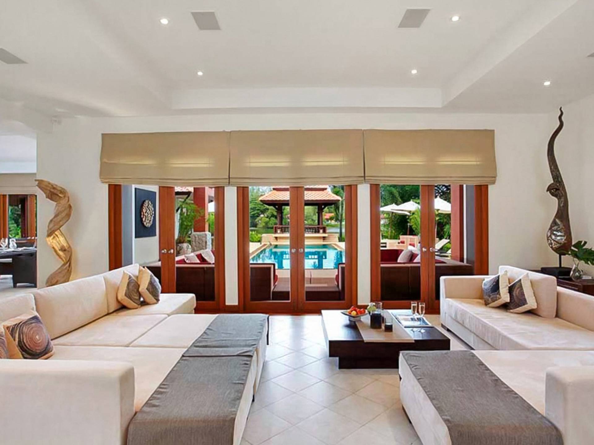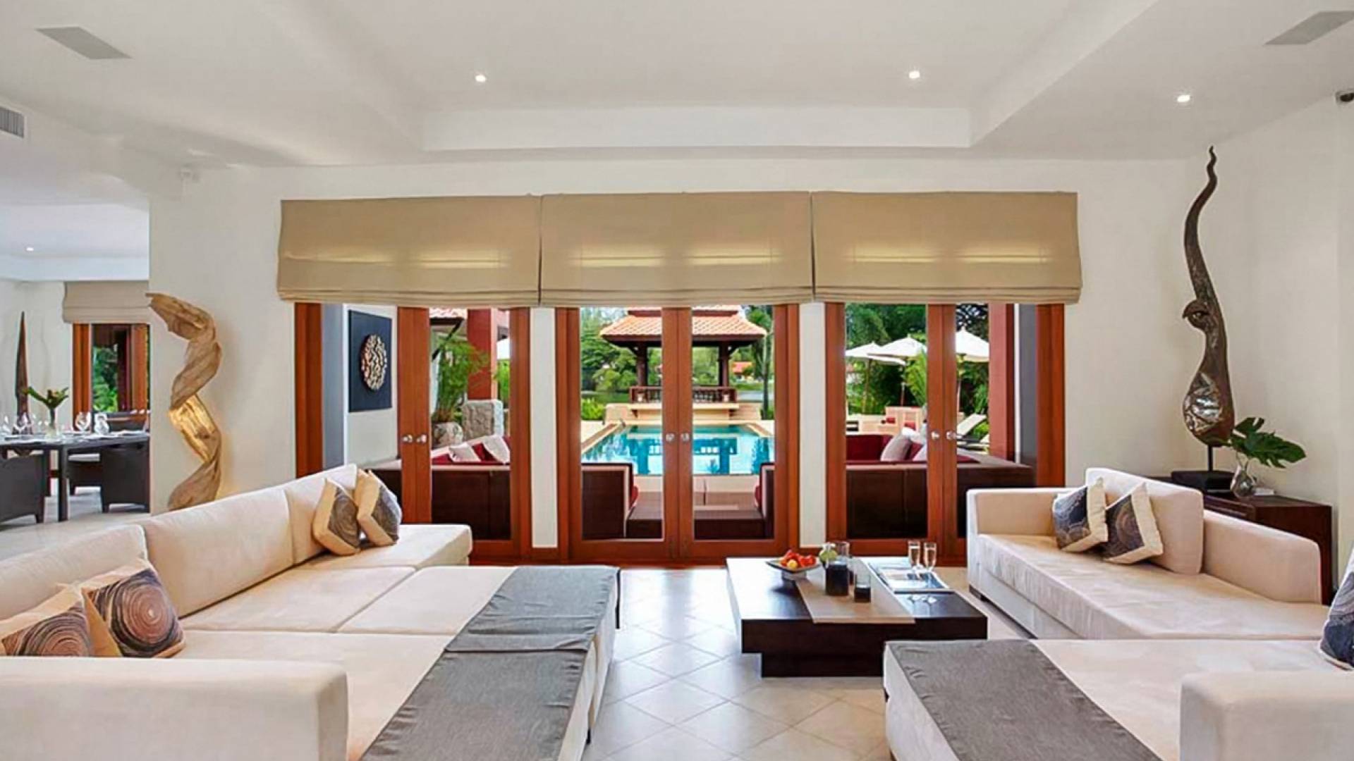 Das Laguna Waters Phuket bietet Gästen einen friedlichen und luxuriösen Rückzugsort auf der Insel im Herzen von Phukets edelster Enklave am Strand. Das weitläufige Anwesen mit 4 Schlafzimmern verfügt über ein zweistöckiges Haupthaus mit großzügigen, offenen Wohnbereichen sowie einen separaten Gästezimmer-Pavillon, die alle um einen 12 Meter langen Pool und eine komfortabel eingerichtete Sonnenterrasse angeordnet sind.