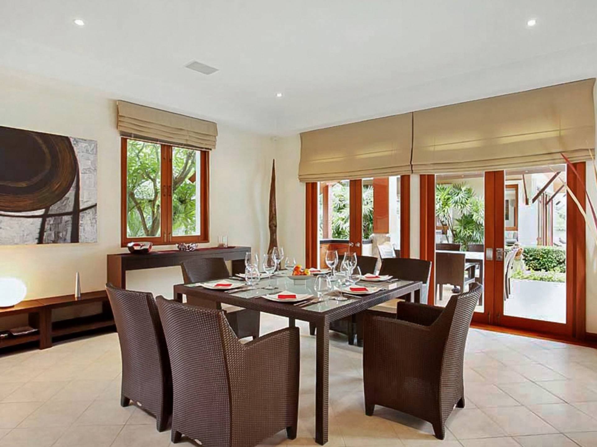 Das Layout und Design des Laguna Waters Phuket passt perfekt zu Gästen in einem privaten Familienurlaub oder einer Gruppe von Freunden, die sich eine schöne Urlaubszeit teilen. Sie können nicht nur leicht zwischen den Innen- und Außenwohnbereichen der Villa wechseln, sondern auch problemlos zwischen privater Abgeschiedenheit und gemeinschaftlichem Spaß, Essen und Unterhaltung wechseln. Der Aufenthalt im Laguna-Komplex bedeutet, dass die Gäste auch Zugang zu einer großen Auswahl an Restaurants, Einkaufsmöglichkeiten und Erholungsmöglichkeiten haben. Das Gebiet umfasst eine Reihe von Weltklasse-Resort-Restaurants, verwöhnende Spas, ein Einkaufsdorf, einen 18-Loch-Golfplatz und einen gehobenen Strandclub mit regelmäßigen Partys und Veranstaltungen.