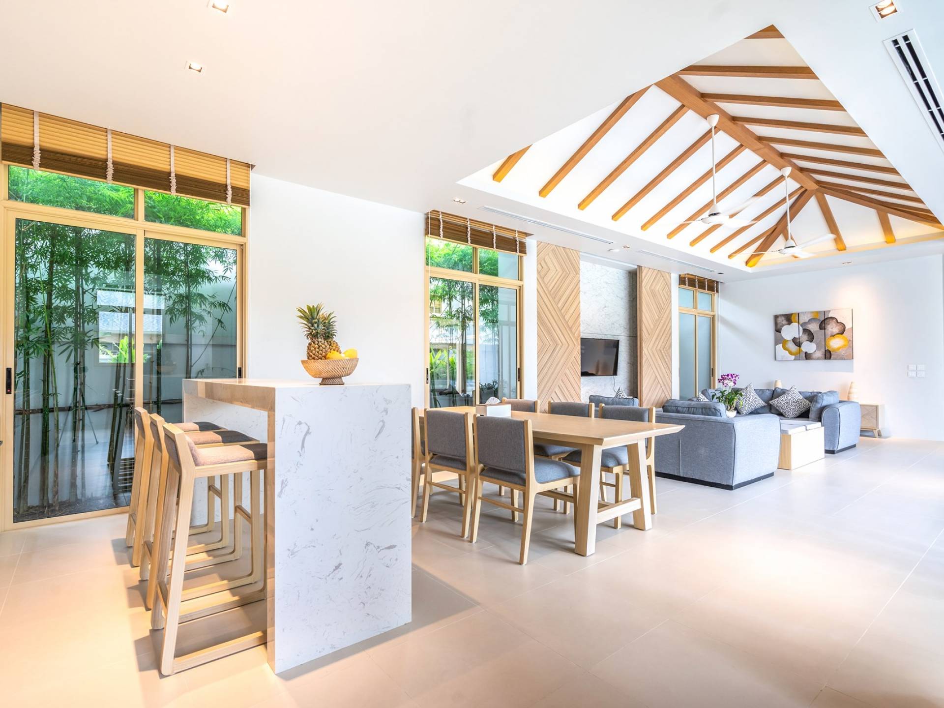 In der Villa befindet sich ein iPad, auf dem Sie Frühstück, Touren, Massagen und vieles mehr bestellen können. Das große Hauptschlafzimmer hat eine eigene Terrasse und direkten Zugang zum Pool und verfügt über eine Badewanne. Das zweite, dritte und vierte Schlafzimmer haben ebenfalls einen direkten Zugang zum Gartenbereich. Alle Schlafzimmer haben ein eigenes Bad. Der zusätzliche Raum wurde geschaffen, damit die Gäste mehrere Bereiche zum Entspannen im Innen- und Außenbereich haben. Obwohl der Kamala Beach nur wenige Gehminuten von der Villa entfernt ist, gibt es 12 Mal am Tag einen kostenlosen Shuttlebus, falls Sie sich etwas müde fühlen oder das Gehen nichts für Sie ist.