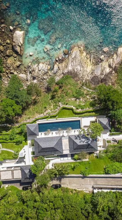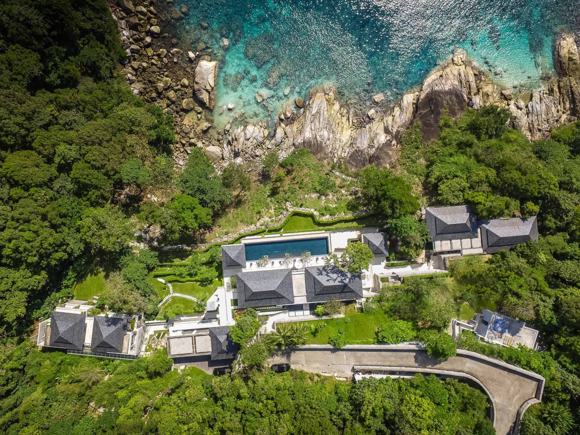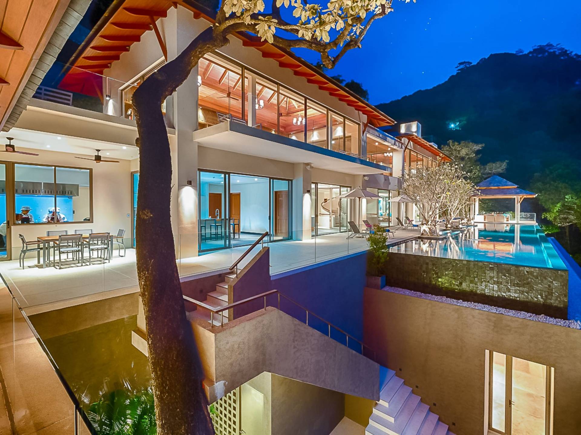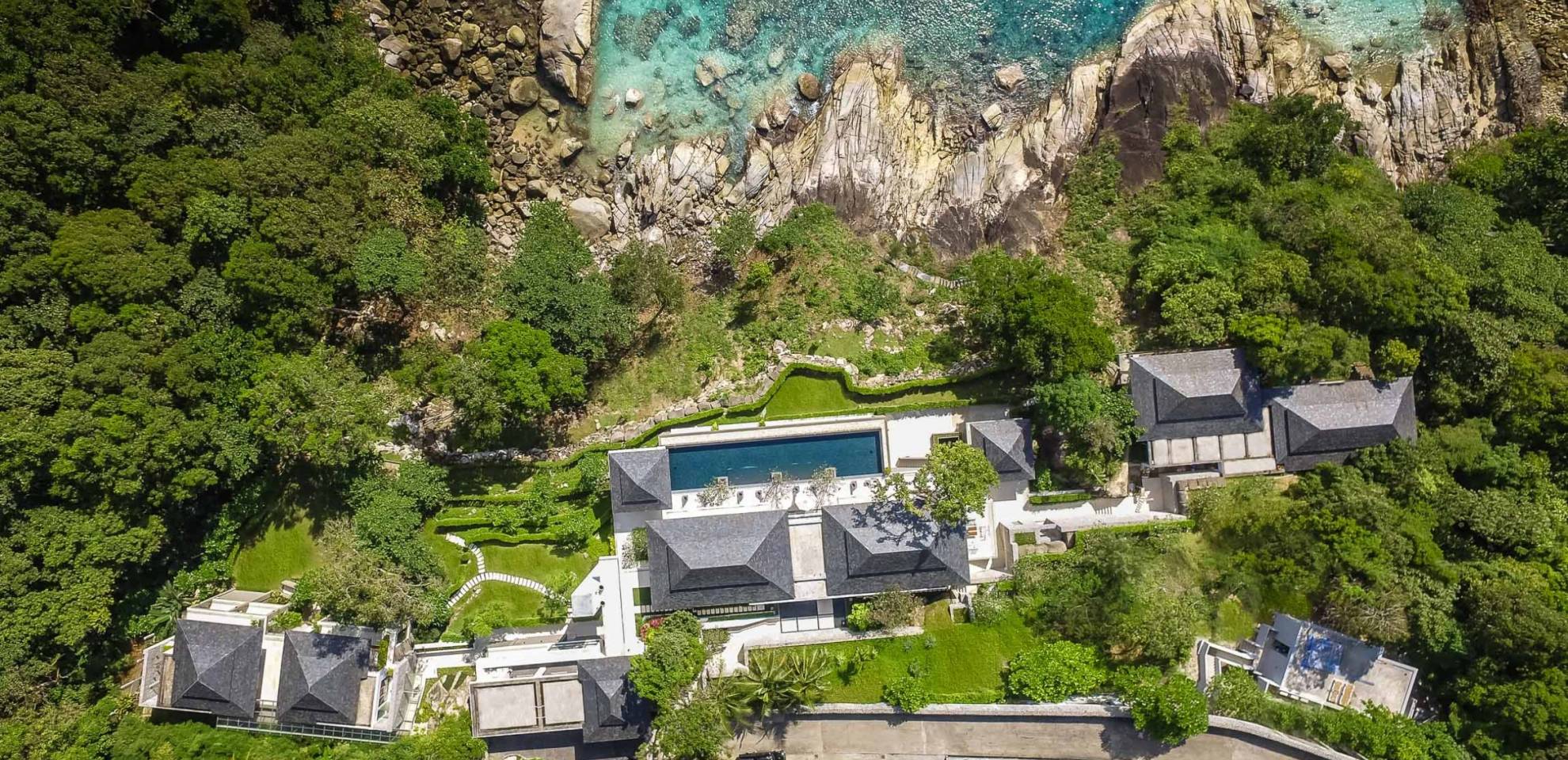 Willkommen in der Aquila Villa Phuket, einer bemerkenswerten tropischen Villa, die aus sieben Schlafzimmern besteht, die sich über ein fast drei Hektar großes Grundstück auf einer Klippe mit 165 Meter Fassade verteilen. Eines der Dinge, die das Anwesen einzigartig machen, ist, wie privat und abgeschieden es ist. Nachts gibt es auf einem entfernten Hügel etwa einen halben Kilometer weiter südöstlich nur eine einzige Lichterkette.