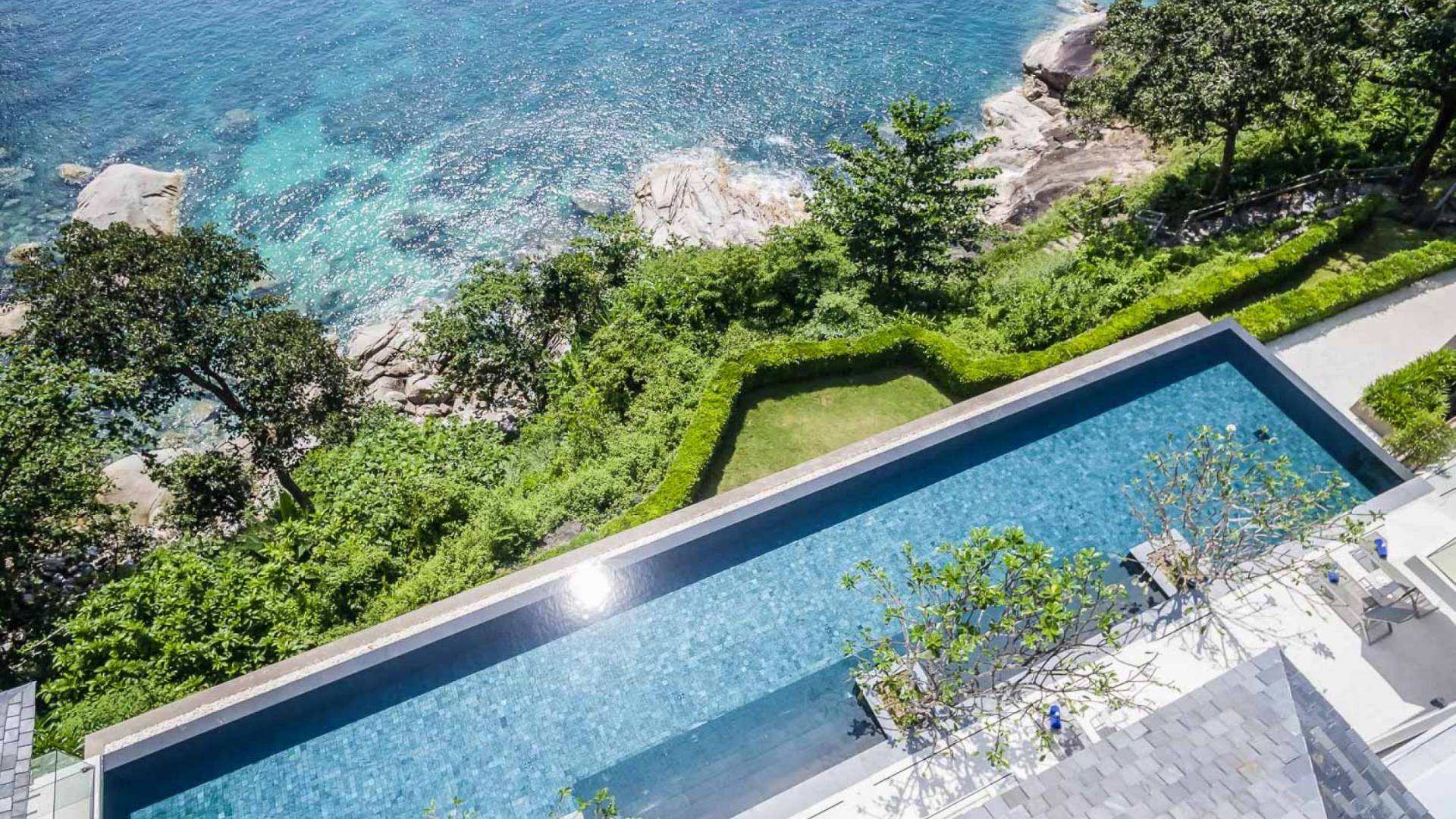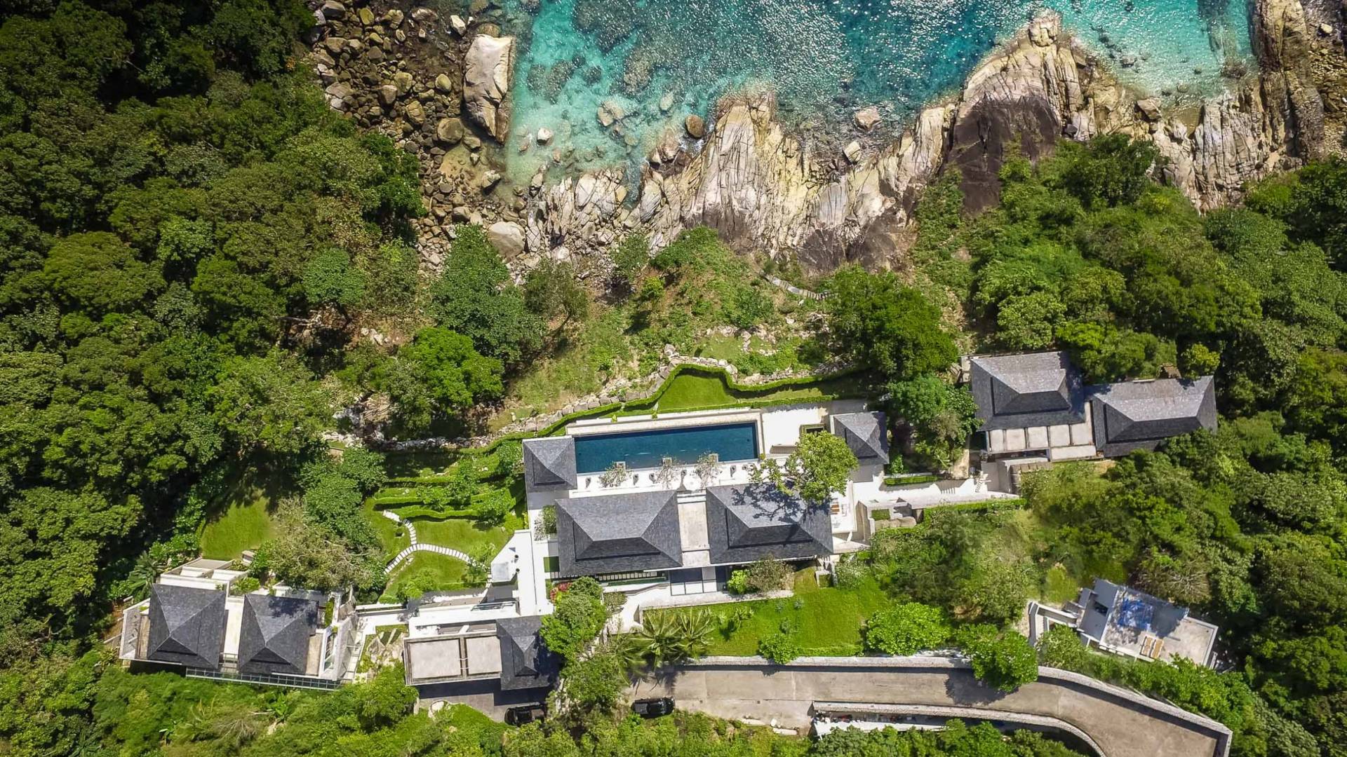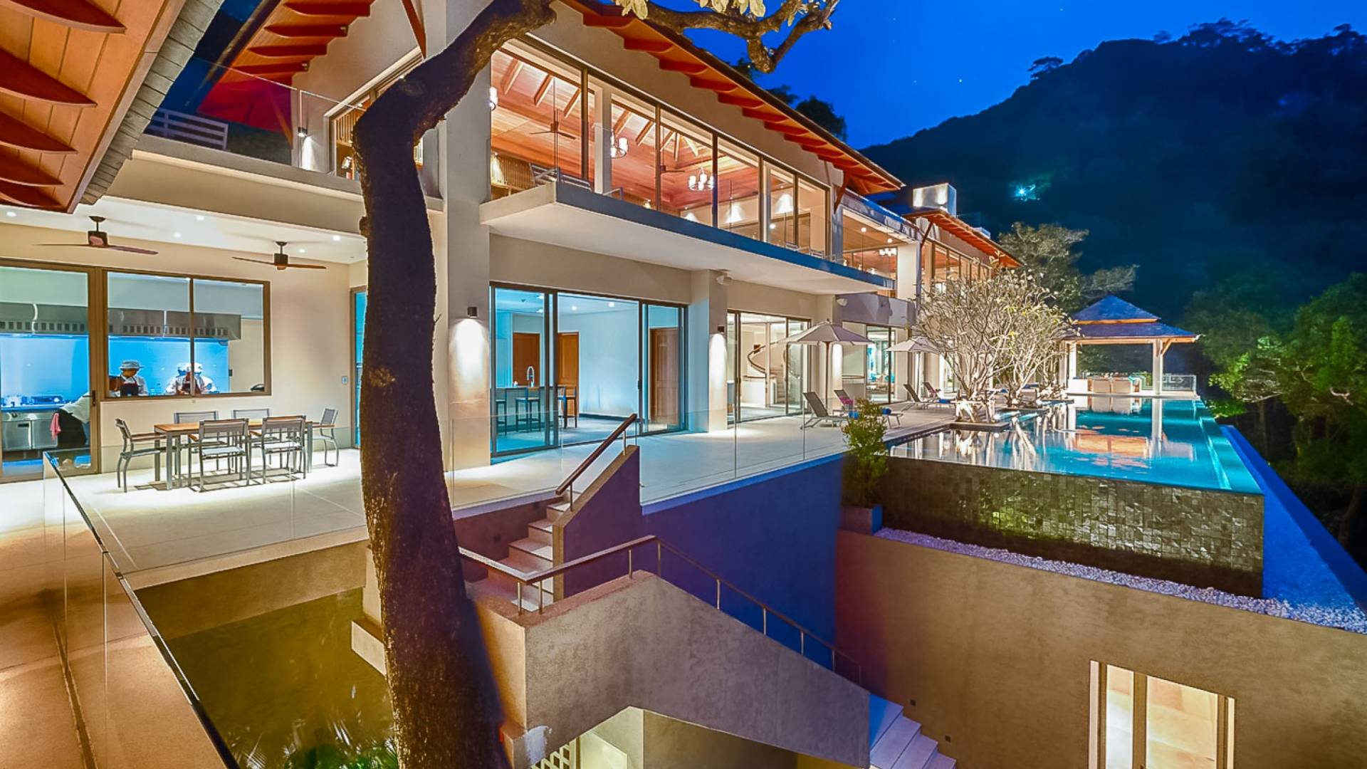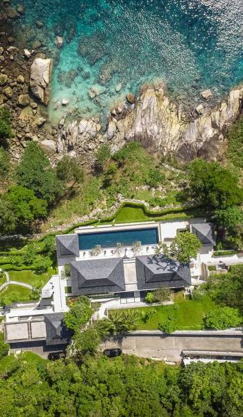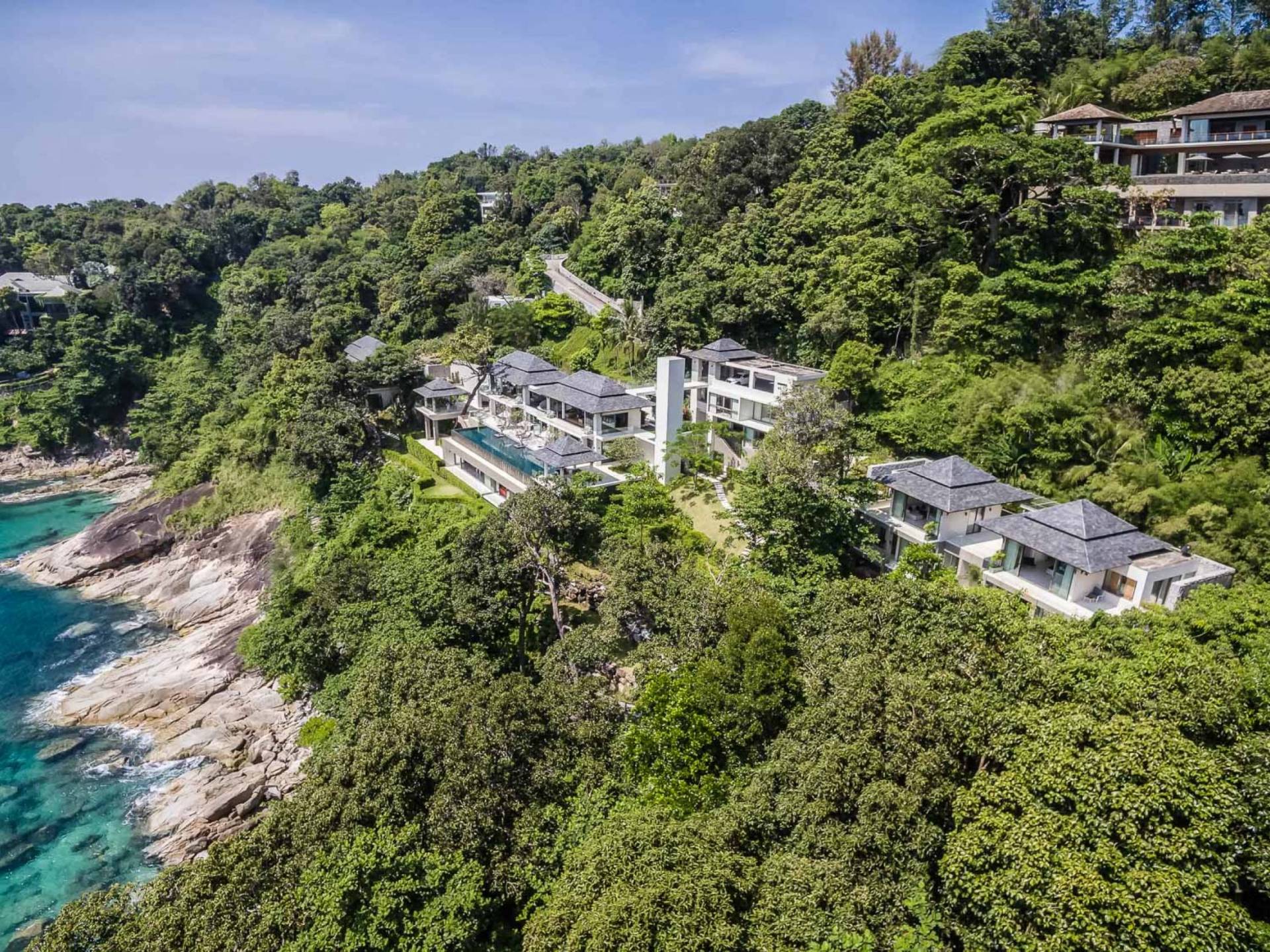 Willkommen in der Aquila Villa Phuket, einer bemerkenswerten tropischen Villa, die aus sieben Schlafzimmern besteht, die sich über ein fast drei Hektar großes Grundstück auf einer Klippe mit 165 Meter Fassade verteilen. Eines der Dinge, die das Anwesen einzigartig machen, ist, wie privat und abgeschieden es ist. Nachts gibt es auf einem entfernten Hügel etwa einen halben Kilometer weiter südöstlich nur eine einzige Lichterkette.