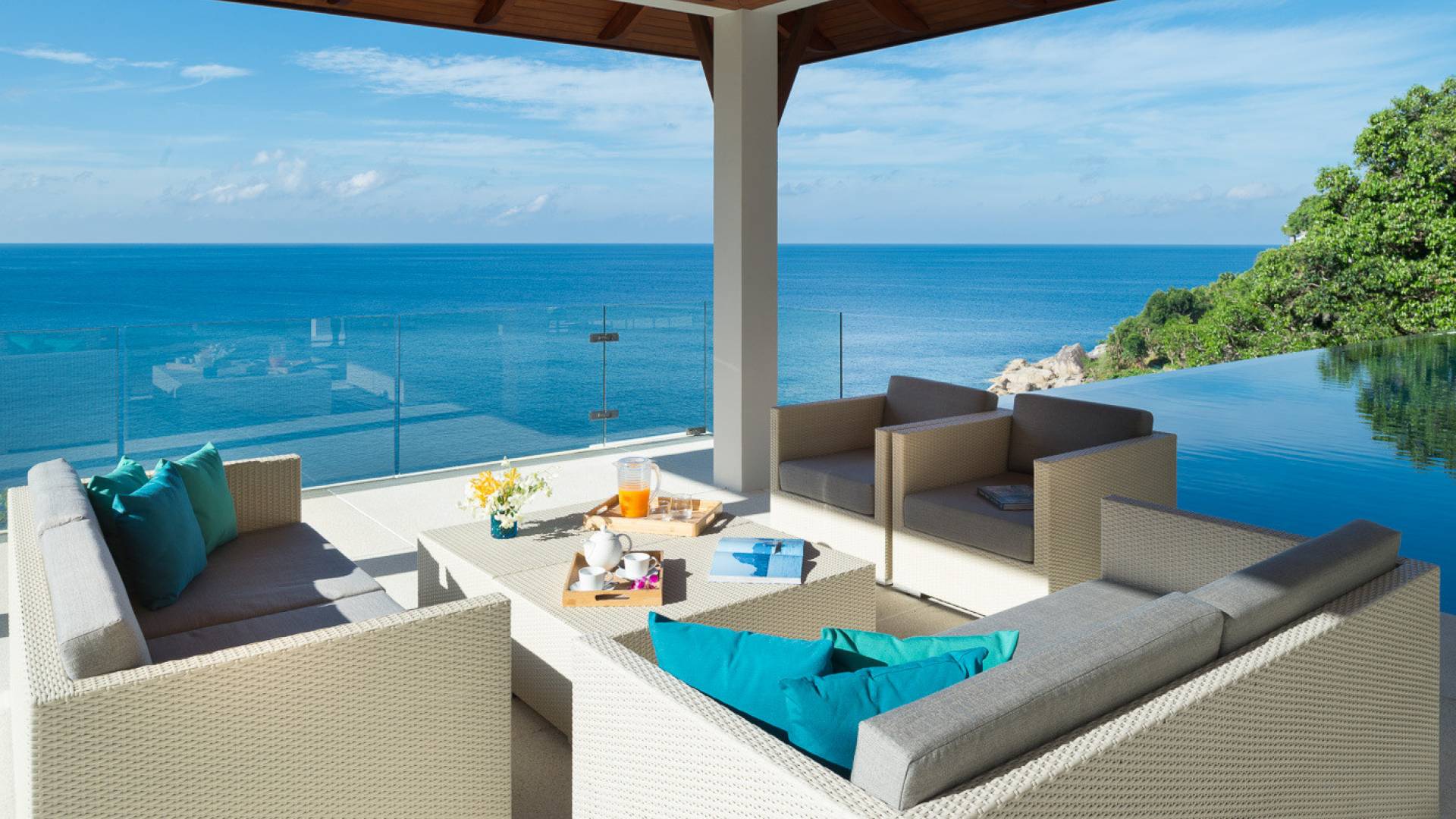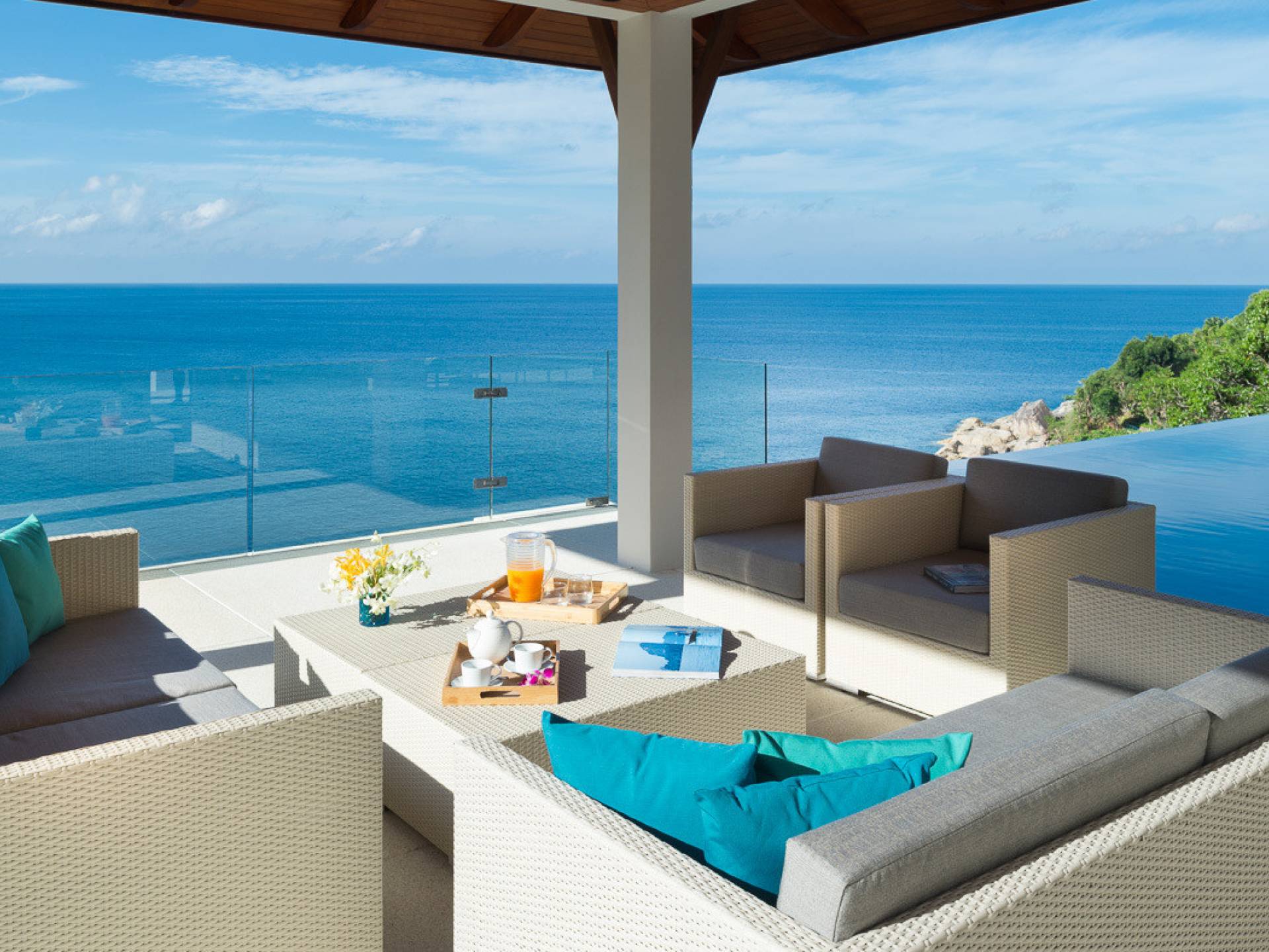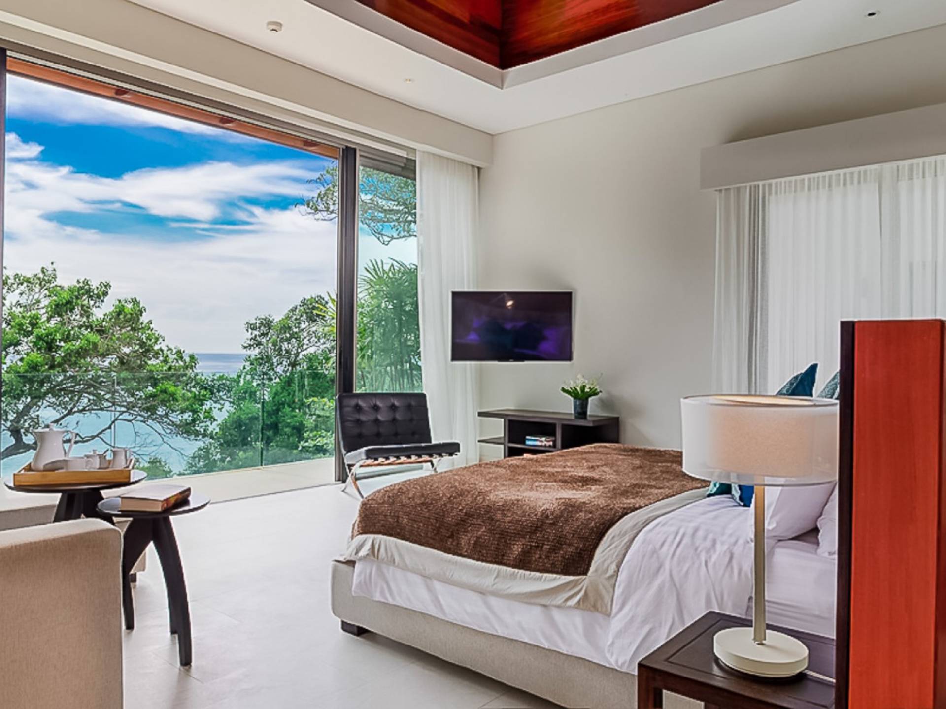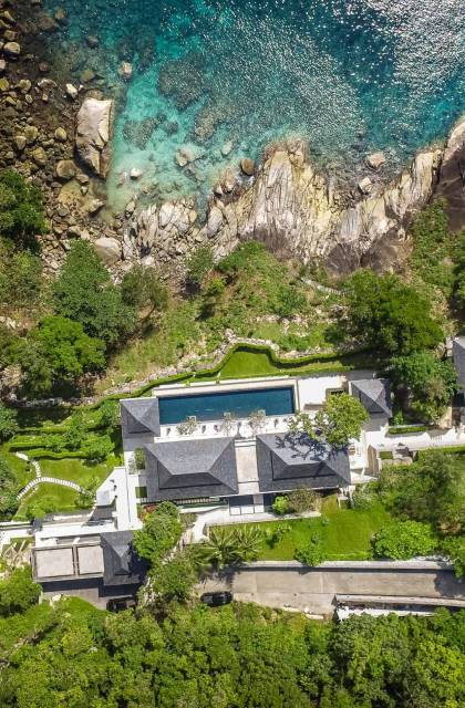 Willkommen in der Aquila Villa Phuket, einer bemerkenswerten tropischen Villa, die aus sieben Schlafzimmern besteht, die sich über ein fast drei Hektar großes Grundstück auf einer Klippe mit 165 Meter Fassade verteilen. Eines der Dinge, die das Anwesen einzigartig machen, ist, wie privat und abgeschieden es ist. Nachts gibt es auf einem entfernten Hügel etwa einen halben Kilometer weiter südöstlich nur eine einzige Lichterkette.