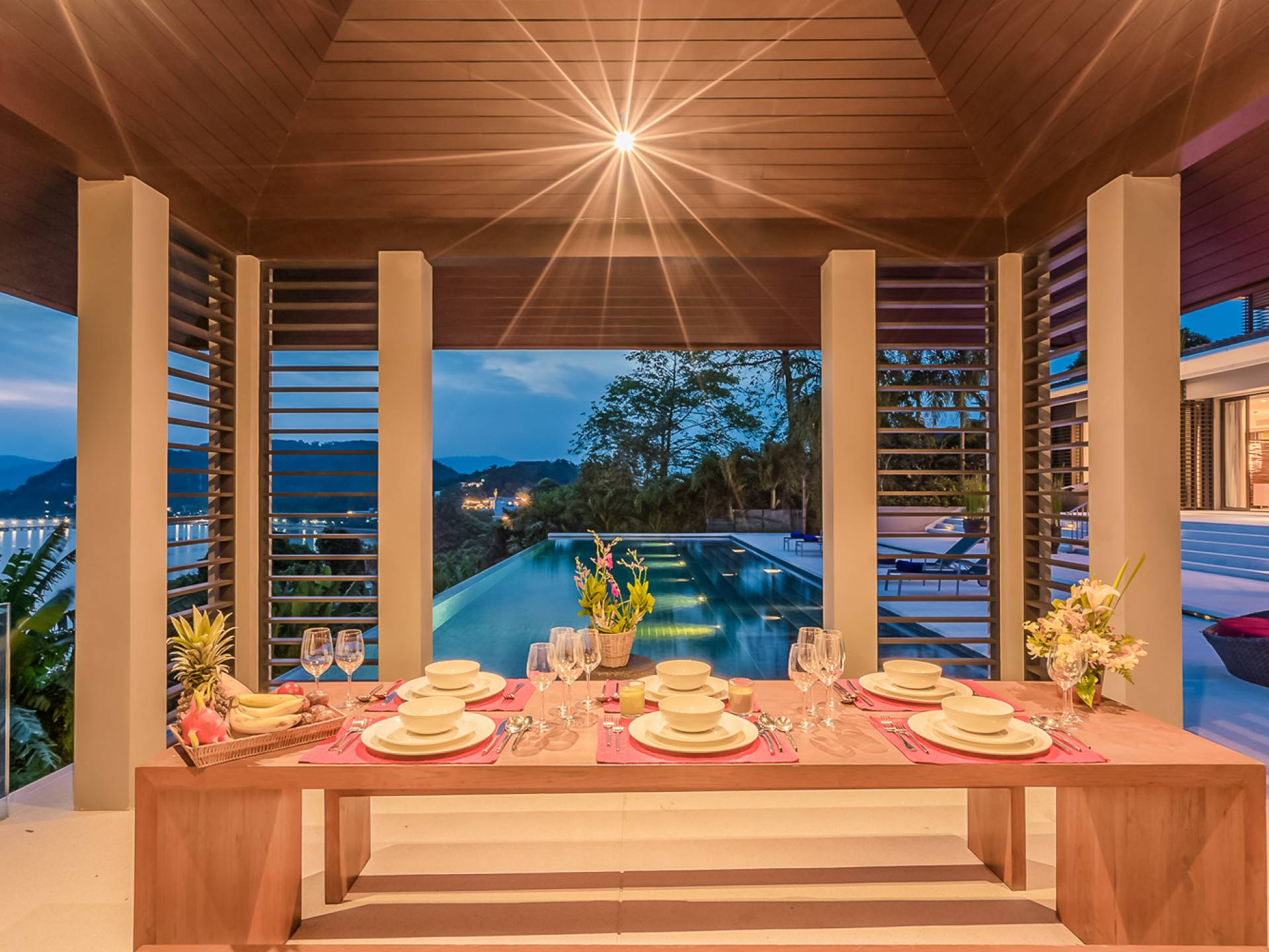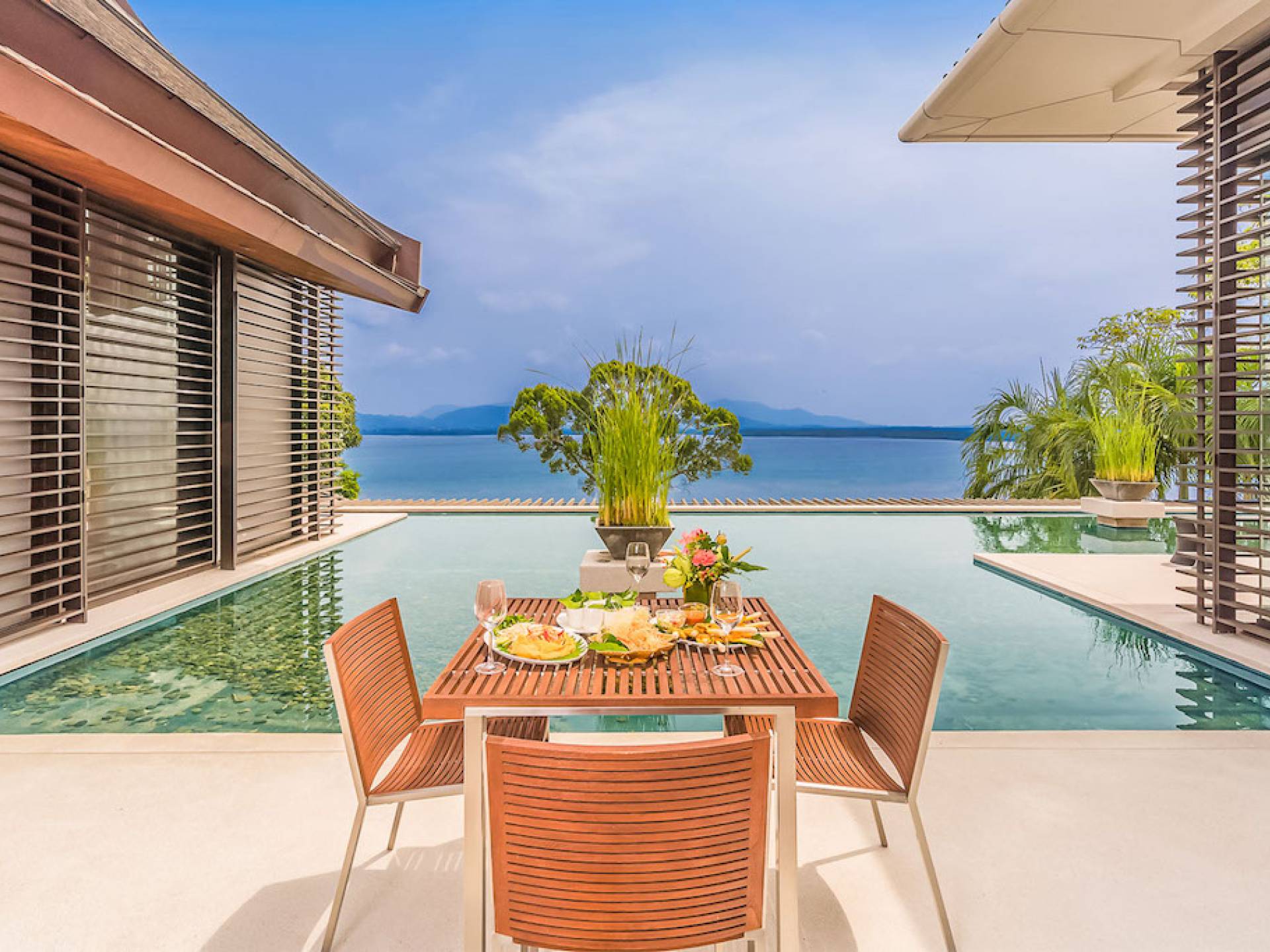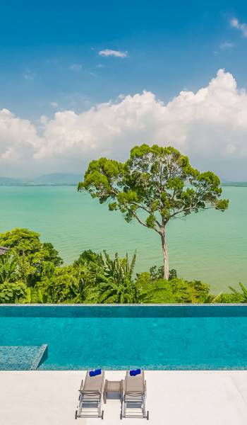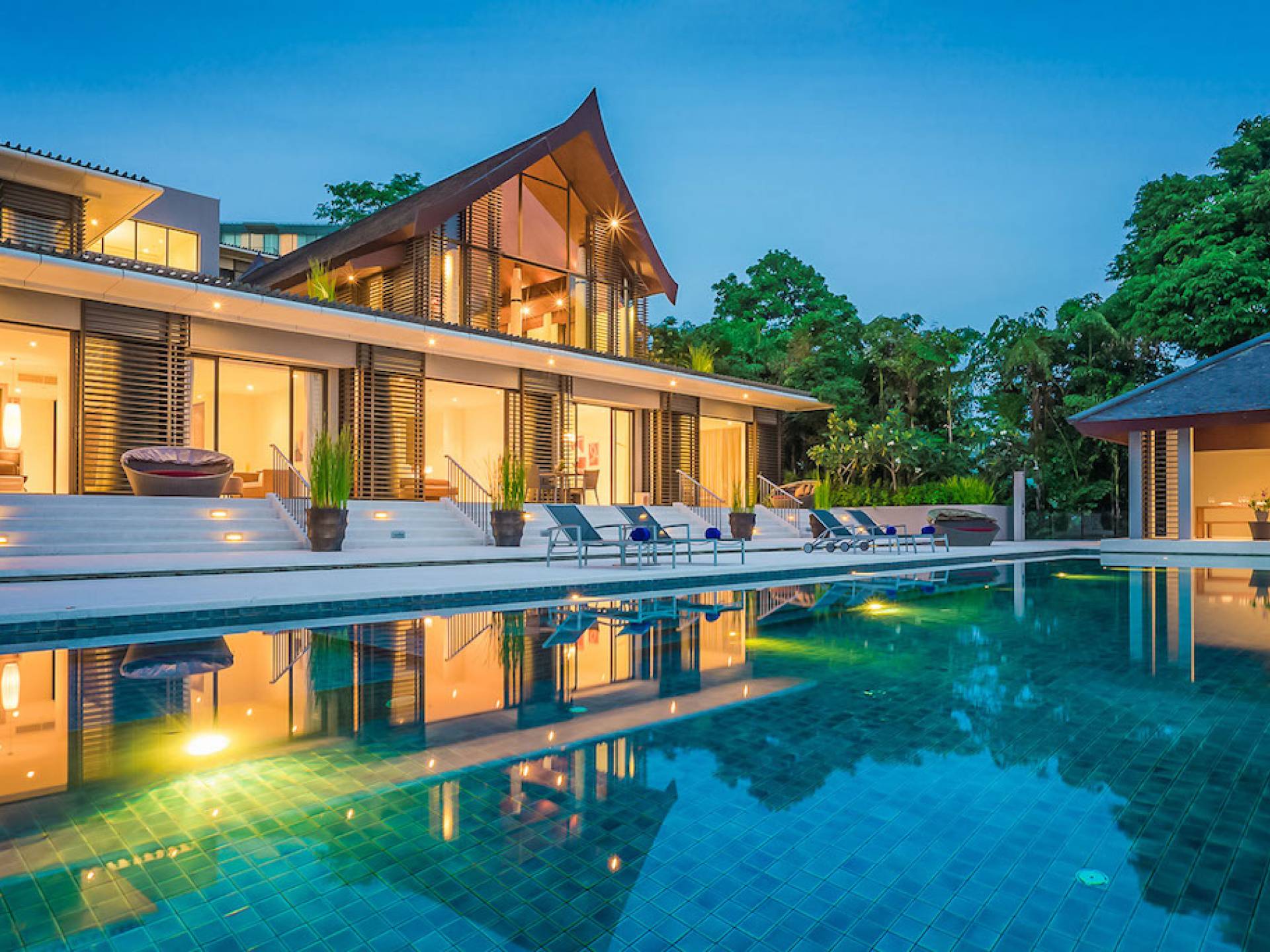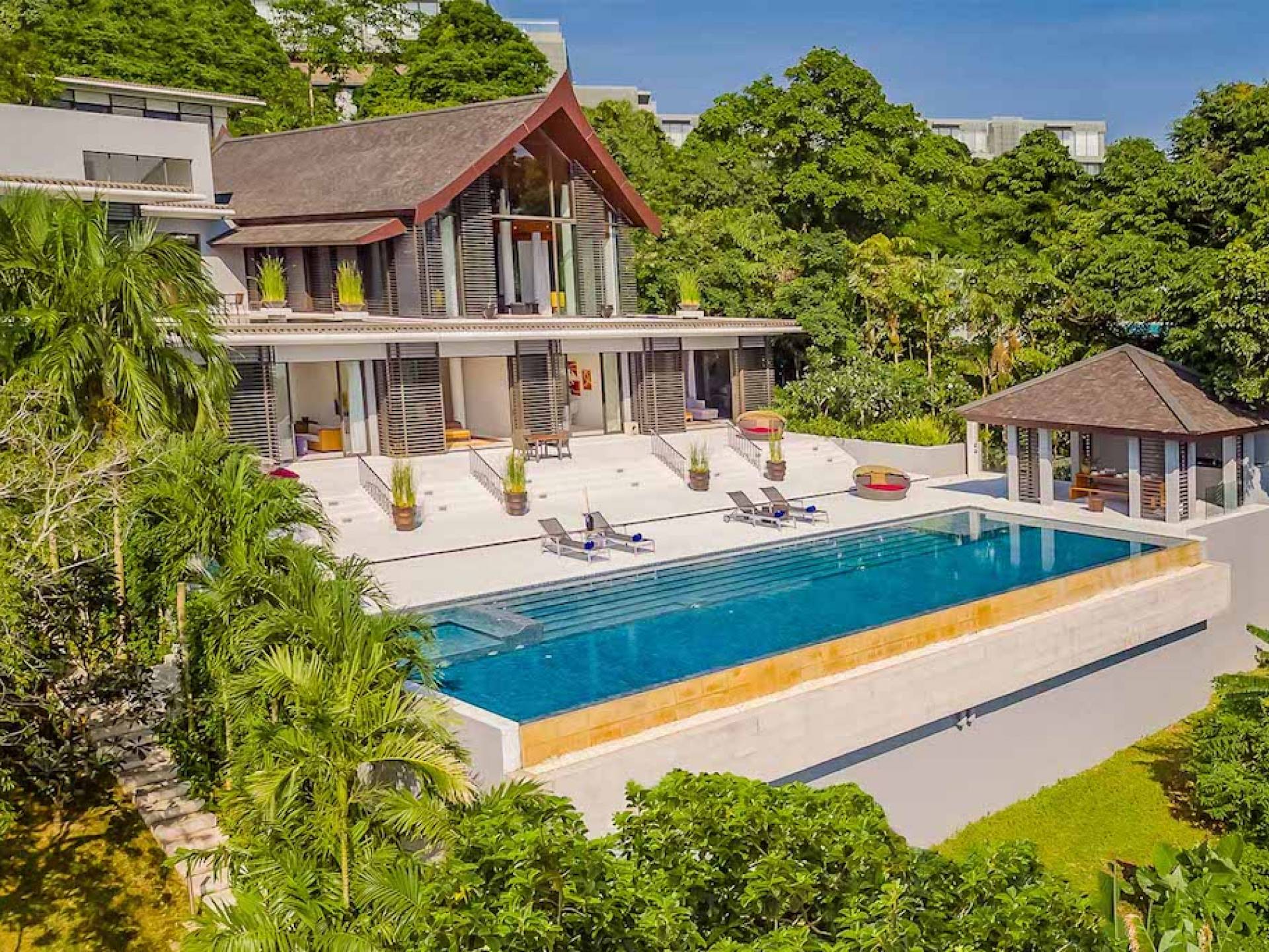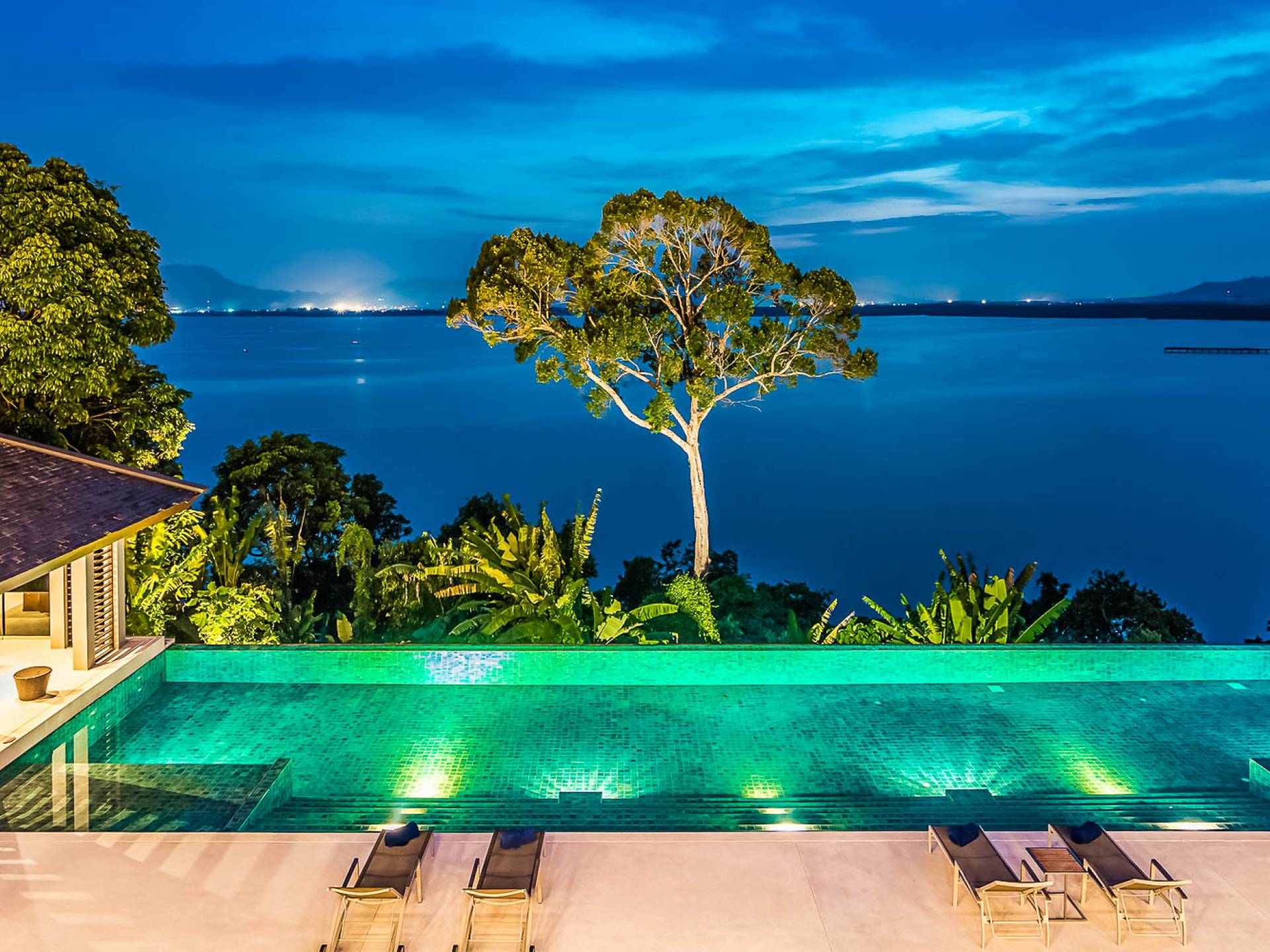 Auf einem smaragdgrünen Hügel mit freiem Blick über die Bucht von Phang Nga liegt die luxuriöse Villa Baan Maprao Phuket mit fünf Schlafzimmern. Diese elegante Privatvilla auf der exklusiven Halbinsel Cape Yamu im Osten Phukets bietet opulentes Wohnen im Innen- und Außenbereich mit Fünf-Sterne-Ausstattung, darunter ein 22-Meter-Infinity-Pool und ein privater Kinoraum. Das von Philippe Starck und Jean-Michel Gathy entworfene Baan Maprao bietet eine moderne Interpretation des traditionellen thailändischen Stils. Die Villa ist perfekt für Familien und Freunde und verfügt über einen Manager, Koch und Villa-Betreuer und bietet schnellen Zugang zu einigen der spektakulärsten Sehenswürdigkeiten Phukets.