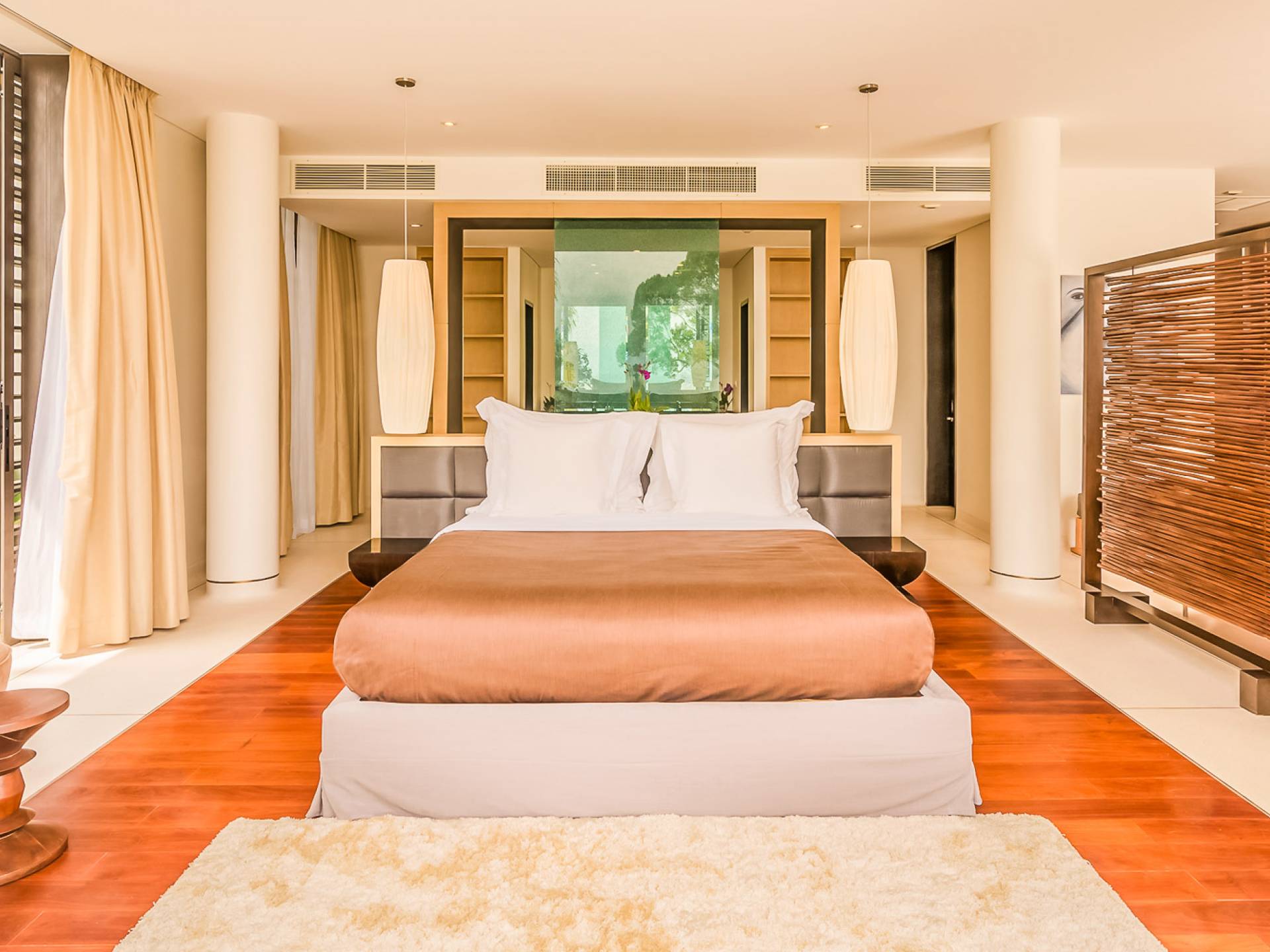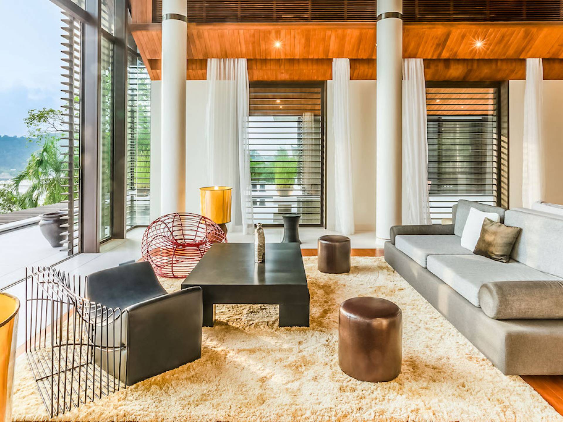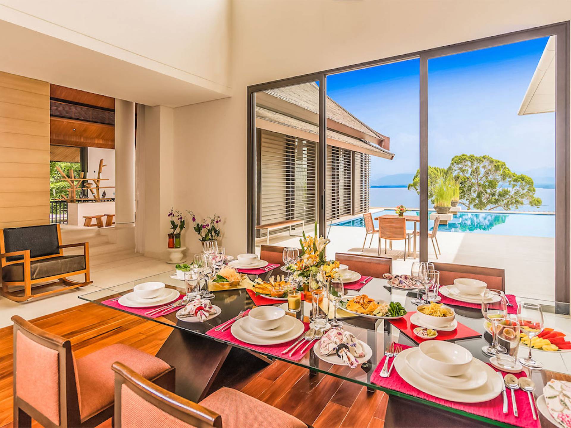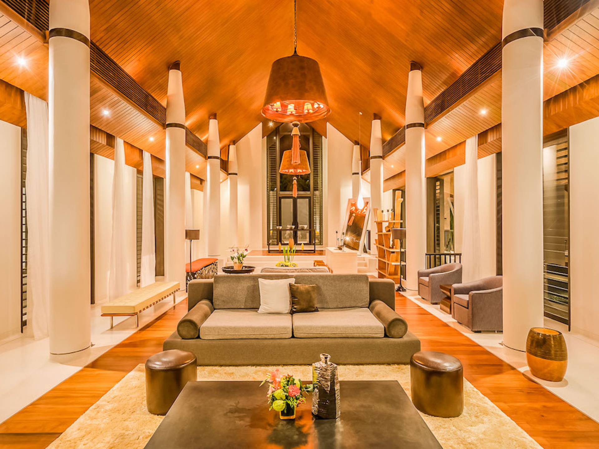 Auf einem smaragdgrünen Hügel mit freiem Blick über die Bucht von Phang Nga liegt die luxuriöse Villa Baan Maprao Phuket mit fünf Schlafzimmern. Diese elegante Privatvilla auf der exklusiven Halbinsel Cape Yamu im Osten Phukets bietet opulentes Wohnen im Innen- und Außenbereich mit Fünf-Sterne-Ausstattung, darunter ein 22-Meter-Infinity-Pool und ein privater Kinoraum. Das von Philippe Starck und Jean-Michel Gathy entworfene Baan Maprao bietet eine moderne Interpretation des traditionellen thailändischen Stils. Die Villa ist perfekt für Familien und Freunde und verfügt über einen Manager, Koch und Villa-Betreuer und bietet schnellen Zugang zu einigen der spektakulärsten Sehenswürdigkeiten Phukets.