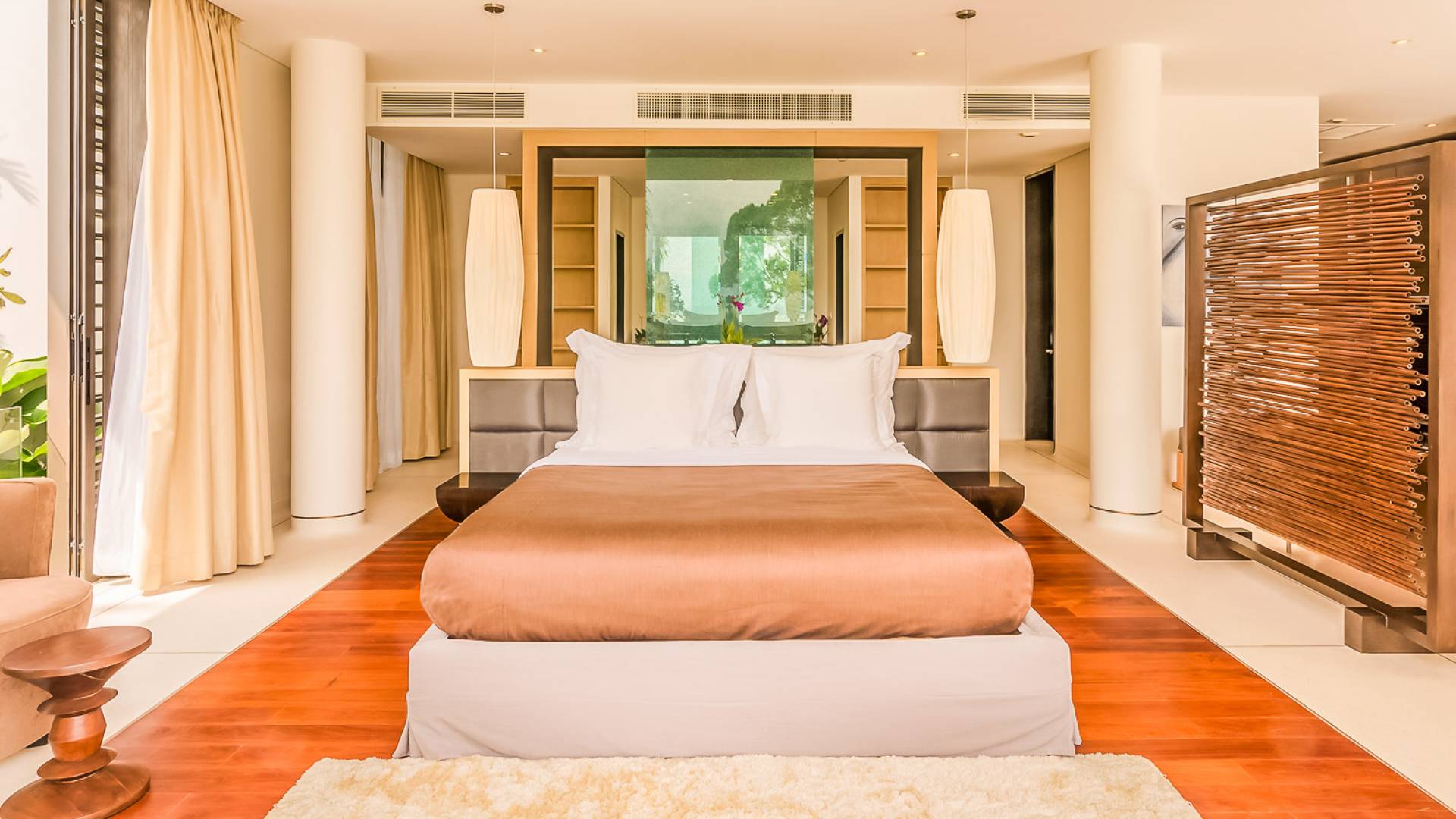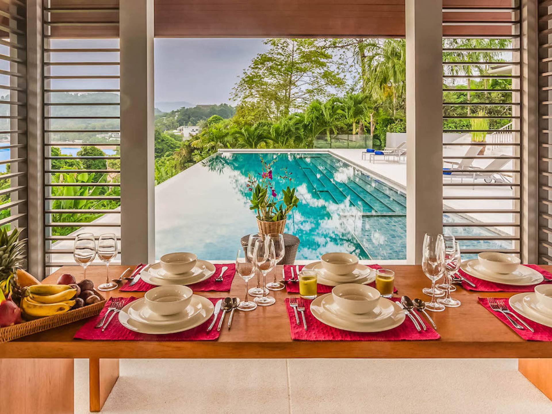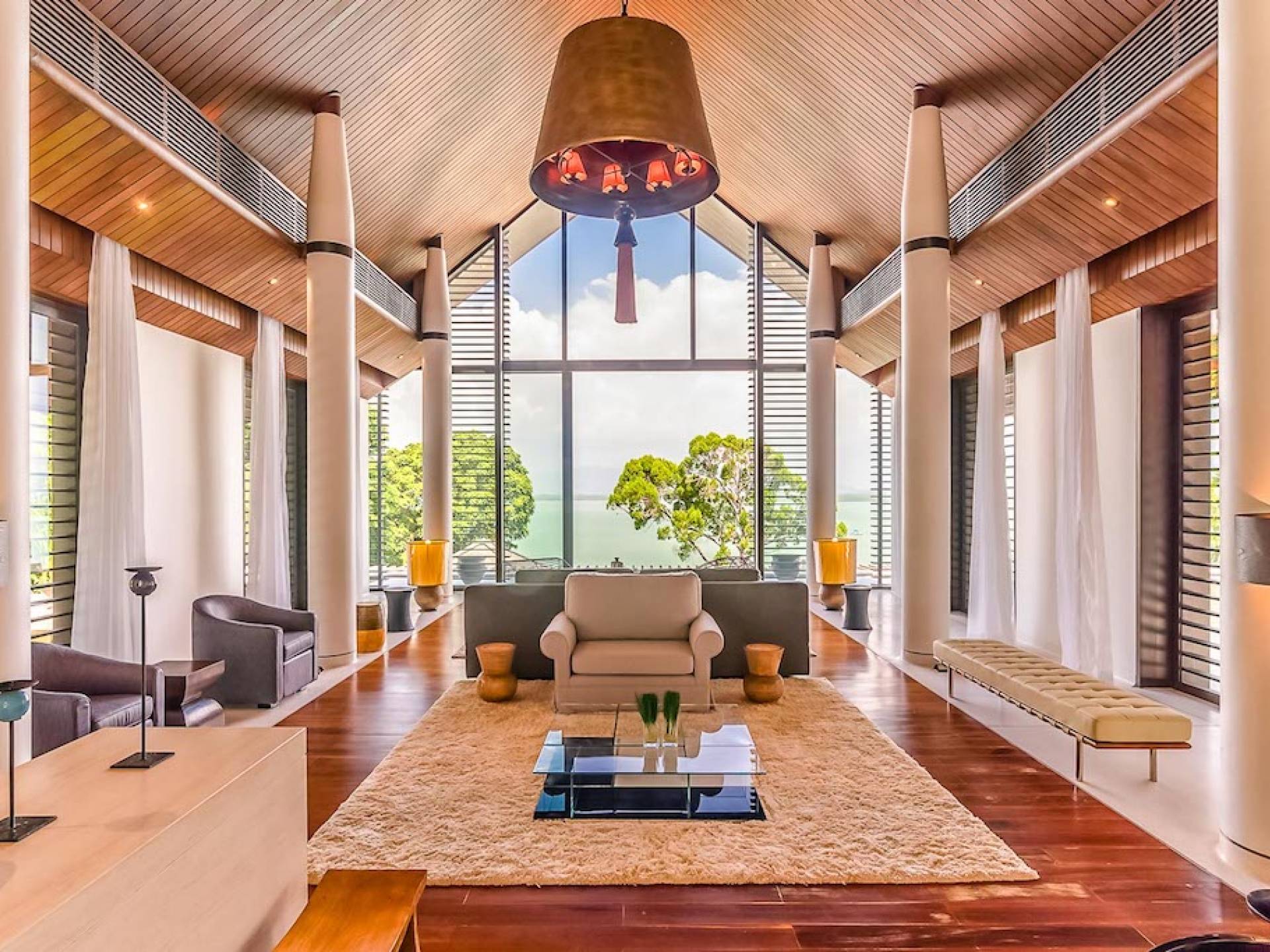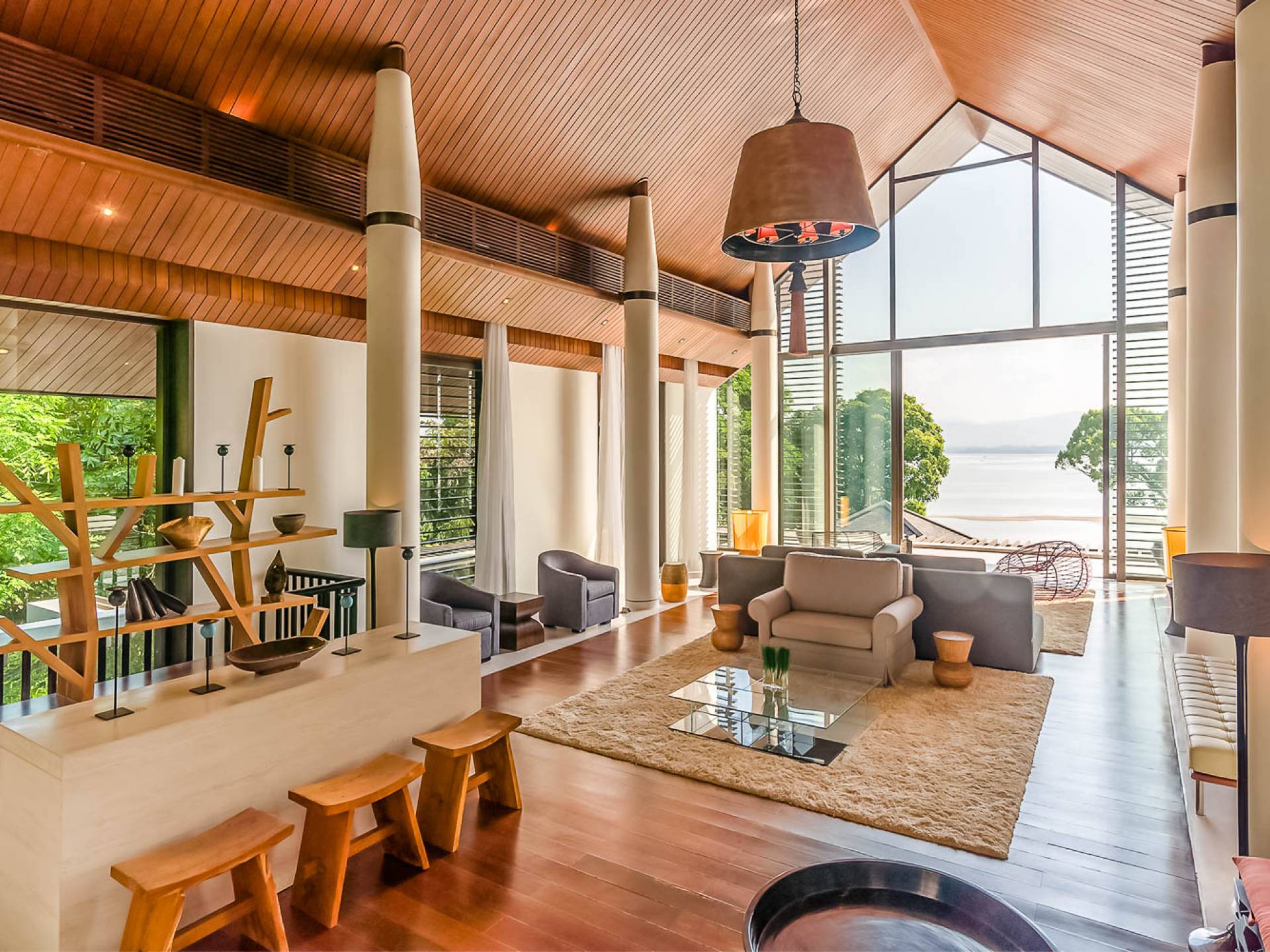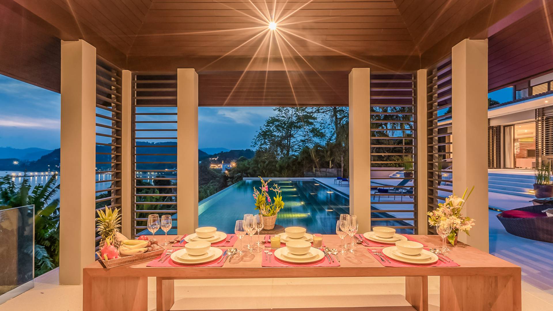 Auf einem smaragdgrünen Hügel mit freiem Blick über die Bucht von Phang Nga liegt die luxuriöse Villa Baan Maprao Phuket mit fünf Schlafzimmern. Diese elegante Privatvilla auf der exklusiven Halbinsel Cape Yamu im Osten Phukets bietet opulentes Wohnen im Innen- und Außenbereich mit Fünf-Sterne-Ausstattung, darunter ein 22-Meter-Infinity-Pool und ein privater Kinoraum. Das von Philippe Starck und Jean-Michel Gathy entworfene Baan Maprao bietet eine moderne Interpretation des traditionellen thailändischen Stils. Die Villa ist perfekt für Familien und Freunde und verfügt über einen Manager, Koch und Villa-Betreuer und bietet schnellen Zugang zu einigen der spektakulärsten Sehenswürdigkeiten Phukets.