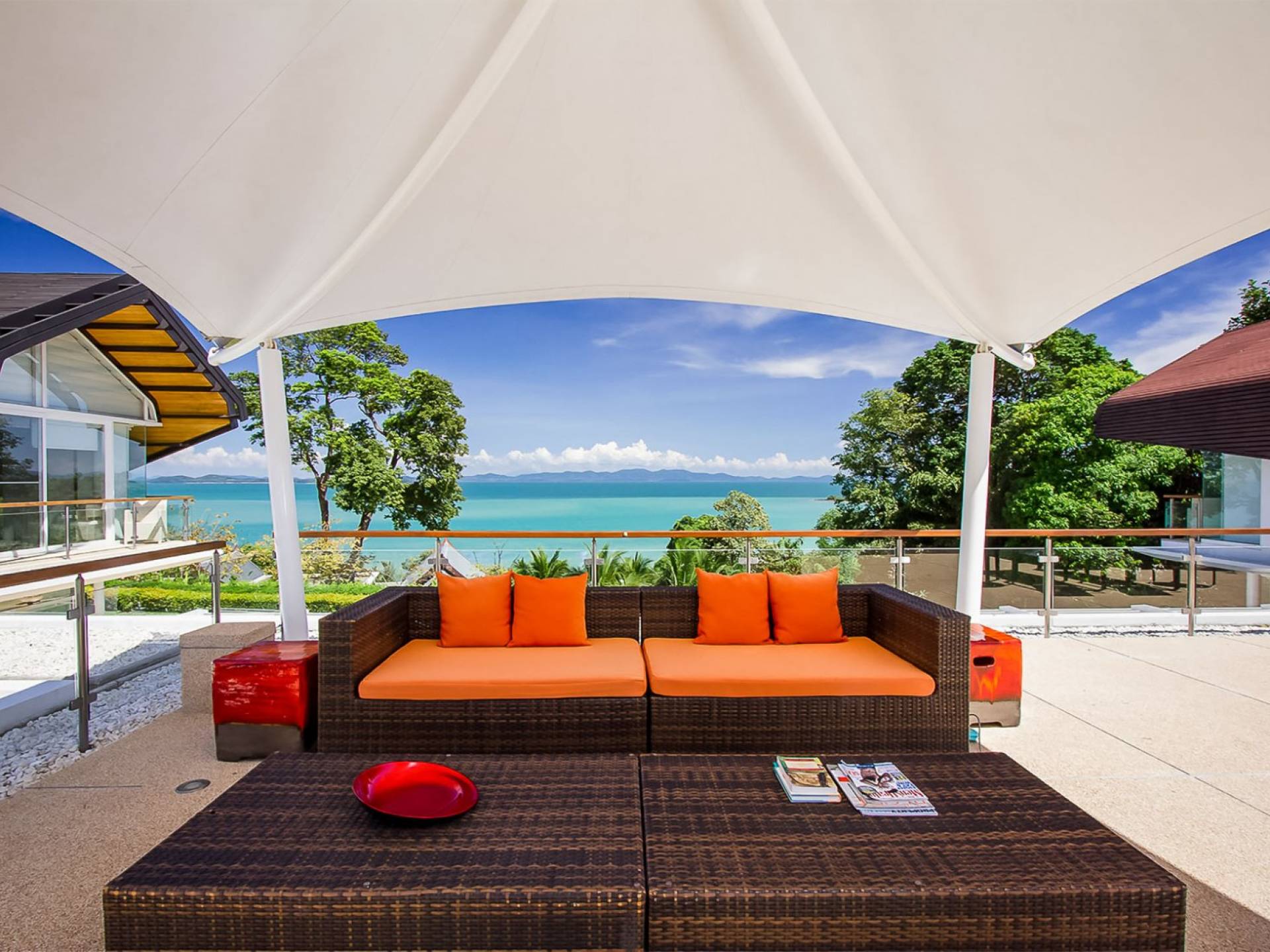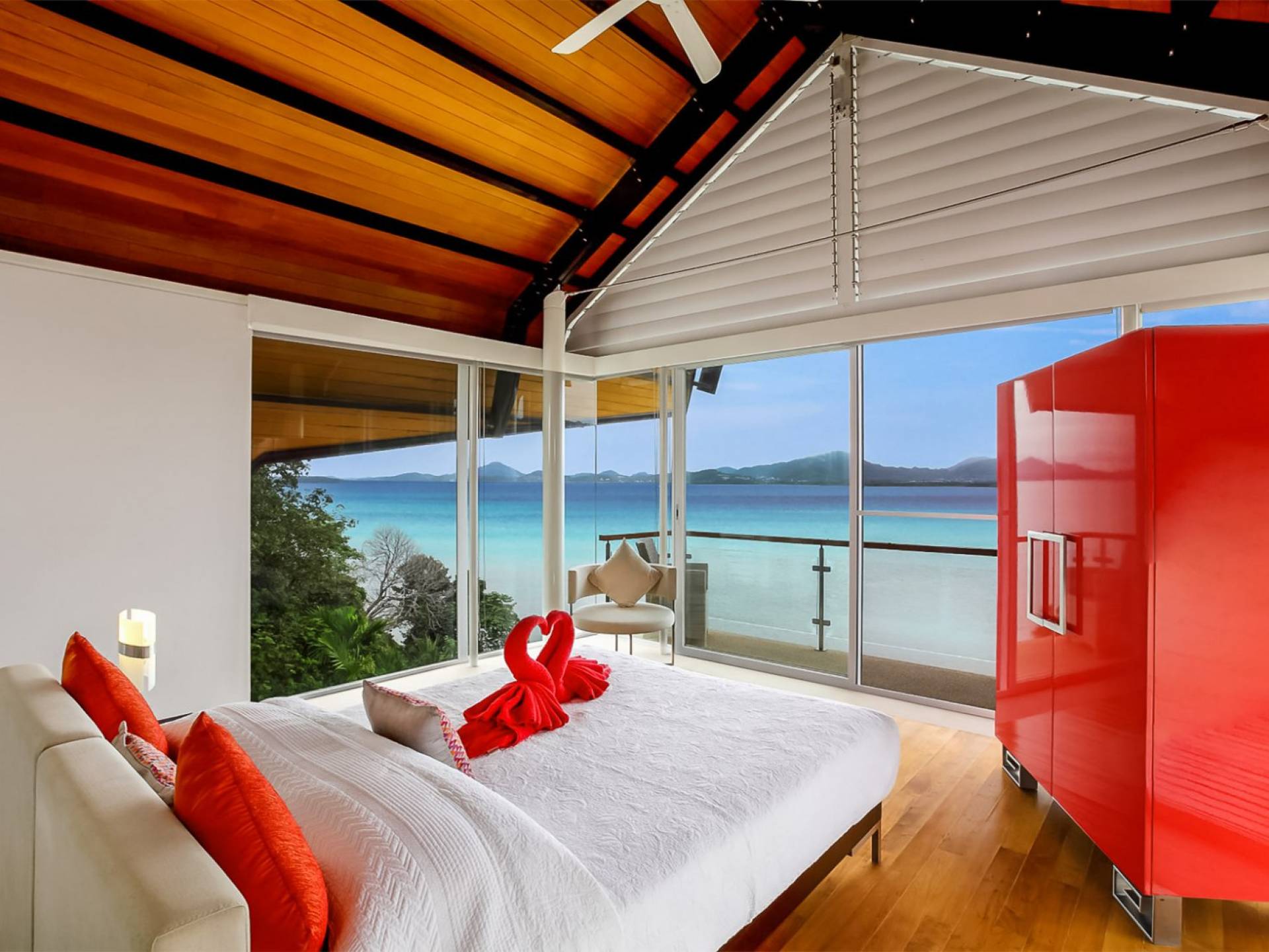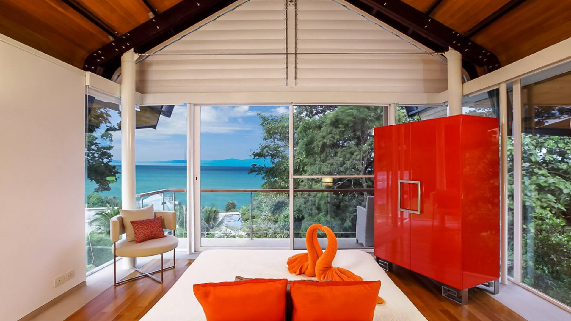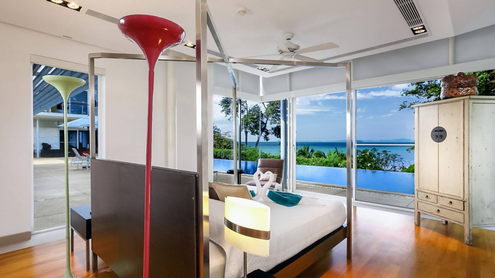 Eine Palette leuchtender Farben auf den Stoffen und den Kunstwerken an den Wänden verleiht der Atmosphäre ein behagliches, erhebendes Gefühl und harmoniert perfekt mit den Holzoberflächen. Die Glaswände bieten einen unbegrenzten atemberaubenden Blick auf die tropische Natur der Gegend, das faszinierende saphirblaue Meerwasser, den beeindruckenden Infinity-Pool und die idyllischen Sonnenuntergänge.