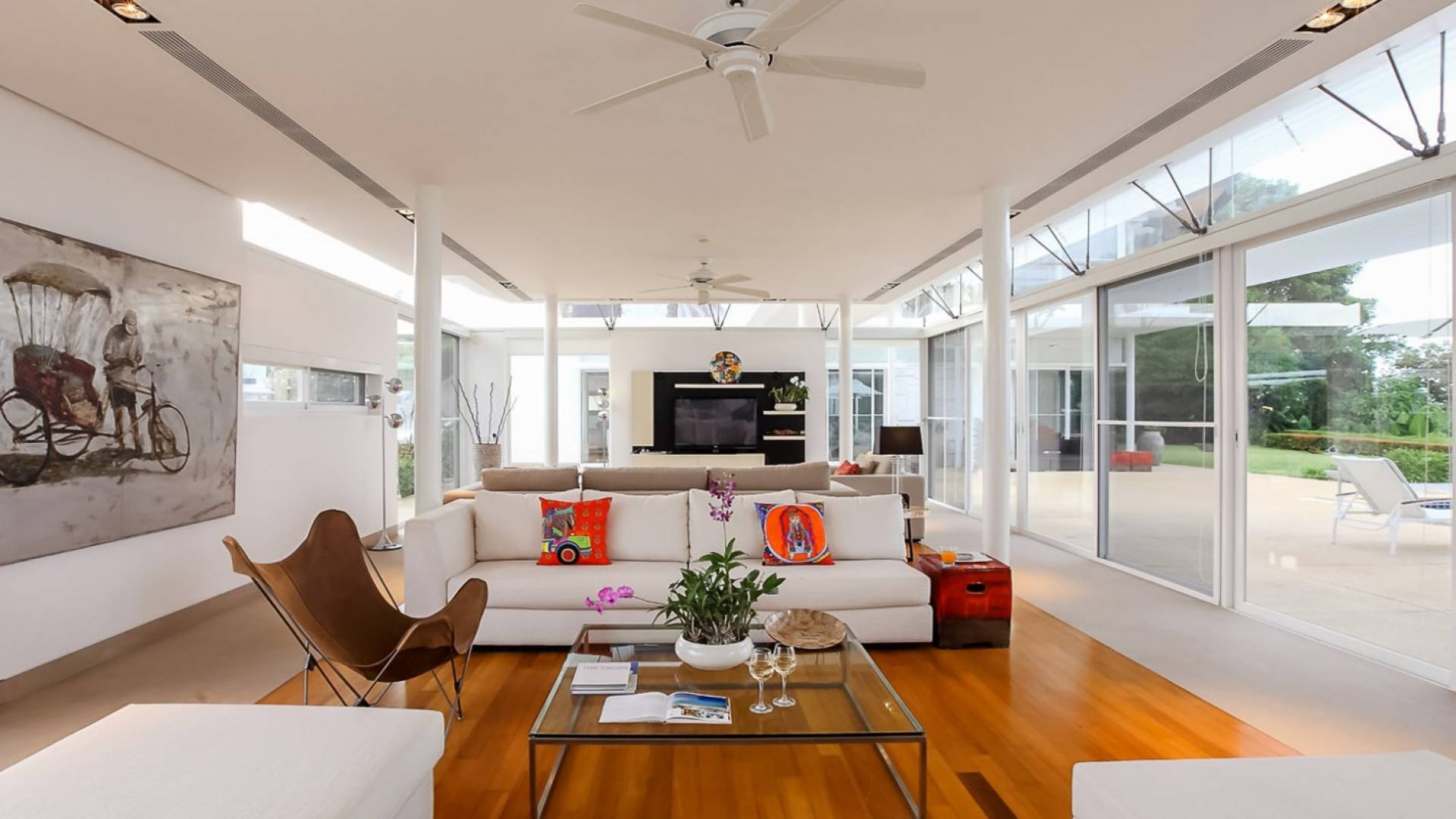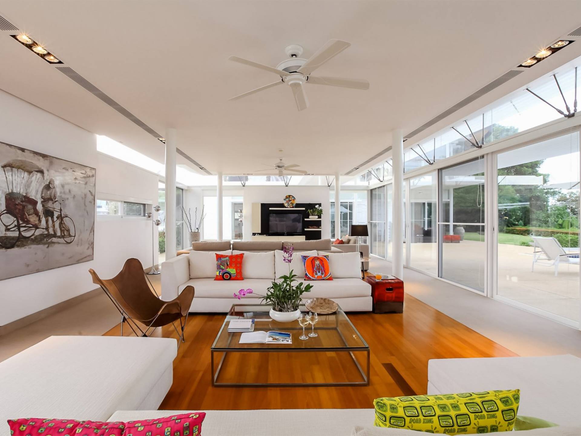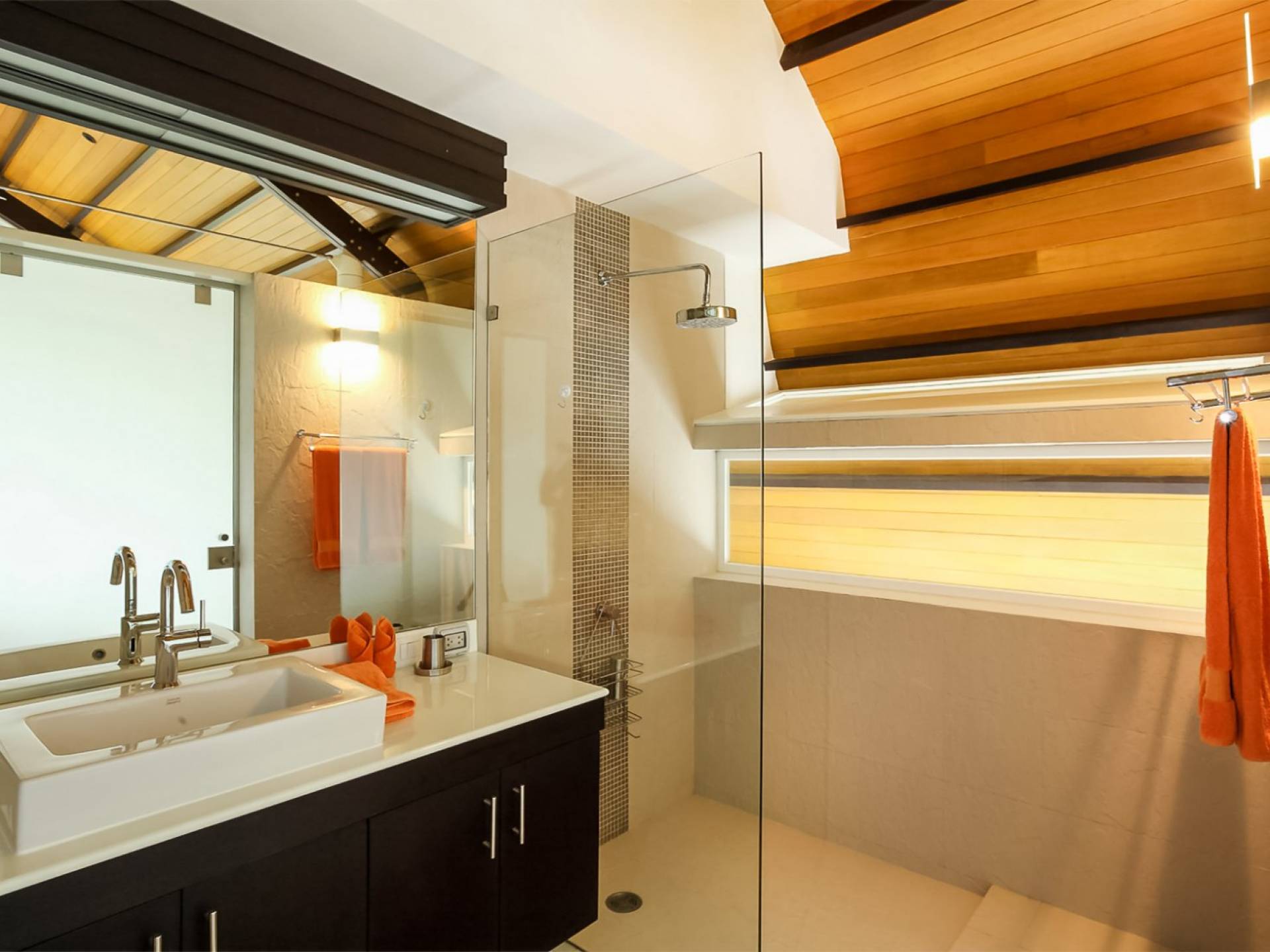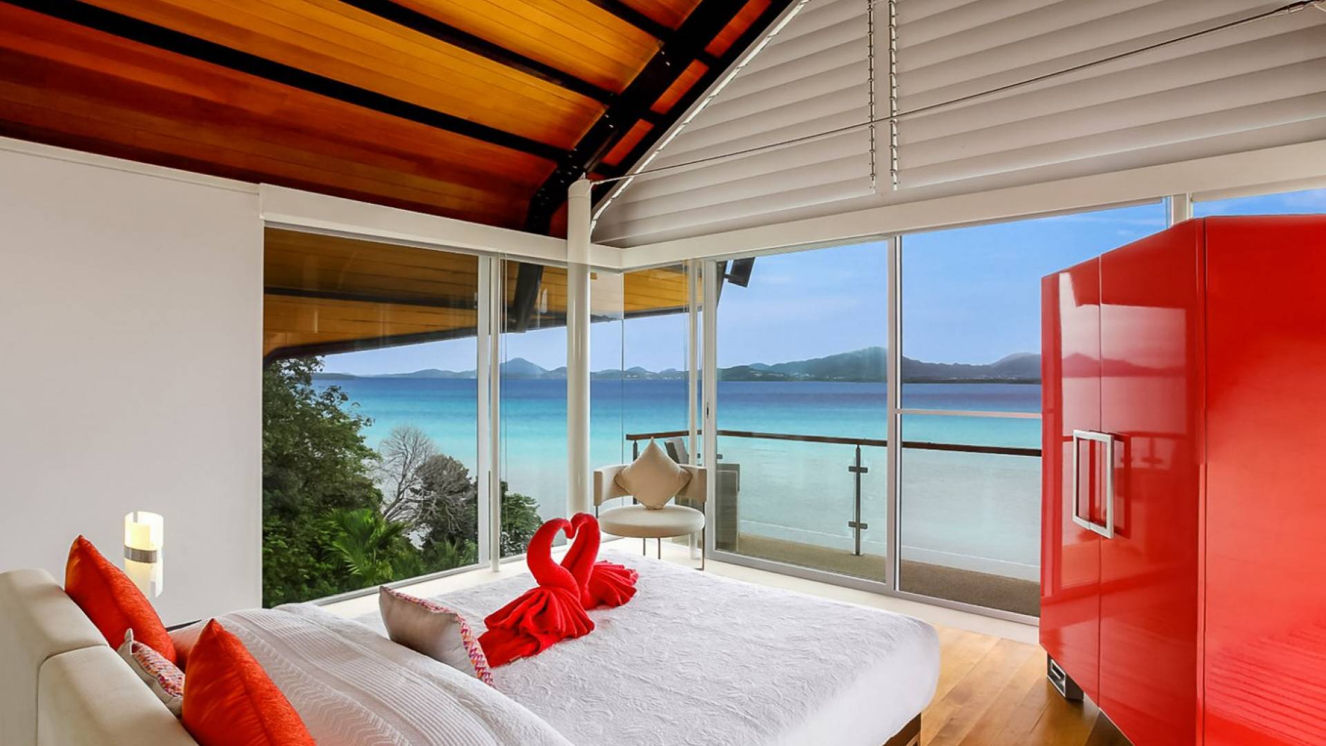Eine Palette leuchtender Farben auf den Stoffen und den Kunstwerken an den Wänden verleiht der Atmosphäre ein behagliches, erhebendes Gefühl und harmoniert perfekt mit den Holzoberflächen. Die Glaswände bieten einen unbegrenzten atemberaubenden Blick auf die tropische Natur der Gegend, das faszinierende saphirblaue Meerwasser, den beeindruckenden Infinity-Pool und die idyllischen Sonnenuntergänge.