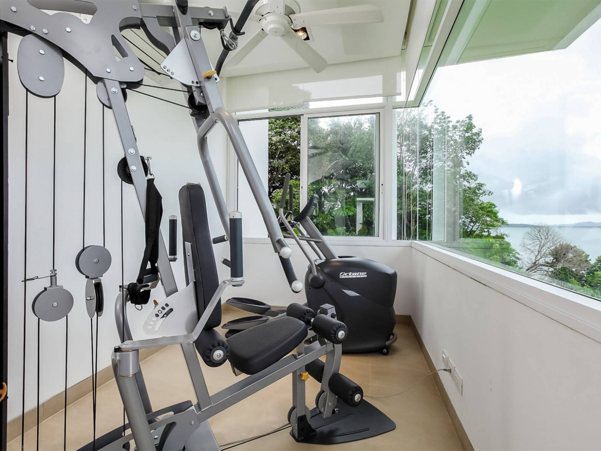 Sportbegeisterte können zwischen den Runden im Pool den Fitnessraum nutzen. Bei einem Film oder einem exotischen Cocktail auf der Terrasse unter dem Sternenhimmel lassen sich faule Abende leicht genießen. Die Hanglage bietet ein erhabenes Gefühl von persönlichem Freiraum und Freiheit, ständig in die atemberaubende Aussicht gebadet.