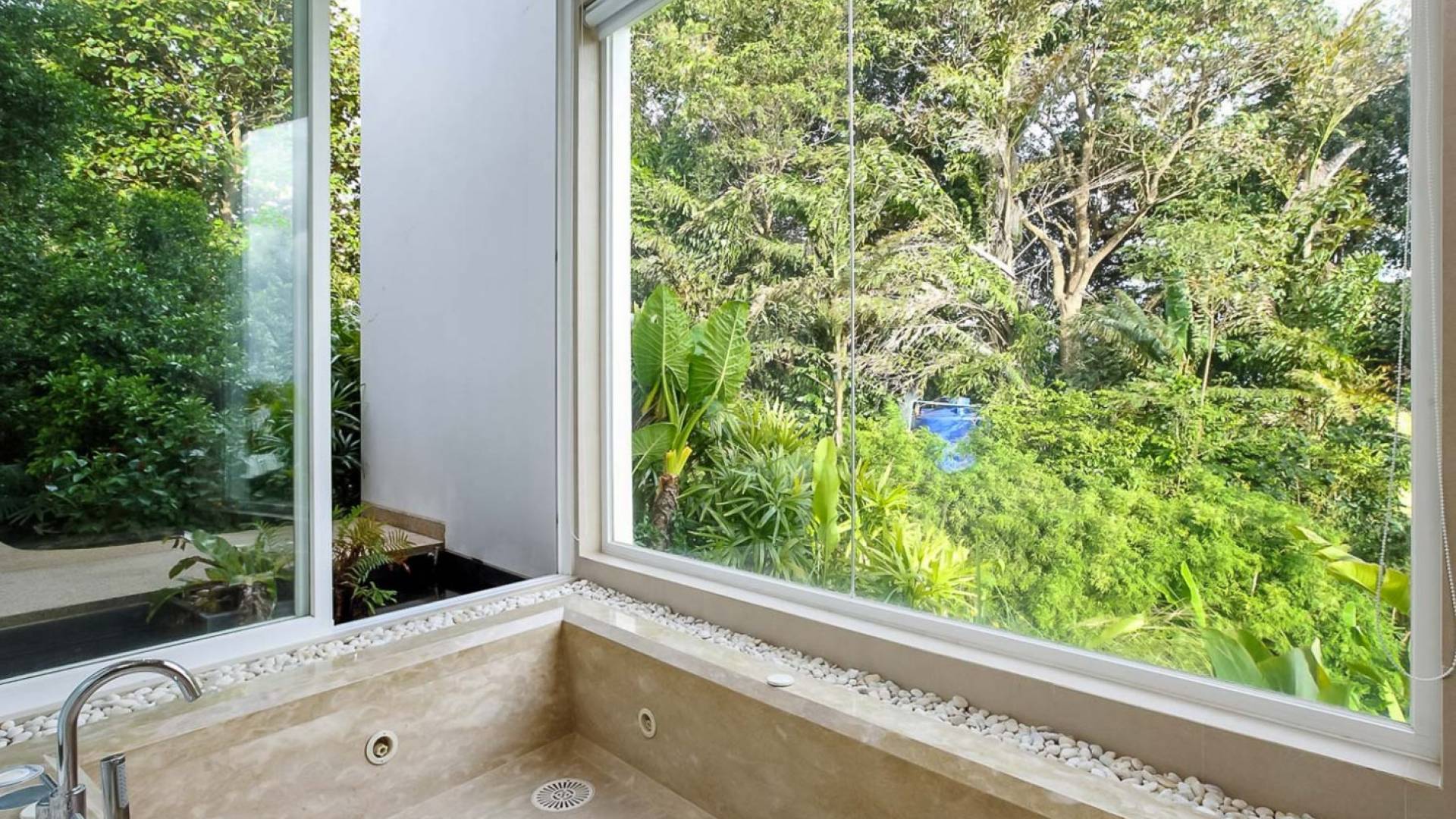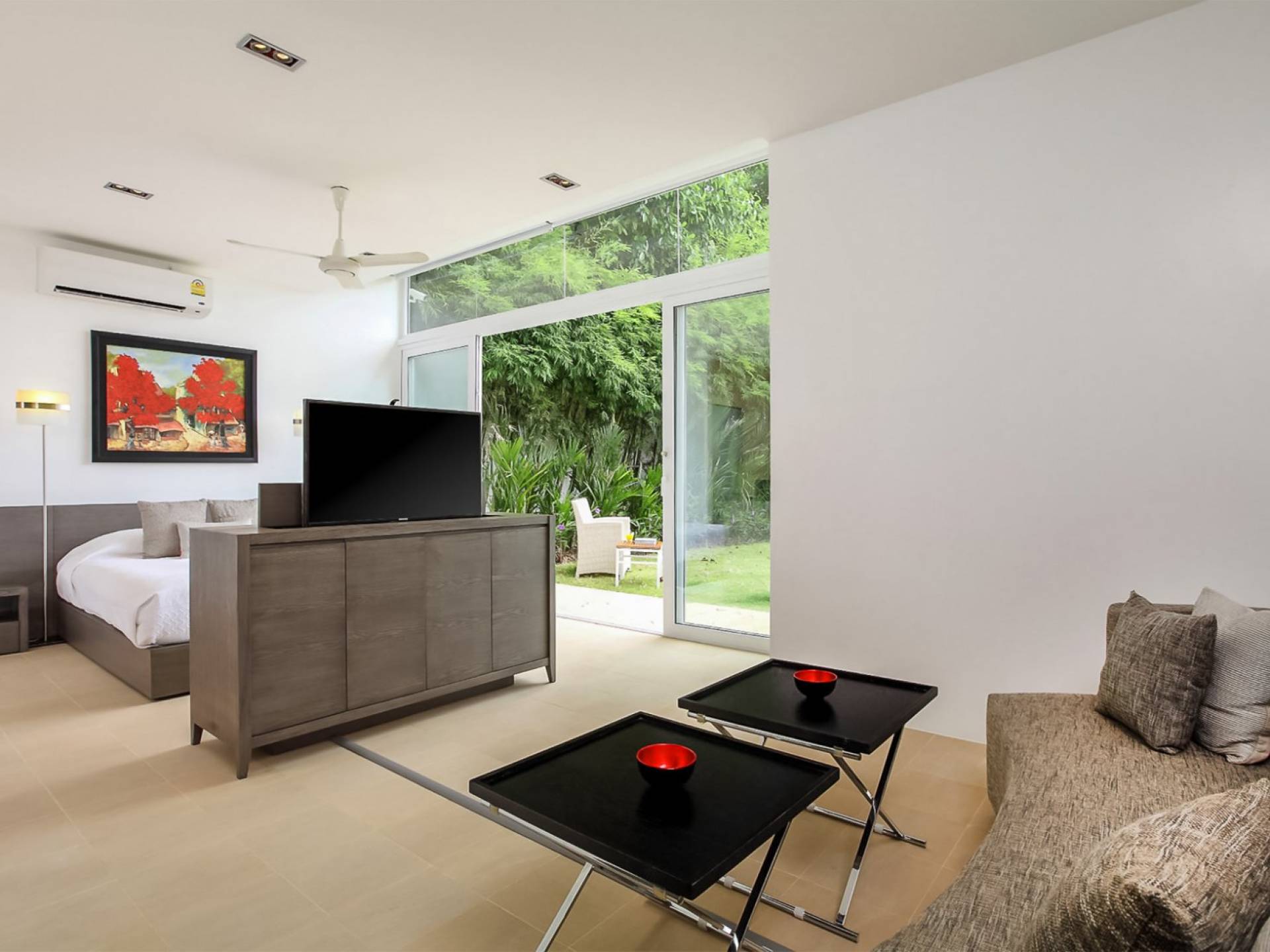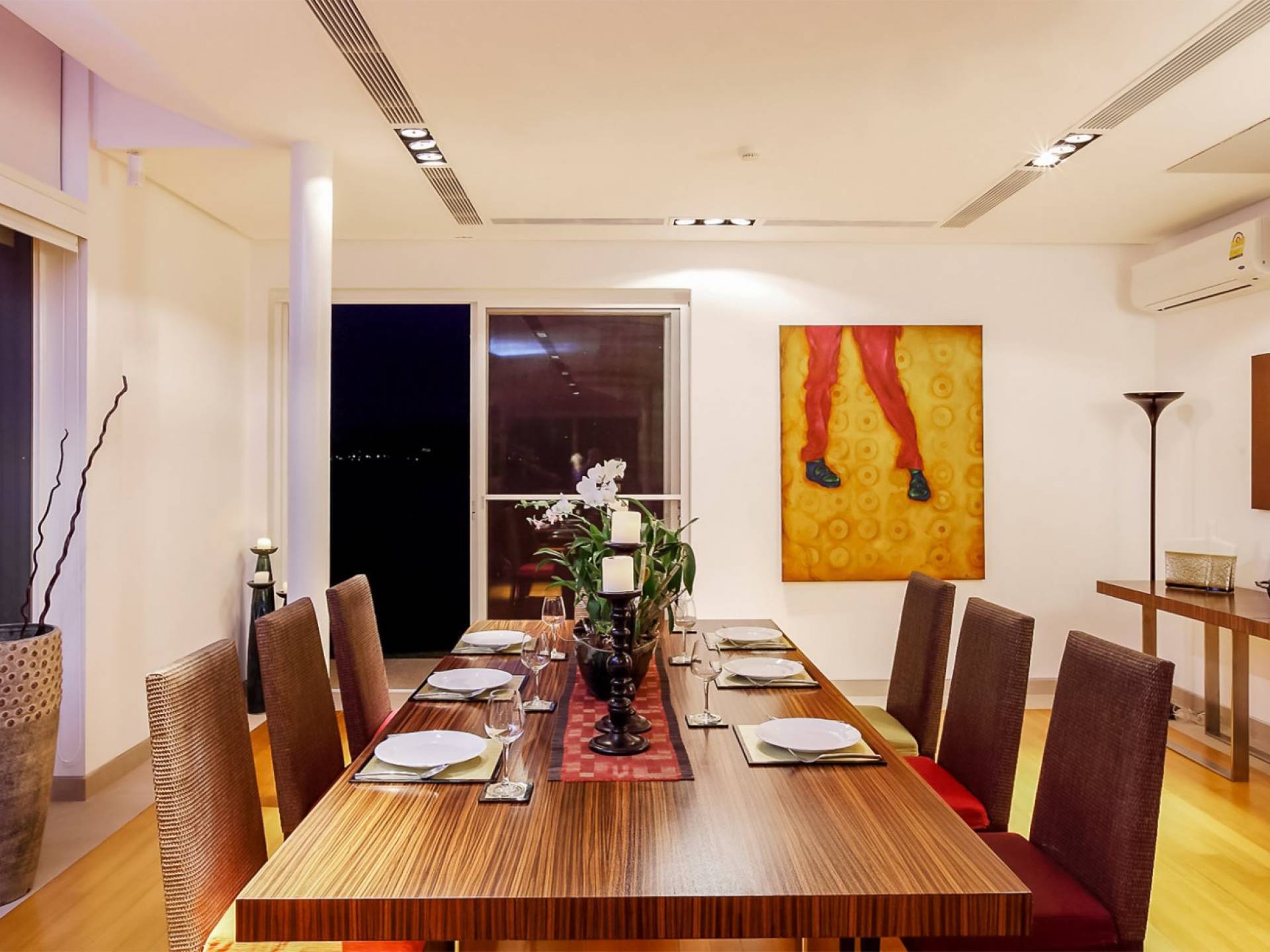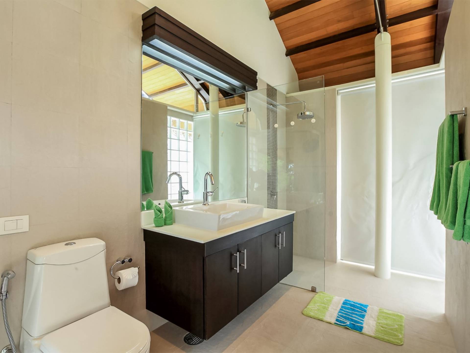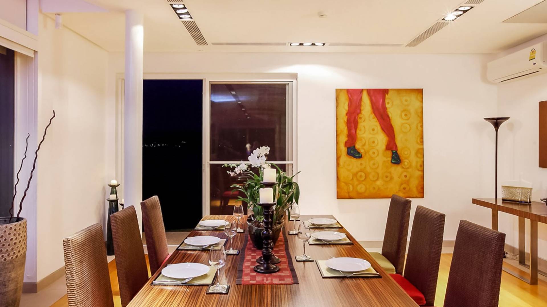 Villa Sapna ist eine von 18 Villen auf dem gesicherten Anwesen The Bay at Yamu, aber ihre einzigartige Lage bietet absolute Privatsphäre und ungestörte Aussicht. Nur fünf Minuten zu Fuß den Hügel hinunter ist eine Strandpromenade und ein kleiner Pier, der zu einem lokalen Dorf mit einigen lokalen Lebensmittelgeschäften und einem Open-Air-Fischrestaurant führt. Der Pier ist ein Ausgangspunkt für Ausflüge zu den nahe gelegenen Inseln und Kajaks und Schnellboote können gemietet werden. Ein Joggen oder Spazierengehen am Abend ist unglaublich malerisch, wenn die ruhige Sapam Bay bei Sonnenuntergang purpurrot wird. Obwohl die Umgebung größtenteils ländlich und rustikal ist, bietet das nahe gelegene Restaurant Breeze ein gehobenes kulinarisches Erlebnis und einen beliebten Sonntagsbrunch.