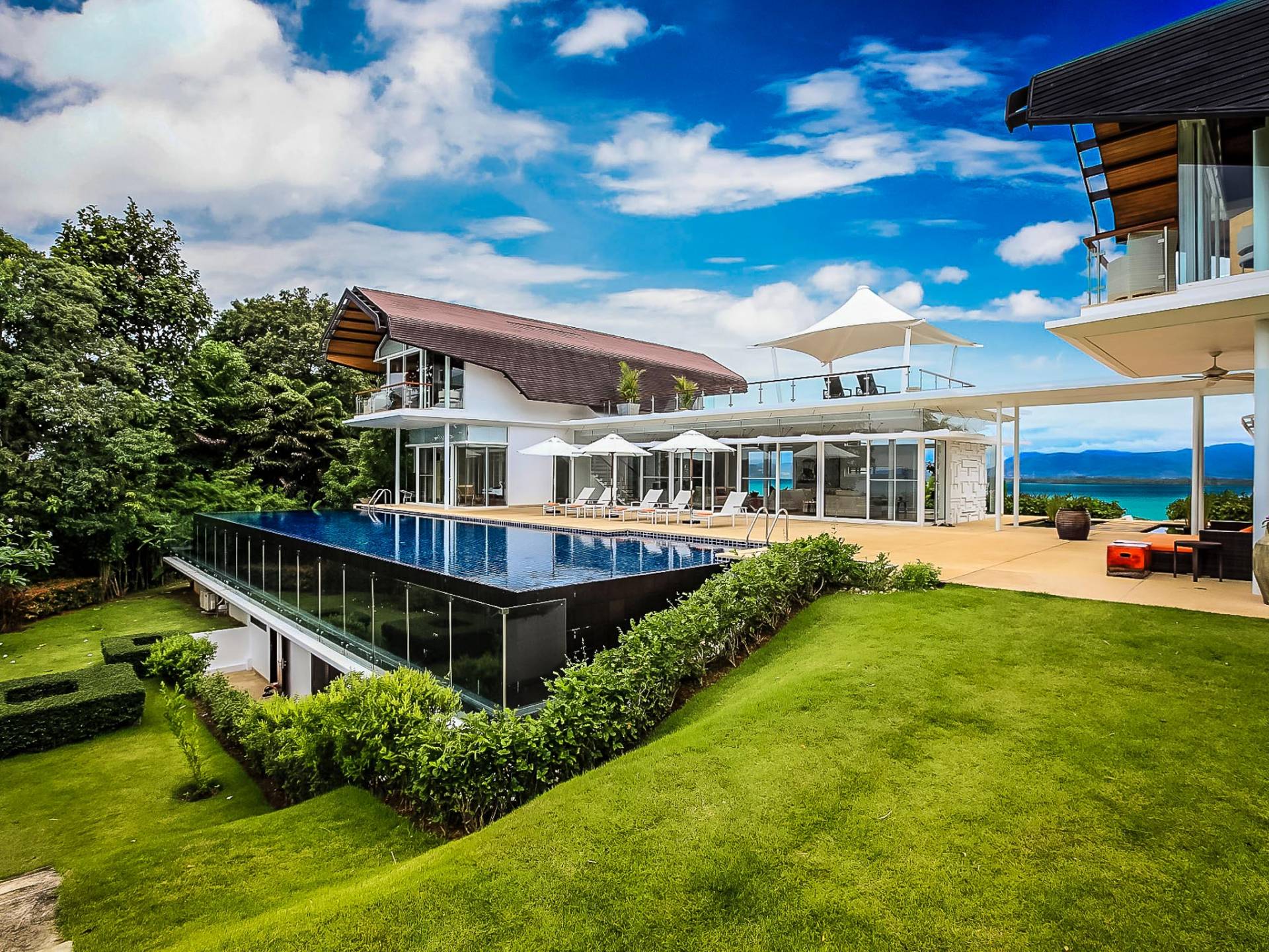 Willkommen in der Villa Sapna! Auf den üppig grünen Hügeln von Cape Yamu an Phukets ruhiger Ostküste gelegen, ist die Villa Sapna ein verstecktes Paradies mit fünf Schlafzimmern mit einer Mischung aus modernem Design, lebendigen Kunstwerken und einer herrlichen Aussicht auf das Meer, um Familien und Gruppen einen Spaß zu bieten , verschwenderische tropische Flucht. Diese voll ausgestattete Villa befindet sich in einer beneidenswerten Lage, die einen uneingeschränkten Blick auf den Sonnenaufgang und den Sonnenuntergang über dem Meer bietet. Stilvolle Wohn- und Essbereiche öffnen sich zu einem 20 Meter langen privaten Infinity-Pool, der von weitläufigen Terrassen, Rasen und tropischen Gärten umgeben ist, während jedes Schlafzimmer – einschließlich einer Master-Suite mit Whirlpool – eine private, erholsame Oase bietet. Zu den weiteren Einrichtungen zählen ein gut ausgestattetes Fitnessstudio, ein Aufzug und eine Dachterrasse.