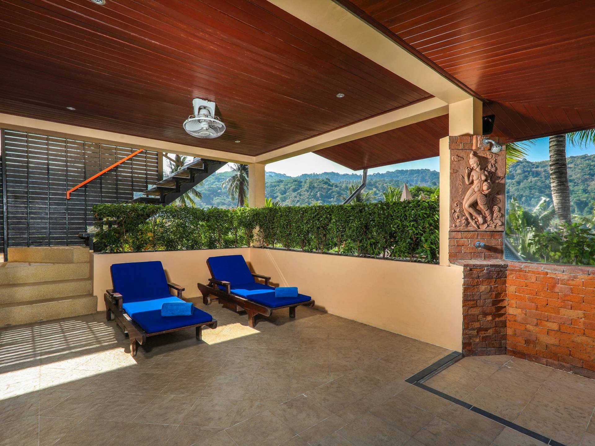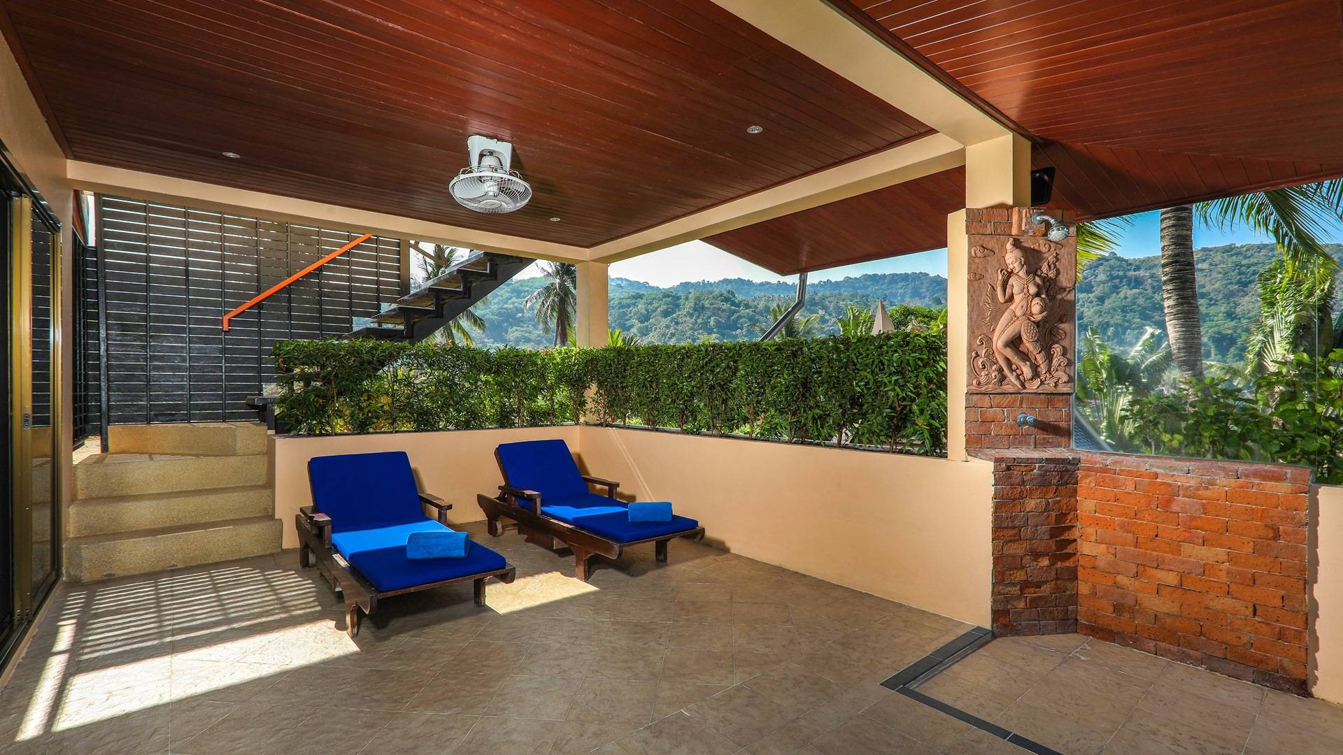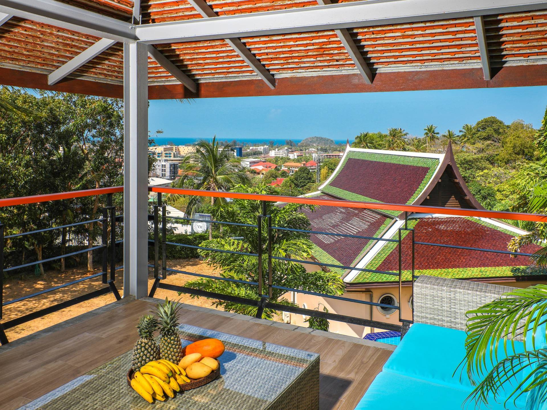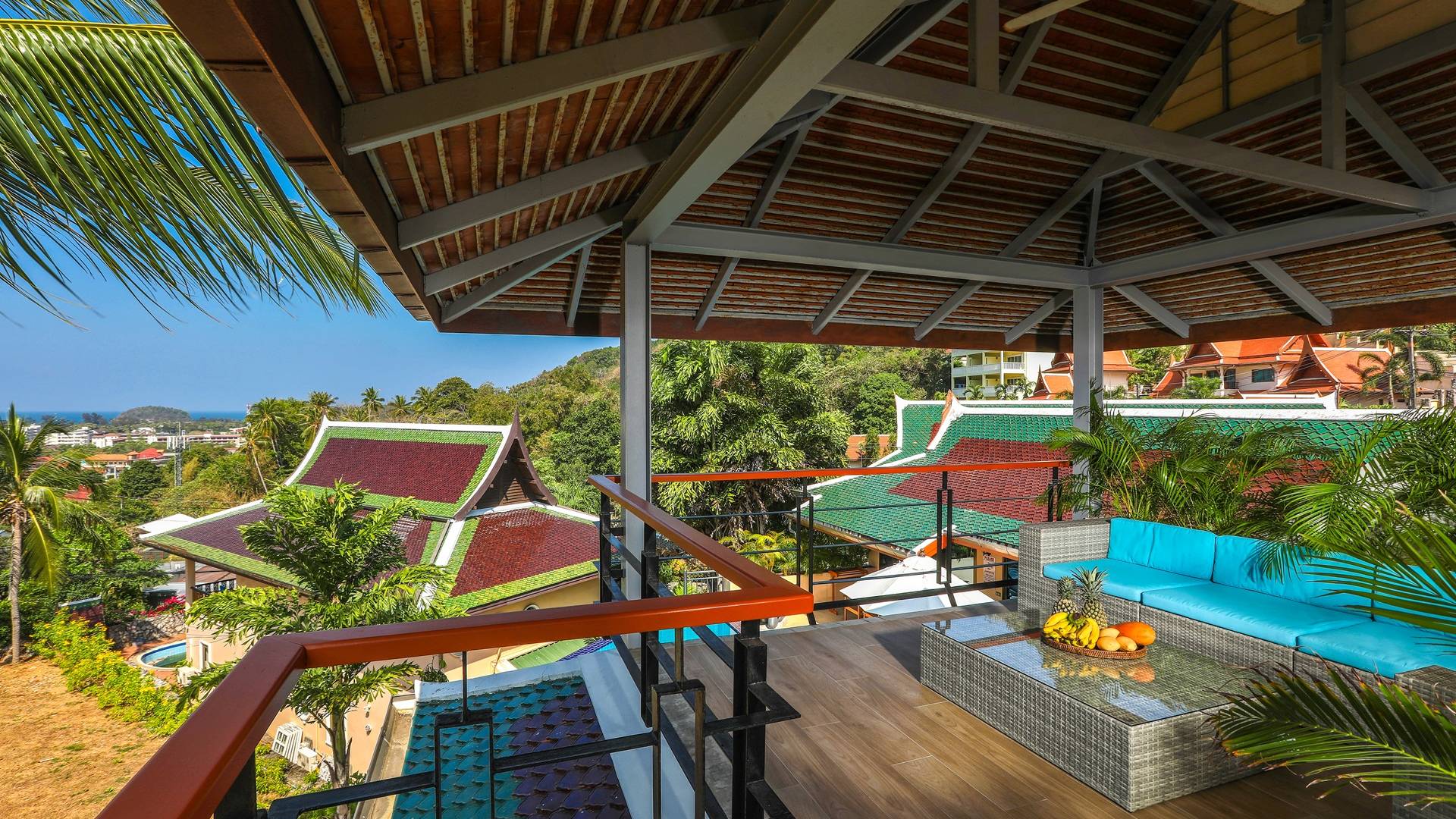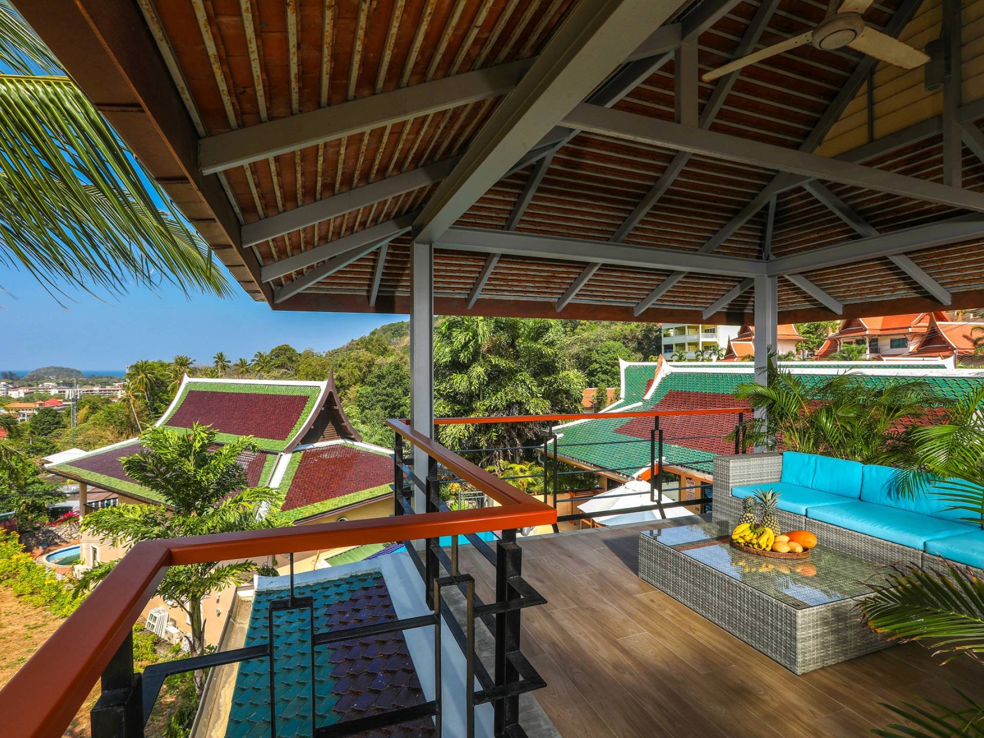 Das Hauptschlafzimmer besteht aus einem riesigen Himmelbett und einer Whirlpool-Badewanne für zwei Personen. Die Villa befindet sich hinter hohen Mauern aus geschnittenem Naturkalkstein sowie privaten, ferngesteuerten Toren in voller Größe. Die obere Etage ist strategisch mit einem privaten Swimmingpool und privaten Bereichen zum Sonnenbaden ausgestattet, um die kühle Meeresbrise, die atemberaubende Aussicht auf Kata Beach und die herrlichen Sonnenuntergänge zu maximieren. Die erhöhte Lage zieht sowohl einen spektakulären Meerblick als auch eine kühle Meeresbrise an. Im Obergeschoss befinden sich Wohn-, Ess- und Zimmer sowie eine riesige voll ausgestattete Küche. Die obere Etage verfügt über Schiebetüren in voller Größe, die sich zum Pool und zu den Sonnenbereichen öffnen.