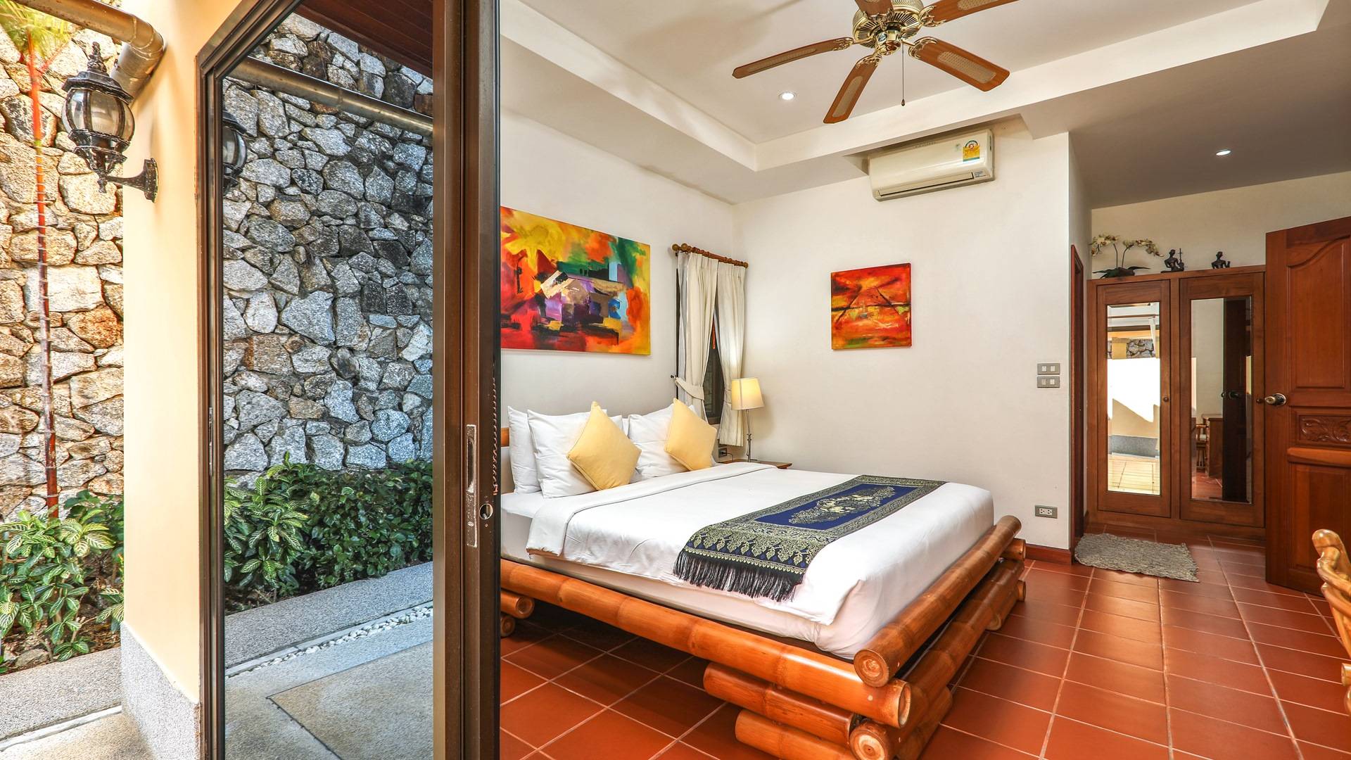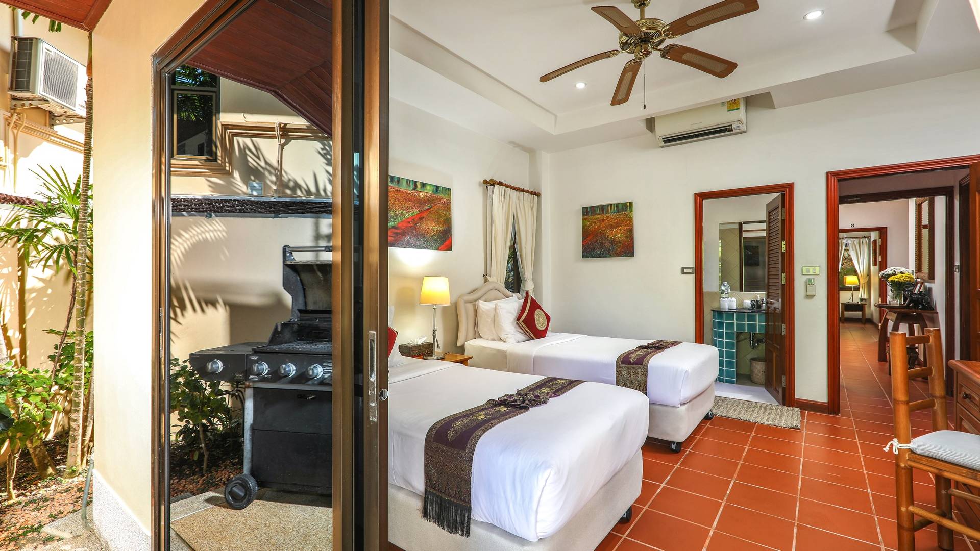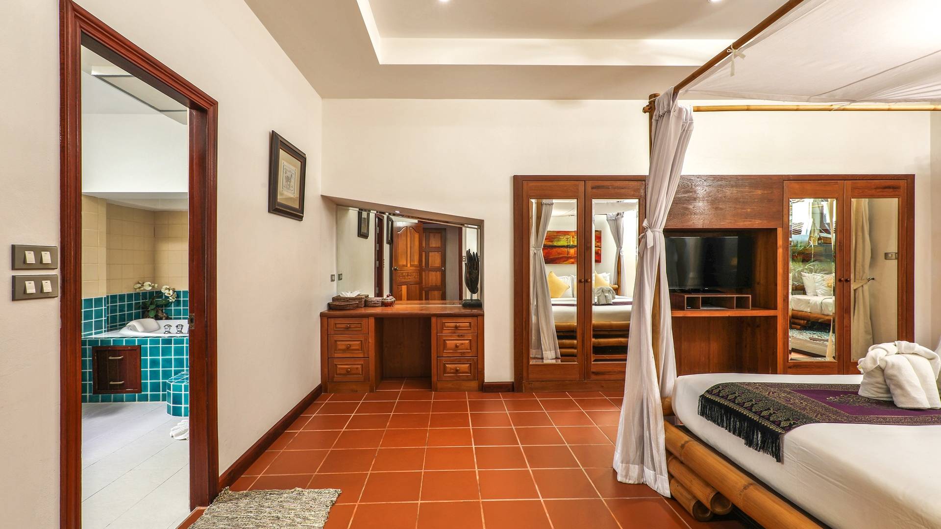 Die Villa verfügt über vier riesige Doppelzimmer – alle mit eigenem Bad, und das Hauptschlafzimmer verfügt über ein ausladendes romantisches Bambus-Himmelbett. Das Hauptschlafzimmer der Villa Malee ist mit einer Doppel-Jacuzzi-Badewanne, einem begehbaren Duschbereich sowie passenden Waschbecken aus Marmor ausgestattet. Die Villa verfügt über ein Doppelzimmer, das als Zweibettzimmer hergerichtet werden kann und Platz für bis zu 8 Personen bietet.