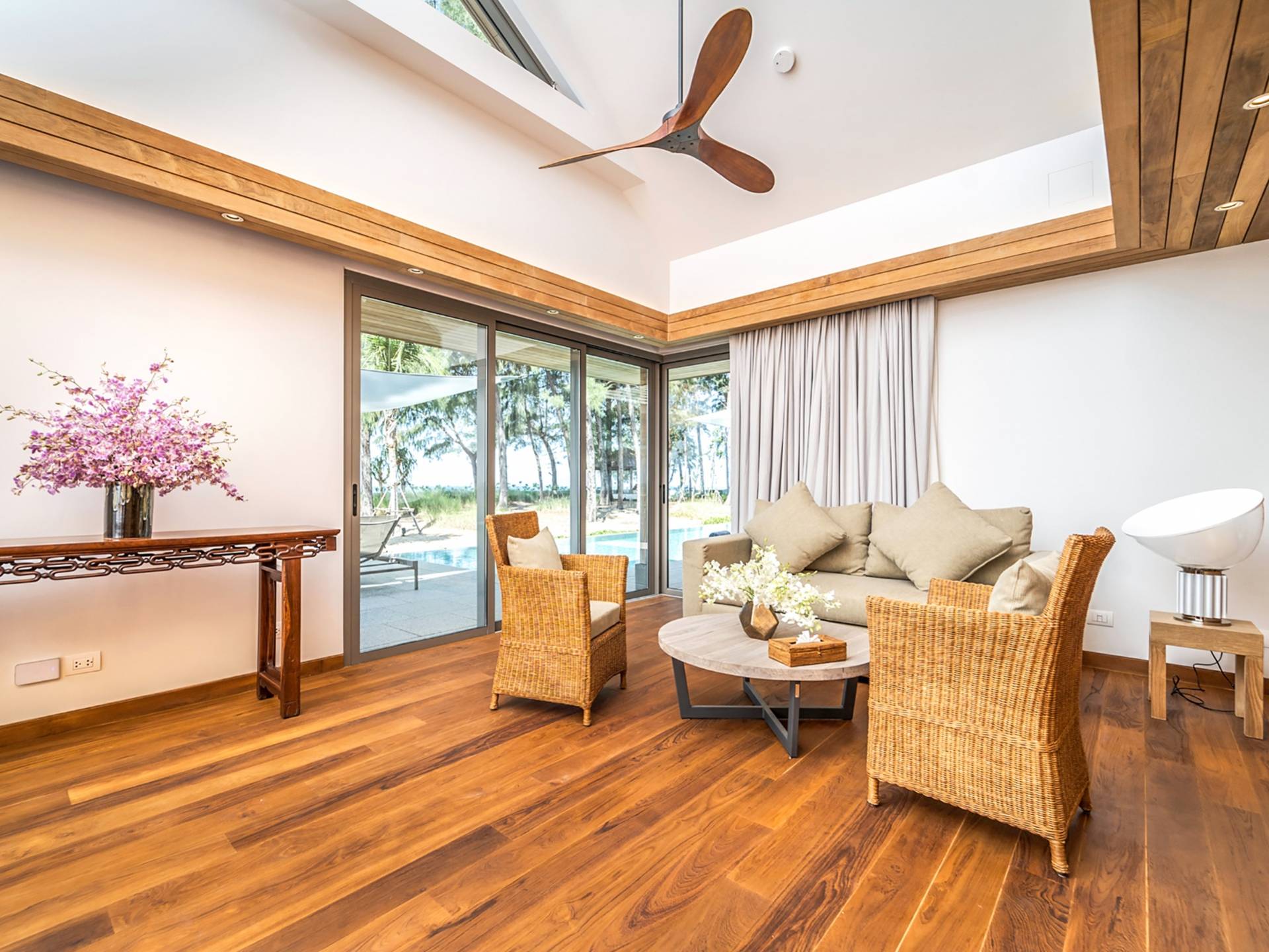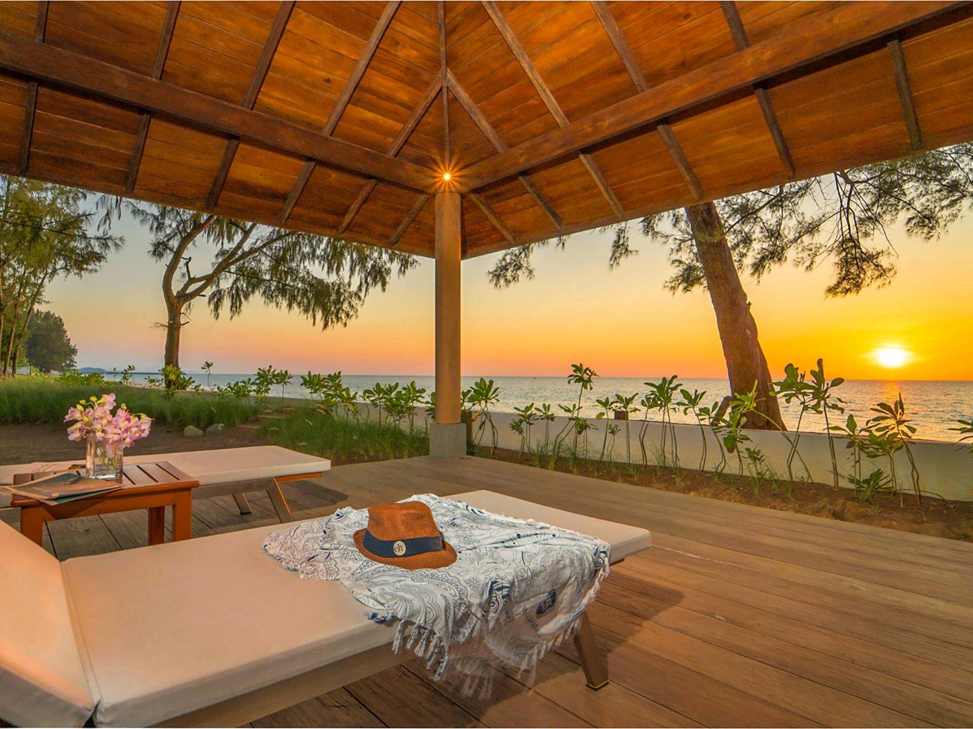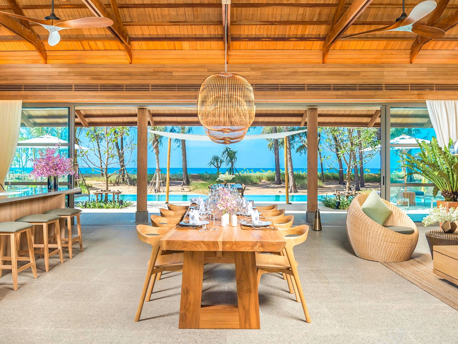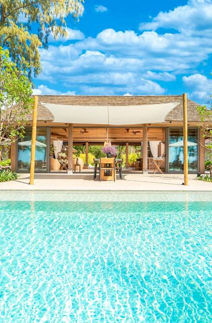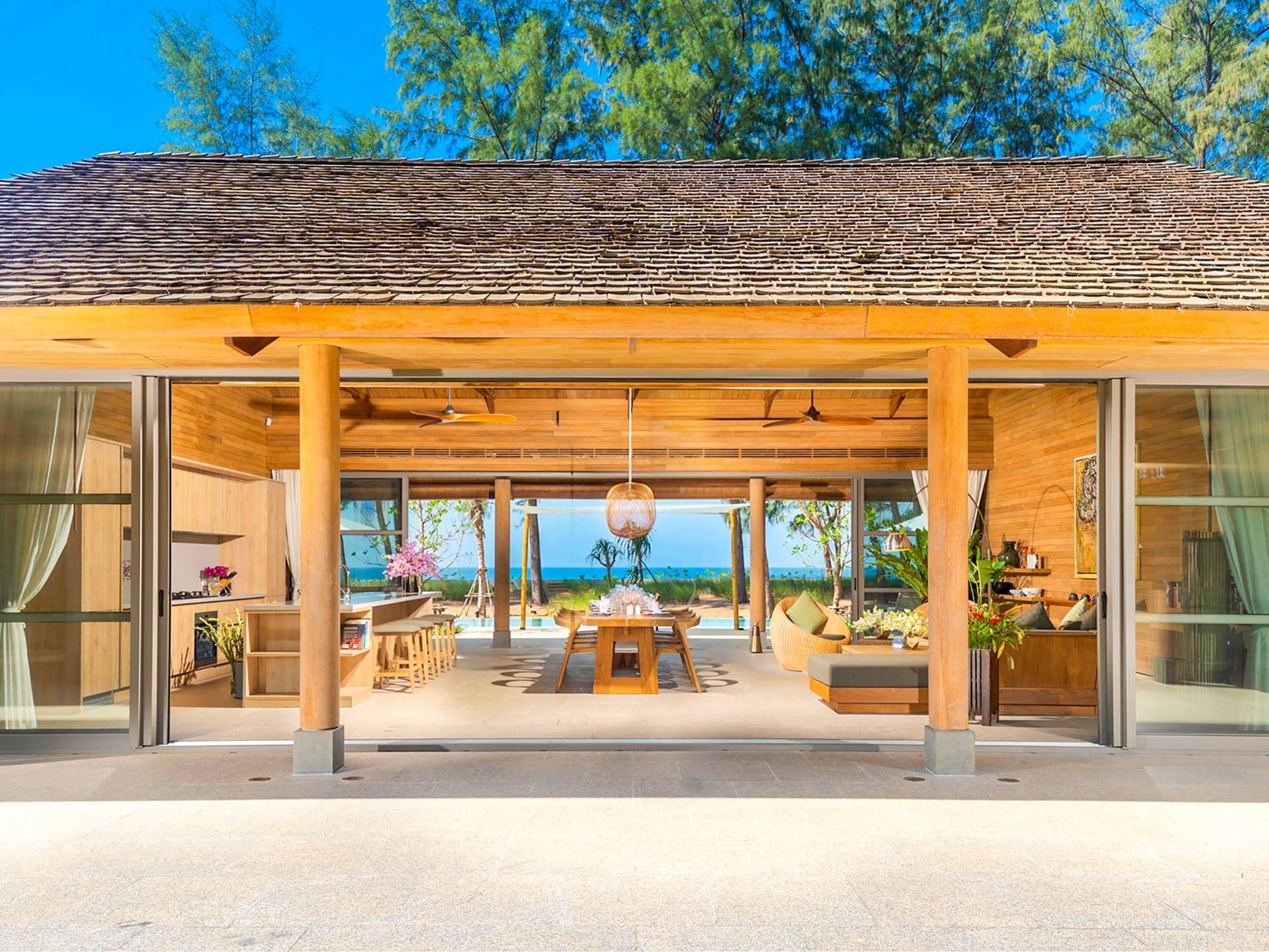 Aufgeteilt in fünf individuelle Wohnabschnitte im thailändischen Stil, genießt jedes der fünf Schlafzimmer der Villa Privatsphäre, entweder in einem eigenen Pavillon oder mit einem separaten Eingang. Genießen Sie den Meerblick von Ihrem Schlafzimmer aus oder treten Sie einfach auf das inspirierte Pooldeck oder direkt auf den Sandstrand.