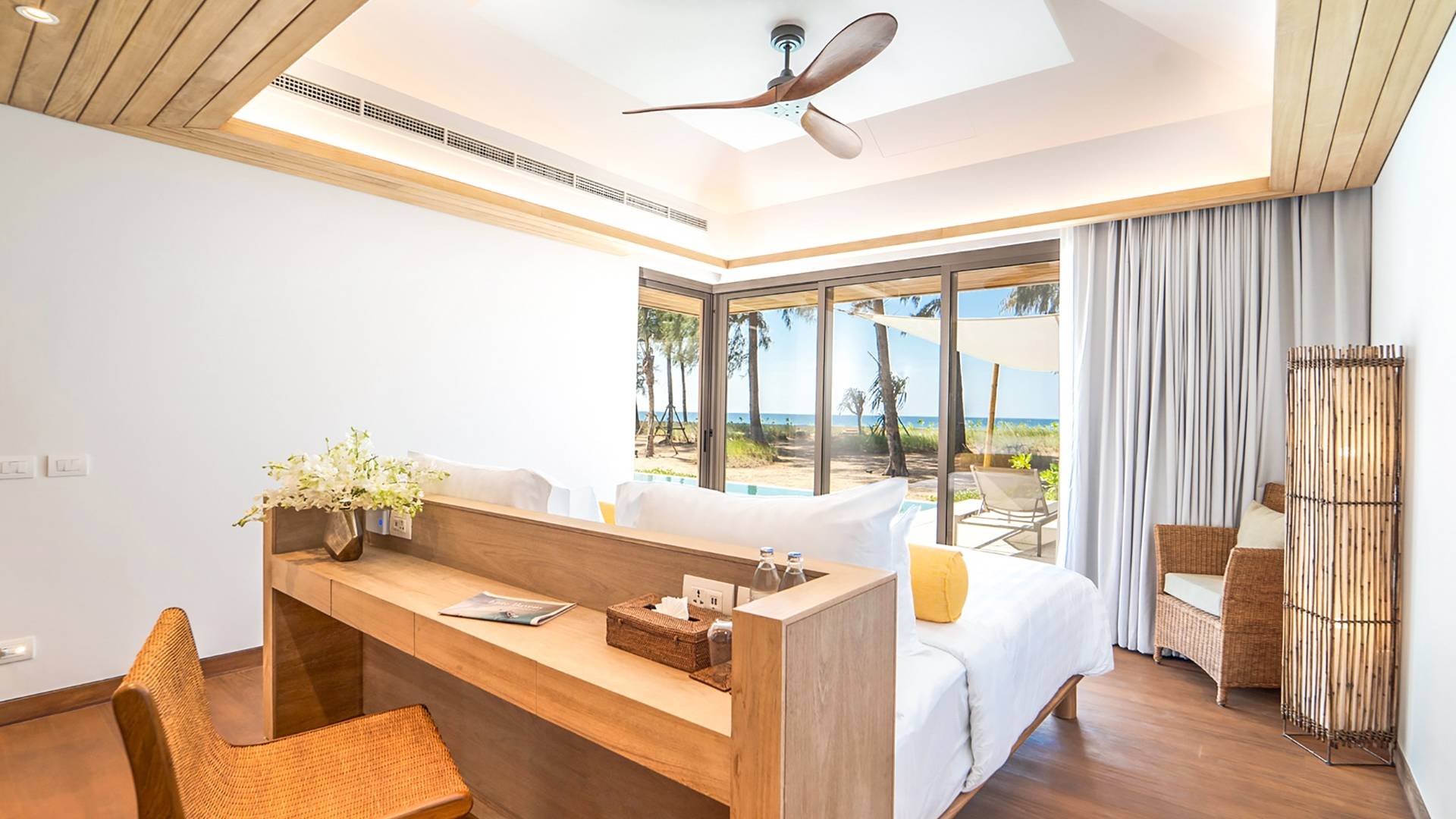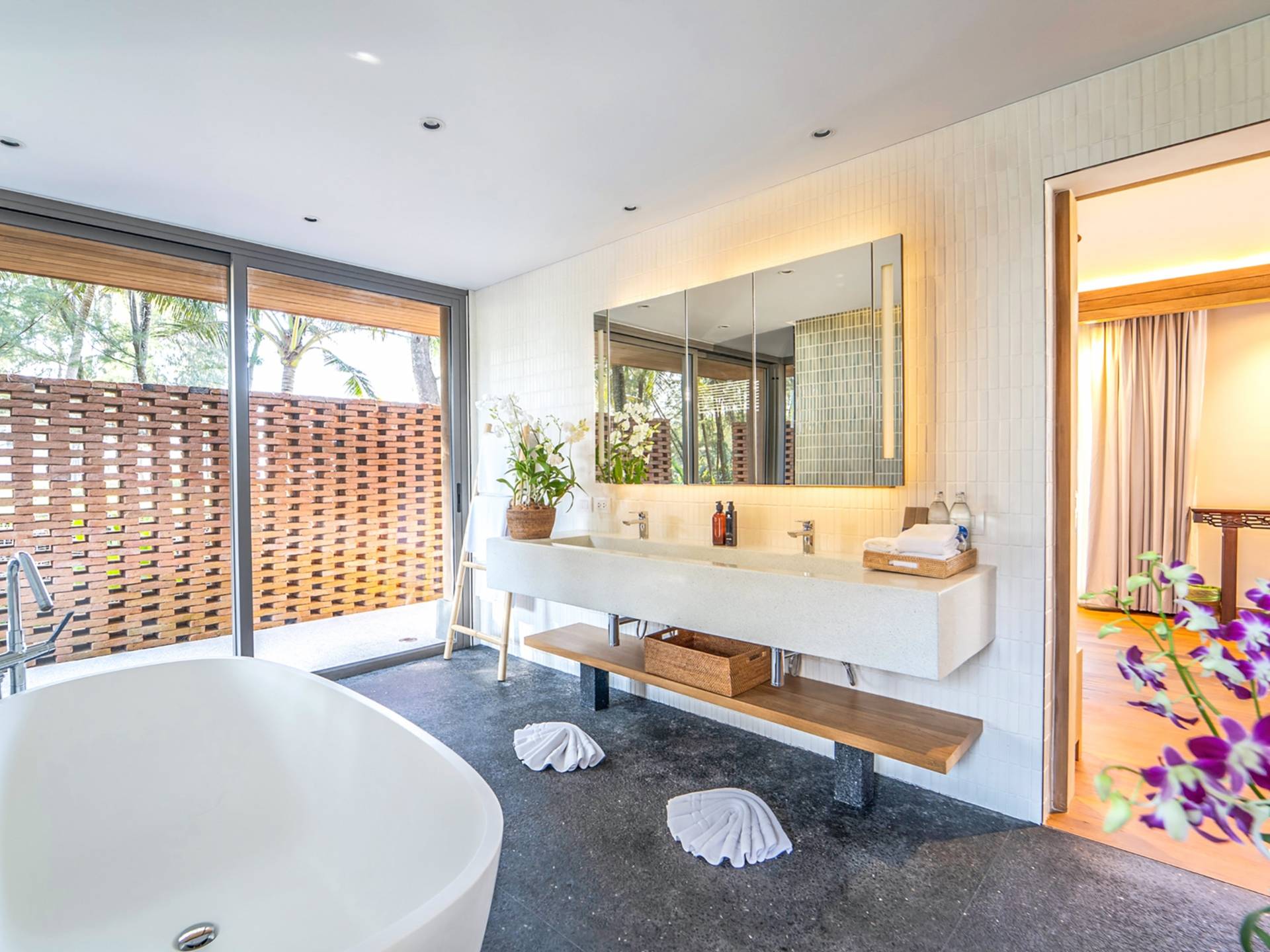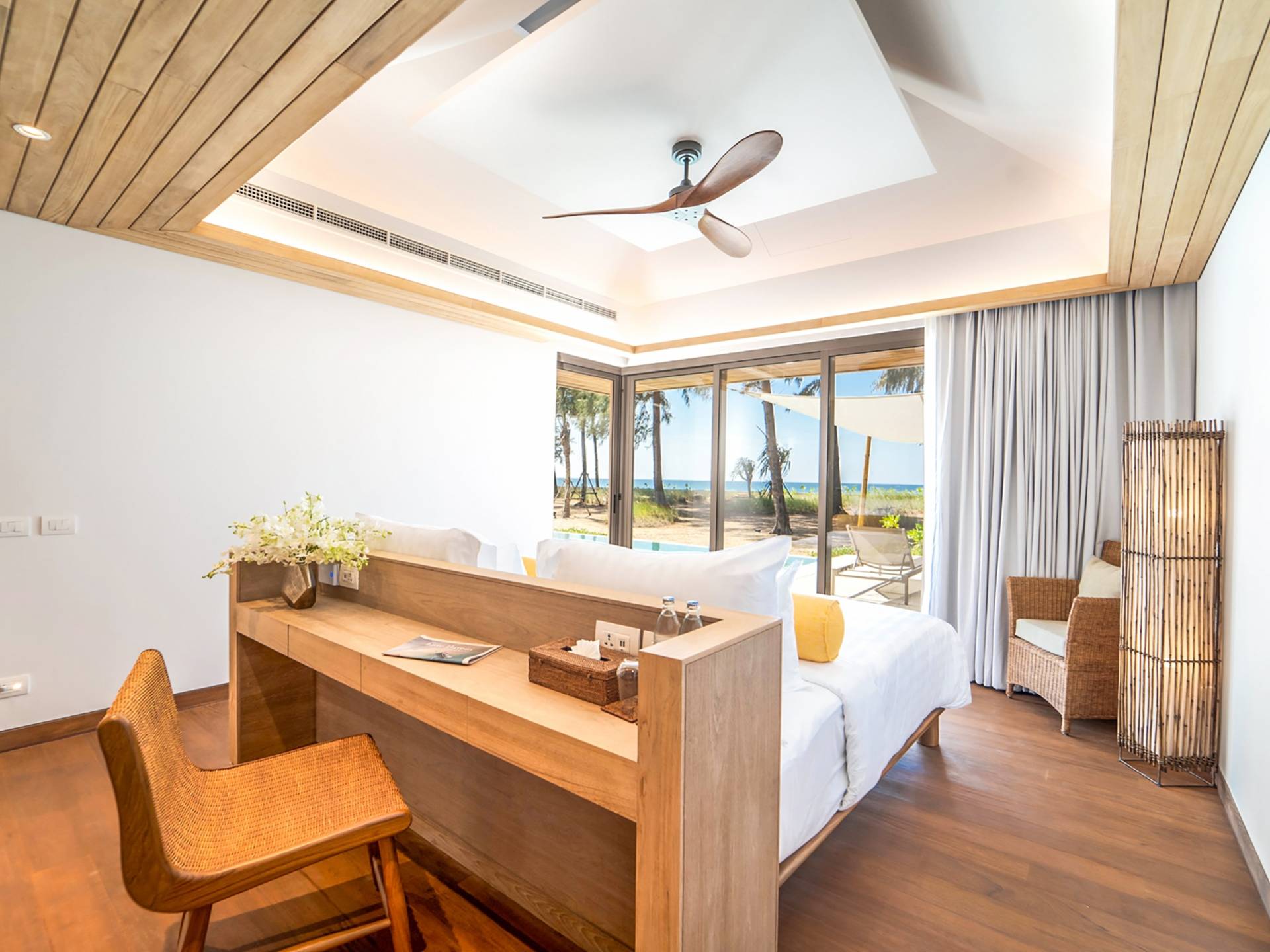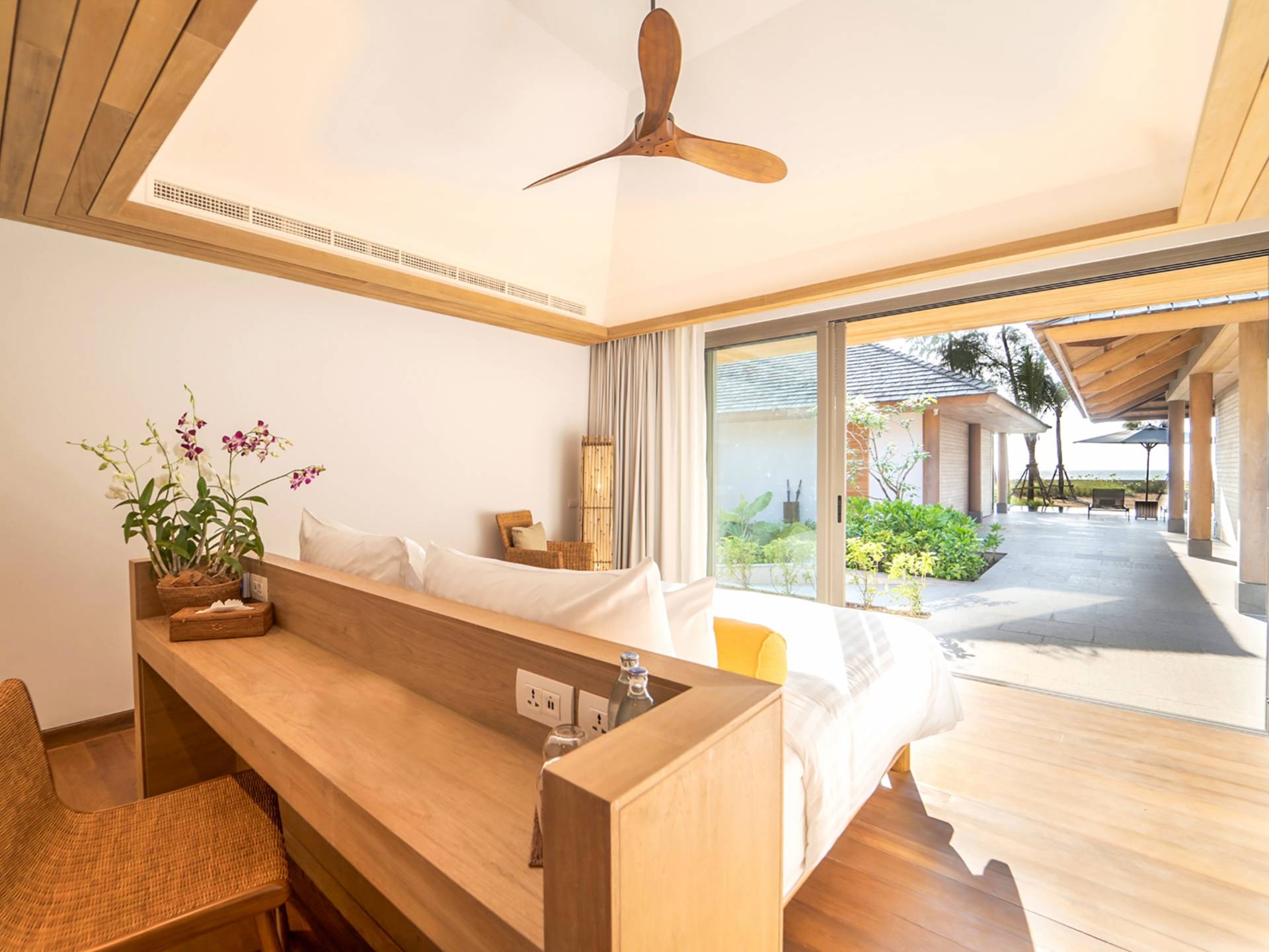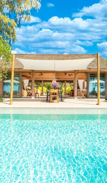 Aufgeteilt in fünf individuelle Wohnabschnitte im thailändischen Stil, genießt jedes der fünf Schlafzimmer der Villa Privatsphäre, entweder in einem eigenen Pavillon oder mit einem separaten Eingang. Genießen Sie den Meerblick von Ihrem Schlafzimmer aus oder treten Sie einfach auf das inspirierte Pooldeck oder direkt auf den Sandstrand.