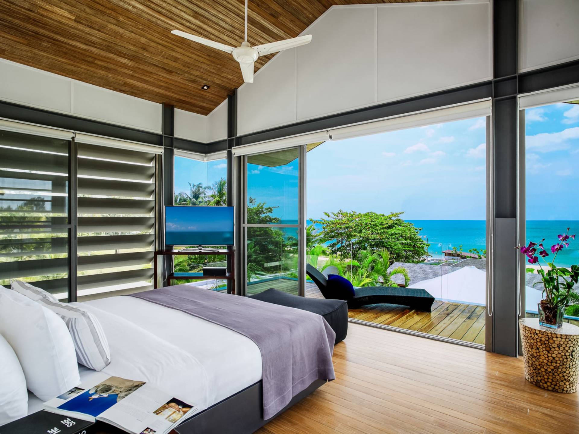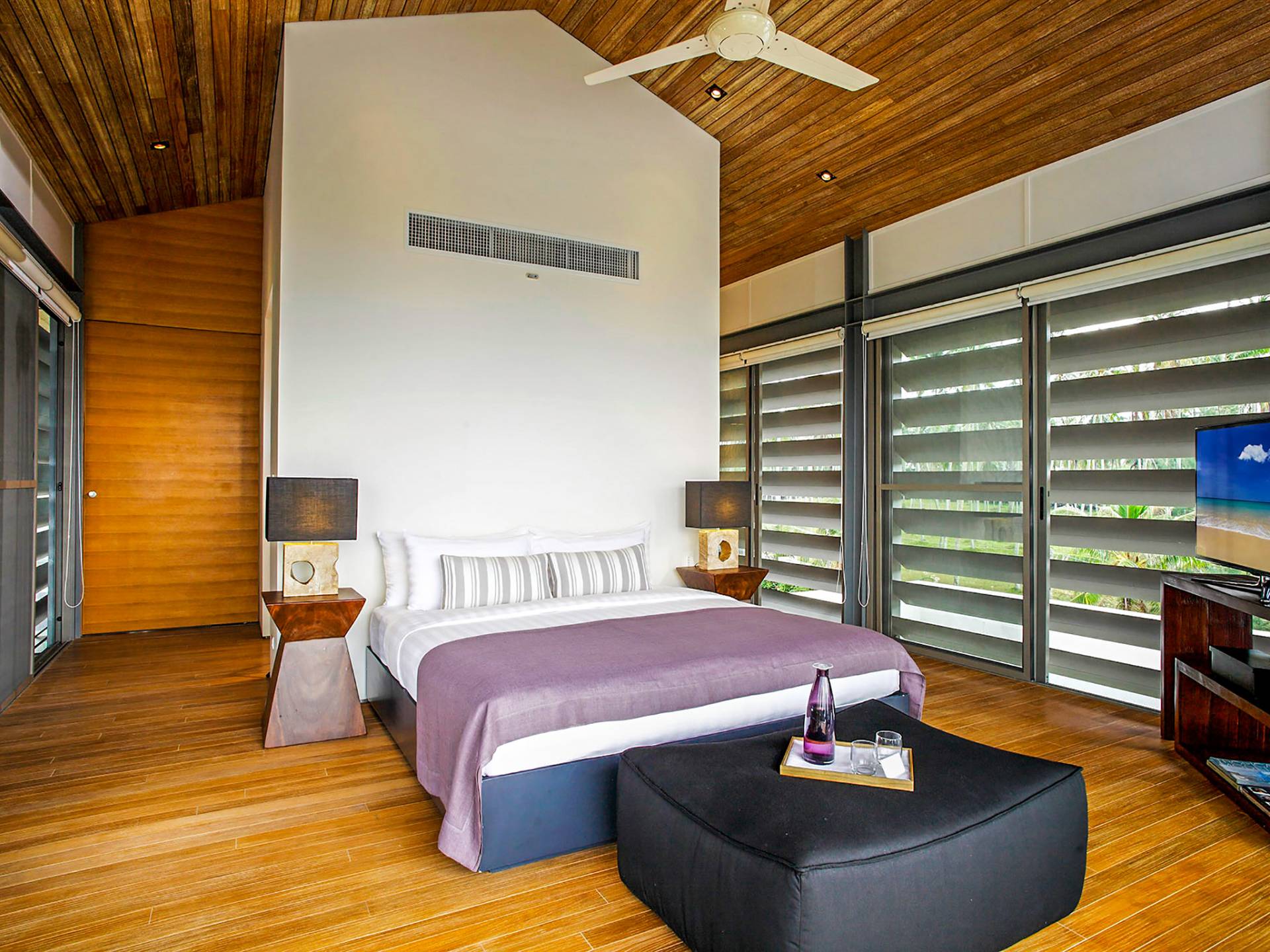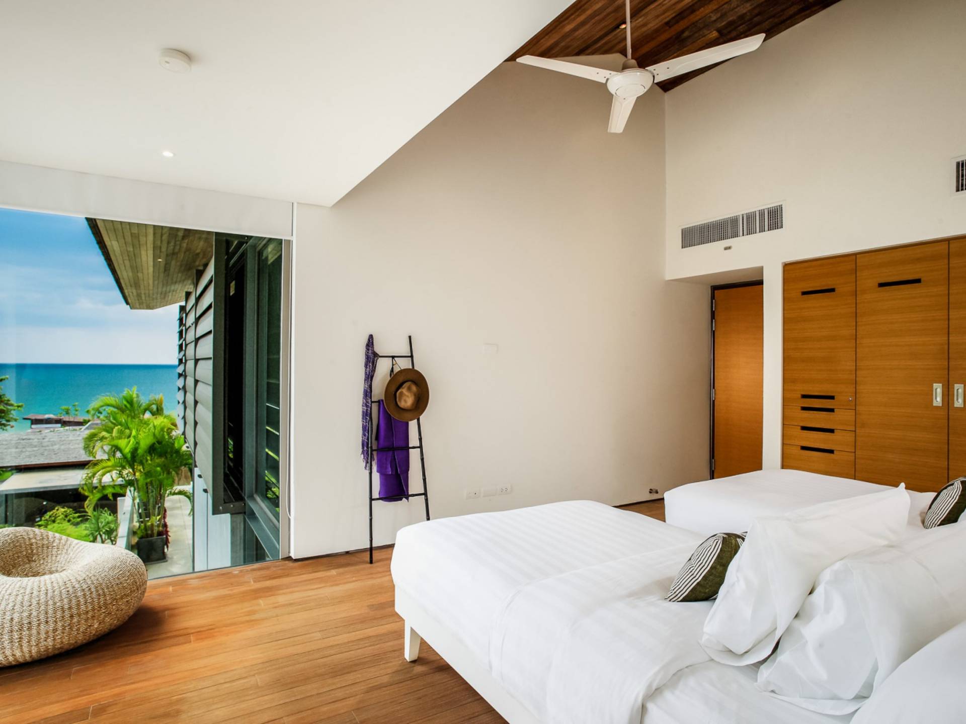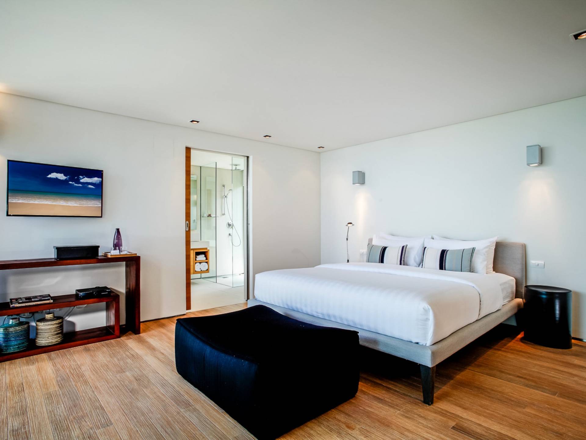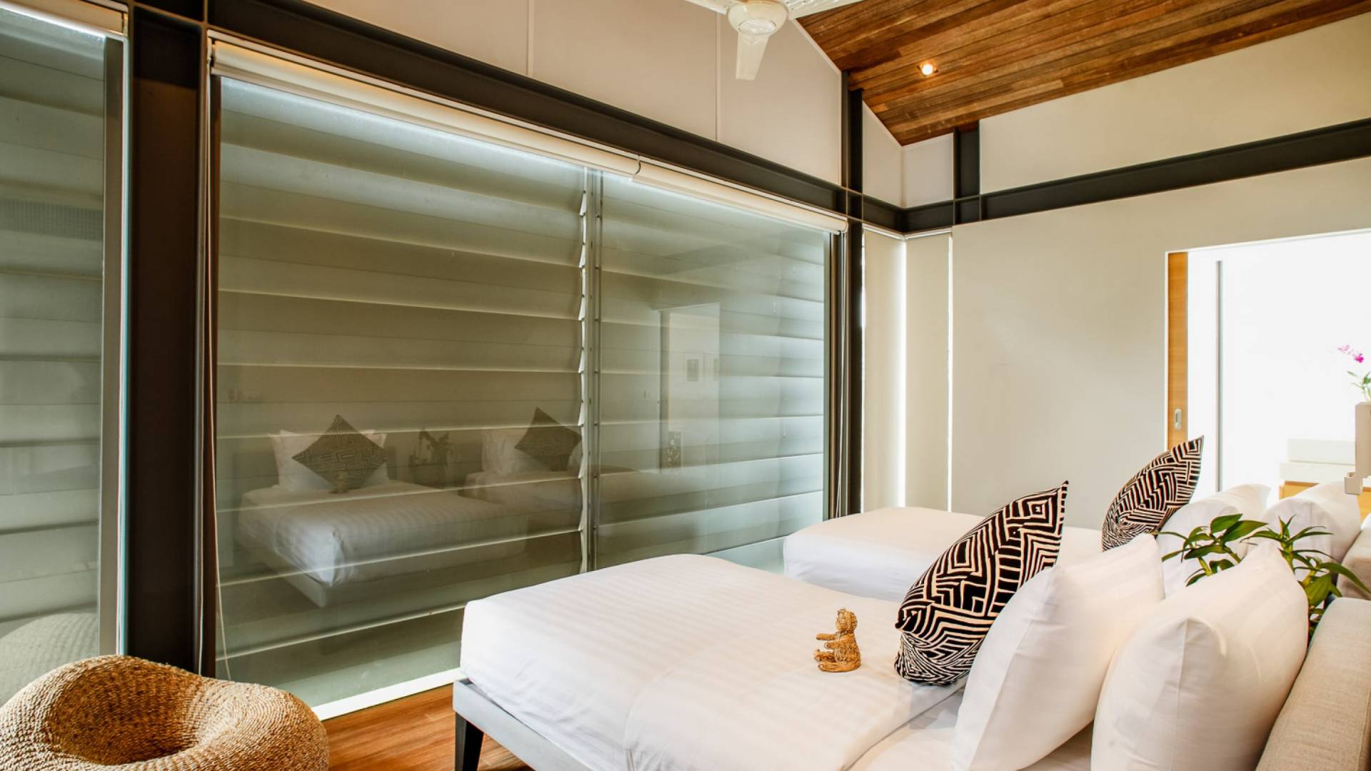 Die vier luxuriösen Schlafzimmer der Villa, von denen drei das ruhige Wasser des Ozeans widerspiegeln, befinden sich auf der obersten Etage. Die klimatisierten Schlafzimmer sind der perfekte Ausgangspunkt, um am Ende des Tages zurückzukehren. Übergroße Glastüren wurden bewusst so entworfen, dass sie den Innenraum mit den Außenräumen verschmelzen, damit Sie verjüngt schlafen und aufwachen können, begleitet vom Rauschen der Wellen am Ufer.