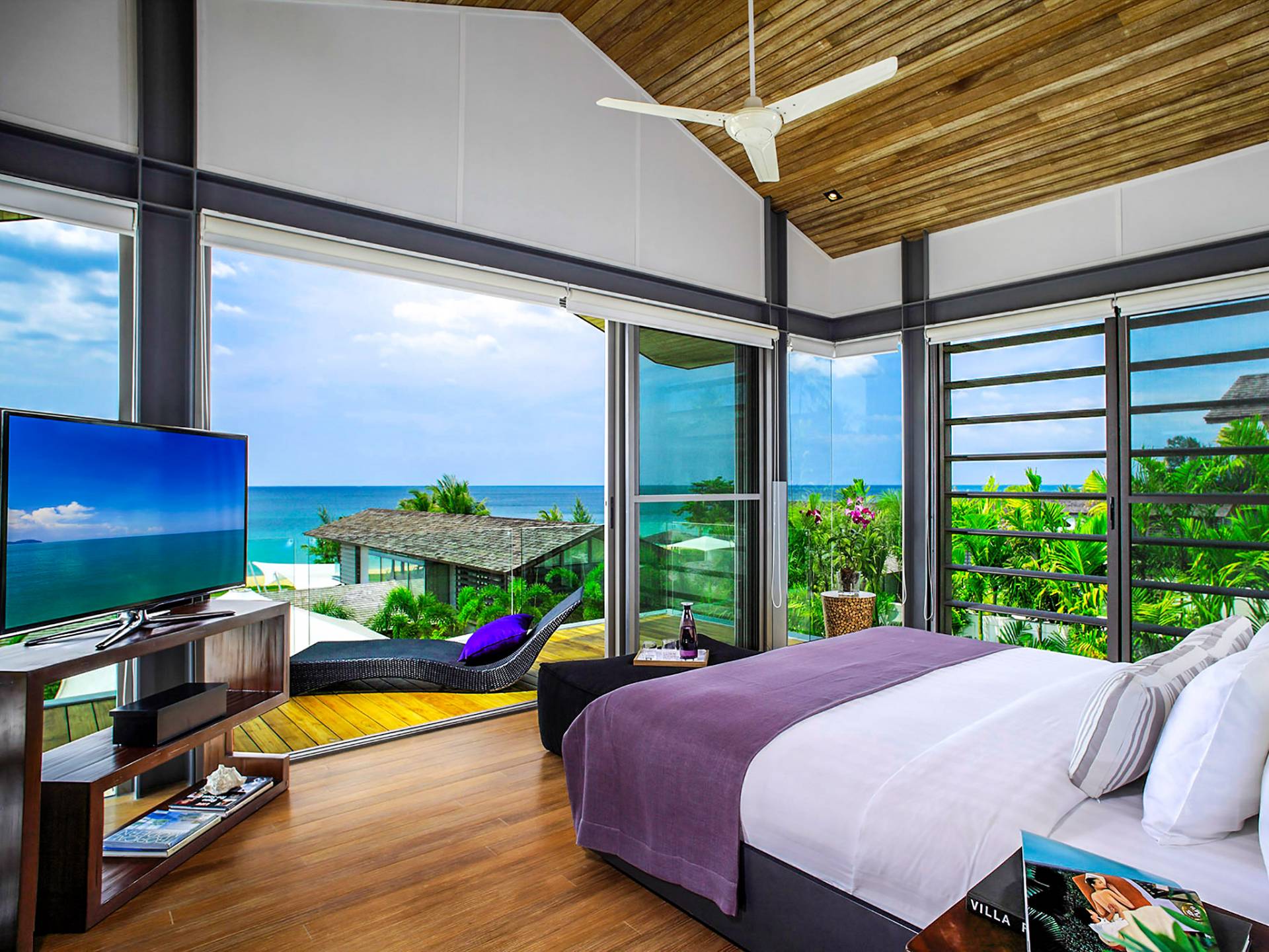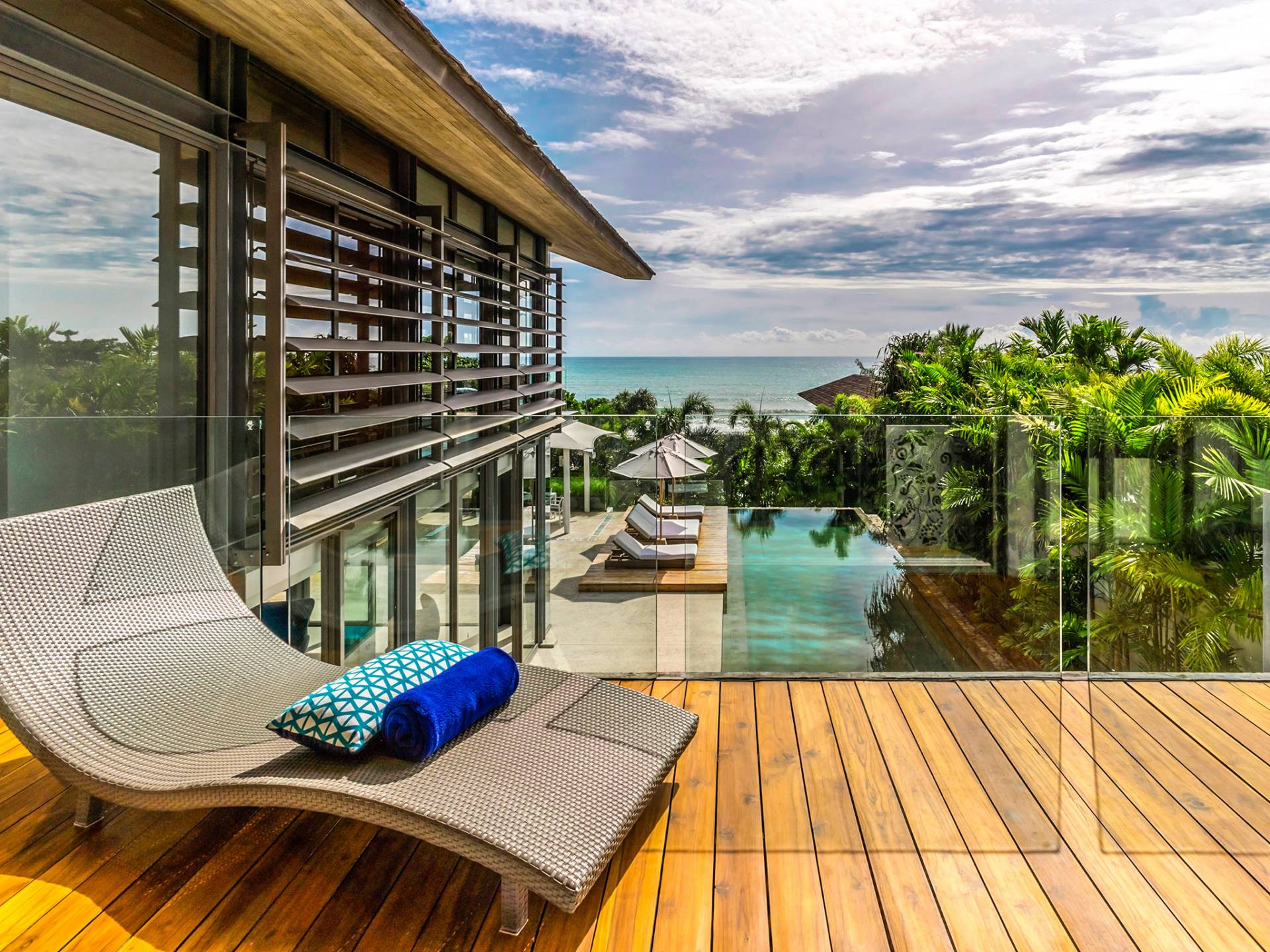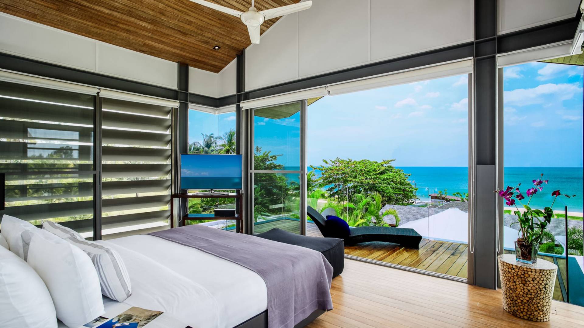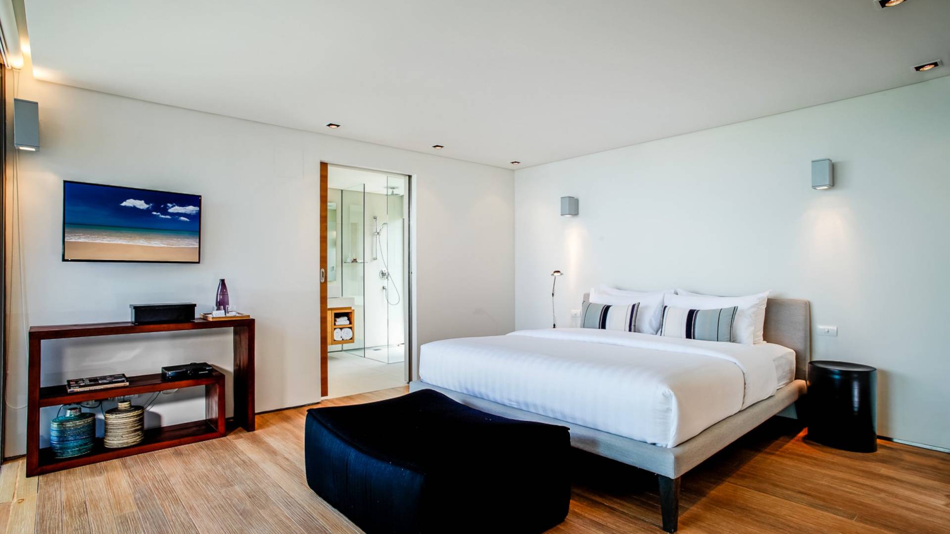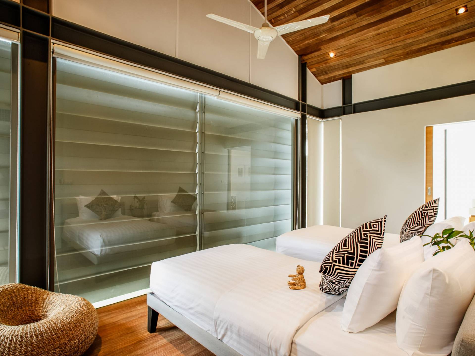 Die vier luxuriösen Schlafzimmer der Villa, von denen drei das ruhige Wasser des Ozeans widerspiegeln, befinden sich auf der obersten Etage. Die klimatisierten Schlafzimmer sind der perfekte Ausgangspunkt, um am Ende des Tages zurückzukehren. Übergroße Glastüren wurden bewusst so entworfen, dass sie den Innenraum mit den Außenräumen verschmelzen, damit Sie verjüngt schlafen und aufwachen können, begleitet vom Rauschen der Wellen am Ufer.