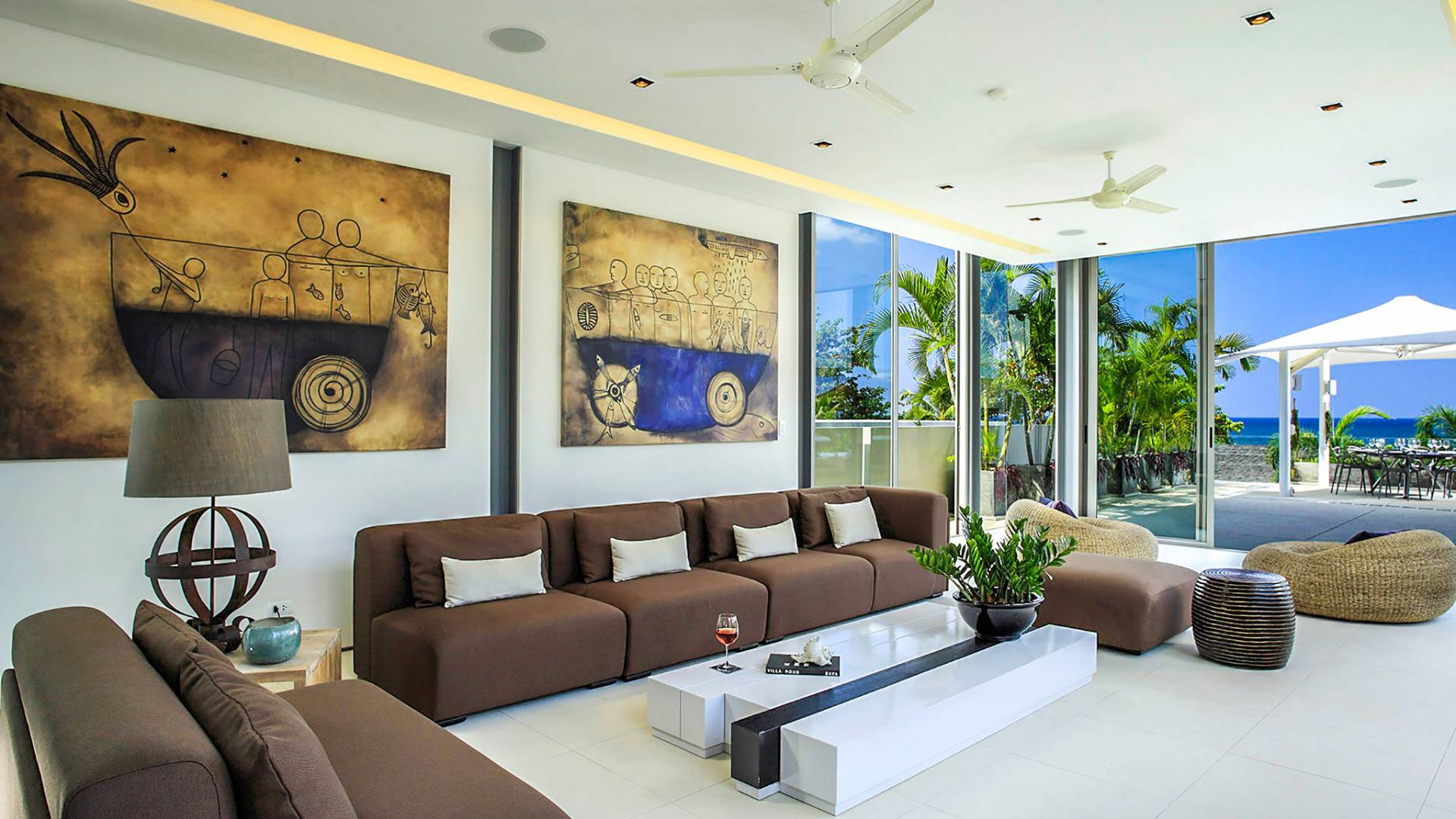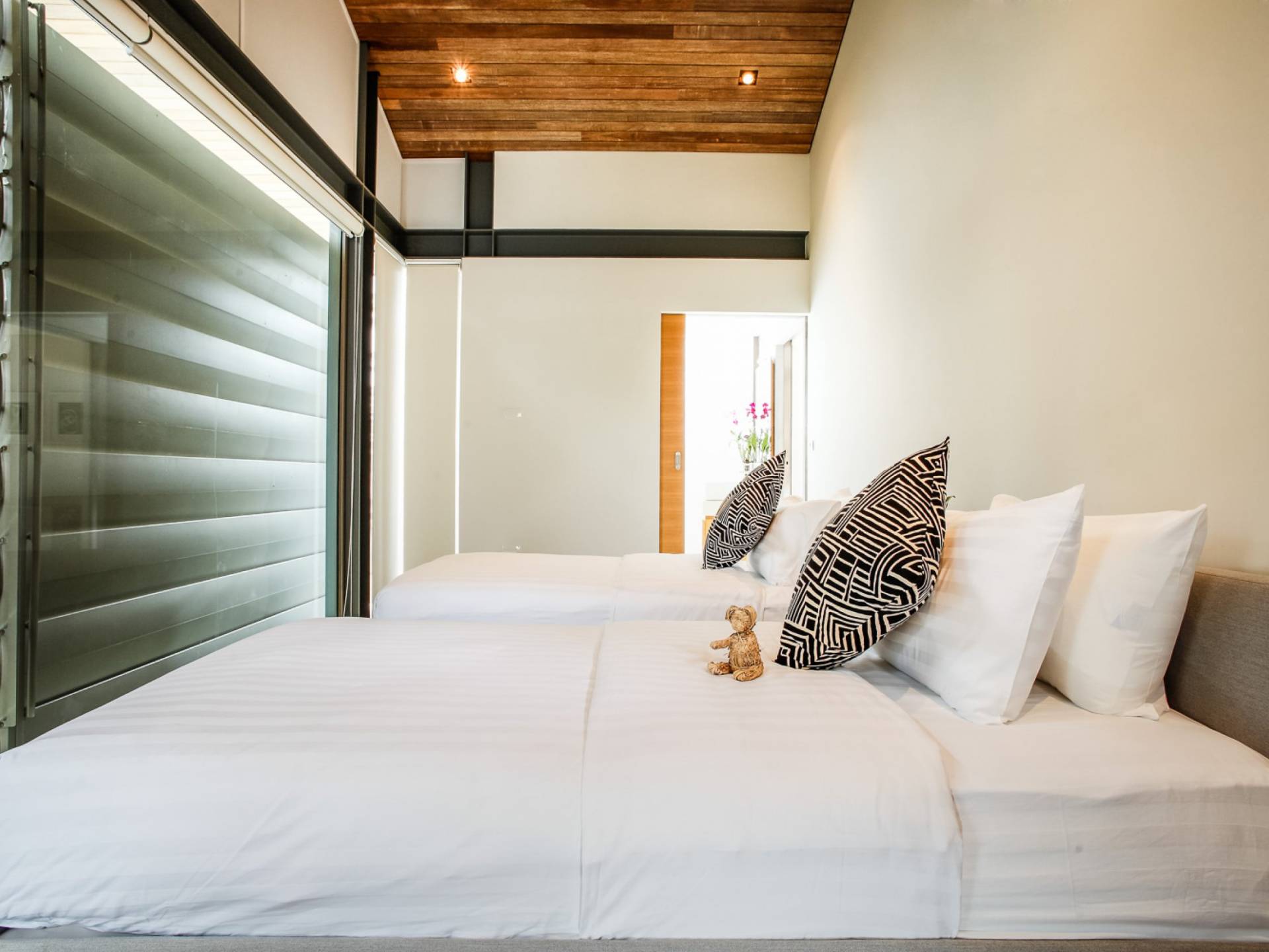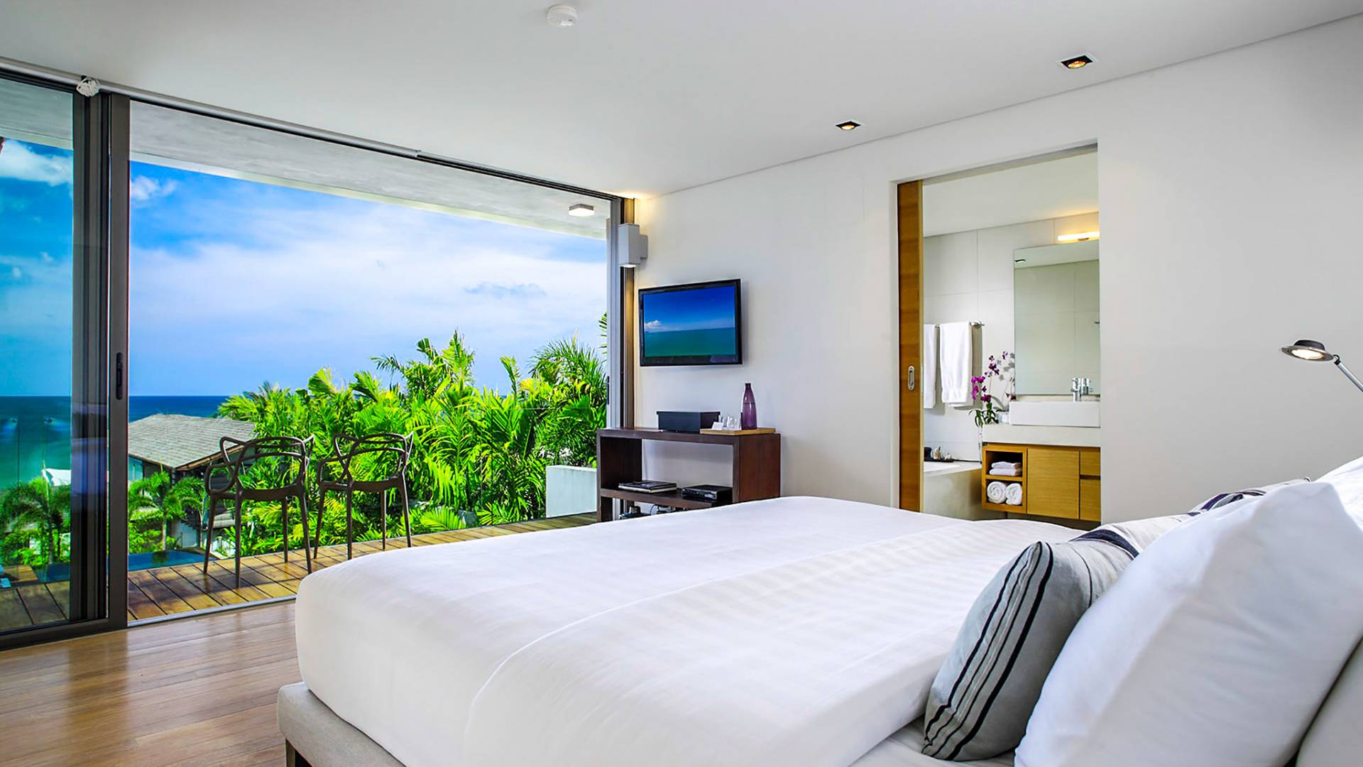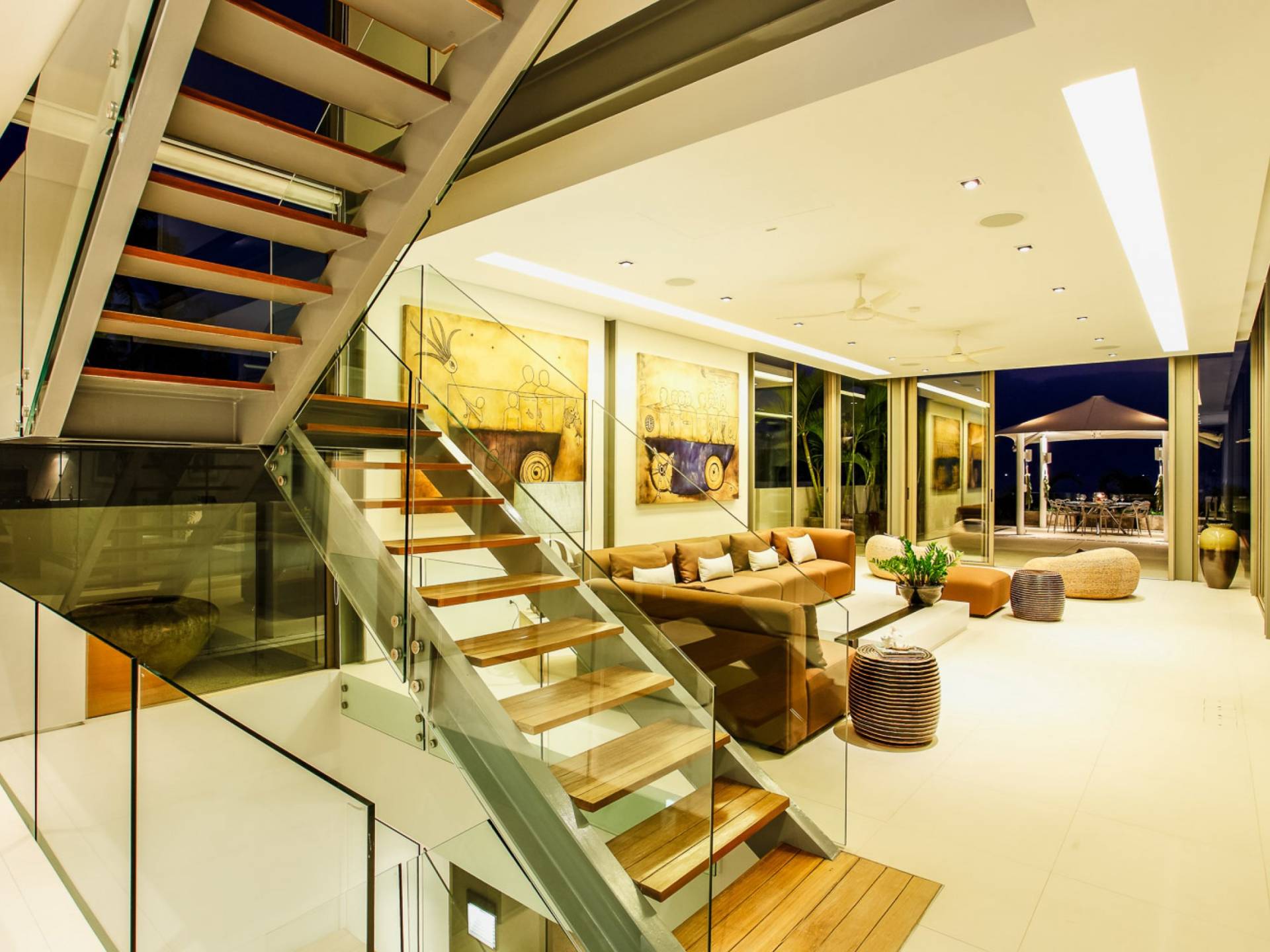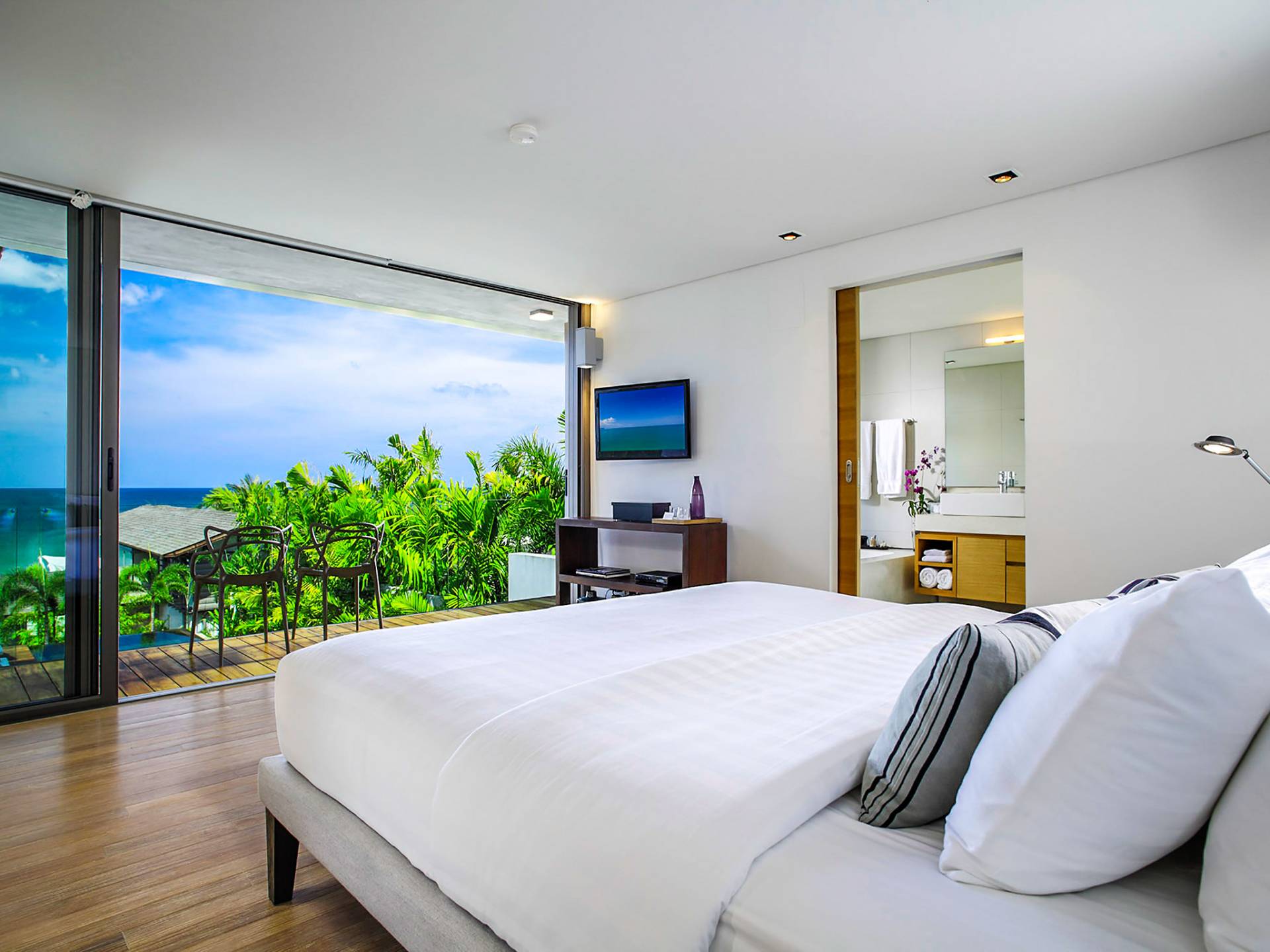 Die vier luxuriösen Schlafzimmer der Villa, von denen drei das ruhige Wasser des Ozeans widerspiegeln, befinden sich auf der obersten Etage. Die klimatisierten Schlafzimmer sind der perfekte Ausgangspunkt, um am Ende des Tages zurückzukehren. Übergroße Glastüren wurden bewusst so entworfen, dass sie den Innenraum mit den Außenräumen verschmelzen, damit Sie verjüngt schlafen und aufwachen können, begleitet vom Rauschen der Wellen am Ufer.