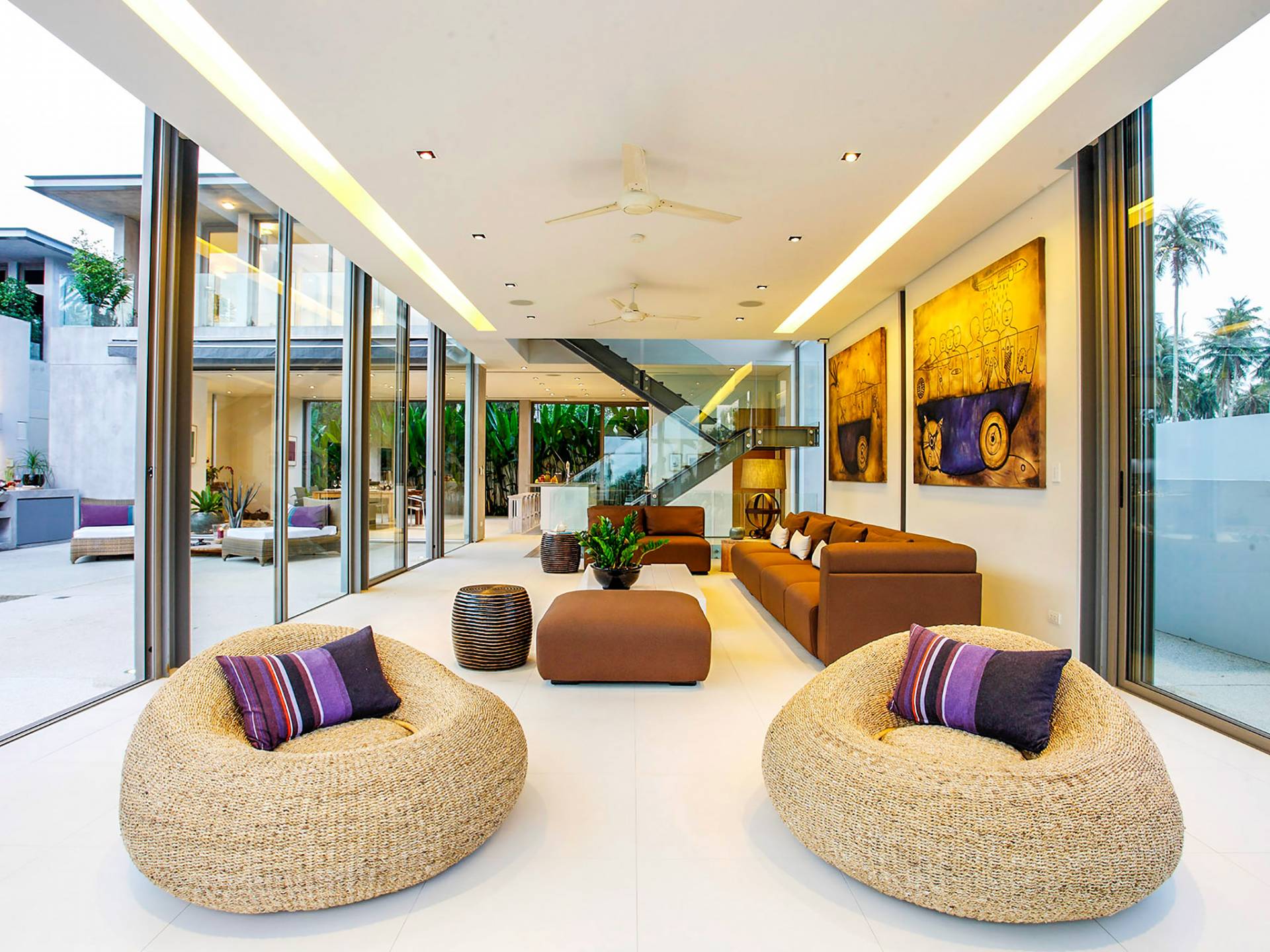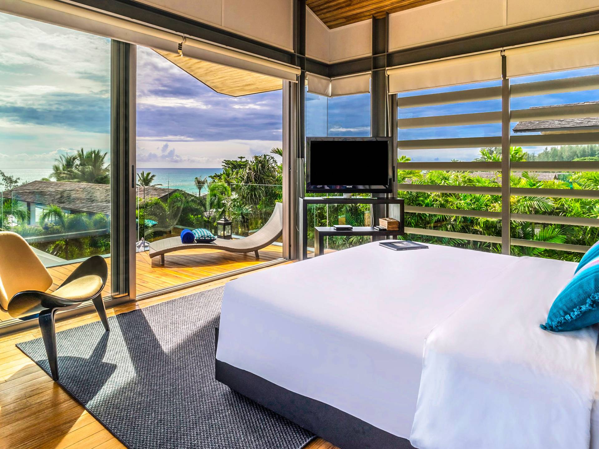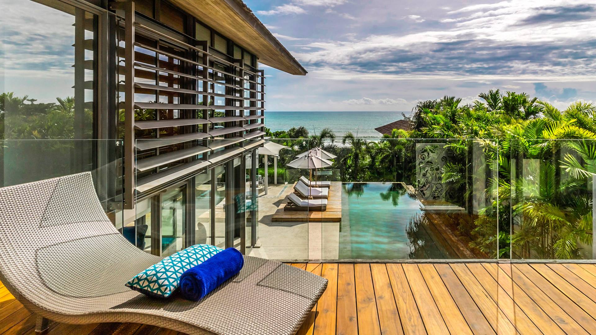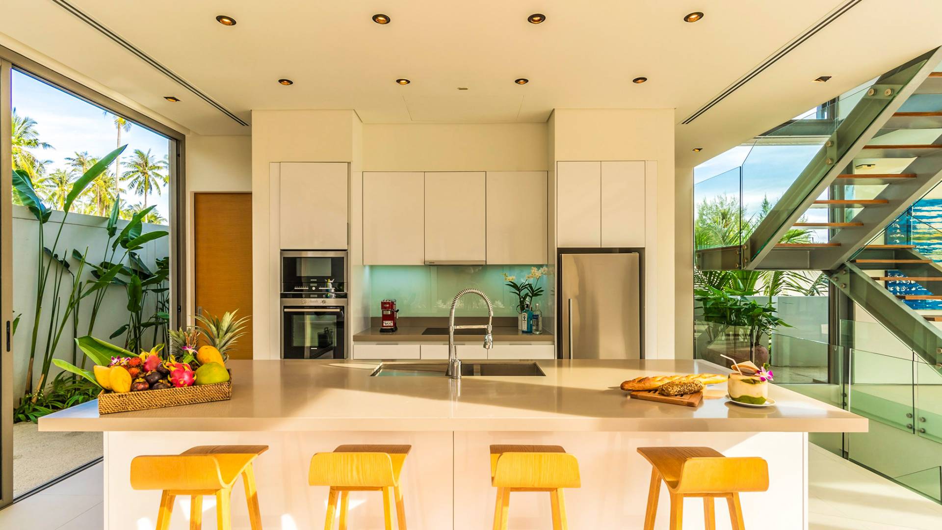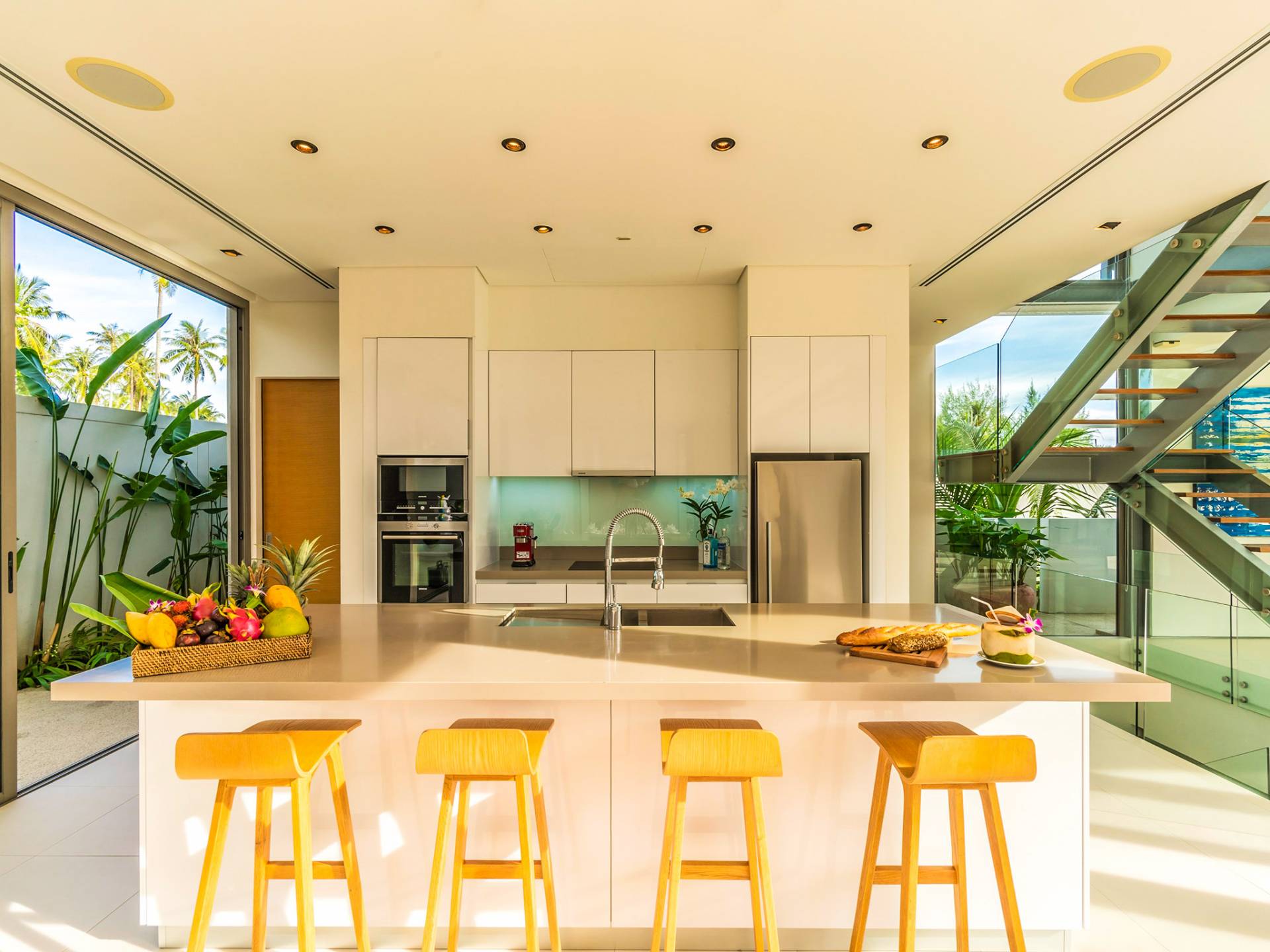 Die vier luxuriösen Schlafzimmer der Villa, von denen drei das ruhige Wasser des Ozeans widerspiegeln, befinden sich auf der obersten Etage. Die klimatisierten Schlafzimmer sind der perfekte Ausgangspunkt, um am Ende des Tages zurückzukehren. Übergroße Glastüren wurden bewusst so entworfen, dass sie den Innenraum mit den Außenräumen verschmelzen, damit Sie verjüngt schlafen und aufwachen können, begleitet vom Rauschen der Wellen am Ufer.